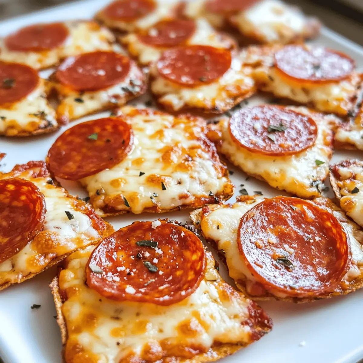 Konnte ich das Geräusch eines krossen Chips hören? Ja, das war der Klang meiner neuen Lieblingssnacks – den 2-Zutaten-Pizza-Chips! Mit nur zwei Hauptzutaten zaubern sie den unverwechselbaren Geschmack von Pizza in eine schnelle Snack-Option, die bei jedem Knusper mit Cheesy-Köstlichkeiten begeistert. Diese glutenfreien, keto-freundlichen Leckerbissen sind nicht nur in unter 20 Minuten zubereitet, sondern auch perfekt für gesellige Abende oder kurze Hunger-Attacken. Ideal, um mit Freunden beim nächsten Spiel zu teilen oder einfach allein zu genießen – diese Chips werden garantiert ein Hit! Neugierig, wie einfach es ist, diese köstlichen Snacks herzustellen? Warum wirst du diese Chips lieben? Einfachheit pur: Mit nur zwei Zutaten ist die Zubereitung kinderleicht und schnell. Knuspriger Genuss: Diese Pizza-Chips bieten den perfekten Crunch, den du liebst, kombiniert mit geschmolzenem Käse und würzigem Pepperoni. Keto-freundlich: Ideal für alle, die auf Kohlenhydrate achten, ohne beim Snacken auf Geschmack zu verzichten. Vielseitigkeit pur: Variiere mit deinen Lieblingsbelägen, wie Oliven oder Gewürzen, um neue Geschmacksrichtungen zu entdecken. Perfekte Partyhäppchen: Ob beim Spielabend oder als schnelle Appetitanregung – diese Chips sind immer ein Hit! Probiere sie auch zu Gruener Spargel Aus oder als Snack zu den Knusprige Tortilla Pizza! 2-Zutaten-Pizza-Chips Zutaten • Wenn du die perfekten Pizza-Chips zubereiten möchtest, sind hier die Zutaten, die du benötigst: Für den Teig Geriebener Mozzarella-Käse – sorgt für den unwiderstehlichen Käsegeschmack und die knusprige Textur. Pepperoni-Scheiben – fügt herzhaften Geschmack und Protein hinzu, das den Charakter von Pizza ausmacht. Diese 2-Zutaten-Pizza-Chips sind einfach zuzubereiten und ein köstlicher Snack, den du immer wieder genießen wirst! Schritt-für-Schritt-Anleitung für 2-Zutaten-Pizza-Chips Step 1: Ofen vorheizen Heize den Ofen auf 200 °C vor und lege ein Backblech mit Backpapier aus. Achte darauf, dass das Backpapier gut haftet, damit die Pizza-Chips später nicht ankleben. Dies ist ein wichtiger Schritt, um die perfekte knusprige Textur der 2-Zutaten-Pizza-Chips zu gewährleisten. Step 2: Pepperoni anordnen Lege die Pepperoni-Scheiben in einer einzelnen Schicht auf das vorbereitete Backblech. Lass zwischen den Scheiben kleine Abstände, damit die Luft zirkulieren kann und die Chips gleichmäßig garen. Dies sorgt dafür, dass sie schön knusprig werden und den charakteristischen Geschmack von Pizza entfalten. Step 3: Käse hinzufügen Streue den geriebenen Mozzarella gleichmäßig über jede Pepperoni-Scheibe. Achte darauf, nicht zu viel Käse zu verwenden, damit die Chips optimal backen. Der Käse schmilzt während des Backens und verbindet sich wunderbar mit dem Pepperoni, um die köstlichen Aromen der 2-Zutaten-Pizza-Chips zu intensivieren. Step 4: Backen Schiebe das Backblech in den vorgeheizten Ofen und backe die Chips für etwa 8-10 Minuten. Halte ein Auge darauf, bis der Käse geschmolzen und die Ränder der Pepperoni schön knusprig und leicht gebräunt sind. Dies ist der Moment, in dem die 2-Zutaten-Pizza-Chips ihre perfekte Konsistenz erreichen. Step 5: Abkühlen und Servieren Nehme das Backblech aus dem Ofen und lasse die Chips ein paar Minuten abkühlen. Dies verstärkt die Knusprigkeit und macht das Genießen noch angenehmer. Serviere die 2-Zutaten-Pizza-Chips warm oder bei Raumtemperatur, perfekt für jeden Snack-Moment oder als köstliche Appetithäppchen! 2-Zutaten-Pizza-Chips Variationen Du wirst sehen, wie viel Freude es macht, die Chips nach deinem Geschmack zu variieren! Lass deinen kreativen Kochgeist freien Lauf und entdecke neue Geschmackserlebnisse. Würzige Variante: Füge italienische Gewürze oder Cayennepfeffer hinzu, um deinen Chips eine pikante Note zu verleihen. Diese kleinen Extras machen einen großen Unterschied! Dipping-Sause: Serviere die Chips mit marinara oder einer würzigen Ranch-Dip, um den Genuss zu steigern. So wird jeder Biss noch köstlicher! Vegetarische Alternative: Ersetze die Pepperoni durch Oliven oder Paprika-Scheiben. Dies verleiht den Chips eine frische und knackige Note, die du lieben wirst. Käsevariationen: Experimentiere mit verschiedenen Käsesorten, wie Cheddar oder Gouda, um dem Geschmack neue Facetten zu geben. Für echte Käseliebhaber ist dies ein Muss! Textur-Twist: Füge knusprige Zwiebelringe oder Speckstückchen hinzu, bevor du sie backst. Dies sorgt für zusätzliche Knusprigkeit und tollen Geschmack. Süßliche Überraschung: Kröne die Chips mit einer Prise Honig oder einer süßen BBQ-Sauce nach dem Backen. Eine reizvolle Mischung aus süß und herzhaft! Crunchy Topping: Streue vor dem Backen einige zerbröselte Chips oder Nüsse über die Cheddar-Schicht für extra Crunch. Dies macht die Snack-Erfahrung noch spannender! Gourmet-Chips: Verfeinere mit Trüffelöl oder Parmesan für ein luxuriöses Snack-Erlebnis. Ideal für besondere Anlässe! Für noch mehr Ideen, entdecke auch wie köstlich diese Knusprige Tortilla Pizza oder die Pizza Bagels Rezept sind – perfekt neben deinen 2-Zutaten-Pizza-Chips! Tipps für die Vorbereitung der 2-Zutaten-Pizza-Chips Die 2-Zutaten-Pizza-Chips sind eine großartige Wahl für alle, die Zeit sparen möchten! Du kannst die Schnitte der Pepperoni und das Reiben des Mozzarella-Käses bis zu 3 Tage im Voraus erledigen und in luftdichten Behältern im Kühlschrank aufbewahren. Dies erleichtert die Vorbereitung, besonders an geschäftigen Abenden. Wenn du bereit bist zu genießen, lege die vorbereiteten Pepperoni auf ein Backblech, streue den Käse darüber und backe sie bei 200 °C für 8-10 Minuten, bis sie knusprig sind. Achte darauf, sie cool genug abkühlen zu lassen, um die bestmögliche Textur zu erhalten – so bleiben deine Chips genauso köstlich, als ob du sie frisch zubereitet hättest! Expertentipps für 2-Zutaten-Pizza-Chips Ofen vorheizen: Stelle sicher, dass der Ofen vollständig