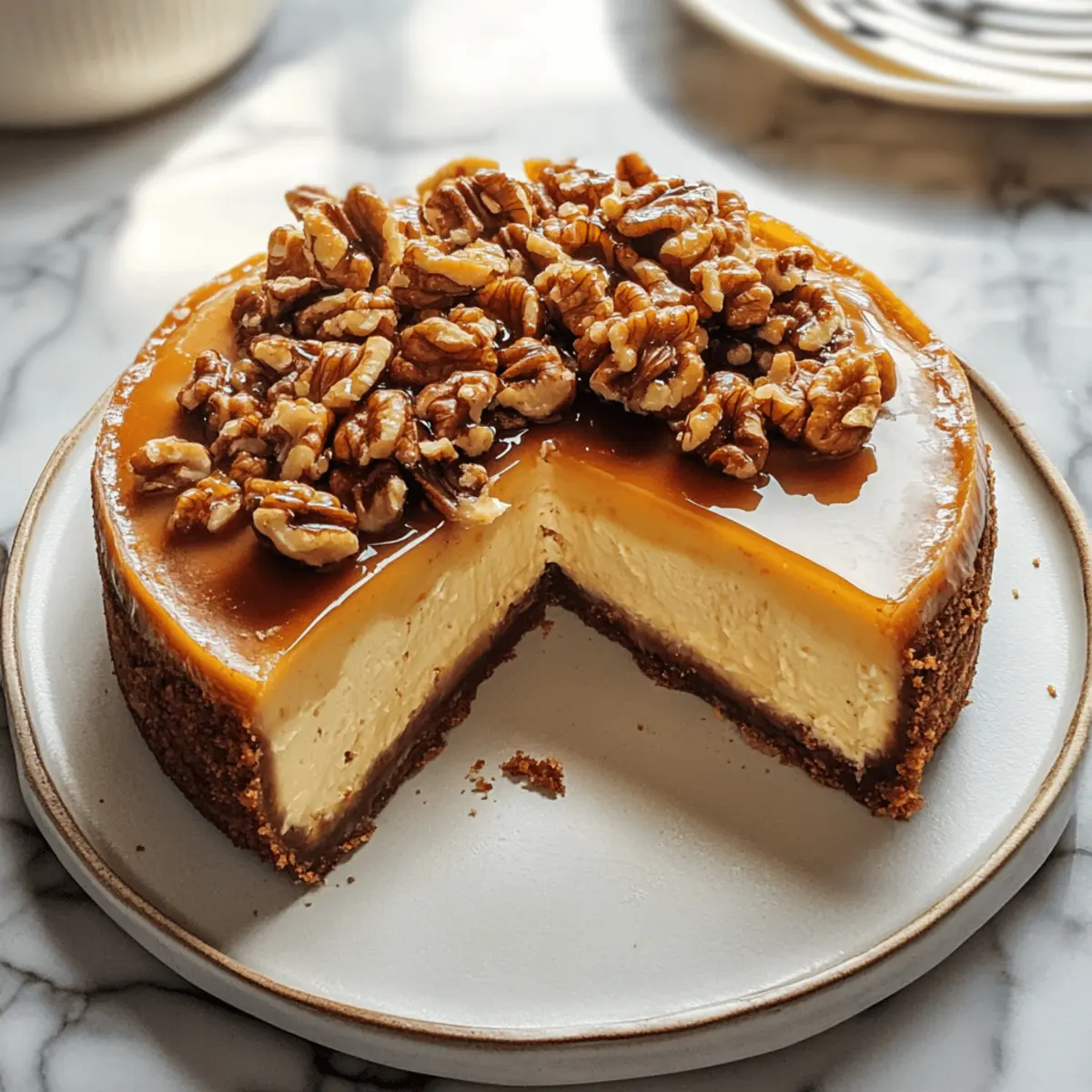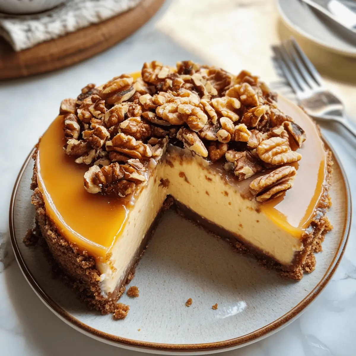 Die Vorstellung eines frisch gebackenem Ahorn-Walnuss-Käsekuchens weckt sofort ein Gefühl von Gemütlichkeit und Genuss. Mit seiner krossen, karamellisierten Walnusskruste, der samtigen Füllung aus cremigem Frischkäse und dem köstlichen, gooey Topping bringt dieser Käsekuchen die perfekten Aromen zusammen: süßlicher Ahorn und die knackigen Nüsse. Diese himmlische Delikatesse ist nicht nur ein wunderbares Highlight für besondere Anlässe, sondern auch ein taugliches Dessert für jeden Tag, das in kürzester Zeit zubereitet werden kann. Und das Beste: Du kannst ihn einfach im Voraus vorbereiten und vor dem Servieren mit frischem Topping vollenden! Wie würde es dir gefallen, diesen Käsekuchen in deiner nächsten Feier zu präsentieren? Warum ist dieser Käsekuchen ein Hit? Einzigartig: Der Ahorn-Walnuss-Käsekuchen vereint den reichen Geschmack von Ahornsirup mit knusprigen Walnüssen, was ihn zu einem unvergesslichen Dessert macht. Einfach: Die Zubereitung ist unkompliziert und benötigt keine speziellen Backkünste; jeder kann diesen süßen Genuss meistern. Genuss: Mit seinem cremigen Kern und dem gooey Topping ist jede Portion ein Erlebnis für die Geschmacksknospen. Vorbereitungsfreundlich: Perfekt, um im Voraus zubereitet zu werden und vor dem Servieren mit dem köstlichen Topping zu vollenden! Vielseitig: Ob für Feiertage oder alltägliche Anlässe, dieser Käsekuchen zieht alle in den Bann und bleibt sicher kein Geheimnis! Ahorn-Walnuss-Käsekuchen Zutaten • Dieser köstliche Ahorn-Walnuss-Käsekuchen wird dir garantiert ein Lächeln ins Gesicht zaubern! Für den Boden Walnüsse – geben der Kruste zusätzlichen Geschmack und Textur; ersetze sie durch Pekannüsse, wenn du eine Abwechslung suchst. Graham-Cracker-Brösel – dienen als Grundlage für den Boden; du kannst sie auch durch Digestivekekse ersetzen, um einen anderen Geschmack zu erzielen. Hellbrauner Zucker – sorgt für süße und Feuchtigkeit im Boden; dunkler Zucker bringt einen intensiveren Geschmack. Salz – balanciert die Süße in Boden und Füllung aus. Ungesalzene Butter – bindet die Zutaten des Bodens und verleiht Reichhaltigkeit; Kokosöl ist eine gute pflanzliche Alternative. Für die Füllung Vollrahm-Frischkäse – ist die Basis der Käsekuchenfüllung, sorgt für die gewünschte Cremigkeit; kein direkter Ersatz empfohlen. Vollrahm-Sauerrahm – sorgt für einen schönen, säuerlichen Geschmack; griechischer Joghurt kann für eine leichtere Option genutzt werden. Zucker – sorgt für die notwendige Süße der Füllung. Vanilleextrakt – verstärkt den Geschmack der Füllung. Eier & Eigelb – geben Struktur und Reichhaltigkeit dem Käsekuchen. Hochwertiger Ahornsirup – bringt den authentischen Ahorngeschmack in den Käsekuchen; Ahornextrakt ist eine konzentrierte Alternative. Ahornextrakt – intensiviert den Ahorngeschmack in der Füllung. Schlagsahne – sorgt für zusätzliche Reichhaltigkeit und Cremigkeit; Kokoscreme ist eine geeignete pflanzliche Option. Allzweckmehl – hilft, die Füllung zu binden; eine glutenfreie Mehlmischung ist eine gute Alternative. Für das Topping Ungesalzene Butter (für das Topping) – verleiht dem Sirup Geschmack und Reichhaltigkeit. Hellbrauner Zucker (für das Topping) – sorgt für Süße und Karamellisierung. Schlagsahne (für das Topping) – verleiht der Mischung Cremigkeit. Salz (für das Topping) – hebt die Aromen des Toppings hervor. Ganze oder gehackte Walnüsse – sorgen für Textur und zusätzlichen Geschmack im Topping. Vanilleextrakt (für das Topping) – sorgt für zusätzliche Geschmacksnuancen. Ahornsirup (für das Topping) – gibt eine klebrige Süße. Bourbon – sorgt für einen tiefen Geschmack im Topping; für eine alkoholfreie Version einfach weglassen. Schritt-für-Schritt-Anleitung für Ahorn-Walnuss-Käsekuchen Step 1: Boden vorbereiten Heize deinen Ofen auf 175°C vor. Wickel eine 23-cm-Springform in schweres Aluminiumfolie, um die Feuchtigkeit zu halten, und sprühe sie mit Antihaftspray ein. Dies sorgt dafür, dass dein Ahorn-Walnuss-Käsekuchen nicht an der Form kleben bleibt. Step 2: Krustenmischung herstellen Pulsierte die Walnüsse in einer Küchenmaschine, bis sie zu feinen Krümeln werden. Vermische sie anschließend mit Graham-Cracker-Bröseln, hellbraunem Zucker, Salz und geschmolzener Butter in einer Schüssel. Drücke die Mischung gleichmäßig in die Springform und backe die Kruste für 10 Minuten. Lass sie auf einem Gitterrost vollständig abkühlen. Step 3: Füllung zubereiten Reduziere die Ofentemperatur auf 160°C. Vermische den weichgemachten Frischkäse und Sauerrahm in einer großen Schüssel mit einem Mixer, bis sie glatt sind. Füge den Zucker und Vanilleextrakt hinzu und vermixe alles gut. Gib die Eier und Eigelbe nach und nach dazu, gefolgt von Ahornsirup, Ahornextrakt und Schlagsahne. Rühre das Mehl vorsichtig unter. Step 4: Füllung backen Gieße die Füllung auf die abgekühlte Kruste. Stelle die Springform in ein Wasserbad (ein Blech mit Wasser im Ofen) und backe alles für etwa 80 Minuten. Lasse den Ahorn-Walnuss-Käsekuchen anschließend 30 Minuten lang im Ofen ruhen, bevor du ihn herausnimmst. Kühle ihn vollständig ab und stelle ihn für mindestens 6 Stunden, besser über Nacht, in den Kühlschrank. Step 5: Topping vorbereiten Schmelze die Butter in einer Pfanne bei niedriger Hitze. Rühre den hellbraunen Zucker ein und koche die Mischung, bis sie anfängt zu blubbern. Füge die Sahne und das Salz hinzu und falte die gehackten Walnüsse vorsichtig unter. Integriere den Vanilleextrakt, den Ahornsirup und, falls gewünscht, den Bourbon. Lass das Topping 10 Minuten abkühlen. Step 6: Servieren Gieße das abgekühlte Topping über den gekühlten Ahorn-Walnuss-Käsekuchen. Schneide den Kuchen in Stücke und genieße die perfekte Kombination aus Aromen und Texturen! Was passt gut zum Ahorn-Walnuss-Käsekuchen? Schaffe mit diesen köstlichen Begleitern eine harmonische Essensrunde, die jede