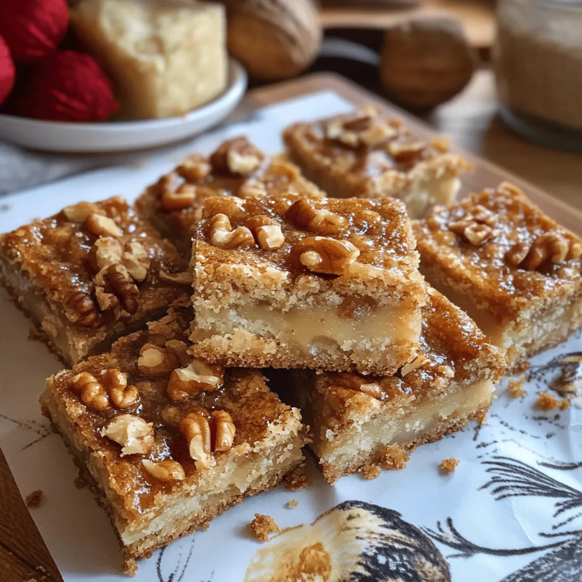 Das Aroma der frisch gebackenen Ahorn-Walnuss-Riegel hat die Macht, jeden Raum in einen gemütlichen Rückzugsort zu verwandeln. Wenn ich diese köstlichen Riegel aus einer Buttermürbeteigbasis mit einer cremigen, zähen Ahornfüllung und knackigen Walnüssen zubereite, fühle ich mich sofort in die festliche Jahreszeit versetzt. Dieses Rezept ist nicht nur ein echter Hingucker auf jedem Desserttisch, sondern auch unglaublich einfach zuzubereiten und perfekt für spontane Feiern geeignet. Egal, ob Sie sie als Nachmittagssnack oder als besonderen Leckerbissen für Ihre Liebsten servieren möchten, diese Riegel bringen den Geschmack des Nordamerikas direkt zu Ihnen nach Hause. Neugierig, wie Sie diese unwiderstehliche Leckerei selbst herstellen können? Lassen Sie uns gemeinsam den Backofen anheizen! Warum sind diese Riegel so besonders? Einfachheit: Die Zubereitung erfordert nur grundlegende Backkenntnisse und ist in wenigen Schritten erledigt. Unverwechselbarer Geschmack: Die Kombination aus nussigen Walnüssen und dem süßen, reichhaltigen Ahornsirup sorgt für einen einzigartigen Genuss, der jeden Bissen zu etwas Besonderem macht. Vielseitig: Perfekt für Feierlichkeiten oder einfach als süßer Snack für zwischendurch. Diese Riegel passen zu jeder Gelegenheit und erfreuen garantiert alle Gäste. Schnell und unkompliziert: Mit minimalen Vorbereitungszeiten sind sie eine großartige Lösung für spontane Einladungen oder gemütliche Abende. Klassischer Genuss: Diese Ahorn-Walnuss-Riegel bringen das Herz und die Seele nordamerikanischer Backtraditionen auf Ihren Tisch. Möchten Sie mehr über ähnliche Rezeptideen erfahren? Schauen Sie sich auch unsere anderen köstlichen Dessert-Rezepte an! Ahorn-Walnuss-Riegel Zutaten • Für die Zubereitung der köstlichen Ahorn-Walnuss-Riegel benötigen Sie diese einfachen Zutaten: Für den Boden Butter – sorgt für reichhaltigen Geschmack und Feuchtigkeit; verwenden Sie ungesalzene Butter, um den Salzgehalt zu kontrollieren. Zucker – fügt der Kruste Süße hinzu; kann durch Kokoszucker ersetzt werden für einen karamellartigen Geschmack. Weizenmehl – liefert die Struktur für den Boden; Glutenfreies Mehl ist eine gute Alternative. Zimt – verleiht Wärme und Tiefe; optional, falls ein neutralerer Geschmack gewünscht ist. Salz – harmonisiert die Süße; kann nach Geschmack angepasst werden. Für die Füllung Eier – geben Struktur und Feuchtigkeit zur Füllung; können durch Leinsamen-Eier für eine vegane Option ersetzt werden. Brauner Zucker – sorgt für die zähe Textur der Füllung; hellen oder dunklen braunen Zucker verwenden, je nach Vorliebe. Ahornsirup – fügt einen unverwechselbaren Geschmack hinzu; kein direkter Ersatz, agavensirup kann jedoch ab und zu verwendet werden. Schlagsahne – erhöht die Cremigkeit der Füllung; für eine milchfreie Variante verwenden Sie Kokoscreme. Vanilleextrakt – intensiviert den Geschmack; reiner Extrakt wird für das beste Aroma bevorzugt. Walnüsse – bieten einen knackigen Biss und erdigen Geschmack; pecan können für eine Variation verwendet werden. Jetzt sind Sie bereit, diese köstlichen Ahorn-Walnuss-Riegel zu zaubern! Schritt-für-Schritt-Anleitung für Ahorn-Walnuss-Riegel Step 1: Ofen vorheizen Heizen Sie Ihren Ofen auf 180 °C (350 °F) vor und legen Sie eine 20×20 cm große Backform mit Backpapier aus. Das Vorheizen ist wichtig, um eine gleichmäßige Wärmeverteilung zu gewährleisten, die für das perfekte Backen unserer köstlichen Ahorn-Walnuss-Riegel sorgt. Step 2: Teig zubereiten In einer großen Schüssel vermengen Sie die weiche, ungesalzene Butter mit dem Zucker, bis die Mischung cremig und glatt ist. Fügen Sie dann das Weizenmehl, Zimt und das Salz hinzu und kneten Sie alles zusammen, bis eine krümelige Masse entsteht. Diese wird gleichmäßig in die vorbereitete Backform gedrückt, um den Boden zu bilden. Step 3: Boden backen Backen Sie den Teig für 15 bis 20 Minuten im vorgeheizten Ofen, bis er leicht goldbraun ist. Achten Sie darauf, den Boden nicht zu überbacken, da er noch gleichmäßig abkühlen muss, bevor die Füllung hinzugefügt wird. Step 4: Füllung vorbereiten Während der Boden abkühlt, schlagen Sie in einer separaten Schüssel die Eier, den braunen Zucker, den Ahornsirup und die Schlagsahne zusammen, bis die Masse schaumig und gut vermischt ist. Fügen Sie dann den Vanilleextrakt, das gesiebte Mehl und das Salz hinzu und verrühren Sie alles zu einer glatten Mischung für die köstliche Füllung. Step 5: Riegel zusammensetzen Streuen Sie die gehackten Walnüsse gleichmäßig über den abgekühlten Teigboden in der Backform. Gießen Sie die vorbereitete Füllung vorsichtig darüber, sodass die Walnüsse gleichmäßig verteilt sind und die Füllung nicht in den Boden sinkt. Step 6: Riegel backen Schieben Sie die Backform zurück in den Ofen und backen Sie die Riegel für etwa 30 bis 35 Minuten, bis die Füllung fest und leicht goldbraun ist. Überprüfen Sie beim Backen, dass die Oberseite nicht zu dunkel wird; eine gute Sicht auf das Backwerk sorgt für einen optimalen Genuss. Step 7: Abkühlen und schneiden Lassen Sie die Ahorn-Walnuss-Riegel vollständig in der Backform abkühlen, bevor Sie sie in 16 gleichmäßige Quadrate schneiden. Dies verhindert, dass die Riegel beim Schneiden zerbrechen und sorgt für ein sauberes Ergebnis. Step 8: Servieren und aufbewahren Servieren Sie die geschnittenen Riegel in einer schönen Anrichteschale und bewahren Sie die Riegel in einem luftdichten Behälter im Kühlschrank auf, wo sie bis zu einer Woche frisch bleiben. Diese köstlichen Ahorn-Walnuss-Riegel sind perfekt für eine süße Auszeit oder als besonderer Leckerbissen zu jeder Feier. Lagerungstipps für Ahorn-Walnuss-Riegel Raumtemperatur: Bewahren Sie die Ahorn-Walnuss-Riegel in einem luftdichten Behälter auf, um ihre Frische zu bewahren; sie halten so bis zu 3 Tage. Kühlschrank: Im Kühlschrank aufbewahrt, bleiben die Riegel bis zu einer Woche 