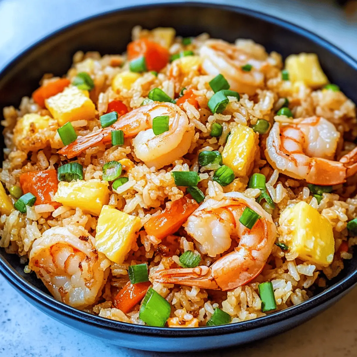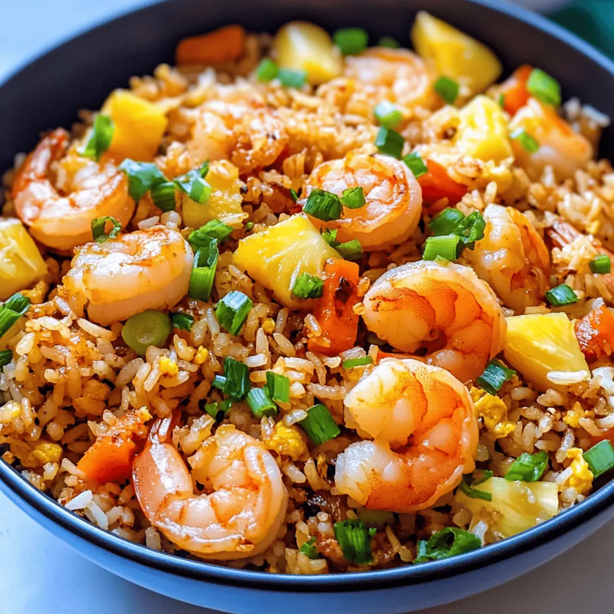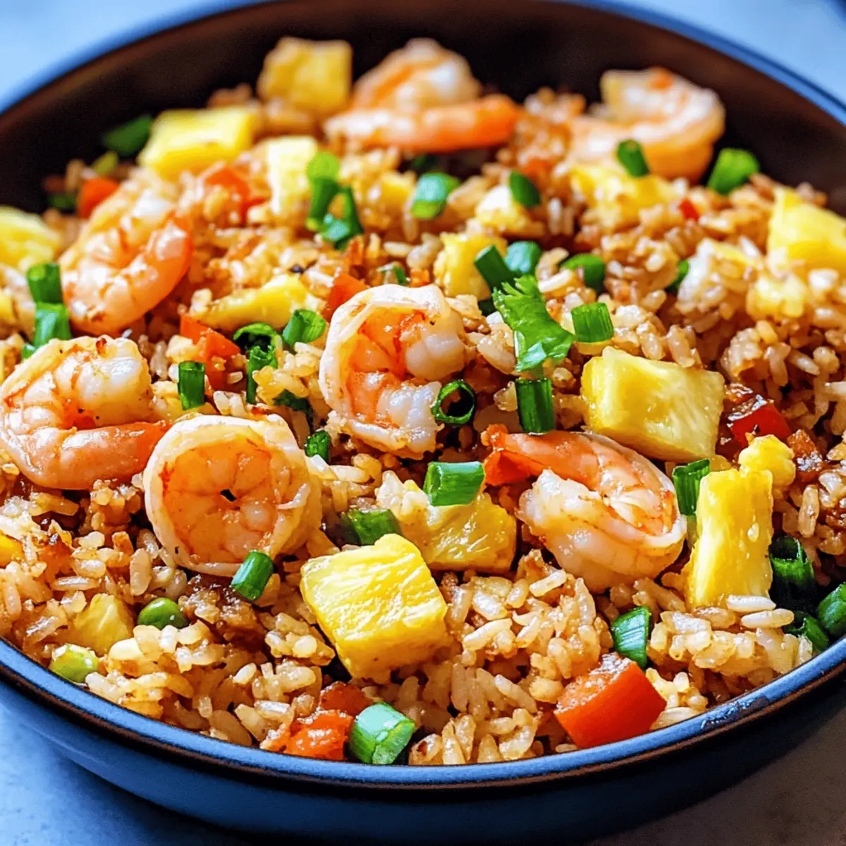 Eines Abends, während ich von einem tropischen Paradies träumte, fiel mir wieder dieser verlockende Geschmack von Ananas gebratenem Reis ein – eine köstliche Mischung aus zarten Garnelen, frischer Ananas und knackigem Gemüse, die mich in die Sonne Hawaiis versetzt. Die aufregende Zubereitung meines Ananas gebratenen Reis mit Garnelen ist nicht nur unglaublich einfach, sondern auch in nur 30 Minuten fertig – perfekt für hektische Wochentage! Das Beste daran? Dieses Gericht ist ein wahrer Publikumsliebling und bringt die ganze Familie zusammen, während wir dem Fastfood-Rhythmus einhalt gebieten. Bereiten Sie sich darauf vor, in weniger als einer halben Stunde ein Stück Kulinarik-Hawaii auf den Tisch zu zaubern. Welche Erinnerungen an Urlaub und Geschmack werden diese bunt gefüllte Schüssel bei Ihnen wecken? Warum sollten Sie dieses Rezept ausprobieren? Einfachheit: Die Zubereitung ist unkompliziert und benötigt nur grundlegende Kochkenntnisse. Vielseitigkeit: Passen Sie das Rezept an, indem Sie Garnelen durch Hühnchen oder Tofu ersetzen! Schnell zubereitet: In nur 30 Minuten haben Sie ein köstliches Gericht auf dem Tisch. Köstlicher Geschmack: Die harmonische Kombination aus süßer Ananas und zarten Garnelen begeistert jeden Gaumen. Familienliebling: Dieses Gericht bringt alle zusammen und ist perfekt für gesellige Abende. Frische Zutaten: Nutzen Sie frisches Gemüse und Eier für einen besonderen Genuss – vielleicht könnte ein Nudelsalat dazu eine tolle Ergänzung sein! Ananas gebratener Reis Zutaten • Diese Zutatenbasis wird Ihre Geschmacksknospen begeistern! Für das Öl: Raps- oder Pflanzenöl – Grundlage zum Braten; alternativ kann auch Olivenöl verwendet werden. Sesamöl – Verleiht dem Gericht einen reichen, nussigen Geschmack. Für die Garnelen: Frische Mittelgroße Garnelen – Ca. 15-20 Stück; sie sind die wichtige Proteinquelle. Gefrorene Garnelen können verwendet werden, wenn sie vorher aufgetaut werden. Für das Gemüse: Mittlerer roter Paprika – Bringt Süße und Farbe ins Gericht. Erbsen und Karottenmischung – Frische bietet; kann auch gefroren oder aus der Dose verwendet werden. Mais – Fügt einen süßen Geschmack und Crunch hinzu; gefroren oder aus der Dose möglich. Für die Würze: Knoblauchzehen – Sorgt für Aroma und Geschmacksfülle. Gemahlener Ingwer – Steigert die Wärme des Gerichts; nach Geschmack anpassen. Reduzierte Sojasauce – Essentiell für den Geschmack; je nach Vorliebe anpassen. Frisch gemahlener schwarzer Pfeffer – Verstärkt die Würzung; nach Geschmack anpassen. Rote Chiliflocken – Optional für eine zusätzliche Schärfe. Für den Reis: Gekochter Reis – Basis des Gerichts; verwenden Sie warmen, gekochten Reis, idealerweise aus Tüten für Bequemlichkeit. Frische gewürfelte Ananas – Süß und saftig; kann auch durch Dosenananas ersetzt werden. Für die Eier: Große Eier – Sorgen für Reichhaltigkeit und Textur; separat verrühren und braten. Für die Garnitur: Frühlingszwiebeln – Für eine frische, helle Note; dünn schneiden. Dieser Ananas gebratene Reis wird Sie mit jeder Gabel in eine kulinarische Reiselust versetzen! Schritt-für-Schritt-Anleitung für Ananas gebratener Reis mit Garnelen Step 1: Öl erhitzen Erwärmen Sie in einer großen, beschichteten Pfanne oder einem Wok bei mittelhoher Hitze 2 Esslöffel Raps- oder Pflanzenöl und 1 Esslöffel Sesamöl. Warten Sie, bis das Öl schimmert, was etwa 1-2 Minuten dauert. Es ist wichtig, dass das Öl heiß genug ist, damit die Garnelen beim Braten eine schöne Kruste bilden. Step 2: Garnelen braten Fügen Sie 15-20 frische, mittelgroße Garnelen hinzu und braten Sie diese für etwa 3 Minuten, bis sie rosa und durchgegart sind, dabei einmal wenden. Achten Sie darauf, dass die Garnelen nicht überkochen, da sie sonst gummiartig werden. Nehmen Sie die Garnelen anschließend aus der Pfanne und stellen Sie sie beiseite. Step 3: Gemüse anbraten In derselben Pfanne geben Sie den gewürfelten roten Paprika, die Erbsen und die Karottenmischung sowie den Mais hinzu. Braten Sie das Gemüse für etwa 2 Minuten, bis es weich ist und die Farben leuchtend wirken. Rühren Sie gelegentlich um, um ein gleichmäßiges Garen zu gewährleisten. Step 4: Knoblauch und Ingwer hinzufügen Fügen Sie 2 gewürfelte Knoblauchzehen und 1 Teelöffel gemahlenen Ingwer zu dem Gemüse hinzu und sautieren Sie alles für 1 zusätzliche Minute. Achten Sie darauf, dass der Knoblauch nicht verbrennt, da er sonst bitter wird. Der Duft sollte jetzt intensiv und einladend sein. Step 5: Eier zubereiten Schieben Sie das Gemüse an eine Seite der Pfanne und gießen Sie 2 leicht geschlagene große Eier auf die andere Seite. Rühren Sie die Eier kräftig, bis sie gestockt sind und eine cremige Konsistenz erreicht haben. Mischen Sie die Eier dann mit dem Gemüse für eine gleichmäßige Verteilung. Step 6: Reis hinzufügen Reduzieren Sie die Hitze auf mittlerer Stufe und fügen Sie 3 Tassen vorgekochten, warmen Reis hinzu. Erwärmen Sie den Reis für etwa 1 Minute, während Sie alles gut umrühren. Bei Bedarf können Sie zusätzliches Öl hinzufügen, um sicherzustellen, dass der Reis nicht aneinanderklebt. Step 7: Garnelen und Ananas einmischen Streuen Sie die zuvor gebratenen Garnelen, 1 Tasse gewürfelte frische Ananas und einige dünn geschnittene Frühlingszwiebeln in die Pfanne. Gießen Sie 2-3 Esslöffel reduzierte Sojasauce darüber und würzen Sie alles mit frisch gemahlenem schwarzen Pfeffer und, falls gewünscht, mit roten Chiliflocken. Mischen Sie gut, um sicherzustellen, dass alle Zutaten schön durchzogen sind. Step 8: Abschmecken und anrichten Probieren Sie den Ananas gebratenen Reis und passen Sie die Würzung nach Bedarf an. Wenn nötig, geben Sie mehr Sojasauce oder Pfeffer hinzu. Servieren Sie Ihr köstliches Gericht warm, garniert mit weiteren Frühlingszwiebeln und nach Belieben mit Limettenstücken für einen frischen Geschmack. Was serviert man zu Ananas gebratenem R