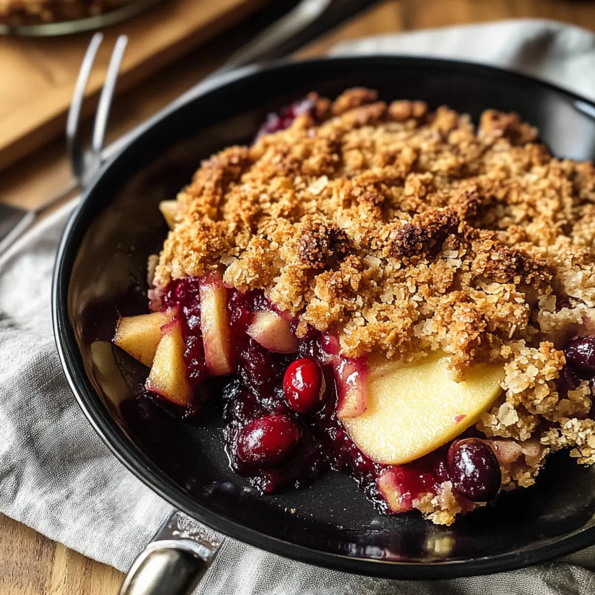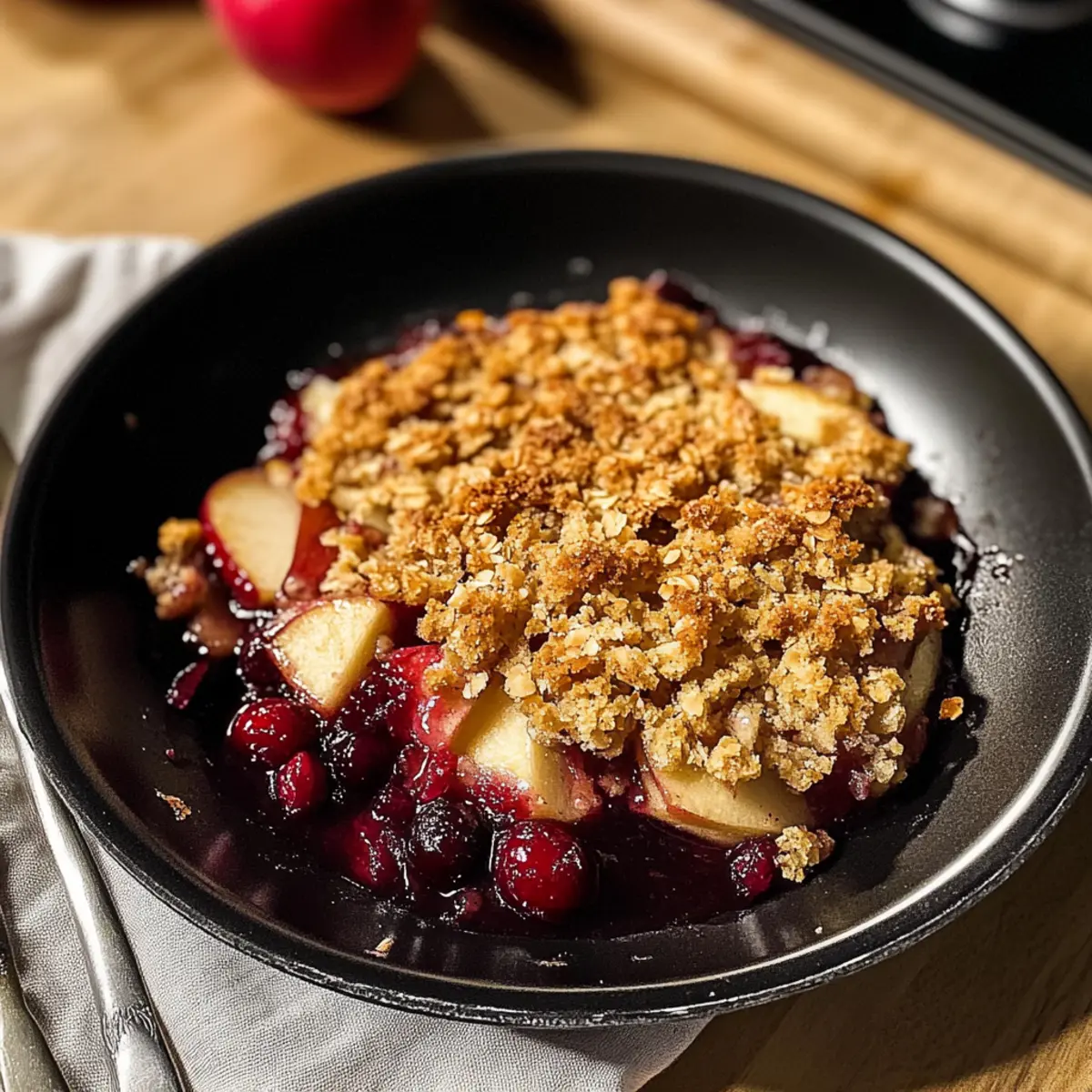 Genieße einen köstlichen Apfel-Brombeer-Crisp, ideal für Herbstabende, einfach zuzubereiten und ein wahres Komfortessen.