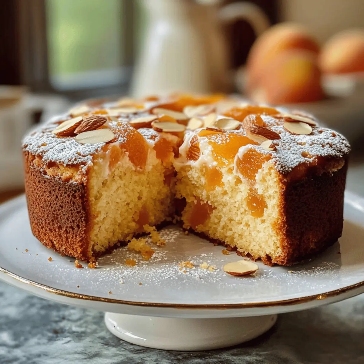 Ein köstlicher Aprikosenkuchen mit Mandeln, der den Duft des Sommers in deine Küche bringt. Perfekt für jede Kaffeerunde.