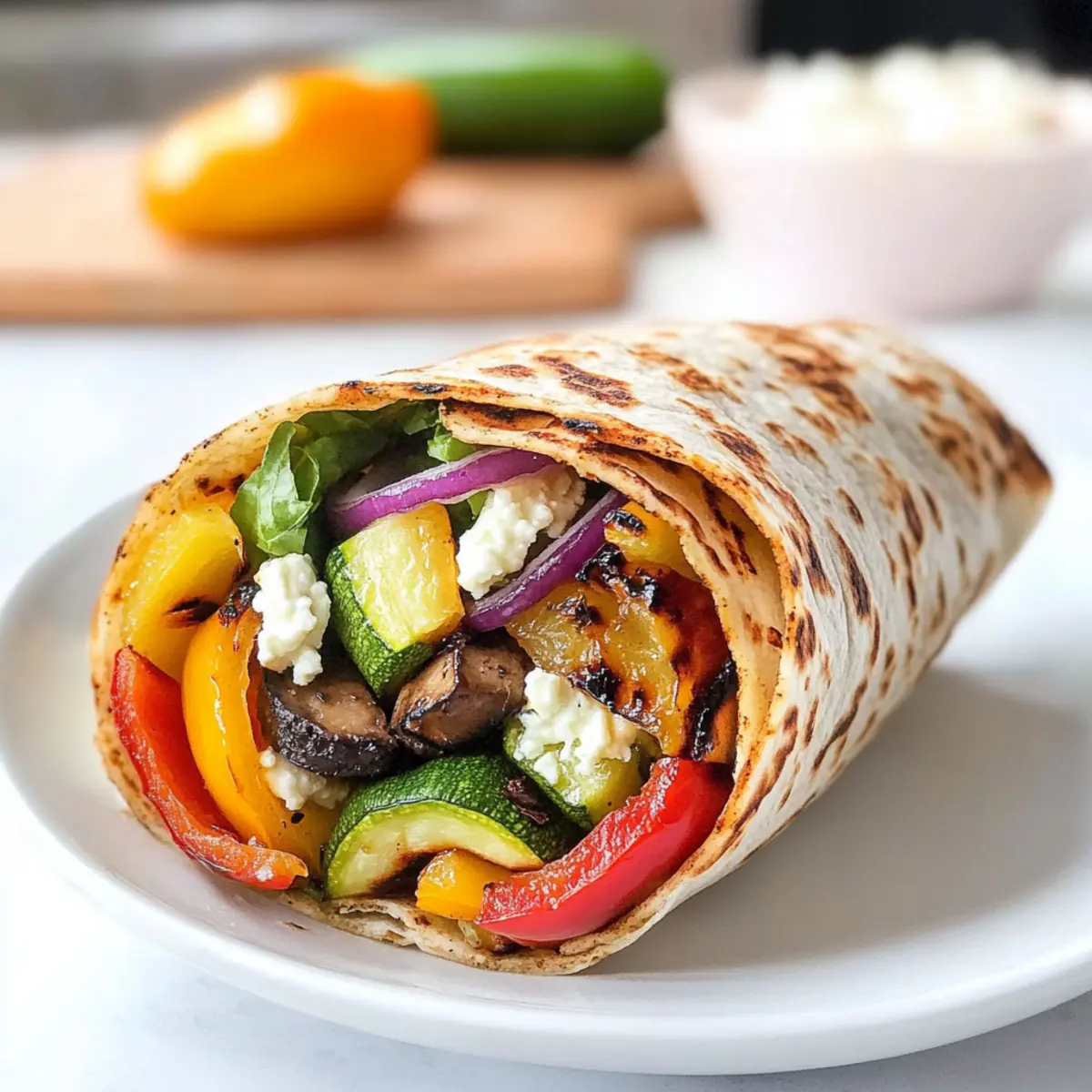 Die Sonne scheint durch das Küchenfenster, während ich die bunten Gemüsesorten aus meinem Kühlschrank hole. Auf der Suche nach einer schnellen und gesunden Mahlzeit, die nicht nur mich, sondern auch meine Familie begeistert, stoße ich auf das perfekte Rezept: den Balsamico gegrillten Gemüse Wrap. Diese köstliche Kombination aus balsamico-mariniertem Gemüse, cremigem Ziegenkäse und geschmeidigem Hummus bietet eine wunderbare Abwechslung zu schnellem Essen und ist ideal für geschäftige Mittagspausen oder entspannte Abendessen. Die Zubereitung ist zudem ein Kinderspiel – in kürzester Zeit zauberst du ein nahrhaftes und geschmackvolles Gericht, das alle lieben werden. Lust auf den ersten Biss? Lass uns gemeinsam in die Welt der gesunden Wraps eintauchen! Warum ist dieser Gemüse Wrap so besonders? Einfachheit: Die Zubereitung des Balsamico gegrillten Gemüse Wrap ist ein Kinderspiel und benötigt nur grundlegende Kochfähigkeiten. Vielseitig: Dieser Wrap lässt sich nach Belieben anpassen – füge dein Lieblingsgemüse oder Proteine hinzu, um ihn nach deinem Geschmack zu gestalten. Aromatische Fülle: Die Kombination aus balsamico-marinierten, gegrillten Gemüsesorten und cremigem Ziegenkäse liefert einen intensiven Geschmack, der begeistert. Gesund und sättigend: Dieser Wrap ist nicht nur lecker, sondern auch nahrhaft und enthält viele Ballaststoffe und Proteine. Perfekt für jede Mahlzeit: Ob als schnelles Mittagessen oder entspanntes Abendessen – dieser Wrap eignet sich hervorragend für jede Gelegenheit. Probiere auch andere Variationen wie Spinach-Feta Wraps. Balsamico Gegrilltes Gemüse Wrap Zutaten Mit diesen Zutaten wird dein Wrap besonders lecker! Für die Marinade Olivenöl – sorgt für gesunde Fette und perfekt marinierte Gemüse. Verwende extra natives Öl für den besten Geschmack. Balsamico Essig – verleiht der Marinade eine angenehme Säure. Kann bei Bedarf auch durch Rotweinessig ersetzt werden. Knoblauch – bringt ein aromatisches Flair in die Marinade. Frisch gehackt ist am besten, aber Knoblauchpulver funktioniert auch. Getrockneter Rosmarin – fügt einen erdigen Geschmack hinzu; frischer Rosmarin ist ideal für ein frisches Aroma. Salz & Pfeffer – verstärken den Gesamtgeschmack des Gerichts. Nach Belieben anpassen. Für den Wrap Paprika – bringt Süße und Farbe ins Spiel. Jede Farbe ist möglich; wähle deinen Favoriten! Zucchini – sorgt für milden Geschmack und zarte Textur. Gelbe Zucchini kann ebenfalls verwendet werden. Rote Zwiebel – bietet eine leichte Schärfe; kann durch weiße oder gelbe Zwiebeln ersetzt werden für einen milderen Geschmack. Champignons – fügen Umami und eine fleischige Textur hinzu. Jede Sorte, wie z. B. Cremini oder Portobello, passt hervorragend. Ziegenkäse – sorgt für Cremigkeit und eine feine Säure; kann bei Bedarf durch Feta oder Ricotta ersetzt werden. Hummus – verleiht dem Wrap Extra-Cremigkeit und Protein. Jede Geschmacksrichtung, wie gerösteter Knoblauch oder Paprika, funktioniert gut. Vollkorn-Tortillas – bilden die Grundlage für den Wrap. Glutenfreie Tortillas können für eine glutenfreie Option verwendet werden. Jeder Biss dieses Balsamico gegrillten Gemüse Wraps ist eine Explosion von Geschmack und Textur! Schritt-für-Schritt-Anleitung für Balsamico gegrilltes Gemüse Wrap Step 1: Gemüse marinieren Schlage in einer Schüssel Olivenöl, Balsamico-Essig, Knoblauch, Rosmarin, Salz und Pfeffer zusammen. Füge die gewaschenen und geschnittenen Paprika, Zucchini, rote Zwiebel und Champignons hinzu. Tossiere alles gut, bis das Gemüse gleichmäßig mariniert ist. Decke die Schüssel ab und lasse sie 30 Minuten bis zu 8 Stunden im Kühlschrank ziehen, damit die Aromen gut einziehen können. Step 2: Gemüse grillen Heize deinen Grill oder eine Grillpfanne auf mittelhohe Temperatur vor. Lege das marinierte Gemüse auf den Grill und grille es 8 bis 12 Minuten lang, wobei du es gelegentlich wendest, bis es zart und leicht angebraten ist. Achte darauf, dass es schön gebräunt ist, damit du die köstlichen Grillmarken erhältst. Step 3: Wraps zusammenstellen Verteile eine großzügige Menge Hummus in der Mitte jeder Tortilla und streue dann den Ziegenkäse darüber. Wenn du magst, kannst du auch einige Blätter frischen Spinat oder andere grüne Blätter hinzufügen. Lege die gegrillten Gemüse großzügig auf den Hummus und den Käse, sodass die Füllung gleichmäßig verteilt ist. Step 4: Tortilla falten Falte die unteren und oberen Ränder der Tortilla über die Füllung und drehe sie dann so, dass die offene Seite dir zugewandt ist. Rolle die Tortilla fest von unten auf, um den Wrap zu schließen. Schneide den Wrap in der Mitte durch, damit er einfach zu essen ist und die Füllung nicht herausfällt. Step 5: Servieren und genießen Serviere deinen Balsamico gegrillten Gemüse Wrap sofort mit einer Beilage aus frischem Obst oder einem leichten Salat. Die knusprige Tortilla, die zarten gegrillten Gemüsesorten und der cremige Ziegenkäse sorgen für ein unvergessliches Geschmackserlebnis, das perfekt geeignet ist für eine schnelle und gesunde Mahlzeit. Aufbewahrungstipps für Balsamico gegrilltes Gemüse Wrap Kühlschrank: Lagere Reste des Balsamico gegrillten Gemüse Wrap in einem luftdichten Behälter für bis zu 2 Tage. So bleibt der Geschmack frisch und lecker. Tiefkühler: Um die Wraps bis zu 3 Monate aufzubewahren, wickel sie in Alufolie und lege sie in einen gefriergeeigneten Behälter. So bleiben sie schmackhaft und sind immer einsatzbereit. Wiederehitzen: Zum Wiedererwärmen den Wrap in der Mikrowelle für 1-2 Minuten auf höchster Stufe erhitzen oder im vorgeheizten Ofen bei 180°C für etwa 10-15 Minuten backen, bis er warm und knusprig ist. Kälte vermeiden: Vermeide es, den Wrap bei Raumtemperatur länger liegen zu lassen, um die Frische und Qualität der Zutaten zu bewahren. Perfekte Vorbereitung für deinen Balsamico gegrillten Gemüse Wrap Die Vorbereitung des Balsamico g