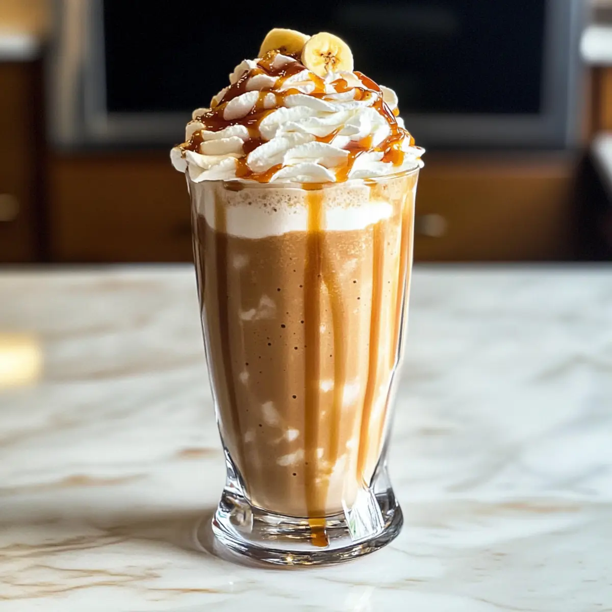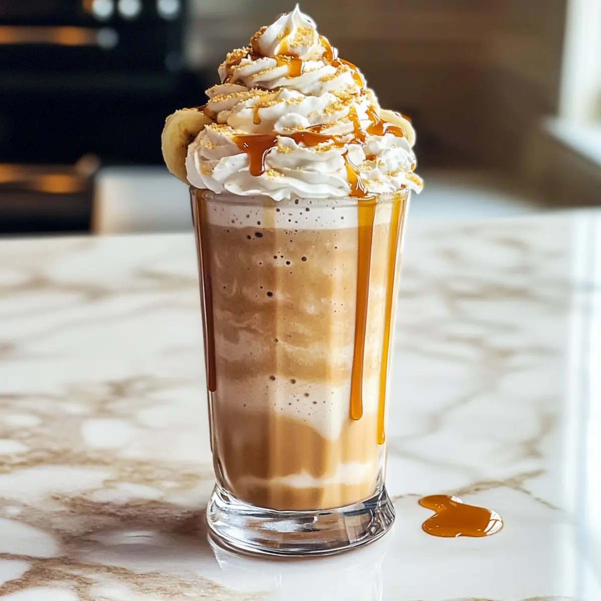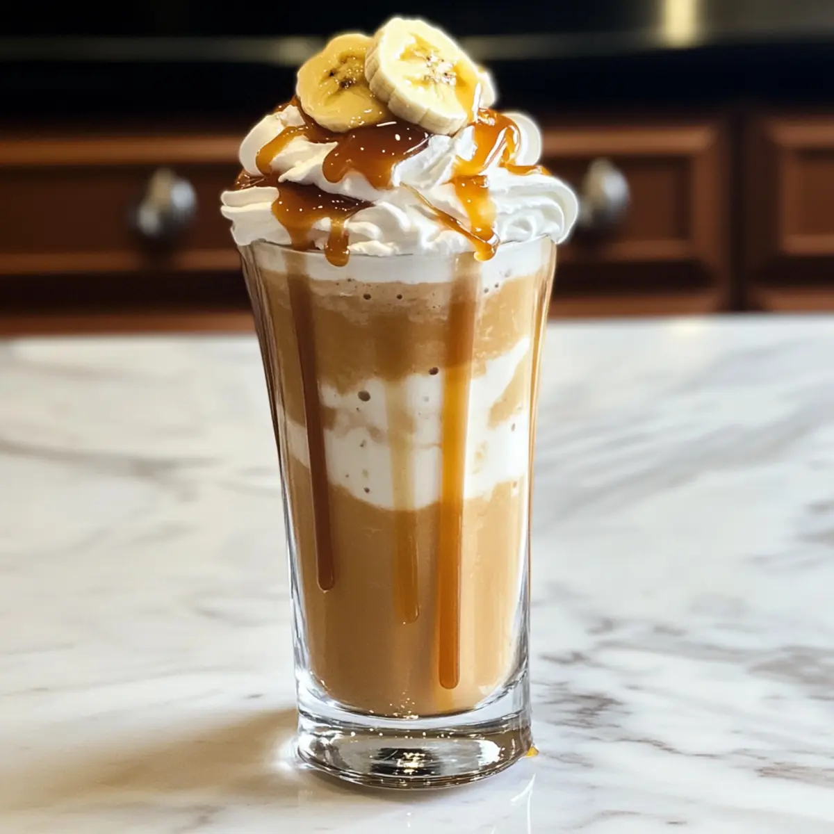 Wenn ich an die warmen Sommertage denke, kommt mir sofort der Bild vor, wie ich an einem schattigen Platz sitze und einen erfrischenden Bananen-Karamell-Frappé genieße. Dieser cremige, köstliche Drink ist nicht nur einfach in nur fünf Minuten zubereitet, sondern überrascht auch mit seiner Vielseitigkeit, denn du kannst ihn ganz nach deinem Geschmack anpassen! Ob du frische oder gefrorene Bananen verwendest, ganz gleich – er ist ein echter Genuss und perfekt für alle, die auf der Suche nach einer gesunden, aber dennoch süßen Erfrischung sind. Egal ob als Snack nach dem Sport oder einfach als kleiner Leckerbissen an einem heißen Tag, dieser Frappé ist der ideale Begleiter. Neugierig, wie du ihn ganz einfach selbst zubereiten kannst? Dann lass uns gleich loslegen! Warum ist dieser Bananen-Karamell-Frappé besonders? Schnell und einfach: In nur 5 Minuten zauberst du einen luxuriösen Frappé, der einfacher nicht sein könnte. Vielseitigkeit: Anpassbar nach Belieben! Ob frische oder gefrorene Bananen – du entscheidest! Gesunde Erfrischung: Mit natürlichen Zutaten bleibt dieser Frappé leicht und lecker, ideal für heiße Sommertage. Köstlicher Geschmack: Die harmonische Kombination aus Banane und Karamell sorgt für ein unwiderstehliches Geschmackserlebnis, das sowohl Kinder als auch Erwachsene begeistert. Perfekte Textur: Cremig, dick und mit einem Hauch von Süße – ein Erlebnis wie in deinem Lieblingscafé, direkt bei dir zu Hause. Für weitere köstliche Ideen, schau dir auch unseren Artikel über leichtes Frappé-Rezept für den Sommer an! Bananen-Karamell-Frappé Zutaten Für den Frappé Reife Banane – Eine natürliche Verdickung und cremige Basis, frische oder gefrorene Bananen sind möglich. Kaltes Milch – Gibt eine glatte Grundlage; pflanzliche Milch eignet sich hervorragend für eine milchfreie Variante. Eiswürfel – Kühlt das Getränk und sorgt für eine schaumige Textur; kann durch mehr gefrorenes Obst ersetzt werden. Karamellsauce – Fügt süße und reichhaltigen Geschmack hinzu; eine zuckerfreie Version kann ebenfalls verwendet werden. Zucker (optional) – Verstärkt die Süße; je nach Vorliebe anpassen. Vanilleextrakt – Für mehr Geschmacksdimensionen; kann weggelassen werden, wenn gewünscht. Schlagsahne (zum Garnieren) – Sorgt für eine leichte und luftige Note; optional für eine leichtere Variante. Entdecke die Welt des köstlichen Bananen-Karamell-Frappés und genieße es, ganz nach deinem Geschmack zuzubereiten! Schritt-für-Schritt-Anleitung für Bananen-Karamell-Frappé Step 1: Banane vorbereiten Schneide die reife Banane in kleine Stücke, damit sie leichter im Mixer püriert werden kann. Verwende gegebenenfalls eine gefrorene Banane, um dem Frappé eine dickere Konsistenz zu verleihen. Lege die geschnittenen Bananenstücke bereit, während du die anderen Zutaten vorbereitest. Step 2: Zutaten in den Mixer geben Gib die Bananenstücke zusammen mit 240 ml kalter Milch in den Mixer. Füge dann 240 ml Eiswürfel, 30 ml Karamellsauce, 15 g Zucker (optional) und ½ Teelöffel Vanilleextrakt hinzu. Stelle sicher, dass alle Zutaten gut verteilt sind, um ein gleichmäßiges Ergebnis zu erzielen. Step 3: Mischen und pürieren Vermische die Zutaten im Mixer auf hoher Stufe für etwa 30 bis 45 Sekunden, bis die Mischung glatt und cremig ist. Achte darauf, die Konsistenz regelmäßig zu überprüfen; sie sollte dick und schaumig sein, ähnlich wie ein Milchshake. Je nach gewünschter Dicke kannst du bei Bedarf zusätzlich Eis hinzufügen. Step 4: Servieren und garnieren Gieße den cremigen Bananen-Karamell-Frappé in ein Glas, bis es fast voll ist. Für einen luxuriösen Touch kannst du nun Schlagsahne auf die Oberfläche geben und etwas zusätzliche Karamellsauce darüber träufeln. Sieht großartig aus und schmeckt noch besser! Der Bananen-Karamell-Frappé für die einfache Vorbereitung Der Bananen-Karamell-Frappé ist perfekt für die Meal Prep und kann spielend leicht im Voraus zubereitet werden! Du kannst die reife Banane bis 24 Stunden im Voraus schneiden und in einem luftdichten Behälter im Kühlschrank aufbewahren – das verhindert das Bräunen und sorgt dafür, dass sie frisch bleibt. Ebenso kannst du die kalte Milch und die Karamellsauce bereits abgemessen bereitstellen. Wenn es dann Zeit ist, deinen Frappé zu genießen, gib einfach die vorbereiteten Zutaten in den Mixer, füge die Eiswürfel hinzu und püriere alles für etwa 30-45 Sekunden. So hast du mit minimalem Aufwand einen köstlichen, cremigen Frappé, der immer so lecker schmeckt wie frisch zubereitet! Expertentipps für Bananen-Karamell-Frappé Banane vorbereiten: Verwende eine reife Banane, um die ideale Süße und Cremigkeit zu erzielen. Eine gefrorene Banane sorgt für eine dickere Textur. Milchalternative: Probiere pflanzliche Milch wie Mandel- oder Hafermilch für eine cremige und milchfreie Version. Das verleiht dem Frappé eine zusätzliche Geschmacksdimension. Süßung anpassen: Beginne mit weniger Zucker und Karamellsauce. Du kannst jederzeit mehr hinzufügen, um deinen perfekten Bananen-Karamell-Frappé zu kreieren. Variationen erkunden: Füge ¼ Tasse kalten Kaffee hinzu, um eine mocha-artige Note zu erhalten. Oder experimentiere mit anderen Früchten wie Erdbeeren für einen fruchtigen Twist. Frisch genießen: Der Frappé schmeckt am besten sofort nach der Zubereitung. Falls du ihn im Kühlschrank aufbewahren musst, rühre ihn vor dem Servieren gut durch oder püriere ihn erneut. Einfach dekorieren: Verleihe deinem Bananen-Karamell-Frappé mit etwas Schlagsahne und einer zusätzlichen Karamellsauce eine elegante Note und mache es zum Blickfang! Was passt zum Bananen-Karamell-Frappé? Erlebe eine harmonische Kombination, die dein Geschmackserlebnis auf ein neues Level hebt und deine Gäste beeindrucken wird. Cremige Vanille-Eiscreme: Ein wunderbar süßer Begleiter, der die Textur des Frappés unterstreicht und jedes Schlückchen verfeinert. Frische Erdbeeren: Die 