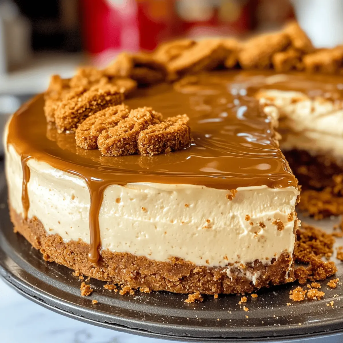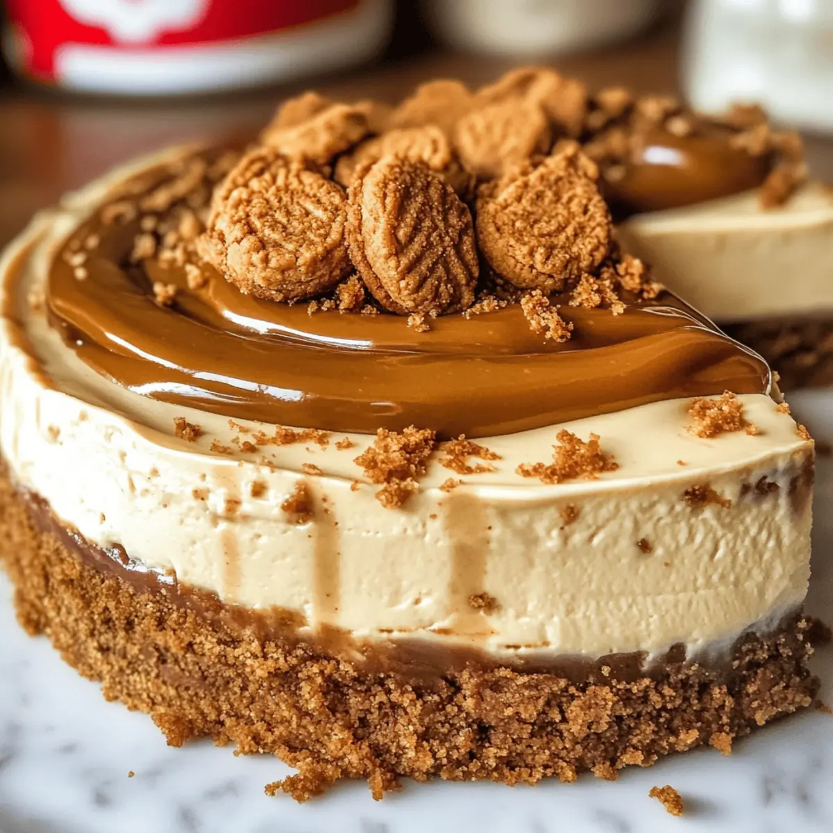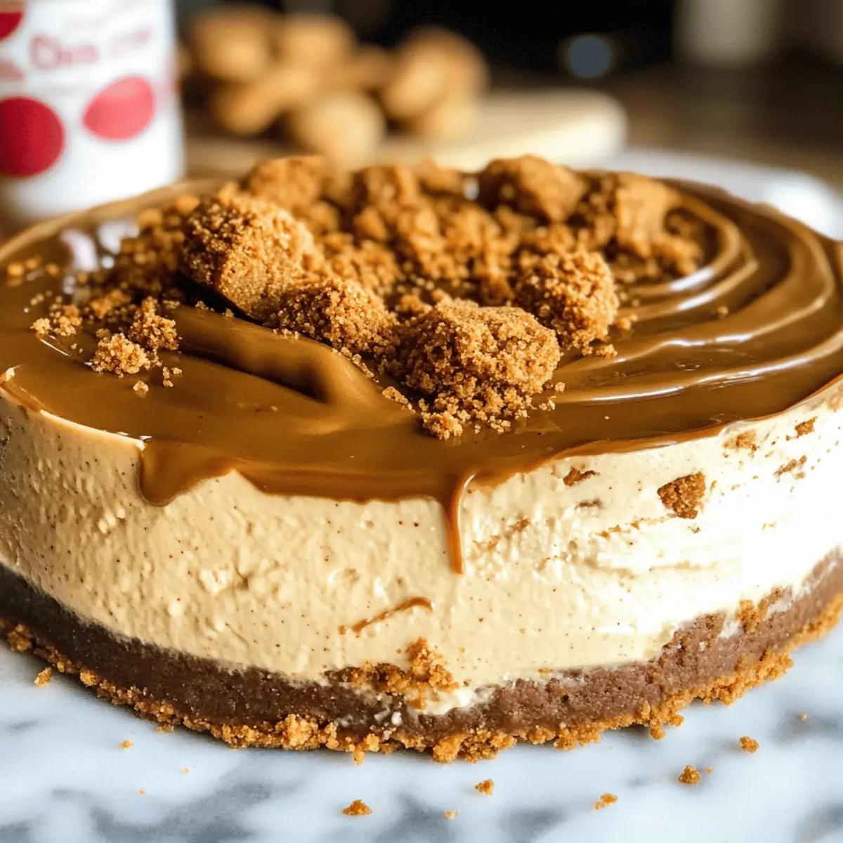 Das erste Mal, als ich einen Bissen von diesem himmlischen Biscoff Käsekuchen nahm, fühlte ich mich wie in einer kulinarischen Zeitreise in die Magie eines gemütlichen Cafés. Diese Leckerei kombiniert eine wunderbar cremige Textur mit dem unverwechselbaren, gewürzten Geschmack der Biscoff-Kekse, der jede Dessertliebhaberin und jeden Dessertliebhaber begeistert. Der knusprige Boden aus Biscoff-Keksen sorgt für den perfekten Kontrast zur geschmeidigen Füllung, während die glänzende Schicht aus geschmolzenem Biscoff-Spread und zerkrümelten Keksen das Ganze krönt. Dieses einfache Dessert ist nicht nur ein echter Hingucker bei jedem Treffen, sondern auch ein Genuss, der jeden Bissen zu einem besonderen Moment macht. Warum sich mit dem Gewöhnlichen zufrieden geben, wenn man diese köstliche Kreation zaubern kann? Neugierig, wie man diesen Biscoff Käsekuchen selbst zubereitet? Lass uns gemeinsam in die Welt der Gebäcke eintauchen! Warum wird dieser Biscoff Käsekuchen geliebt? Einzigartig und unwiderstehlich: Dieser Biscoff Käsekuchen vereint das Beste aus cremigem Käsekuchen und dem würzigen Geschmack der Biscoff-Kekse. Einfach zuzubereiten: Perfekt für alle, die nicht viel Zeit in der Küche verbringen möchten. Mit einfachen Zutaten gelingt er im Handumdrehen. Zuschauerliebling: Durch seine beeindruckende Optik und den köstlichen Geschmack zieht er garantiert alle Blicke auf sich! Vielseitige Optionen: Probiere verschiedene Keksvariationen oder füge zusätzliche Aromen hinzu, um ihn immer wieder neu zu gestalten. Ideal zum Vorbereiten: Er lässt sich problemlos am Tag zuvor zubereiten, was ihn zu einer praktischen Wahl für gesellige Runden macht. Menschen lieben es, diesen Käsekuchen zu teilen, was ihn zum perfekten Dessert für jedes Gathering macht! Biscoff Käsekuchen Zutaten Tip: Diese Zutaten ergeben einen köstlichen Biscoff Käsekuchen, der jeder Feier ein besonderes Highlight verleiht! Für den Boden Biscoff-Kekse – das Hauptbestandteil für den knusprigen Boden; alternative Kekse wie Graham Crackers können verwendet werden. Ungesalzene Butter – bindet die Kekskrümel; gesalzene Butter ist ebenfalls möglich, reduzieren Sie dann die Menge an zusätzlichem Salz. Für die Füllung Frischkäse – sorgt für die cremige Struktur; unbedingt auf Zimmertemperatur bringen, um das Mischen zu erleichtern. Brauner Zucker – fügt eine angenehme Süße und Tiefe hinzu; verwenden Sie hellen oder dunklen Zucker je nach Vorliebe. Zucker – balanciert die Süße; passen Sie die Menge je nach Geschmack an. Sauerrahm – erhöht die Cremigkeit und sorgt für einen leichten, säuerlichen Geschmack; kann auch durch griechischen Joghurt ersetzt werden. Biscoff-Kekse-Butter – bringt zusätzlichen Geschmack und Cremigkeit; wählen Sie zwischen glatter oder stückiger Variante. Vanilleextrakt – verbessert den Geschmack; verwenden Sie reinen Vanilleextrakt für beste Ergebnisse. Salz – balanciert die Aromen; ist auch in süßen Gerichten unerlässlich. Große Eier – geben Struktur; verwenden Sie Zimmertemperatur-Eier für ein besseres Mischen. Für das Topping Biscoff-Aufstrich (zum Drizzlen) – sorgt für eine dekorative und geschmackliche Ergänzung; vorher schmelzen, um das Enträufeln zu erleichtern. Zusätzlich zerbröselte Biscoff-Kekse – für eine schöne Präsentation rund um die Topping-Dekoration. Schritt-für-Schritt-Anleitung für Biscoff Käsekuchen Schritt 1: Boden vorbereiten Heizen Sie den Ofen auf 160 °C vor. Zerbröseln Sie die Biscoff-Kekse mit einer Küchenmaschine, bis feine Krümel entstehen. Mischen Sie die Kekskrümel gründlich mit der geschmolzenen Butter und drücken Sie die Mischung fest in den Boden einer Springform. Backen Sie den Boden für 10 Minuten, bis er leicht goldbraun ist, und lassen Sie ihn dann abkühlen. Schritt 2: Käsekuchenfüllung zubereiten Schlagen Sie den weichen Frischkäse mit einem Handmixer für etwa 3 Minuten, bis eine glatte Masse entsteht. Fügen Sie den braunen Zucker und den Granulated Sugar hinzu und schlagen Sie weiter für 2 Minuten. Geben Sie den Sauerrahm und die Biscoff-Kekse-Butter dazu und vermengen Sie alles gut. Jetzt kommen Vanilleextrakt, Salz und die Eier nach und nach hinzu; mixen Sie alles, bis es gerade so kombiniert ist. Schritt 3: Käsekuchen backen Gießen Sie die Käsekuchenfüllung vorsichtig auf den abgekühlten Keksboden. Wickeln Sie den Boden der Springform in Aluminiumfolie und stellen Sie ihn in eine Auflaufform mit heißem Wasser. Backen Sie den Käsekuchen etwa 60 bis 70 Minuten, bis die Ränder fest sind, aber die Mitte leicht wackelt. Schalten Sie den Ofen aus und lassen Sie den Biscoff Käsekuchen eine Stunde lang im Ofen abkühlen. Schritt 4: Kühlen und Servieren Kühlen Sie den Käsekuchen für mindestens 6 Stunden im Kühlschrank, damit er fest wird. Vor dem Servieren schmelzen Sie den Biscoff-Aufstrich und träufeln ihn über den Käsekuchen. Streuen Sie die zerbröselten Biscoff-Kekse rund um den Rand für eine ansprechende Präsentation. Biscoff Käsekuchen im Voraus zubereiten Der Biscoff Käsekuchen ist ideal für die Vorbereitung im Voraus, was viel Zeit an einem hektischen Abend spart! Sie können die Kruste aus Biscoff-Keksen und Butter bis zu 24 Stunden im Voraus zubereiten und im Kühlschrank aufbewahren, um sie frisch zu halten. Die Füllung lässt sich ebenfalls vorbereiten: Mixen Sie den Frischkäse und die anderen Zutaten, füllen Sie sie in die Springform und stellen Sie den Käsekuchen bis zu 3 Tage vor dem Servieren in den Kühlschrank. Achten Sie darauf, die Springform gut abzudecken, um Austrocknen zu verhindern. Wenn er servierbereit ist, einfach den Biscoff-Aufstrich schmelzen und darüberträufeln, bevor Sie die zerbröselten Kekse hinzufügen. So bleibt Ihr Biscoff Käsekuchen ebenso lecker wie frisch! Expertentipps für Biscoff Käsekuchen Zimmertemperatur Frischkäse: Achten Sie darauf, dass Ihr Frischkäse Zimmertemperatur hat, um eine glatte und klu