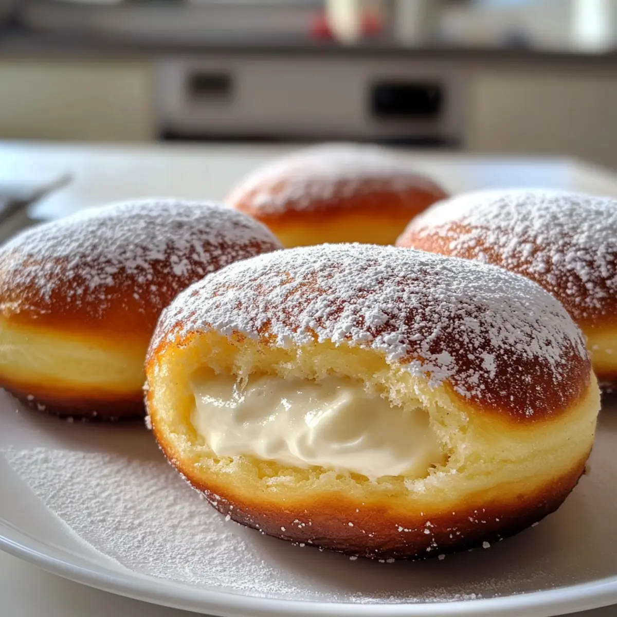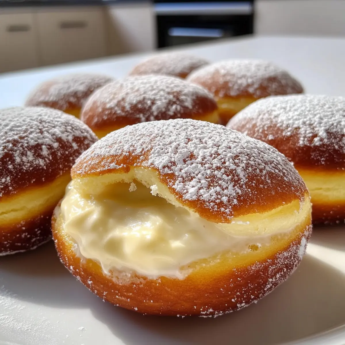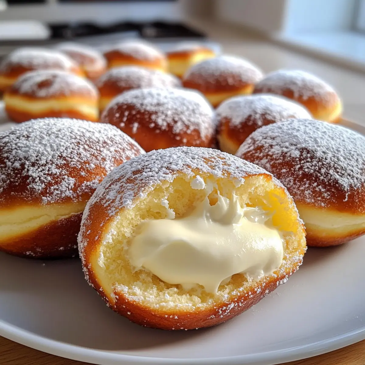 Hast du je den verführerischen Duft von frisch gebackenen Donuts in der Luft schnuppern können? Diese Bomboloni Cream Donuts aus Italien sind nicht nur ein Fest für die Sinne, sondern auch ein absolutes Must-Try für alle, die das Kochen lieben. Mit ihrer luftig-leichte Textur und einer köstlichen Cremefüllung sind sie das perfekte Dessert für jeden Anlass oder einfach nur zum Verwöhnen an einem gemütlichen Sonntag. Die Zubereitung ist überraschend einfach, und du wirst garantiert alle damit beeindrucken – egal, ob bei einer Feier oder einem entspannten Nachmittagsessen. Wer kann da schon widerstehen? Lass uns gemeinsam in die Kunst des Donuts backens eintauchen und herausfinden, wie du diese italienischen Klassiker ganz leicht selbst zaubern kannst! Warum wirst du diese Bomboloni lieben? Einzigartig und köstlich: Diese Bomboloni Cream Donuts bringen den authentischen Geschmack Italiens direkt in deine Küche. Einfach zubereitet: Die Schritt-für-Schritt-Anleitung macht es dir leicht, auch wenn du kein Profi bist. Vielseitige Füllungen: Mit verschiedenen Füllmöglichkeiten wie frischer Sahne oder Marmelade kannst du kreativ werden! Perfekt für jeden Anlass: Egal, ob zum Brunch oder als Dessert, diese Donuts kommen immer gut an. Probiere auch unsere anderen italienischen Desserts für mehr Inspiration! Bomboloni Cream Donuts Zutaten Für den Teig Allzweckmehl – Basis für die Bomboloni, sorgt für die fluffige Textur. Substitution: Glutenfreies Mehl kann verwendet werden, aber die Konsistenz wird variieren. Aktive Trockenhefe – Lässt den Teig aufgehen und sorgt für luftige Donuts. Hinweis: Achte darauf, dass die Hefe frisch ist für optimale Ergebnisse. Zucker – Fügt Süße hinzu und aktiviert die Hefe. Substitution: Kokoszucker ist eine gesündere Alternative mit niedrigem glykämischen Index. Salz – Verstärkt den Geschmack und reguliert die Hefefermentation. Keine Substitutionen empfohlen. Eier – Bringen Reichtum und Struktur in den Teig. Substitution: Flax-Eier für eine vegane Variante. Butter (geschmolzen) – Verleiht Geschmack und Zartheit. Substitution: Verwende Pflanzenöl für eine milchfreie Option. Milch – Hydriert den Teig und fügt Geschmack hinzu. Substitution: Mandel- oder Sojamilch kann für eine pflanzliche Version verwendet werden. Für die Füllung Puddingcreme – Sorgt für die süße, cremige Füllung. Alternativen: Schlagsahne oder Schokoladenganache für andere Geschmäcker. Puderzucker – Zum Bestäuben, fügt zusätzliche Süße hinzu. Keine Substitutionen nötig. Step-by-Step Instructions for Saftige Bomboloni Cream Donuts Step 1: Hefe aktivieren Erhitze die Milch auf etwa 37°C und seihe sie in eine Schüssel. Füge die aktive Trockenhefe hinzu und lasse das Gemisch 5 Minuten ruhen, bis es schäumt. Dies signalisiert, dass die Hefe aktiv ist und bereit, deinen Bomboloni Cream Donuts eine fluffige Textur zu verleihen. Step 2: Trockene Zutaten mischen In einer großen Schüssel mischst du das Allzweckmehl, den Zucker und das Salz gründlich. Diese Basis ist entscheidend für die Struktur deiner Bomboloni. Sorge dafür, dass alles gut vermischt ist, bevor du zur nächsten Stufe übergehst. Step 3: Zutaten kombinieren Füge das Hefegemisch sowie die Eier und die geschmolzene Butter zu den trockenen Zutaten hinzu. Mit einem Holzlöffel oder einer Küchenmaschine vermengst du alles, bis ein klebriger Teig entsteht. Dies ist der Moment, in dem sich die Zutaten zu einem geschmeidigen Teig verbinden. Step 4: Teig kneten Streue etwas Mehl auf eine saubere Arbeitsfläche und wende den Teig darauf. Knete den Teig für etwa 10 Minuten, bis er elastisch und glatt ist. Visuell wird er sich vom Tisch lösen und eine schöne, gleichmäßige Textur erhalten, perfekt für deine Bomboloni Cream Donuts. Step 5: Erste Gehzeit Lege den gekneteten Teig in eine leicht geölte Schüssel und decke ihn mit einem feuchten Tuch ab. Stelle die Schüssel an einen warmen Ort und lasse den Teig etwa 1 Stunde gehen, bis er sich verdoppelt hat. Dies ist entscheidend, um die Luftigkeit zu erzielen, die diese Donuts so besonders macht. Step 6: Donuts formen Nachdem der Teig aufgegangen ist, drücke ihn leicht zusammen und rolle ihn auf eine Dicke von etwa 1,3 cm aus. Verwende einen Ausstecher, um Kreise auszuschneiden, und lege die geschnittenen Formen auf ein mit Backpapier belegtes Blech. Lasse diese für weitere 30 Minuten ruhen, damit sie aufgehen. Step 7: Donuts frittieren Erhitze in einem großen Topf das Öl auf 175°C. Frittiere die Donuts in kleinen Portionen für 2-3 Minuten pro Seite, bis sie goldbraun sind. Achte darauf, das Öl nicht zu überfüllen, um gleichmäßige Garung zu gewährleisten und eine perfekte Oberfläche für deine Bomboloni Cream Donuts zu erreichen. Step 8: Füllen und Servieren Lasse die Donuts leicht abkühlen, bevor du sie mit der Puddingcreme füllst. Verwende einen Spritzbeutel mit einer dünnen Tülle, um die Füllung in die Donuts zu spritzen. Bestäube sie großzügig mit Puderzucker und serviere sie warm, um das volle Aroma und die köstliche, cremige Füllung zu genießen. Lagerungstipps für Bomboloni Cream Donuts Raumtemperatur: Lass die Donuts nach dem Frittieren etwas abkühlen, bevor du sie genießt. Am besten schmecken sie frisch, aber sie können auch bei Raumtemperatur für bis zu 2 Tage aufbewahrt werden. Kühlschrank: Für eine Lagerung im Kühlschrank lege die Donuts in einem luftdichten Behälter, um ein Austrocknen zu verhindern. Sie bleiben dort für bis zu 2 Tage frisch. Gefrierer: Fülle die Donuts erst kurz vor dem Servieren, um optimale Frische zu gewährleisten. Du kannst die ungefüllten Donuts bis zu 2 Monate einfrieren. Aufwärmen: Um die Donuts wiederaufzuwärmen, lege sie für 5-10 Minuten bei 180°C in den Ofen. So bleiben sie luftig und köstlich wie frisch zubereitet. Expertentipps für Bomboloni Cream Donuts Hefe aktivieren: Stelle sicher, dass die Milch nicht zu heiß ist. Temperaturen über 40
