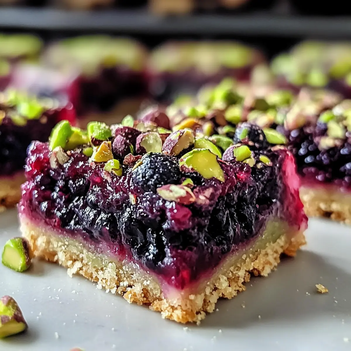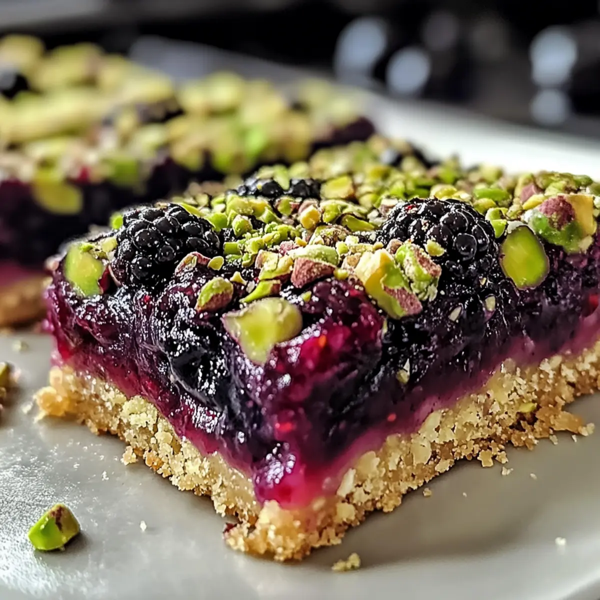 Die kühle Brise des Spätsommers bringt die vermeintliche letzte Ernte der Saison, und da erinnere ich mich an das berauschende Aroma von frischen Brombeeren, die knallrot und saftig am Strauch hängen. In dieser Stimmung präsentiere ich euch meine Brombeer-Pistazien-Traumriegel – ein einfaches, aber umwerfendes Dessert, das ideal für eure nächsten Zusammenkünfte ist. Diese Riegel sind nicht nur ein Genuss für die Sinne, sondern auch glutenfrei und können mit wenigen Anpassungen sogar nutzfreundlich gemacht werden. Wenn ihr nach einem schnellen Rezept sucht, das sowohl eure Gäste begeistert als auch sich perfekt für einen gemütlichen Nachmittag eignet, dann sind diese Riegel genau das Richtige. Seid ihr bereit, eure Kochkünste auf ein neues Level zu heben und euch in eine Welt voller Fruchtigkeit und Nussgeschmack entführen zu lassen? Warum sind diese Riegel so unwiderstehlich? Einfachheit: Die Zubereitung ist kinderleicht und benötigt nur grundlegende Backfähigkeiten, perfekt für Hobbyköche. Fruchtige Frische: Die Kombination aus saftigen Brombeeren und knackigen Pistazien gibt diesen Riegeln eine erfrischende Note, die den Sommer perfekt einfängt. Vielseitigkeit: Diese Riegel sind nicht nur lecker, sondern können auch glutenfrei und nutfrei zubereitet werden, damit wirklich jeder genießen kann. Sie sind ideal für verschiedene Anlässe, sei es eine Familienfeier oder ein entspannter Nachmittag mit Freunden. Zeitersparnis: Mit einer einfachen Schritt-für-Schritt-Anleitung sind diese Dessert-Riegel schnell gebacken, sodass ihr mehr Zeit für eure Gäste habt. Crowd-Pleaser: Ob jung oder alt, jeder wird von der unwiderstehlichen Kombination und dem tollen Aussehen dieser Riegel begeistert sein. Für weitere köstliche Dessertideen, schaut euch auch unser Rezept für Schokoladenkekse an, die perfekt zu diesen Riegeln passen! Brombeer-Pistazien-Traumriegel Zutaten • Für alle, die sich auf eine süße Entdeckung freuen! Für den Boden Allzweckmehl – sorgt für die Struktur des Bodens; kann durch glutenfreies Mehl ersetzt werden. Ungesalzene Butter – verleiht Reichtum und Flakigkeit; kalt und gewürfelt verwenden. Kristallzucker – süßt sowohl den Boden als auch die Füllung; für weniger Süße reduzieren. Salz – hebt die Gesamtgeschmäcker hervor. Großes Eigelb – dient als Binder für einen zarten Boden; das ganze Ei nicht verwenden. Eiskaltes Wasser – hilft beim Mischen, ohne die Butter zu schmelzen; stets kalt verwenden. Für die Brombeerfüllung Frische Brombeeren – die Hauptzutat, die Süße und einen Hauch von Säure bietet; kann durch Himbeeren oder Blaubeeren ersetzt werden. Zitronensaft – intensiviert den Brombeergeschmack; frisch gepressten Saft verwenden. Maisstärke – verdickt die Füllung für die richtige Konsistenz. Für das Pistazien-Topping Leichter brauner Zucker – fügt Feuchtigkeit und Süße hinzu; kann durch Kristallzucker ersetzt werden. Backpulver – sorgt für eine leichte Textur im Topping. Pistazien – verleihen einen nussigen Crunch; können durch Mandeln oder Walnüsse ersetzt oder ganz weggelassen werden. Großes Ei – bindet das Topping; sorgt für eine gute Textur. Vanilleextrakt – sorgt für einen warmen Geschmack, der die Zutaten wunderbar ergänzt. Diese Brombeer-Pistazien-Traumriegel sind nicht nur eine Gaumenfreude, sie sind auch einfach zuzubereiten und perfekt für jede Zusammenkunft! Schritt-für-Schritt-Anleitung für Brombeer-Pistazien-Traumriegel Step 1: Vorbereitung des Bodens Heizen Sie den Ofen auf 175 °C vor. Mischen Sie in einer Schüssel das Allzweckmehl, den Kristallzucker und das Salz. Schneiden Sie die kalte, gewürfelte Butter mit einem Teigmischer oder einer Gabel ein, bis die Mischung krümelig wird. Fügen Sie das Eigelb und das eiskalte Wasser hinzu und vermengen Sie alles, bis ein glatter Teig entsteht. Drücken Sie den Teig in eine gefettete 23×33 cm große Backform und backen Sie ihn 15–20 Minuten lang, bis er goldbraun ist. Step 2: Zubereitung der Brombeerfüllung In einem Topf kombinieren Sie die frischen Brombeeren und den Zucker bei mittlerer Hitze. Kochen Sie die Mischung 5–7 Minuten lang, bis die Säfte austreten und die Früchte weich werden. Rühren Sie nun den frisch gepressten Zitronensaft und die Maisstärke ein und kochen Sie die Mischung weitere 1–2 Minuten, bis sie eindickt. Lassen Sie die Füllung anschließend leicht abkühlen. Step 3: Vorbereitung des Pistazien-Toppings In einer Schüssel mischen Sie den leichten braunen Zucker, das Backpulver und das Mehl. Schneiden Sie die kalte Butter erneut ein, bis die Mischung krümelig ist. Fügen Sie das große Ei und den Vanilleextrakt hinzu und rühren Sie alles gut um. Zum Schluss heben Sie die gehackten Pistazien unter, sodass das Topping gleichmäßig durchzogen wird. Step 4: Zusammenstellen und Backen Gießen Sie die abgekühlte Brombeerfüllung gleichmäßig über den vorgebackenen Boden und verstreichen Sie sie sanft. Streuen Sie das Pistazien-Topping darüber und drücken Sie es leicht an, damit es an der Füllung haftet. Backen Sie die Mischung 30–35 Minuten lang, bis sie goldbraun und blubbrig ist. Step 5: Abkühlen und Schneiden Lassen Sie die Brombeer-Pistazien-Traumriegel in der Form auf einem Kuchengitter 1–2 Stunden abkühlen, bis sie fest sind. Heben Sie die Riegel vorsichtig aus der Form und schneiden Sie sie in gleichmäßige Stücke. Genießen Sie die perfekten Snacks für jede Zusammenkunft! Variationen für Brombeer-Pistazien-Traumriegel Lasst eurer Kreativität beim Backen freien Lauf und probiert diese spannenden Variationen aus, die das Rezept noch interessanter machen! Beerenmix: Tauscht die Brombeeren gegen Blaubeeren, Erdbeeren oder eine Mischung aus verschiedenen Beeren für eine fruchtige Vielfalt. Nussfrei: Lasst die Pistazien weg und ersetzt sie durch Sonnenblumenkerne oder Kürbiskerne für einen crunchy Biss ohne Nüsse. Zitronenfrische: Fügt einen Teelöffel frisch abgeriebene