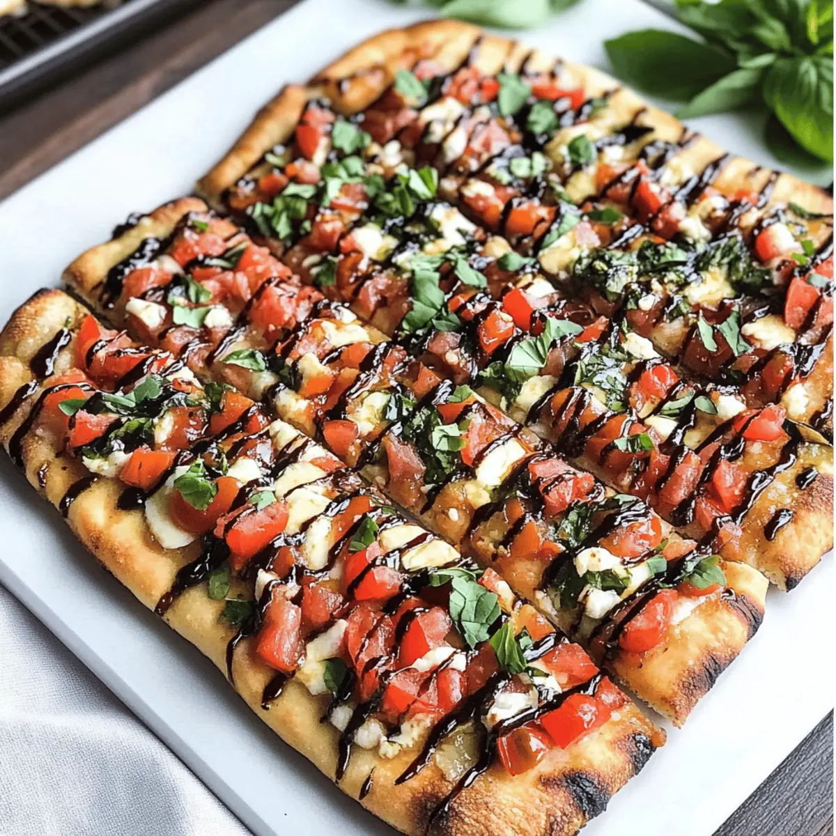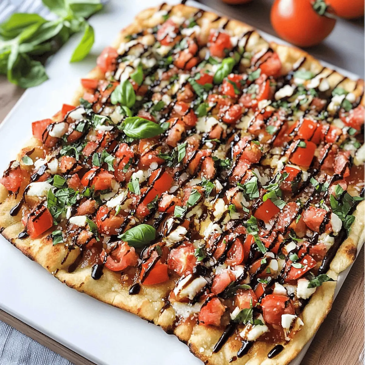 6. Serviere die Bruschetta Fladenbrot Pizza solange sie warm ist, idealerweise mit einem Spritzer Balsamico-Glasur.