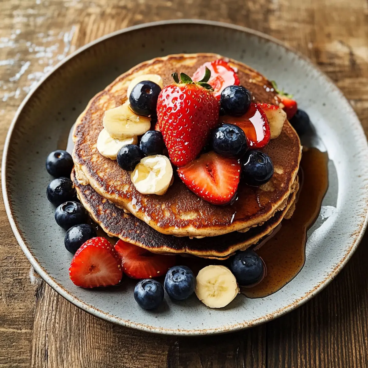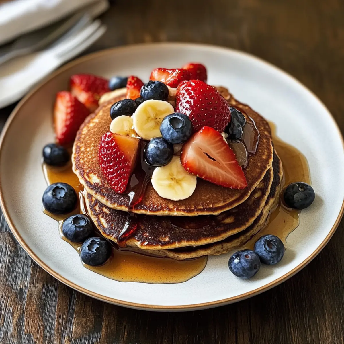• Frische Beeren: Himbeeren, Heidelbeeren oder Erdbeeren bringen eine fruchtige Süße mit, die die nussigen Aromen der Pfannkuchen wunderbar ergänzt. Du kannst sie frisch oder leicht angedünstet servieren.