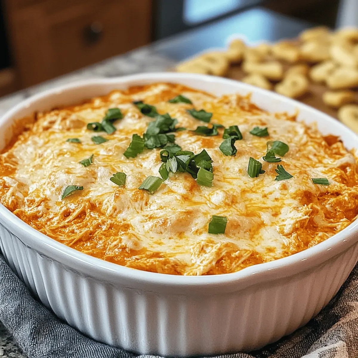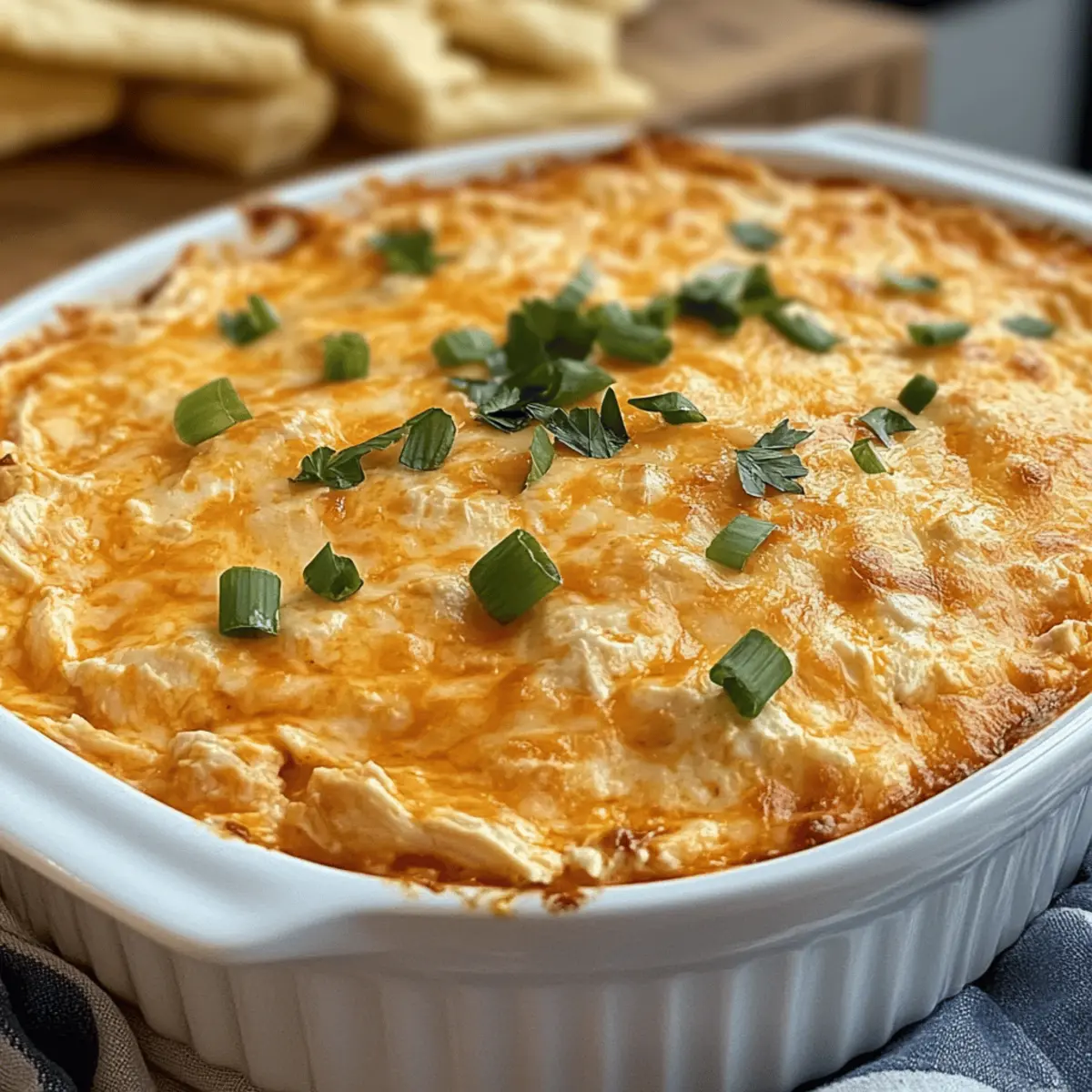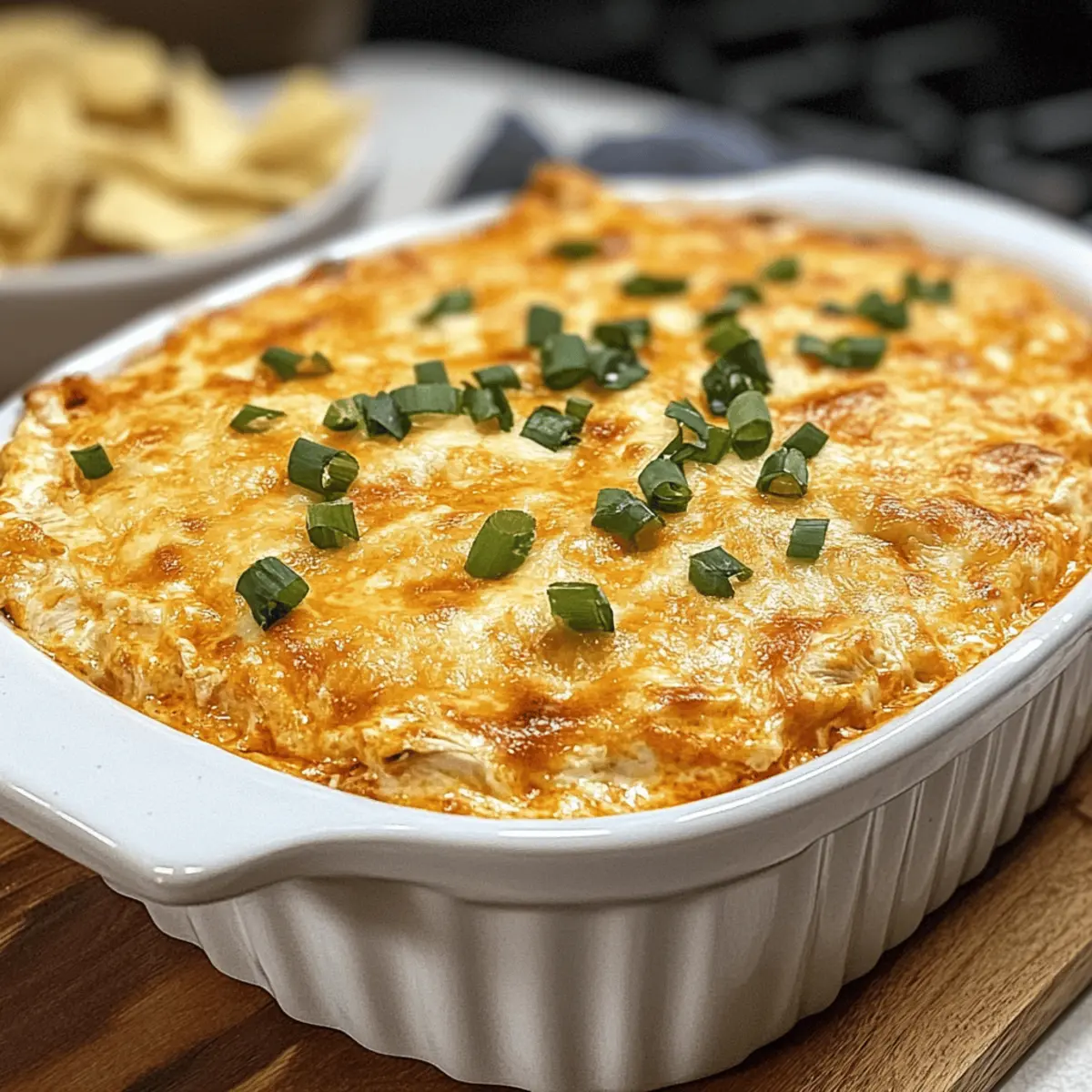 Wenn die Sportsaison anrollt, ist es Zeit, den perfekten Snack für gesellige Abende vorzubereiten! Mein Lieblingsrezept, der Buffalo-Hühnchen-Dip, vereint zarte Hühnerstücke mit einer pikanten Buffalo-Sauce und geschmolzenem Käse zu einem unschlagbaren Geschmackserlebnis. Zu meiner großen Freude ist dieser Dip nicht nur schnell und einfach zuzubereiten, sondern auch ein wahrer Crowd-Pleaser, der bei jedem Treffen für Begeisterung sorgt. Ob bei einem Spieltag, beim Familienessen oder bei einer kleinen Feier – mit diesem Rezept kannst du dich entspannt zurücklehnen und die Gesellschaft genießen. Neugierig, wie du diesen würzigen Hit ganz einfach zum Leben erwecken kannst? Warum wirst du diesen Dip lieben? Einfachheit: Die Zubereitung des Buffalo-Hühnchen-Dips ist kinderleicht und erfordert nur grundlegende Kochfähigkeiten. Vielseitigkeit: Personalisiere ihn mit Variationen wie der Spicy Southwest Version oder dem leckeren BBQ-Hühnchen-Dip, um den Geschmack nach deinem Gusto anzupassen. Aromatische Explosion: Der Mix aus cremigem Käse und der würzigen Buffalo-Sauce sorgt für einen unverwechselbaren Geschmack, der sowohl auf Partys als auch bei Familienessen begeistert. Wahrhaftig gesellig: Als echter Crowd-Pleaser zieht dieser Dip die Aufmerksamkeit deiner Gäste auf sich und macht jedes Treffen unvergesslich. Vorratshaltung: Du kannst ihn im Voraus zubereiten und im Kühlschrank lagern, bereit, bei jeder Gelegenheit serviert zu werden. Werfe auch einen Blick auf meine Tipps für die Aufbewahrung und genieße ihn frisch zubereitet oder aufgetaut! Buffalo-Hühnchen-Dip Zutaten Für den Dip • Zerlassene Butter – Verleiht dem Dip eine köstliche, reichhaltige Basis. • Zerfetztes gekochtes Hähnchen – Fügt Protein und Textur hinzu. Tipp: Verwende für Bequemlichkeit Rotisserie-Hähnchen. • Frischkäse – Sorgt für Cremigkeit und bindet die Mischung. Hinweis: Reduzierte Fettvariante für leichtere Option möglich. • Geriebener Mozzarella-Käse – Bietet eine geschmolzene, dehnbare Textur. Unverzichtbar für die Käse-Persistenz des Dips. • Geriebener Cheddar-Käse – Fügt Schärfe und Geschmack hinzu. Kann durch Monterey Jack für mildere Note ersetzt werden. • Buffalo-Sauce – Liefert die nötige Schärfe und den Geschmack. Variiere die Menge für den gewünschten Schärfegrad; mildere Sauce ist ebenfalls möglich. • Ranch-Dressing oder Blauschimmelkäse-Dressing – Fügt Cremigkeit und eine würzige Note hinzu. Optional; für eine kalorienärmere Version weglassen. • Knoblauchpulver – Verstärkt das Geschmacksprofil. Frischer Knoblauch kann alternativ verwendet werden. • Zwiebelpulver – Fügt Tiefe und Geschmack hinzu. Kann durch fein gehackte frische Zwiebel ersetzt werden. • Eingehackte Frühlingszwiebeln oder Petersilie (optional zur Garnitur) – Sorgt für Frische und visuelle Attraktivität. Jede frische Kräuterart eignet sich als Garnierung. Für die Garnitur • Frischer Koriander oder Schnittlauch – Bringt Farbe und zusätzlichen Geschmack in das Erlebnis. Ein wenig macht einen großen Unterschied! Schritt-für-Schritt-Anleitung für Buffalo-Hühnchen-Dip Step 1: Ofen vorheizen Heize deinen Ofen auf 175 °C (350 °F) vor. Diese Temperatur sorgt dafür, dass der Buffalo-Hühnchen-Dip gleichmäßig erhitzt wird und die Käsedecke schön geschmolzen und goldbraun wird. Während der Ofen vorheizt, kannst du die anderen Zutaten vorbereiten. Step 2: Cream Cheese vorbereiten In einer mittelgroßen Schüssel weichgewordenen Frischkäse und Buffalo-Sauce kräftig miteinander vermengen, bis die Mischung glatt und gut verbunden ist. Nutze entweder einen Handmixer oder eine Gabel, um sicherzustellen, dass keine Klumpen zurückbleiben. Dies bildet die cremige Basis deines Dips. Step 3: Hähnchen und Gewürze hinzufügen Füge zerfetztes Hähnchen, Knoblauchpulver und Zwiebelpulver zu der Frischkäse-Mischung hinzu. Wenn du dich entscheidest, Ranch- oder Blauschimmelkäse-Dressing zu verwenden, gib es ebenfalls jetzt hinzu. Mische alle Zutaten gut durch, bis alles gleichmäßig verteilt ist und du eine köstliche, würzige Masse erhältst. Step 4: Käse einrühren Gib die Hälfte des geriebenen Mozzarella- und Cheddar-Käses in die Mischung und rühre ihn vorsichtig unter, bis er vollständig integriert ist. Dies sorgt für eine köstliche Käse-Textur in deinem Buffalo-Hühnchen-Dip und fügt zusätzlich Geschmack hinzu. Step 5: In das Backblech geben Verteile die Hühner-Käse-Mischung gleichmäßig in einer gefetteten Auflaufform. Achte darauf, dass du die Mischung gleichmäßig in die Ecken der Form schiebst, damit sie gleichmäßig erhitzt wird. Dies hilft auch dabei, dass der Dip eine schöne Oberfläche erhält. Step 6: Käse obenauf hinzufügen Streue den restlichen Mozzarella- und Cheddar-Käse gleichmäßig über die Oberseite des Dips. Dies wird dafür sorgen, dass der Buffalo-Hühnchen-Dip während des Backens eine goldene, geschmolzene Käsekruste erhält, die köstlich aussieht und zusätzlichen Geschmack bietet. Step 7: Backen und beobachten Backe den Buffalo-Hühnchen-Dip für 20–25 Minuten im vorgeheizten Ofen. Achte darauf, dass die Oberfläche blubbert und leicht goldbraun wird. Dies ist ein gutes Zeichen dafür, dass der Dip perfekt gegart ist und du dich bald auf das Essen freuen kannst. Step 8: Abkühlen und garnieren Nimm die Auflaufform aus dem Ofen und lasse den Dip etwa 5–10 Minuten abkühlen, damit er sich setzen kann. Garnieren kannst du den Dip mit frisch gehackten Frühlingszwiebeln oder Petersilie, um eine frische Note hinzuzufügen und die Präsentation zu verbessern. Step 9: Servieren Serviere den Buffalo-Hühnchen-Dip heiß mit deinen bevorzugten Beilagen wie Tortilla-Chips, Selleriestangen oder Karottensticks. Dieser Dip ist ein Hit auf jeder Party und bringt jeden zum Schwärmen! Expert Tips für Buffalo-Hühnchen-Dip Qualität zählt: Verwende eine hochwertige Buffalo-Sauce, um den besten Geschmack zu 