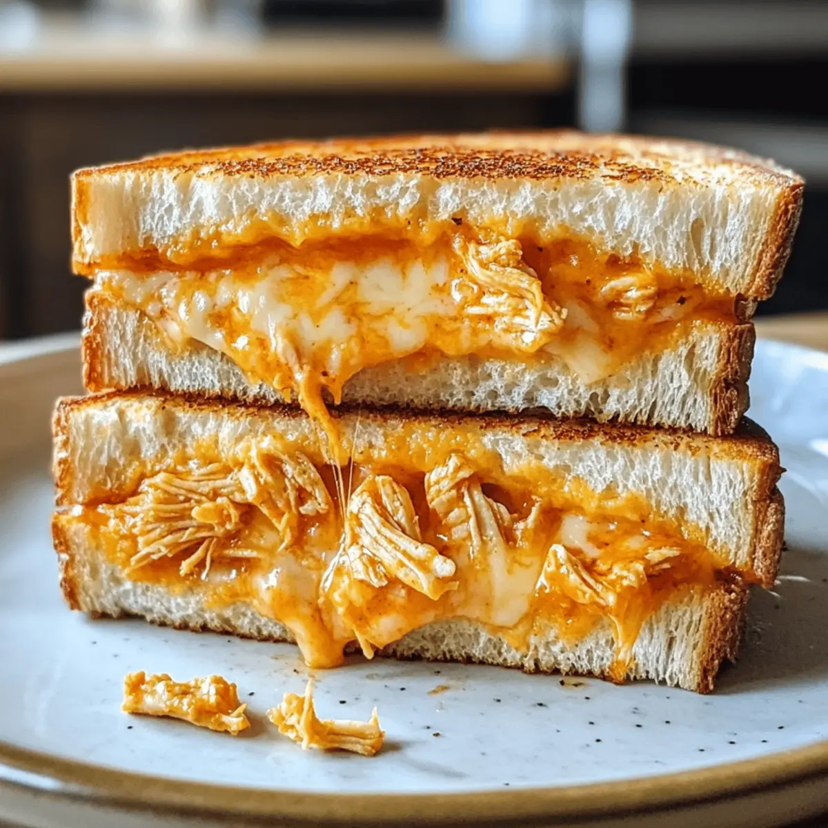 Die Kombination aus knusprigem Brot und geschmolzenem Käse, die den Gaumen verwöhnt, hat schon viele von uns in ihren Bann gezogen. Ein Buffalo-Hühnchen-Grilled Cheese Sandwich ist die perfekte Antwort auf all die Tage, an denen man sich nach etwas Deftigem und Warmem sehnt. Das Rezept vereint zartes, mit würziger Buffalo-Sauce vermischtes Hähnchen und eine großzügige Portion geschmolzenen Käses, das einfach zum Träumen einlädt. Unkompliziert zuzubereiten und vor allem anpassbar, ist dieses Sandwich sowohl ein beliebter Snack als auch ein bequemes Mittagessen. Wer könnte da schon widerstehen? Zumal es auch spontan auf den Tisch kommt und dabei wunderbar sättigt! Schon neugierig, wie einfach du das Rezept nach deinen Wünschen anpassen kannst? Warum wirst du dieses Sandwich lieben? Einfachheit, das Rezept ist unkompliziert und benötigt keine besonderen Kochkünste – perfekt für Eilige! Würziger Genuss, die Kombination aus Buffalo-Sauce und geschmolzenem Käse wird selbst die Geschmacksknospen anspruchsvollster Genießer begeistern. Vielseitigkeit, du kannst die Schärfe anpassen oder sogar eine vegetarische Variante mit Blumenkohl ausprobieren. Crowd-Puller, ideal für Partys oder ein schnelles Abendessen mit Freunden, dieses Sandwich ist ein Hit bei jedem. Egal ob als schnelles Mittagessen oder als späten Snack, der Buffalo-Hühnchen-Grilled Cheese Sandwich wird dich immer wieder verführen – lies gerne auch über weitere köstliche Sandwich Ideen! Buffalo-Hühnchen-Grilled Cheese Sandwich Zutaten Für das Brot • Dicker Brot – Sourdough ist ideal für zusätzliche Knusprigkeit und Struktur. Für die Füllung • Zerrissenes Hähnchen – Die Hauptproteinquelle, vermischt mit Buffalo-Sauce für intensiven Geschmack. Verwende Reste, um Zeit zu sparen. • Buffalo-Sauce – Gibt dem Sandwich die gewünschte Schärfe; passe die Menge nach deinem persönlichen Schärfewunsch an. • Cheddar-Käse – Sorgt für herzhaften Geschmack und ideale Schmelze. Scharfer Cheddar bringt mehr Tiefe! • Mozzarella-Käse – Verleiht Cremigkeit und zieht beim Essen. Substitute mit Pepper Jack für zusätzliche Schärfe. Für das Grillen • Butter – Für das Grillen; sorgt für eine goldbraune und knusprige Außenseite. Verwende ungesalzene Butter, um den Natriumgehalt zu kontrollieren. Optionale Garnitur • Frühlingszwiebeln oder Blauschimmelkäse – Füge zusätzlichen Geschmack hinzu und passe ihn an deine Vorlieben an. Dieses Buffalo-Hühnchen-Grilled Cheese Sandwich ist perfekt geeignet, um all deine Sandwich-Träume zu erfüllen! Schritt-für-Schritt-Anleitung für das Buffalo-Hühnchen-Grilled Cheese Sandwich Step 1: Hähnchen vorbereiten Mische das zerrissene Hähnchen in einer Schüssel gründlich mit der Buffalo-Sauce, bis es gleichmäßig bedeckt ist. Dies sollte etwa 2-3 Minuten dauern. Achte darauf, dass das Hähnchen gut mit der würzigen Sauce durchtränkt ist, um den vollen Geschmack im Sandwich zu entfalten. Step 2: Sandwich zusammenstellen Lege auf eine Scheibe Brot die Hälfte des Cheddars, gefolgt vom zubereiteten Buffalo-Hühnchen. Streue die Mozzarella-Käse darüber und lege die restliche Cheddar-Schicht obendrauf. Bedecke das Ganze mit einer zweiten Scheibe Brot, um das Sandwich zu vervollständigen. Step 3: Grillen bei mittlerer Hitze Erhitze eine Pfanne bei mittlerer Hitze und lasse 1 Esslöffel Butter darin schmelzen. Platziere das Sandwich in die Pfanne und grille es 3-4 Minuten lang, bis die Unterseite goldbraun und knusprig ist. Überprüfe regelmäßig, ob die Unterseite nicht verbrennt. Step 4: Sandwich wenden und weiter grillen Wende das Sandwich vorsichtig mit einem Spatel, füge die verbleibende Butter hinzu, und grille die andere Seite für weitere 3-4 Minuten. Achte darauf, dass auch diese Seite knusprig wird und der Käse schön schmilzt. Step 5: Abkühlen und servieren Lasse das Buffalo-Hühnchen-Grilled Cheese Sandwich kurz abkühlen, damit sich die Füllung setzen kann – etwa 1-2 Minuten. Schneide das Sandwich dann in zwei Hälften und garnieren es nach Belieben mit Frühlingszwiebeln oder Blauschimmelkäse für zusätzlichen Geschmack. Buffalo-Hühnchen-Grilled Cheese Sandwich Variationen Lass deiner Kreativität freien Lauf und passe dieses köstliche Rezept nach deinem Geschmack an. Würzige Note: Ergänze frische Jalapeños für extra Schärfe oder wähle eine mildere Buffalo-Sauce für weniger Hitze. Variiere die Schärfe, bis du deine perfekte Mischung findest! Käsealternativen: Tausche Mozzarella gegen Gouda für einen rauchigen Geschmack oder verwende Pepper Jack für mehr Würze und Temperatur. Käse kann deinem Sandwich ganz neue Facetten verleihen. Vegetarische Variante: Ersetze das Hähnchen durch gerösteten Blumenkohl, der mit Buffalo-Sauce vermischt ist. Ein herzhaftes und köstliches Gericht ganz ohne Fleisch! Crunch-Faktor: Füge knusprige Bacon-Streifen hinzu, um beim Bissen ein zusätzliches Crispy-Erlebnis zu genießen. Der Kontrast zwischen zartem und knusprigem wird deine Geschmacksknospen erfreuen. Gesunde Option: Verwende Vollkornbrot oder glutenfreies Brot, um eine gesündere Variante zu kreieren, die trotzdem unwiderstehlich gut schmeckt. Gönn dir den vollen Komfort und dennoch sensible Ernährung! Midnight Snack: Mach es süß! Ergänze die Füllung mit einer kleinen Schicht eines fruchtigen Aufstrichs, wie einer scharfen Ananas-Salsa, für eine unerwartete Geschmackskombination. Extra Gemüse: Ergänze mit Spinat, Paprika oder getrockneten Tomaten für mehr Nährstoffe und einen visuellen Farbtupfer auf deinem Sandwich. Dips zum Servieren: Reiche eine Beilage aus Avocado-Dip oder Joghurt-Dressing, um die Aromen der Buffalo-Sauce zu ergänzen und ein ausgewogenes Geschmackserlebnis zu schaffen. Für noch mehr leckere Kombinationen und Ideen schau dir unsere beliebtesten Sandwich-Variationen an! Hilfreiche Tricks für Buffalo-Hühnchen-Grilled Cheese Sandwich Perfekte Grilltemperatur: Achte darauf, die Pfan