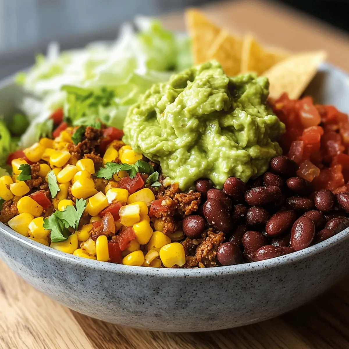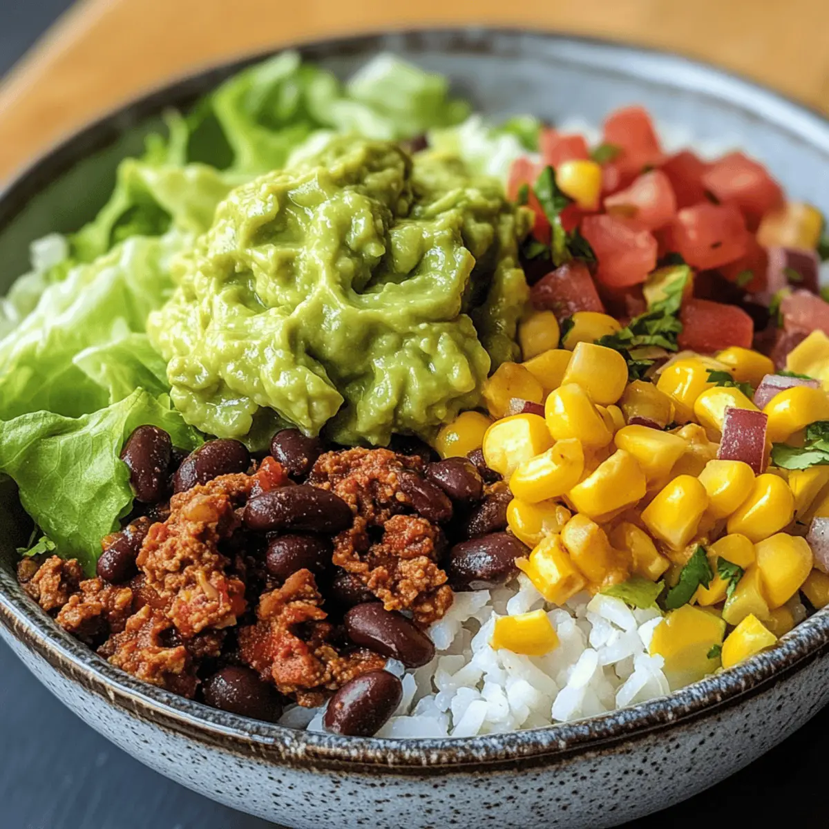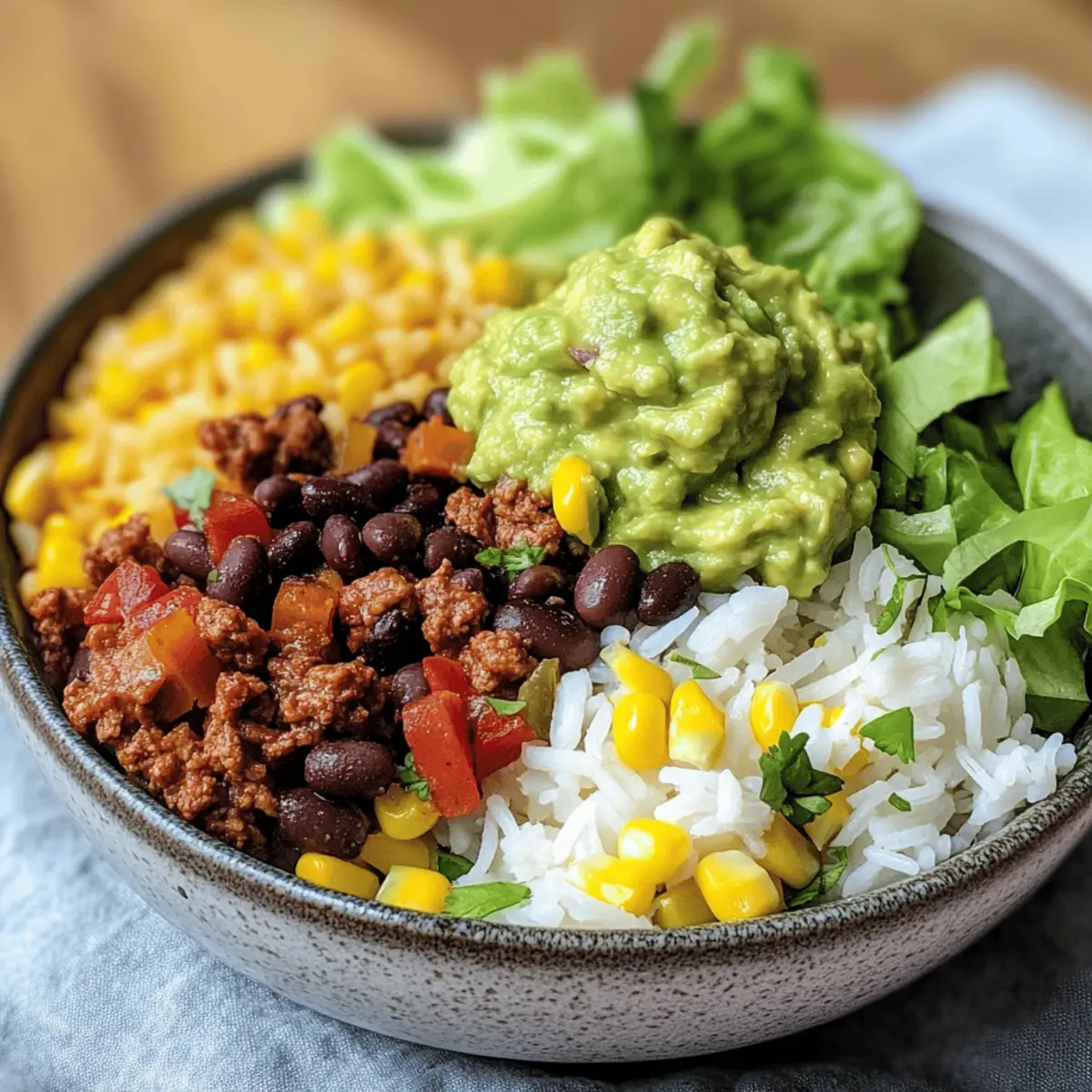 Als ich das erste Mal eine Rezeptur für eine Burrito-Schüssel mit Guacamole ausprobierte, war ich überrascht, wie viele verschiedene Aromen und Texturen in einem einzigen Gericht stecken können. Diese vegane Version vereint frische Zutaten zu einer farbenfrohen und isst glücklichen Mischung, die nicht nur lecker ist, sondern auch in nur 30 Minuten zubereitet werden kann! Ein großer Pluspunkt: Sie lässt sich leicht anpassen, sodass jeder seine Lieblingszutaten hinzufügen oder austauschen kann. Egal, ob du ein gesundes Mittagessen für dich selbst zubereitest oder deine Freunde mit einem tollen Abendessen beeindruckst, diese Burrito-Schüssel hat für jeden etwas zu bieten. Bist du bereit, in die Welt der veganen Genussvielfalt einzutauchen? Warum wirst du dieses Rezept lieben? Einfachheit: Die Zubereitung ist mühelos und benötigt keine speziellen Kochkünste – perfekt für jeden Küchenchef! Gesundheitlich: Diese Burrito-Schüssel ist reich an Nährstoffen und bietet eine ausgewogene Mischung aus pflanzlichen Proteinen und frischen Zutaten. Vielfalt: Mit verschiedenen Zutatenoptionen kannst du die Schüssel nach deinem Geschmack anpassen – ob mit Quinoa oder zusätzlichen Gemüsesorten. Schnell: In nur 30 Minuten hast du ein köstliches, gesundes Gericht auf dem Tisch, ideal für hektische Wochentage. Teilen und Begeistern: Perfekt für ein Abendessen mit Freunden oder für Meal Prep – jeder wird von diesem bunten Gericht begeistert sein! Verpass nicht unsere weiteren leckeren Variationen für Burrito-Schüsseln! Burrito-Schüssel mit Guacamole Zutaten Hinweis: Diese Burrito-Schüssel mit Guacamole ist nicht nur lecker, sondern auch ganz einfach anzupassen! Für die Basis Basmati-Reis – dient als Grundlage und ist eine gute Kohlenhydratquelle; kannst du auch durch Quinoa ersetzen für mehr Ballaststoffe. Für die frischen Zutaten Eisbergsalat – sorgt für Knackigkeit und Frische; wechsle zu Romanasalat oder Rucola für unterschiedliche Texturen. Schwarze Bohnen oder Kidneybohnen – liefern pflanzliches Eiweiß; verwende jede verfügbare Bohnensorte aus der Dose, beide sind nahrhaft. Mais – bringt eine süße Note und farbenfrohe Abwechslung; optional kannst du ihn durch gewürfelte Paprika ersetzen. Für die proteinreiche Komponente Vegane Fleischalternative – sorgt für Herzhaftigkeit; nutze gekaufte oder selbstgemachte Varianten, walnussbasierte Optionen sind besonders empfehlenswert. Für das Topping Guacamole – cremiges Topping, das für Geschmack und gesunde Fette sorgt; frisch zubereitet ist sie am besten. Tortilla-Chips – gebrochene Chips bringen zusätzlichen Crunch und Spaß. Schritt-für-Schritt-Anleitung für Burrito-Schüssel mit Guacamole Step 1: Reis kochen Spüle 200 g Basmati-Reis gründlich unter kaltem Wasser ab, bis das Wasser klar ist, um überschüssige Stärke zu entfernen. Koche den Reis in einem Topf mit 400 ml Wasser für etwa 10-12 Minuten bei mittlerer Hitze, bis die Flüssigkeit vollständig aufgenommen ist. Lass ihn anschließend etwas abkühlen, damit er schön locker bleibt. Step 2: Bohnen und Mais vorbereiten Nimm 250 g schwarze oder Kidneybohnen und 250 g Mais aus der Dose. Gib beides in ein Sieb und spüle sie unter kaltem Wasser ab, um überschüssiges Natrium zu entfernen. Lass die Bohnen und den Mais gut abtropfen und bereite sie für die Zusammenstellung der Burrito-Schüssel vor. Step 3: Salat schneiden Wasche ½ Kopf Eisbergsalat und schneide ihn in feine Streifen. Den geschnittenen Salat in einer großen Schüssel aufbewahren, sodass er frisch und knackig bleibt. Der Eisbergsalat bringt eine angenehme Frische und Knackigkeit in die Burrito-Schüssel, die die anderen Zutaten ergänzt. Step 4: Vegane Fleischalternative anbraten Erhitze eine große Pfanne über mittlerer Hitze, füge 400 g der veganen Fleischalternative hinzu und brate sie 5-7 Minuten lang an, bis sie schön gebräunt ist. Würze sie während des Bratens mit Salz, Pfeffer, Paprika oder Kreuzkümmel nach Geschmack. Dieser Schritt bringt zusätzliche Aromen und macht die Burrito-Schüssel herzhaft. Step 5: Burrito-Schüssel zusammenstellen Beginne mit der Zusammenstellung deiner Burrito-Schüssel, indem du eine großzügige Portion Reis als Basis in eine Schüssel gibst. Schichte dann die feinen Salatstreifen, die Bohnen, den Mais und die angebratene vegane Fleischalternative darauf. Diese bunte Anordnung sorgt für ansprechende Farben und Texturen in deiner Burrito-Schüssel mit Guacamole. Step 6: Guacamole hinzufügen Löffle eine großzügige Portion Guacamole auf die oberste Schicht deiner Burrito-Schüssel. Das cremige Topping fügt nicht nur Geschmack hinzu, sondern liefert auch gesunde Fette. Optional kannst du auch etwas Limettensaft über die Guacamole träufeln, um den Geschmack zu intensivieren. Step 7: Optionales Crunch-Element Falls gewünscht, füge kurz vor dem Servieren einige Tortilla-Chips hinzu, um extra Crunch in deine Burrito-Schüssel mit Guacamole zu bringen. Diese geben nicht nur eine zusätzliche Textur, sondern machen das Gericht auch zu einem unterhaltsamen Erlebnis. Jetzt ist deine köstliche Schüssel bereit zum Genießen! Aufbewahrungstipps für Burrito-Schüssel mit Guacamole Raumtemperatur: Die Burrito-Schüssel sollte nicht länger als 2 Stunden bei Raumtemperatur stehen gelassen werden, um die Frische der Zutaten zu gewährleisten. Kühlschrank: Du kannst die einzelnen Bestandteile der Burrito-Schüssel bis zu 3 Tage im Kühlschrank aufbewahren. Stelle sicher, dass alle Zutaten in luftdichten Behältern gelagert werden. Gefrierer: Die meisten Komponenten dieser Burrito-Schüssel mit Guacamole lassen sich bis zu 3 Monate im Gefrierer aufbewahren. Beachte, dass die Bohnen und die vegane Fleischalternative am besten gefrieren, während frisches Gemüse nicht geeignet ist. Wiedererwärmung: Für die Erwärmung der gefrorenen Zutaten, lasse sie über Nacht im Kühlschrank auftauen und erhitze sie dann in der Mikrowelle oder in ei