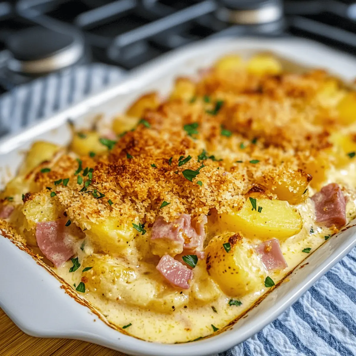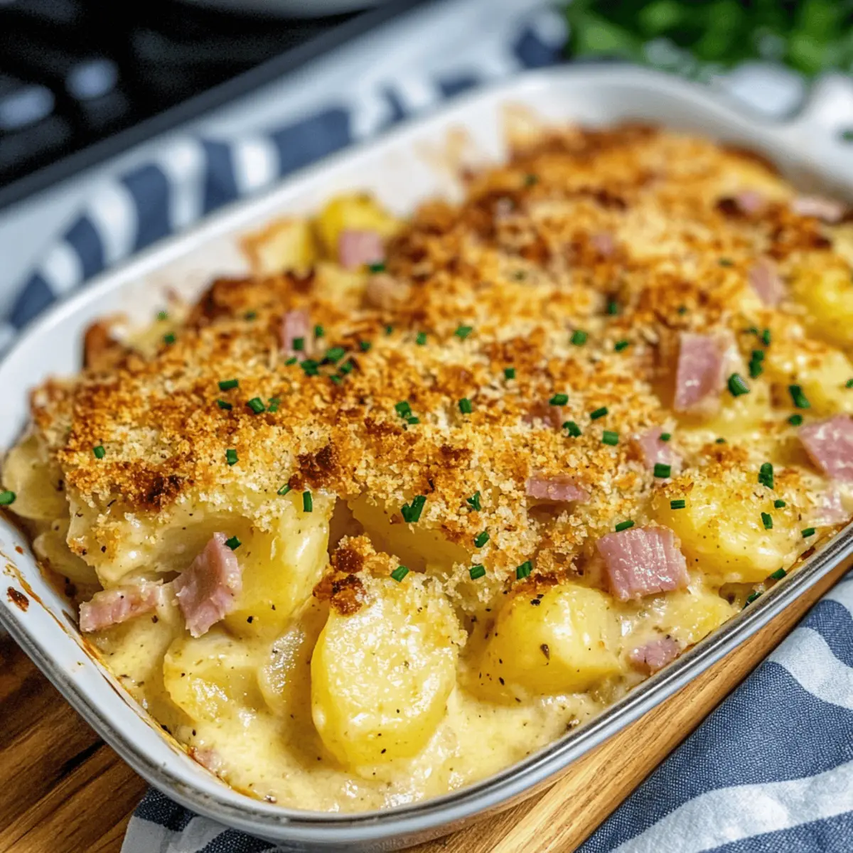 Hast du jemals den Moment erlebt, in dem sich der Hunger meldet und die Zeit drängt? Genau so ist es mir ergangen, als ich diese köstliche Kombination aus Carbonara und einem klassischen Kartoffelauflauf entdeckte. Dieser Carbonara Kartoffelauflauf vereint die cremigen Aromen der italienischen Spaghetti Carbonara mit zarten Kartoffelscheiben und herzhaftem Schinken, perfekt für eine Familie, die es sich schmecken lassen möchte. Mit einem knusprigen Topping, das dem Gericht eine unwiderstehliche Textur verleiht, ist dieser Auflauf nicht nur schnell zubereitet, sondern auch ein echter Crowd-Pleaser. Machst du dich bereit, deinen Lieben ein hausgemachtes Meisterwerk zu servieren? Lass uns gemeinsam in die Zubereitung eintauchen! Warum ist dieser Auflauf so besonders? Köstliche Aromen: Der Carbonara Kartoffelauflauf kombiniert die cremigen Geschmäcker der klassischen Carbonara mit herzhaften Kartoffeln und Schinken, was jedem Bissen ein reichhaltiges Familiengefühl verleiht. Einfache Zubereitung: Dank der unkomplizierten Schritte ist dieser Auflauf schnell zubereitet und somit ideal für hektische Wochentage. Vielseitigkeit: Du kannst die Zutaten ganz nach deinem Geschmack anpassen, zum Beispiel mit Petersilie oder Schnittlauch für einen frischen Touch oder mit Champignons für eine vegetarische Variante. Perfekte Konsistenz: Die Kombination aus cremiger Füllung und knusprigem Topping bietet eine unwiderstehliche Textur, die jeder lieben wird. Wenn Du auf der Suche nach weiteren leckeren Gerichten bist, könnten dir auch diese Rezepte gefallen: Cremige Gnocchi Mit und Gnocchi Gulasch Herzhaftes. Carbonara Kartoffelauflauf Zutaten Entdecke die köstliche Vielfalt der Zutaten, die diesen leckeren Auflauf zum Star deiner Küche machen! Für den Auflauf Kartoffeln – Hauptzutat, die für die Grundlage und Herzhaftigkeit sorgt; verwende festkochende Kartoffeln für das beste Ergebnis. Parmesan – Fügt der Sauce Reichtum und einen köstlichen Käsegeschmack hinzu; kann mit Gruyère ersetzt oder für eine milchfreie Variante weggelassen werden. Sahne – Kreiert die cremige Textur der Sauce; für eine leichtere Option mit Milch mischen. Ei – Bindet die Sauce und sorgt für eine cremige Konsistenz; gut vermengen. Salz und Pfeffer – Unverzichtbar zum Würzen; nach Geschmack anpassen. Schinkenwürfel – Bringt Salzigkeit und Geschmackstiefe mit; kann für einen stärkeren Geschmack durch Bacon ersetzt werden. Zwiebel – Fügt Süße und Geschmack hinzu; kann durch Schalotten ersetzt werden. Knoblauchzehe – Verstärkt den Gesamteindruck (optional); je nach Vorliebe anpassen. Für das Topping Petersilie & Schnittlauch – Sorgen für Frische und dekorative ansprechende Note. Butter – Zum Einfetten der Auflaufform und für zusätzliche Knusprigkeit des Toppings. Pankomehl – Erzeugt ein knuspriges Topping; kann durch gewöhnliche Semmelbrösel ersetzt werden. Mit diesen Zutaten bist du bereit, einen Carbonara Kartoffelauflauf zu kreieren, der die gesamte Familie begeistern wird! Schritt-für-Schritt-Anleitung für Carbonara Kartoffelauflauf Schritt 1: Kartoffeln vorbereiten Die Kartoffeln in einem großen Topf mit gesalzenem Wasser zum Kochen bringen und etwa 15-20 Minuten kochen, bis sie gerade zart, aber noch fest sind. Anschließend abgießen, abkühlen lassen, schälen und in etwa 1 cm dicke Scheiben schneiden. Die vorbereiteten Kartoffelscheiben sind die Grundlage deines Carbonara Kartoffelauflaufs. Schritt 2: Sauce anrühren In einer großen Schüssel die Sahne, das Ei, Salz und Pfeffer gründlich verquirlen, bis die Mischung homogen ist. Dann den geriebenen Parmesan unterrühren, bis er vollständig eingearbeitet ist. Diese cremige Sauce verleiht deinem Carbonara Kartoffelauflauf den charakteristischen Geschmack und die Konsistenz. Schritt 3: Zwiebel und Schinken anbraten In einer Pfanne 2 Esslöffel Öl oder Butter erhitzen und die Zwiebel sowie optionalen Knoblauch darin anbraten. Etwa 5-7 Minuten braten, bis sie weich und transparent sind. Wenn du Schinken verwendest, füge ihn in den letzten 2 Minuten hinzu, um ihm Geschmack zu verleihen. So entsteht ein aromatisches Grundgerüst für deinen Auflauf. Schritt 4: Auflauf schichten Eine Auflaufform mit Butter für extra Knusprigkeit einfetten. Beginne mit einer Schicht Kartoffelscheiben, gefolgt von der cremigen Sauce und dann der sautierten Zwiebel und dem Schinken. Wiederhole diesen Vorgang, bis alle Zutaten aufgebraucht sind. Achte darauf, dass die letzte Schicht aus der Sauce besteht, um Feuchtigkeit zu gewährleisten. Schritt 5: Topping hinzufügen Verteile Panko-Brösel gleichmäßig über die oberste Schicht. Zusätzliche Butterflocken darauf setzen; dies sorgt für ein knuspriges Finish. Der Carbonara Kartoffelauflauf ist nun bereit für den Ofen und wird gleich in den nächsten Schritt versetzt. Schritt 6: Backen Den Ofen auf 180°C vorheizen. Den Auflauf für 25-30 Minuten backen, bis die Oberseite goldbraun und knusprig ist. Während der Backzeit entwickelt sich ein verlockendes Aroma, und die Oberseite wird herrlich knusprig. Halte Ausschau nach einer appetitlichen, goldenen Kruste. Schritt 7: Servieren und genießen Sobald der Carbonara Kartoffelauflauf fertig gebacken ist, aus dem Ofen nehmen und kurz stehen lassen. Vor dem Servieren mit frisch gehackter Petersilie und Schnittlauch garnieren. Der Auflauf ist nun bereit, heiß serviert zu werden. Jeder Bissen kombiniert cremige Kartoffeln mit köstlicher, herzhafter Füllung. Was passt gut zum Carbonara Kartoffelauflauf? Der Carbonara Kartoffelauflauf ist eine köstliche Kombination aus Aromen und Texturen, die sich perfekt in einem vollständigen Menü einfügt. Lass dich von diesen köstlichen Begleitgerichten inspirieren! Frischer grüner Salat: Eine bunte Mischung aus knackigem Salat, Tomaten und Gurken bringt frische Kühle und einen Hauch von Säure, die die Cremigkeit des Auflaufs ausbalanciert. Dampfgegarte Brokkoli: Die zarten Röschen liefern nicht nu