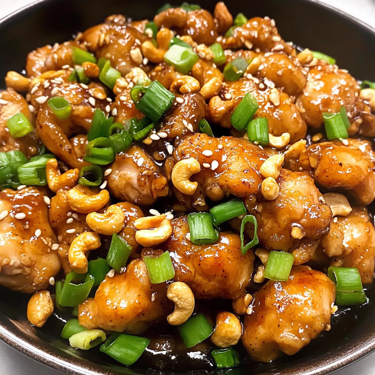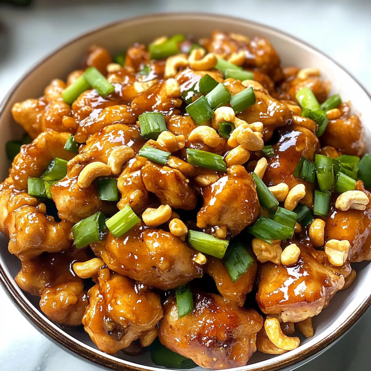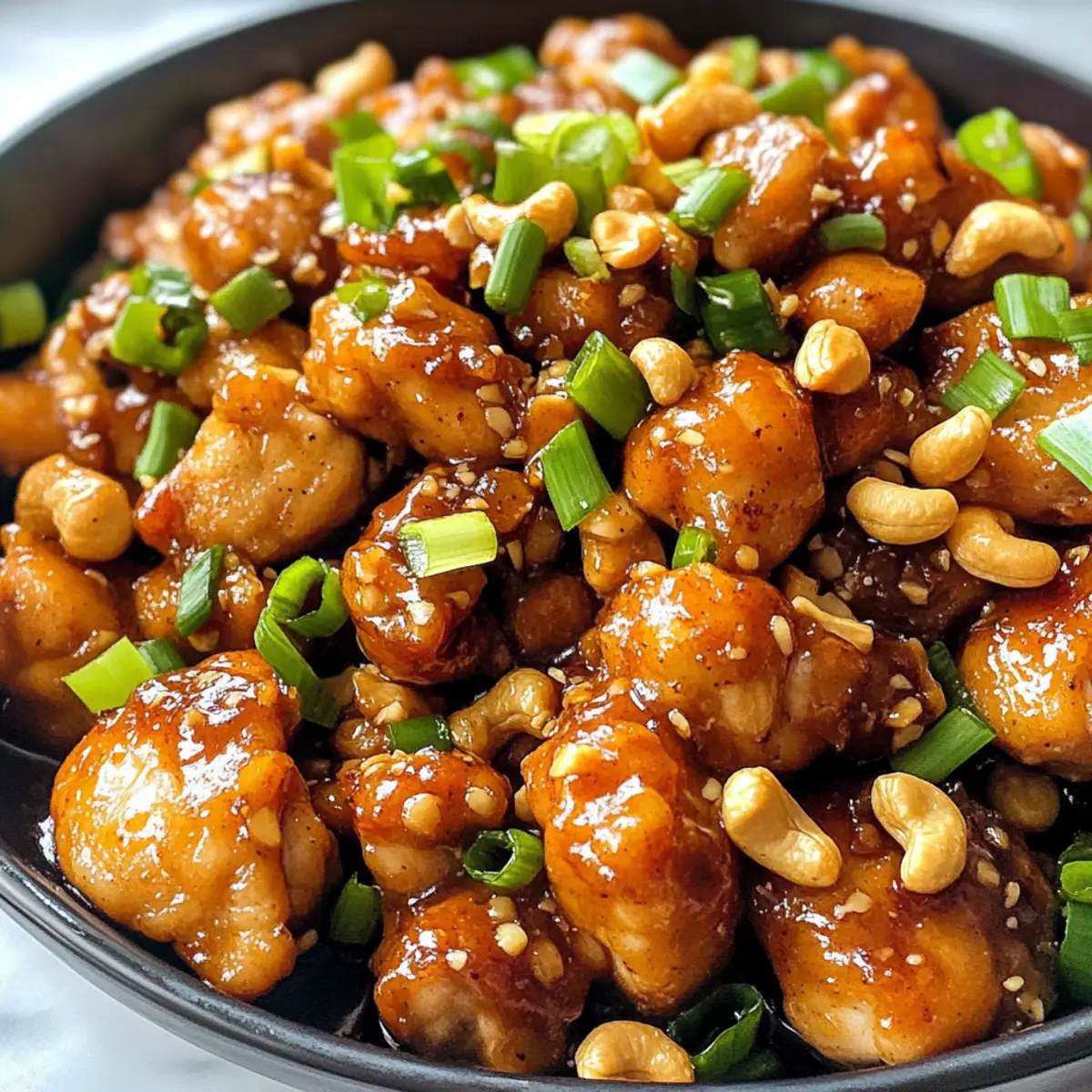 Selbst bei den hektischsten Wochentagen gibt es Momente, die nach einer kleinen kulinarischen Auszeit schreien. Dabei ist mein Easy Cashew-Hühnchen genau das Richtige! Die Kombination aus zarten, knusprigen Hühnchenteilen und einer reichhaltigen, klebrigen Sauce ist einfach unwiderstehlich. Die gerösteten Cashews sorgen für den perfekten Crunch und machen dieses Gericht zum ultimativen Komfortessen. Mit seiner schnellen Zubereitung ist es die ideale Wahl für ein stressfreies Abendessen unter der Woche, das auch noch die besten Takeout-Optionen übertrifft. Hast du schon mal darüber nachgedacht, wie einfach es ist, so viel Geschmack in einer einzigen Pfanne zu kreieren? Lass uns gemeinsam in die Welt des Cashew-Hühnchens eintauchen! Warum solltest du Cashew-Hühnchen lieben? Einfachheit: Mit nur wenigen Zutaten und einem klaren Ablauf ist dieses Rezept ideal für alle, die in der Küche nicht lange fackeln wollen. Zarte Textur: Die Kombination aus knusprigem Hühnchen und einer geschmeidigen Sauce wird dich begeistern. Schnell zubereitet: Perfekt für stressige Wochentage, benötigt dieses Gericht nur etwa 30 Minuten von der Vorbereitung bis zum Servieren. Vielseitigkeit: Variiere mit verschiedenen Gemüsesorten oder Nüssen, um deinen eigenen Twist zu kreieren und gesunde Extras hinzuzufügen. Crowd-Pleaser: Egal, ob Familie oder Freunde, dieses Gericht zieht garantiert jeden in seinen Bann und stellt auch die besten Takeaway-Optionen in den Schatten! Zutaten für Cashew-Hühnchen • Diese Zutaten sind der Schlüssel zu deinem köstlichen Gericht! Für das Hühnchen Hähnchenschenkel – Sie sorgen für zarte und saftige Stücke; du kannst sie auch durch Hähnchenbrust ersetzen, wenn du eine magerere Option bevorzugst. Maisstärke – Wichtig, um eine knusprige Außenschicht zu erreichen; hilft der Sauce, am Hühnchen zu haften. Öl – Erforderlich zum Frittieren; wähle ein Öl mit höherem Rauchpunkt, wie Rapsöl oder normales Olivenöl (kein extra natives). Für die Sauce Hühnerbrühe – Bildet die Basis der Sauce und verstärkt den Geschmack. Sojasauce – Führt eine umami-reiche salzige Note ein und bereichert das Cashew-Hühnchen. Honig – Verleiht Süße und hilft, die Sauce zu karamellisieren. Hoisinsauce – Fügt Komplexität mit süßen und herzhaften Noten hinzu. Reisweinessig – Bietet Säure und Leichtigkeit, die die Süße der Sauce perfekt ausbalanciert. Für das Aroma Knoblauch (gehackt) – Bringt aromatische Tiefe und herzhaften Geschmack. Ingwer (gehackt) – Gibt dem Gericht eine warme Würze und Frische. Frühlingszwiebeln (in Scheiben) – Bieten einen erfrischenden Crunch als Garnitur. Für den Crunch Cashews – Fügen eine knusprige Textur hinzu, die das Gericht einzigartig macht; verwende ungesalzene, geröstete Cashews. Mit dieser Kombination aus Zutaten wirst du ein unwiderstehliches Cashew-Hühnchen zaubern, das schnell und einfach zubereitet ist und allen am Tisch gefallen wird! Schritt-für-Schritt-Anleitung für Cashew-Hühnchen Step 1: Sauce vorbereiten In einer Schüssel Hühnerbrühe, Sojasauce, Honig, Hoisinsauce, Maisstärke und Reisweinessig gut vermengen. Rühre die Mischung kräftig durch, bis die Maisstärke vollständig aufgelöst ist und eine glatte Konsistenz erreicht wird. Diese würzige Sauce ist die Basis für dein Cashew-Hühnchen und sorgt für einen intensiven Geschmack. Stelle sie beiseite, während du die anderen Schritte vorbereitest. Step 2: Hühnchen panieren Die Hähnchenschenkel in mundgerechte Stücke schneiden. In einer Schüssel das Hühnchen großzügig mit Maisstärke bestäuben und kräftig umrühren, bis alle Stücke gleichmäßig bedeckt sind. Diese Schicht sorgt dafür, dass das Cashew-Hühnchen außen schön knusprig wird, während das Innere zart bleibt. Step 3: Öl erhitzen Erhitze in einer tiefen Pfanne oder Fritteuse das Öl auf 180°C. Für eine Pfanne kannst du mittlere bis hohe Hitze einstellen. Wenn das Öl heiß ist, kannst du einen kleinen Tropfen Maisstärke hineingeben: Wenn er sofort aufsteigt, ist das Öl bereit. Diese Temperatur sorgt dafür, dass das Hühnchen beim Frittieren eine goldbraune Farbe erhält. Step 4: Hühnchen frittieren Die vorbereiteten Hühnchenstücke vorsichtig in das heiße Öl geben und für etwa 2-3 Minuten frittieren, bis sie goldbraun und durchgegart sind. Achte darauf, das Hühnchen in Portionen zu frittieren, damit die Temperatur des Öls nicht zu stark abfällt. Mit einer Schaumkelle herausnehmen und auf Küchenpapier abtropfen lassen. Step 5: Aromen anbraten In einer großen Pfanne oder einem Wok 1 Esslöffel Öl erhitzen. Füge den gehackten Knoblauch, den Ingwer und die Cashews hinzu und brate sie unter ständigem Rühren für 1 Minute an, bis sie duften und die Cashews leicht geröstet sind. Achte darauf, dass der Knoblauch nicht verbrennt, da er sonst bitter wird. Step 6: Sauce köcheln lassen Die vorbereitete Sauce in die Pfanne geben und bei mittlerer Hitze zum Kochen bringen. Rühre ständig um, bis die Sauce dickflüssig wird und an den Zutaten haftet, was etwa 2-3 Minuten dauert. Diese dicke, glänzende Sauce gibt dem Cashew-Hühnchen seinen charakteristischen Geschmack. Step 7: Hühnchen mischen Jetzt die knusprigen Hühnchenstücke in die Pfanne geben und sorgfältig mit der Sauce vermengen, bis jedes Stück gleichmäßig bedeckt ist. Lass es für eine weitere Minute köcheln, damit die Aromen gut einziehen können. Diese letzte Verbindung stellt sicher, dass dein Gericht perfekt gewürzt ist. Step 8: Garnieren und servieren Vom Herd nehmen und die in Ringe geschnittenen Frühlingszwiebeln unter das Cashew-Hühnchen mischen. Diese Frische sorgt für einen schönen Kontrast und ein tolles Aroma. Serviere dein Cashew-Hühnchen sofort über dampfendem Reis oder mit einer Beilage aus gebratenem Gemüse für ein rundum köstliches Abendessen! Einfaches Cashew-Hühnchen für die Vorausplanung Das Easy Cashew-Hühnchen ist ideal für das Meal Prep! Du kannst d