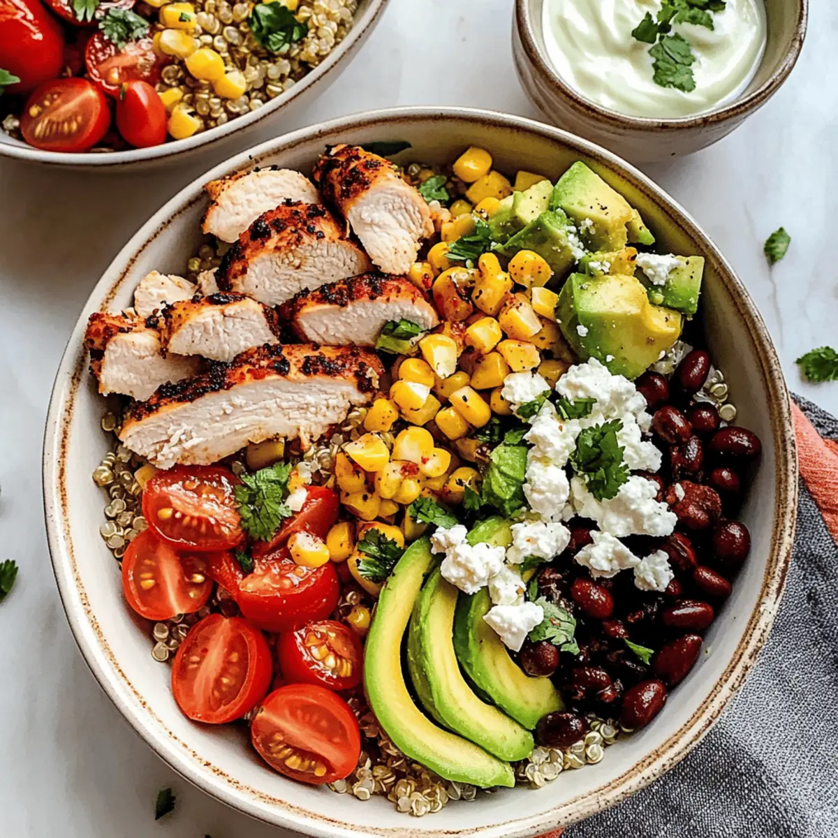 Als ich letztens in einem kleinen Café saß und eine köstliche Baja Bowl genoss, konnte ich nicht anders, als an den perfekten Geschmack und die frische Kombination der Zutaten zu denken. Das brachte mich auf die Idee, diese leckere Copycat Panera Bread Baja Schüssel mit Hühnchen selbst zu kreieren. Diese wunderbar bunte Schüssel ist nicht nur vollgepackt mit nährstoffreichen Zutaten wie Quinoa, schwarzen Bohnen und cremiger Avocado, sie ist auch eine ideale Option für die schnelle Zubereitung von Mahlzeiten. Mit ihrem hohen Proteingehalt und der glutenfreien Zusammensetzung ist sie der perfekte Begleiter für stressige Wochen! Wer kann dazu schon Nein sagen? Lass uns gemeinsam entdecken, wie einfach es ist, sich dieses Gourmet-Erlebnis nach Hause zu holen – schau einfach weiter! Warum wirst du diese Baja Schüssel lieben? Einfachheit, die begeistert: Die Zubereitung dieser Baja Schüssel ist kinderleicht und benötigt nur grundlegende Kochkenntnisse. Nährstoffreich und gesund: Vollgepackt mit Quinoa, schwarzen Bohnen und frischem Gemüse ist diese Schüssel eine wahre Nährstoffbombe. Hoher Proteingehalt: Mit beeindruckenden 39g Protein pro Portion ist sie ideal für fitnessbewusste Feinschmecker. Vielseitig: Du kannst das Rezept problemlos anpassen, z.B. mit gegrilltem Tofu statt Hühnchen für eine vegetarische Option. Perfekt für Meal Prep: Diese Baja Schüssel lässt sich hervorragend im Voraus zubereiten und bleibt frisch, wenn du sie in einem luftdichten Behälter aufbewahrst. Probiere dazu auch ein erfrischendes Getränk wie unser Infused Lemon Cucumber Water oder Peach Rooibos Iced Tea, um dein Aroma-Erlebnis zu steigern! Copycat Panera Bread Baja Schüssel Zutaten Für die Basis: Brauner Reis – bildet die herzhafte Grundlage für die Bowl; kann durch vorgekochten Reis ersetzt werden, um Zeit zu sparen. Quinoa – bietet zusätzliches Protein und Ballaststoffe; vor dem Kochen abspülen, um Bitterkeit zu vermeiden. Wasser – benötigt, um die Körner zu kochen. Für das Hähnchen: Hähnchenbrust ohne Haut – die Hauptproteinquelle; kann durch gegrillten Tofu für eine vegetarische Option ersetzt werden. Olivenöl – wird zum Würzen des Hähnchens und für das Dressing verwendet. Salz und Pfeffer – essentielle Gewürze zur Abrundung des Geschmacks. Für das Dressing: Koriander – bringt frischen, würzigen Geschmack ins Dressing. Natives Olivenöl extra – Basis für das Koriander-Limetten-Dressing, hebt den Geschmack hervor. Limettensaft – bringt Frische ins Dressing, frische Limetten sorgen für den besten Geschmack. Honig – fügt eine leichte Süße hinzu; kann durch Agavensirup ersetzt werden. Knoblauchzehen – sorgt für aromatische Tiefe im Dressing. Rote Paprikaflocken – verleihen einen Hauch von Schärfe; nach Geschmack anpassen. Für die Schüssel: Schwarze Bohnen – reich an Ballaststoffen und Protein; steigern die Sättigung. Gefrorener Mais – süßer Bestandteil; vor der Verwendung auftauen. Avocado – sorgt für eine cremige Textur; erst kurz vor dem Servieren schneiden, um Verfärbungen zu vermeiden. Cherry-Tomaten – bringen Frische und Süße; halbiert servieren. Feta-Käse – gibt eine pikante Note; kann durch Ziegenkäse ersetzt werden. Salsa Verde – bringt Würze und Geschmack; kann aus dem Glas oder selbstgemacht verwendet werden. Naturjoghurt (fettarm) – cremige Alternative für das Dressing; kann durch pflanzlichen Joghurt ersetzt werden. Eingelegte Zwiebeln (optional) – sorgen für Crunch und Schärfe; sowohl im Laden gekauft als auch selbstgemacht verwendbar. Diese Zutaten vereinigen sich zu einer köstlichen Copycat Panera Bread Baja Schüssel, die nicht nur nährstoffreich, sondern auch voller Geschmack ist! Schritt-für-Schritt-Anleitung für die Copycat Panera Bread Baja Schüssel Step 1: Körner kochen In einem großen Topf Braunen Reis und Wasser vermengen, zum Kochen bringen. Hitze auf mittlere Stufe reduzieren, abdecken und 25 Minuten köcheln lassen. Anschließend Quinoa hinzufügen, gut umrühren, wieder abdecken und weitere 15 Minuten garen. Vom Herd nehmen, abdecken und 5-10 Minuten ruhen lassen, damit die Körner leicht aufquellen. Step 2: Dressing zubereiten In einem Mixer Koriander, natives Olivenöl, Limettensaft, Honig, Knoblauch, Salz, Pfeffer und rote Paprikaflocken vermengen. Bei mittlerer Geschwindigkeit mixen, bis eine glatte und cremige Konsistenz entsteht. Das Dressing sollte frisch und duftend sein, ideal zum Verfeinern der Copycat Panera Bread Baja Schüssel. Step 3: Hähnchen vorbereiten Hähnchenbrust auf eine gleichmäßige Dicke klopfen, mit Olivenöl bestreichen, dann mit Salz und Pfeffer würzen. Auf dem Grill bei 220-230 °C (425-450 °F) für 5-6 Minuten pro Seite grillen, bis die Innentemperatur 74 °C (165 °F) erreicht. Goldbraun und saftig sollte das Hähnchen sein, perfekt für deine Baja Schüssel. Step 4: Schüsseln anrichten In große Schalen die Mischung aus Reis und Quinoa gleichmäßig verteilen. Das gegrillte Hähnchen in Scheiben schneiden und darauflegen. Schwarze Bohnen, aufgetauten Mais, Avocado, halbierte Cherrytomaten und zerbröckelten Feta darüber anrichten. Mit dem vorbereiteten Dressing beträufeln und die Schüsseln mit Salsa Verde und einem Klecks Joghurt abrunden. Sofort servieren und genießen! Copycat Panera Bread Baja Schüssel Variationen Lass deiner Kreativität freien Lauf und passe diese Rezeptvariationen an, um den perfekten Geschmack für deine Baja Schüssel zu kreieren! Vegetarisch: Ersetze das Hühnchen durch gegrillten Tofu oder Tempeh für eine köstliche vegetarische Option. Beide Varianten bieten eine proteinreiche Grundlage. Vollkorn: Verwende anstelle von braunem Reis und Quinoa andere Körner wie Farro oder Gerste, um einen anderen Geschmack und eine andere Textur zu erzielen. Sie sind herzhaft und sättigend. Würzig: Füge mehr Rote Paprikaflocken oder frische Jalapeños hinzu, wenn du deinem Gericht eine scharfe Note verleihen möchtest.