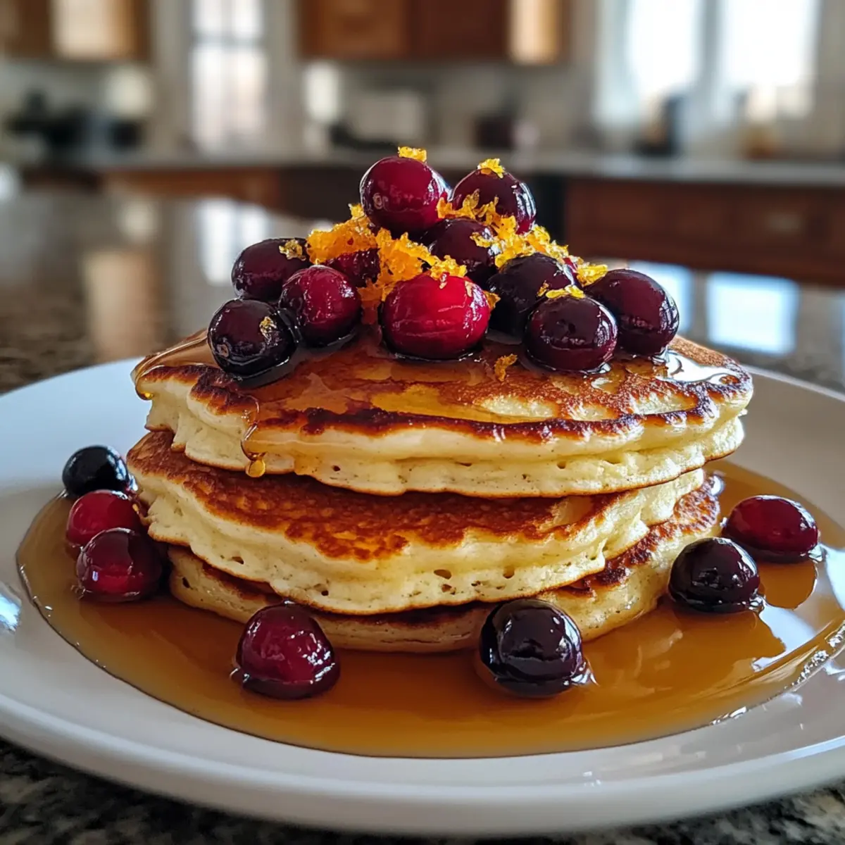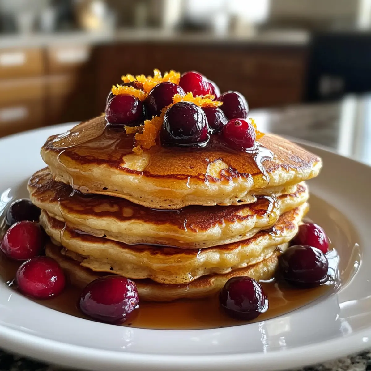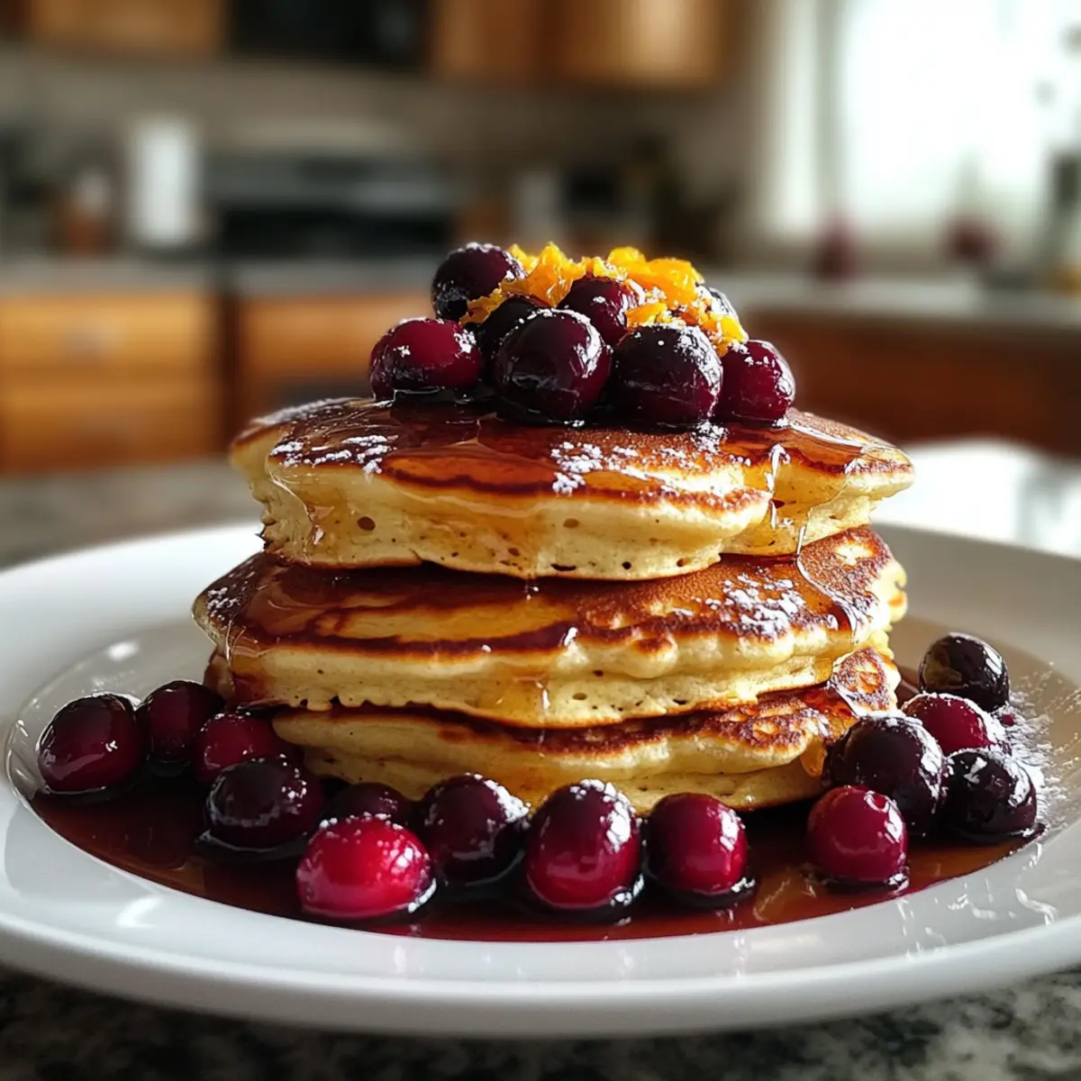 Als ich letztens mit meinem Kaffee in der Hand in der Küche stand, kam der wunderbare Duft von frisch gebackenen Pfannkuchen in meine Nase. Diese Cranberry Orange Ricotta Pfannkuchen sind nicht nur ein wahrer Genuss, sondern auch eine wohltuende Antwort auf hektische Morgen. In nur 35 Minuten sind sie bereit und bringen die fruchtige Säure der Cranberries und die spritzige Note der Orange perfekt zur Geltung. Diese Pfannkuchen sind nicht nur fluffig und zart, sondern auch ein echter Publikumsliebling. Egal, ob zum schnellen Frühstück oder als krönender Abschluss eines Brunch mit Freunden — sie werden sicherlich alle begeistern! Wer könnte da widerstehen? Lass uns gemeinsam herausfinden, wie du diese köstlichen Tropfen des Glücks in deiner eigenen Küche zaubern kannst. Warum lieben wir diese Pfannkuchen? Einfachheit: Die Zubereitung ist schnell und erfordert nur grundlegende Kochkenntnisse. Frischer Geschmack: Die Kombination aus Cranberries und Orange verleiht jedem Bissen eine fruchtige Frische, die deine Geschmacksknospen erfreut. Vielseitigkeit: Du kannst die Zutaten ganz nach deinen Vorlieben anpassen. Probiere zum Beispiel die Variation mit Blaubeeren oder füge einen Hauch von Zimt hinzu! Familienfreundlich: Diese Pfannkuchen sind perfekt für jeden Anlass und erfreuen Groß und Klein. Außerdem sind sie eine gesunde Wahl, die dich bis zur nächsten Mahlzeit satt hält — entdecke auch unsere anderen Frühstücksrezepte. Wenig Aufwand, große Wirkung: In nur 35 Minuten hast du ein köstliches Frühstück, das Eindruck macht! Lass dich von diesen wunderbaren Pfannkuchen begeistern und bring Farbe in deinen Morgen. Cranberry Orange Ricotta Pfannkuchen Zutaten Für den Teig Ricotta-Käse – sorgt für Cremigkeit und Feuchtigkeit; eine gute Alternative ist pürierter Hüttenkäse. Milch – sorgt für die nötige Flüssigkeit im Teig; du kannst jede Art von Milch verwenden, sei es tierisch oder pflanzlich. Eier – wirken als Bindemittel und tragen zur Fluffigkeit der Pfannkuchen bei; für eine vegane Option ersetze sie durch einen Leinsamen-Ei. Allzweckmehl – gibt den Pfannkuchen Struktur; Vollkornmehl ist eine nährstoffreiche Alternative. Zucker – süßt den Teig; wähle zwischen Zucker oder Kokosblütenzucker für eine besondere Geschmackstiefe. Backpulver – sorgt für die fluffige Konsistenz; achte darauf, dass es frisch ist für beste Ergebnisse. Backsoda – verbessert die Bräunung und reagiert mit sauren Zutaten; keine direkte Alternative verfügbar. Salz – rundet die Süße ab und hebt den Geschmack hervor. Frische Cranberries – bringen eine erfrischende Säure; du kannst auch gefrorene Cranberries verwenden, lass sie aber vorher auftauen und gut abtropfen. Orangenschale – gibt einen spritzigen Zitrusgeschmack; frisch ist am besten für intensives Aroma. Toppings (optional) Ahornsirup – perfekt zum Süßen der Pfannkuchen und für ein klassisches Frühstücksgefühl. Frisches Obst – für zusätzlichen Frischekick und Farbe; Himbeeren oder Erdbeeren sind tolle Optionen. Schlagsahne – für einen luxuriösen Touch; kann auch durch pflanzliche Alternativen ersetzt werden. Puderzucker – für einen süßen, dekorativen Akzent; einfach darüber sieben vor dem Servieren. Entdecke mit diesen Zutaten die wunderbare Welt der Cranberry Orange Ricotta Pfannkuchen und begeistere deine Familie oder Freunde mit einem Frühstück, das zum Träumen einlädt! Schritt-für-Schritt-Anleitung für Cranberry Orange Ricotta Pfannkuchen Schritt 1: Nassmischung vorbereiten In einer großen Schüssel den Ricotta-Käse, die Milch und die Eier gründlich mit einem Schneebesen vermengen, bis die Mischung schön glatt ist. Dies dauert etwa 2-3 Minuten. Achte darauf, dass keine Klumpen mehr vorhanden sind, damit die Cranberry Orange Ricotta Pfannkuchen eine optimale Konsistenz erreichen. Schritt 2: Trockene Zutaten mischen In einer separaten Schüssel das Allzweckmehl, den Zucker, das Backpulver, das Backsoda und das Salz vermengen. Mit einem Schneebesen gut durchmischen, sodass keine Klumpen mehr vorhanden sind. Diese Mischung sollte leicht und luftig sein, um die Fluffigkeit der Pfannkuchen zu gewährleisten. Schritt 3: Mischungen kombinieren Die trockenen Zutaten nun langsam zur feuchten Mischung geben, während du sanft mit einem Teigschaber umrührst. Achte darauf, nicht zu stark zu mischen – einige Klümpchen sind vollkommen in Ordnung. Dies sorgt dafür, dass die Cranberry Orange Ricotta Pfannkuchen fluffig bleiben und nicht zäh werden. Schritt 4: Früchte unterheben Jetzt die frischen Cranberries und die Orangenschale vorsichtig unter den Teig heben. Dies gibt den Pfannkuchen nicht nur einen fruchtigen Geschmack, sondern sorgt auch für ein ansprechendes Aussehen. Achte darauf, die Zutaten gleichmäßig zu verteilen, um in jedem Bissen einen fruchtigen Genuss zu erleben. Schritt 5: Pfannkuchen backen Eine Pfanne bei mittlerer Hitze erhitzen und etwas Butter oder Öl hinzufügen. Wenn die Pfanne heiß ist, etwa 1/4 Tasse Teig pro Pfannkuchen hineingießen. Backe die Pfannkuchen, bis sich Blasen auf der Oberfläche bilden, was etwa 3-4 Minuten dauert, und die Unterseite goldbraun ist. Schritt 6: Wenden und fertig backen Die Pfannkuchen vorsichtig mit einem Spatel wenden und die andere Seite für etwa 2-3 Minuten backen, bis sie ebenfalls goldbraun und durchgegart sind. Die Cranberry Orange Ricotta Pfannkuchen sollten leicht und fluffig sein, wenn sie fertig sind. Schritt 7: Servieren Die fertigen Pfannkuchen warm servieren, am besten mit Ahornsirup, frischen Früchten oder einem Klecks Schlagsahne als köstliche Toppings. Genießen Sie Ihr leckeres Frühstück oder Brunch mit den unwiderstehlichen Cranberry Orange Ricotta Pfannkuchen! Expertentipps für Cranberry Orange Ricotta Pfannkuchen Teig am Vorabend: Bereite den Teig am Abend zuvor vor und bewahre ihn im Kühlschrank auf. So hast du am Morgen einen schnellen, frischen Genuss. Nicht zu stark mixen: Vermeide es