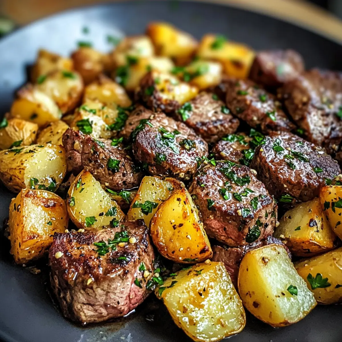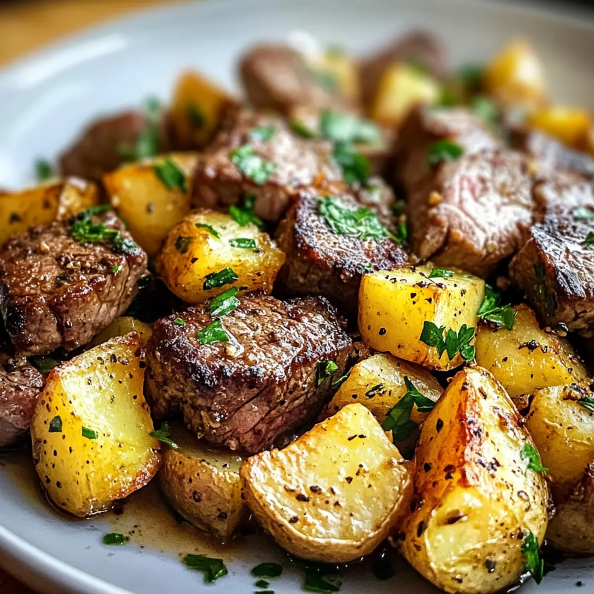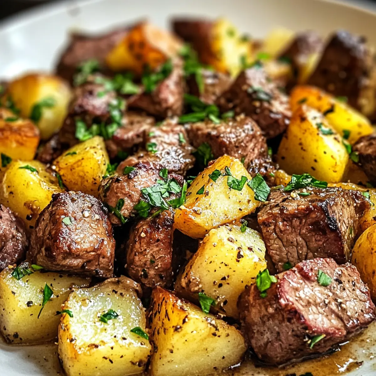 Die Küche ist mein Rückzugsort, und manchmal mache ich ein ganz besonderes Erlebnis daraus – wie mit diesen cremigen Knoblauchbutter-Steakbissen und Kartoffeln! In weniger als 30 Minuten zauberst du ein wunderbares Gericht, das sowohl für stressige Wochentage als auch für gemütliche Abendessen mit Freunden perfekt ist. Die Kombination aus zartem Sirloin-Steak und knusprigen Kartoffeln, umhüllt von einer himmlischen Knoblauchbutter-Sauce, sorgt nicht nur für ein geschmackliches Fest, sondern ist auch ein echtes One-Pan-Wunder, das die Reinigung zum Kinderspiel macht. Bist du bereit, in eine Welt des Genusses einzutauchen? Lass uns die Schritte gemeinsam erkunden! Warum wirst du dieses Rezept lieben? Schnelle Zubereitung: Mit weniger als 30 Minuten Vorbereitungszeit ist dieses Gericht perfekt für hektische Wochentage! Einfache Zutaten: Die Kombination von Steak und Kartoffeln ist vielseitig und ermöglicht kreative Variationen. Du kannst zum Beispiel unser Rezept für Cremige Gnocchi Mit Spinat Und Parmesan ausprobieren oder mit frischem Gemüse wie Paprika und Pilzen experimentieren. Genuss für alle: Das Gericht ist ein echtes Highlight und eignet sich wunderbar für gemeinsame Abendessen mit Freunden oder der Familie. Ein-Pfannen-Wunder: Die einfache Zubereitung in einer Pfanne spart Zeit beim Kochen und beim Abwasch! Wunderbarer Geschmack: Die cremige Knoblauchbutter-Sauce verleiht dem Gericht ein reichhaltiges Aroma, das die Geschmacksknospen verwöhnt – ein echtes Festmahl! Mach dich bereit, in die Aromenwelt einzutauchen und deine Liebsten zu beeindrucken! Cremige Knoblauchbutter-Steakbissen und Kartoffeln Zutaten Für die Steakbissen und Kartoffeln • Olivenöl – hilft beim Anbraten der Steakbissen und Kartoffeln, fügt Geschmack hinzu. Verwende Gemüseöl, wenn gewünscht. • Ghee (insgesamt 4 Esslöffel) – verstärkt den Reichtum der Knoblauchbutter-Sauce. Butter kann ebenfalls verwendet werden, verändert jedoch den Geschmack leicht. • Yukon Gold Kartoffeln (3 große, gewürfelt) – sorgt für eine fluffige Textur; kann durch rote oder fingerling Kartoffeln ersetzt werden, um verschiedene Geschmäcker zu kreieren. • Gehackter Knoblauch (1 Esslöffel) – sorgt für essentielles Aroma; frischer Knoblauch ist für die besten Ergebnisse empfehlenswert. • Thymian (1 Teelöffel, getrocknet) – bringt Kräuternoten mit; kann mit Rosmarin oder italienischen Gewürzen ersetzt werden. • Oregano (1 Teelöffel, getrocknet) – verleiht Erdigkeit; frischer Oregano sorgt für einen frischeren Geschmack. • Salz und Pfeffer – hebt den Gesamte Geschmack; nach Belieben anpassen. Dieses Rezept für cremige Knoblauchbutter-Steakbissen und Kartoffeln wird dich und deine Gäste begeistern! Schritt-für-Schritt-Anleitung für Cremige Knoblauchbutter-Steakbissen und Kartoffeln Step 1: Öl und Ghee erhitzen Erhitze in einer großen gusseisernen Pfanne bei mittlerer Hitze 2 Esslöffel Olivenöl und 2 Esslöffel Ghee. Lass die Mischung einige Minuten warm werden, bis das Ghee geschmolzen ist und leicht zu blubbern beginnt. Das erwärmte Öl sorgt dafür, dass die Steakbissen und Kartoffeln gleichmäßig angebraten werden, was zu einem köstlichen Aroma führt. Step 2: Kartoffeln anbraten Füge die gewürfelten Yukon Gold Kartoffeln zusammen mit dem gehackten Knoblauch, Thymian, Oregano, Salz und Pfeffer hinzu. Brate alles für 8–10 Minuten an, bis die Kartoffeln goldbraun und zart sind. Rühre gelegentlich um, damit sie gleichmäßig garen. Wenn sie schön knusprig und gefärbt sind, nimm sie aus der Pfanne und stelle sie beiseite. Step 3: Steak anbraten Erhöhe die Hitze auf mittelhoch und füge die restlichen 2 Esslöffel Ghee hinzu. Wenn das Ghee beginnt zu rauchen, füge die gewürzten Steakbissen vorsichtig hinzu. Lass sie 2 Minuten lang ungestört braten, bis sie eine schöne Kruste entwickeln. Überprüfe dann die Garstufe und brate sie weiter, bis sie deinen Wunschgrad erreicht haben. Step 4: Kartoffeln zurückgeben Gib die vorgebratenen Kartoffeln zurück in die Pfanne, sodass sie sich mit dem Steak vermischen. Rühre alles vorsichtig um, damit die Kartoffeln von der cremigen Knoblauchbutter überzogen werden. Lass die Mischung für weitere 2–3 Minuten bei mittlerer Hitze garen, damit sich die Aromen gut entfalten können. Step 5: Anrichten und servieren Sobald die cremige Knoblauchbutter-Steakbissen und Kartoffeln gut vermischt sind, nimm die Pfanne vom Herd. Garniere das Gericht mit frischer Petersilie für einen zusätzlichen Farbtupfer und Geschmack. Serviere die Mischung sofort heiß und genieße dieses schnelle und köstliche Gericht zusammen mit deinen Lieben! Aufbewahrungstipps für cremige Knoblauchbutter-Steakbissen und Kartoffeln Kühlschrank: Bewahre Reste in einem luftdichten Behälter für bis zu 3 Tage auf, um die Frische und den Geschmack der cremigen Knoblauchbutter-Steakbissen und Kartoffeln zu erhalten. Gefrierschrank: Für eine längere Lagerung kannst du die Steakbissen und Kartoffeln in einem luftdichten Behälter bis zu 2 Monate einfrieren. Vergiss nicht, das Datum auf dem Behälter zu notieren. Auftauen: Lasse die gefrorenen Reste über Nacht im Kühlschrank auftauen, bevor du sie wieder erhitzt. Wiedererwärmen: Erhitze die Mischung in einer Pfanne bei mittlerer Hitze, füge bei Bedarf etwas Ghee oder Öl hinzu, um die Cremigkeit der Sauce wiederherzustellen. Tipps für die besten cremigen Knoblauchbutter-Steakbissen Gusseisen nutzen: Eine gusseiserne Pfanne sorgt für eine gleichmäßige Wärmeverteilung, ideal für eine perfekte Kruste auf den Steakbissen. Kartoffeln nicht überfüllen: Achte darauf, die Kartoffeln nicht zu überladen, damit sie schön knusprig werden. Ggf. in Batches arbeiten! Garstufen beachten: Nutze ein Fleischthermometer, um die Garstufe deines Steaks genau zu überprüfen, so gelingt es immer perfekt! Frischer Knoblauch: Für einen intensiveren Geschmack wirst du frischen Knoblauch in der cremigen Knoblauchbutt