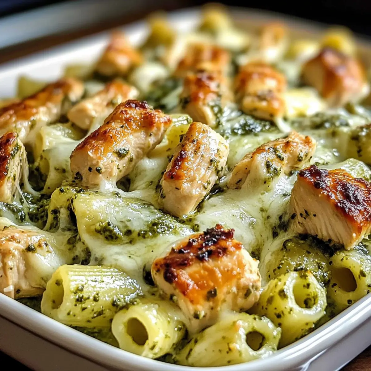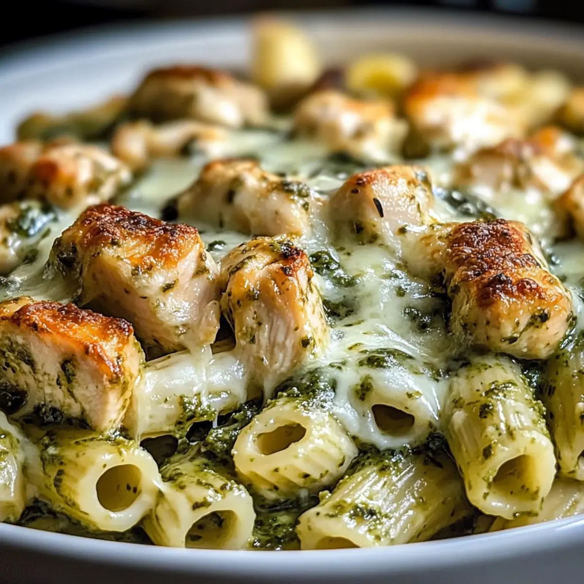 Die Küchentür öffnete sich und ein verführerischer Duft von frisch gebackenem Pesto-Hühnchen-Pasta umhüllte mich wie eine warme Umarmung. Diese cremige Pesto-Hühnchen-Pasta ist nicht nur eine wahre Freude für die Sinne, sondern auch der Inbegriff von Comfort Food. Ob für ein geselliges Abendessen mit Freunden oder ein schnelles Familienessen unter der Woche, dieses Rezept ist angenehm einfach und ermöglicht dir, jeder Zeit etwas Nahrhaftes zu zaubern. Mit der Option, es vegetarisch oder glutenfrei zuzubereiten, ist es ein vielseitiges Gericht, das jeden Gaumen begeistert. Die samtige Textur und die köstliche Kombination aus Hühnchen, Pasta und aromatischem Basilikumpesto machen es zu einem absoluten Muss in deiner Rezeptsammlung. Bist du bereit, in die Welt des Geschmacks einzutauchen? Warum wirst du dieses Rezept lieben? Einfachheit: Die Zubereitung ist unkompliziert und benötigt nur wenig Zeit – perfekt für stressige Wochentage. Köstlicher Geschmack: Die Verbindung aus Hühnchen, Pasta und dem aromatischen Basilikumpesto sorgt für ein Geschmackserlebnis, das alle begeistert. Vielseitigkeit: Dank der Anpassungsoptionen ist diese cremige Pesto-Hühnchen-Pasta sowohl für Vegetarier als auch für Glutenempfindliche geeignet. Zeitersparnis: Du kannst das Gericht im Voraus zubereiten und es später einfach im Ofen backen, was dir wertvolle Zeit spart. Begeisterte Gäste: Egal, ob beim Familienessen oder einem geselligen Abend mit Freunden, dieses Gericht wird immer ein Hit sein! Schau dir auch unsere Cremige Gnocchi Mit oder die Cremige Zucchinisuppe Schnell an, für weitere köstliche Inspirationen! Cremige Pesto-Hühnchen-Pasta Zutaten Für die Pasta • Pasta (Penne/Rigatoni/Fusilli/Ziti) – Diese Formen halten die Sauce gut und sorgen für eine köstliche Textur; bei Bedarf ist glutenfreie Pasta eine tolle Option. • Baby-Spinat (optional) – Fügt nützliche Nährstoffe hinzu, ohne den Geschmack zu dominieren; du kannst auch Grünkohl dafür verwenden oder es einfach weglassen. Für das Hühnchen • Hühnchen (filetierte, hautlose Brüste) – Sorgt für Protein und Substanz; für eine vegetarische Variante einfach weglassen und stattdessen extra Spinat oder sautierte Champignons hinzufügen. • Olivenöl – Zum Anbraten des Hühnchens; Avocadoöl kann ebenfalls verwendet werden, um den Geschmack zu variieren. Für die Sauce • Butter – Für die Herstellung einer reichen Soßenbasis; kann auch durch vegane Butter ersetzt werden, um eine milchfreie Option zu bieten. • Knoblauch – Bringt Tiefe und Aroma in die Sauce; frischer Knoblauch liefert den besten Geschmack. • Schlagsahne und Vollmilch – Schaffen eine cremige Konsistenz; für eine leichtere Variante können sie durch eine pflanzliche Milch ersetzt werden. • Basilikumpesto – Die Hauptzutat, die dem Gericht frischen Kräutergeschmack verleiht; du kannst entweder selbstgemachtes oder gekauftes Pesto verwenden. • Parmesan – Fügt eine nussige Tiefe hinzu; für eine vegane Option ersetze ihn durch Nährhefe. • Geriebener Mozzarella – Schmilzt schön, um eine goldene Kruste zu erzeugen; jede schmelzbare Käsesorte kann auch verwendet werden. • Geriebener Parmesan (zum Bestreuen) – Komplementiert den Mozzarella; kann für eine milchfreie Version weggelassen werden. Würze • Salz und Pfeffer – Verbessern den Gesamtgeschmack; nach Belieben anpassen. Diese cremige Pesto-Hühnchen-Pasta ist ein wunderbares Gericht, das sich perfekt für gesellige Abende oder stressige Wochentage eignet! Step-by-Step Instructions for Cremige Pesto-Hühnchen-Pasta Step 1: Ofen vorheizen Lege eine 23×33 cm große Backform bereit und fette sie leicht ein. Heize den Ofen auf 200°C vor. Währenddessen kannst du die Vorbereitungen für die anderen Zutaten treffen, damit alles bereit ist, wenn der Ofen heiß ist. Step 2: Pasta kochen Bringe einen großen Topf mit gesalzenem Wasser zum Kochen. Füge die Pasta hinzu und koche sie für 2 Minuten weniger als auf der Verpackung angegeben, um eine al dente Konsistenz zu erreichen. Gieße die Pasta anschließend ab und stelle sie beiseite in eine Schüssel. Step 3: Hühnchen anbraten Erhitze in einer großen Pfanne etwas Olivenöl bei mittlerer bis hoher Hitze. Würze die Hühnchenbrust mit Salz und Pfeffer und brate sie für 5–6 Minuten, bis sie goldbraun und durchgegart ist. Danach nimm das Hühnchen von der Hitze und lasse es etwas abkühlen, bevor du es in Stücke schneidest. Step 4: Cremige Pesto-Soße zubereiten In derselben Pfanne schmelze die Butter bei mittlerer Hitze. Füge den gehackten Knoblauch hinzu und brate ihn kurz an, bis er aromatisch ist, aber nicht bräunt. Gieße dann die Schlagsahne und die Vollmilch hinzu und lasse die Mischung leicht köcheln, bis sie eindickt. Step 5: Pesto und Käse einrühren Sobald die Soße schön cremig ist, rühre das Basilikumpesto und den geriebenen Parmesan ein, bis alles gut vermischt ist. Achte darauf, dass sich die Zutaten gleichmäßig verbinden und eine glatte Soße entsteht, die ideal für die cremige Pesto-Hühnchen-Pasta ist. Step 6: Zutaten kombinieren Füge das geschnittene Hühnchen, die abgegossene Pasta und den optionalen Babyspinat zur Soße in der Pfanne hinzu. Mische alles gut durch, bis die Pasta und das Hühnchen gleichmäßig mit der cremigen Soße überzogen sind. Step 7: Backen Gib die gesamte Mischung in die vorbereitete Backform und streue den geriebenen Mozzarella und zusätzlich geriebenen Parmesan darüber. Backe das Gericht unbedeckt im vorgeheizten Ofen für 20–25 Minuten, bis der Käse goldbraun und sprudelnd ist. Step 8: Ruhen und servieren Lasse die cremige Pesto-Hühnchen-Pasta nach dem Backen für 5 Minuten ruhen, damit sich die Aromen setzen können. Schneide dann großzügige Portionen ab und serviere das Gericht warm für ein herzliches Mahl. Variationen Für Cremige Pesto-Hühnchen-Pasta Ermutige deine Kreativität in der Küche und entdecke diese köstlichen Anpassungen für