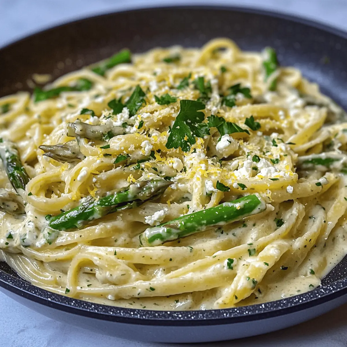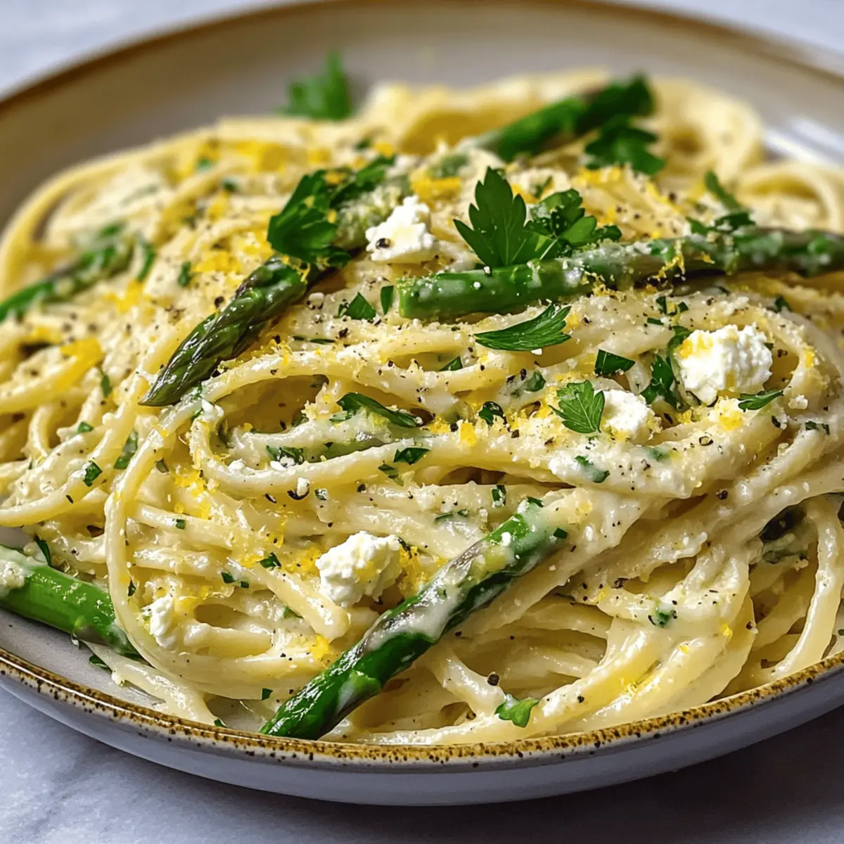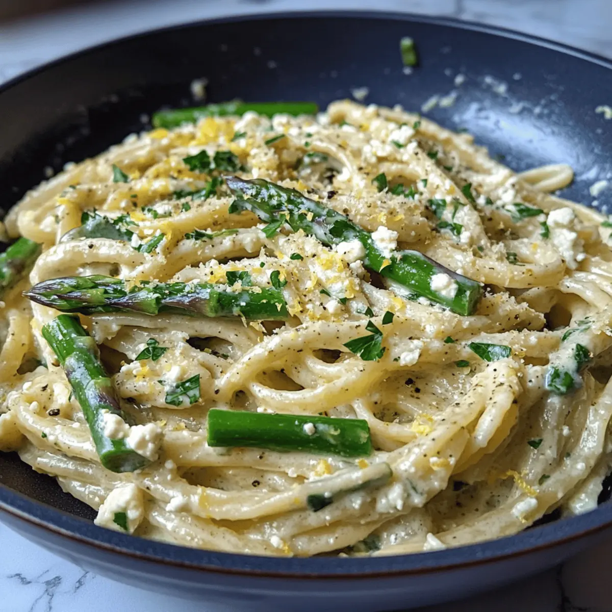 Als ich letztens in der Küche stand, sprangen mir die Farben der frischen Zutaten direkt ins Auge. Es war der perfekte Moment für eine kulinarische Entdeckung: Cremige Zitronen-Feta-Pasta! Diese einfache und dennoch köstliche Mahlzeit verwandelt hektische Wochentage in kleine Genussmomente. Die Kombination aus zarter Linguine, frischem Spargel und einer reichhaltigen Feta-Soße lässt das Herz eines jeden Kochliebhabers höher schlagen. Zusätzlich ist dieses Gericht nicht nur unglaublich schmackhaft, sondern auch vegetarisch und somit perfekt für jeden, der eine schnelle Lösung für das Abendessen sucht. Wer weiß, vielleicht wird es ja schon bald dein neues Lieblingsrezept? Lass uns gemeinsam in die Welt der mediterranen Aromen eintauchen! Warum wirst du dieses Rezept lieben? Einfachheit: Die Zubereitung ist unkompliziert und erfordert nur grundlegende Kochfähigkeiten. Jeder kann dieses Gericht zaubern! Frische Aromen: Die Kombination aus Zitrone und Feta schafft einen erfrischenden Geschmack, der ideal für jedes Dinner ist. Vielseitigkeit: Du kannst die Zutaten nach Belieben variieren – von saisonalem Gemüse bis hin zu Eiweißquellen wie Hähnchen oder Garnelen. Schnell zubereitet: In weniger als 30 Minuten hast du ein köstliches Gericht auf dem Tisch, perfekt für unter der Woche! Kameradschaft: Dieses Gericht wird deine Gäste begeistern und sorgt für Gespräche am Tisch. Ideal für gemütliche Abende mit Freunden und Familie – probiere es aus und entdecke die Freude an der mediterranen Küche! Cremige Zitronen-Feta-Pasta Zutaten Für die Pasta • Linguine – sorgt dafür, dass die Soße perfekt haftet; du kannst auch eine andere Pastasorte verwenden. • Salz – für das Kochwasser; erhöht den Geschmack der Pasta. Für die Feta-Soße • Feta-Käse – bringt Cremigkeit und einen würzigen Geschmack; wähle hochwertige Feta für besten Genuss. • Schlagsahne – für eine reichhaltige Soße; alternativ kann auch Halbfett-Sahne verwendet werden. • Zitronenschale & -saft – fügt Frische und Säure hinzu; wichtig für die Balancierung der Cremigkeit. • Butter – intensiviert den Geschmack der Soße; ungesalzene Butter gibt dir mehr Kontrolle über den Salzgehalt. • Knoblauch – sorgt für ein aromatisches Fundament; kann durch Schalotten ersetzt werden für einen milderen Geschmack. Für das Gemüse • Spargel – sorgt für Textur und Frische; kann auch durch Erbsen oder Spinat ersetzt werden. • Petersilie – für den letzten Schliff und zusätzliche Frische; optional, Basilikum kann ebenfalls verwendet werden. Mit diesen Zutaten zauberst du die cremige Zitronen-Feta-Pasta, die nicht nur köstlich, sondern auch schnell zuzubereiten ist – der ideale Genuss für unter der Woche! Step-by-Step Instructions for Cremige Zitronen-Feta-Pasta Step 1: Pasta Kochen Bringe einen großen Topf mit gesalzenem Wasser zum Kochen. Füge die Linguine hinzu und koche sie gemäß der Packungsanweisung bis sie fast al dente sind, etwa 8-10 Minuten. Reserviere ½ Tasse des Nudelwassers und lasse die Pasta abtropfen, damit sie im nächsten Schritt gut in die cremige Zitronen-Feta-Soße eingearbeitet werden kann. Step 2: Feta-Soße Zubereiten In einer Schüssel vermenge den Zitronensaft, die Zitronenschale und einen Schuss Olivenöl. Füge den zerbröckelten Feta hinzu und püriere die Mischung mit einem Handmixer oder in einem Mixer, bis sie glatt und cremig ist. Diese Feta-Soße ist die Basis für unsere Cremige Zitronen-Feta-Pasta und sorgt für den einzigartigen Geschmack des Gerichts. Step 3: Spargel Anbraten Erhitze in einer großen Pfanne einen Esslöffel Olivenöl bei mittlerer Hitze. Füge den fein gehackten Knoblauch und den in Stücke geschnittenen Spargel hinzu. Brate alles für etwa 5-7 Minuten, bis der Spargel zart, aber noch leicht knusprig ist. Nimm die Pfanne vom Herd und stelle die Mischung beiseite, während du die Soße zubereitest. Step 4: Heiße Soße Zubereiten In derselben Pfanne schmelze die Butter bei mittlerer Hitze. Gieße die Schlagsahne hinzu und bringe die Mischung zum Simmern. Während die Soße köchelt, mische einen Esslöffel Mehl mit etwas von dem reservierten Nudelwasser, um eine glatte Paste zu schaffen. Füge dies der Soße hinzu und rühre gut um, um die cremige Konsistenz zu erreichen. Lasse die Soße etwa 5 Minuten köcheln und würze sie mit Salz und Pfeffer. Step 5: Kombinieren und Servieren Gebe die abgetropfte Linguine in die Pfanne mit der heißen Soße und vermische alles gründlich, sodass die Pasta gut umhüllt ist. Füge dann die Feta-Soße und den angebratenen Spargel hinzu und mische erneut. Serviere die Cremige Zitronen-Feta-Pasta sofort, garniert mit frischer Petersilie für einen extra Frischekick und einem Hauch von Farbe. Was passt gut zur cremigen Zitronen-Feta-Pasta? Die Kombination aus frischen Zutaten und zarten Aromen macht jede Beilage zu einem besonderen Genuss, um dein Abendessen zu vervollständigen. Frischer grüner Salat: Ein knackiger Salat mit einem spritzigen Zitronendressing ergänzt die cremige Pasta und sorgt für einen erfrischenden Kontrast. Knoblauchbrot: Das knusprige Brot ist perfekt, um die köstliche Feta-Soße aufzutunken. Eine wunderbare Kombination, die Gäste begeistern wird! Gegrilltes Gemüse: Zartes, gegrilltes Gemüse wie Zucchini und Paprika fügt eine rauchige Note hinzu und rundet das mediterrane Flair des Gerichts ab. Weißwein: Ein spritziger Sauvignon Blanc, mit seinen Noten von Zitrusfrüchten, harmoniert perfekt mit der Frische der Zitronen und verleiht deinem Dinner das gewisse Etwas. Zitronensorbet: Ein erfrischendes Dessert mit einem Hauch von Zitrone bringt die Mahlzeit harmonisch zu einem Ende und sorgt für einen süßen Abschluss. Rucola-Pesto: Ein rustikales Pesto mit frischem Rucola bringt zusätzliche Kräuternoten und setzt optisch ein Highlight, wenn du es zur Pasta servierst. Jede dieser Beilagen ergänzt die cremige Zitronen-Feta-Pasta auf ihre Weise und macht dei