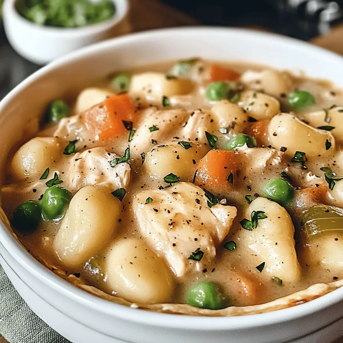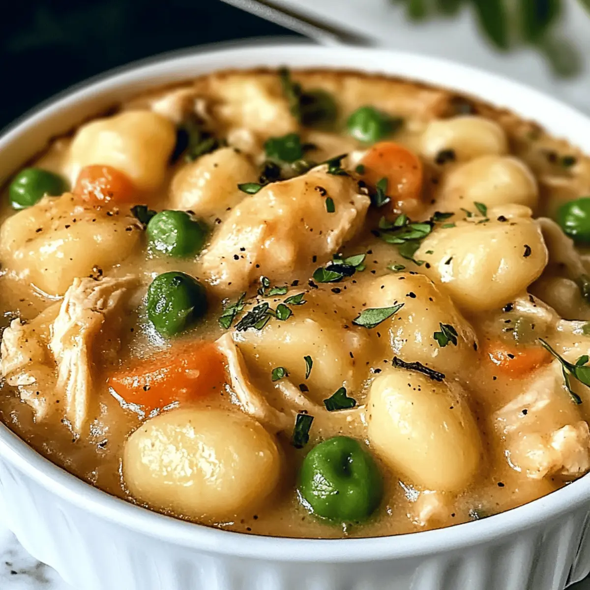 Die ersten kühlen Herbstabende laden geradezu dazu ein, sich in eine Decke zu kuscheln und mit einem herzhaften Gericht aufzuwärmen. Der cremige Hähnchen- und Gnocchi-Topfauflauf ist genau das, was ich mir an solchen Abenden wünsche. Diese köstliche Mischung aus zartem Hähnchen, fluffigen, glutenfreien Gnocchi und einer Vielzahl von knackigem Gemüse kommt in nur einem Topf daher – ein wahrhaft stressfreies Kochen und Aufräumen! Der Hähnchen- und Gnocchi-Topfauflauf verwandelt ein zeitloses Familienrezept in eine schnelle und befriedigende Mahlzeit, die sowohl für gesellige Abende als auch für ein gemütliches Dinner geeignet ist. Wer kann da widerstehen? Bist du bereit, einen dreifachen Nachschlag zu planen? Warum wirst du dieses Rezept lieben? Einfachheit in der Zubereitung: Das Rezept ist unkompliziert und erfordert keine besonderen Kochkünste – perfektes Kochen für jeden. Reiche, köstliche Aromen: Die Kombination aus Hähnchen, Gnocchi und Gemüse sorgt für einen vollmundigen Geschmack, der jeden Geschmack verwöhnt. Vielseitigkeit: Du kannst mit verschiedenen Gemüsesorten oder Proteinvariationen experimentieren hier sind passende Ideen für deine Abwandlungen. Schnelle Zubereitung: In nur einem Topf zubereitet, sparst du Zeit bei der Reinigung und kannst mehr Zeit mit deinen Lieben verbringen. Gemütliche Komfortnahrung: Dieser Topfauflauf ist ein echtes Seelenessen und wird garantiert die ganze Familie begeistern! Cremiger Hähnchen- und Gnocchi-Topfauflauf Zutaten Für die Füllung Butter – sorgt für reichhaltigen Geschmack; kann durch pflanzliche Butter ersetzt werden, um es milchfrei zu halten. Karotten – bringen Süße und Textur; du kannst sie durch andere Wurzelgemüse austauschen. Champignons – geben Umami und Erdigkeit; ersetze sie bei Bedarf durch Zucchini oder Paprika. Sellerie – sorgt für einen frischen Crunch; kann weggelassen werden, wenn nicht verfügbar. Schalotten/Zwiebeln – Basisaromen für die Geschmacksvertiefung; verwende jede Zwiebelart als Ersatz. Knoblauch – verstärkt den Geschmack; unverzichtbar für das Aroma. Pfefferkuchen-Gewürz – kombiniert verschiedene Kräuter für ein tolles Aroma; nutze alternativ Thymian oder Salbei, wenn nötig. Thymian – bietet eine aromatische Note; italienisches Gewürz kann ebenfalls verwendet werden, wenn gerade nicht vorrätig. Glutenfreies Mehl – sorgt für eine sämige Sauce; wichtig für das glutenfreie Gericht. Hühnerbrühe – liefert die Grundgeschmackstiefe; für eine vegetarische Variante kannst du Gemüsebrühe verwenden. Milch – sorgt für eine cremige Textur; ersetze sie durch Kokosmilch, um es milchfrei zu machen. Gnocchi – das Herz des Gerichts; bieten die perfekte Bissfestigkeit; verwende gekaufte oder hausgemachte. Hühnchen – die Hauptproteinquelle; benutze gekochtes Rotisserie-Hühnchen oder Reste. Erbsen (gefroren) – bringen Farbe und Süße; ersetze sie durch jedes andere grüne Gemüse wie grüne Bohnen. Das wird dein neuer Lieblingsrezept: der Cremige Hähnchen- und Gnocchi-Topfauflauf! Schritt-für-Schritt-Anleitung für den Cremigen Hähnchen- und Gnocchi-Topfauflauf Step 1: Gemüse anbraten Erhitze in einem großen, schweren Topf oder Dutch Oven die Butter bei mittlerer bis hoher Temperatur. Füge die gewürfelten Karotten, Champignons, Sellerie und Schalotten hinzu und brate sie etwa 10 Minuten lang an, bis sie zart und leicht goldbraun sind. Achte darauf, sie regelmäßig umzurühren, damit sie gleichmäßig garen und nicht anbrennen. Step 2: Gewürze hinzufügen Gib den gehackten Knoblauch, das Pfefferkuchen-Gewürz und den Thymian in die Pfanne. Lasse die Mischung noch etwa 2 Minuten weiter braten, bis die Gewürze duften. Dies intensiviert die Aromen und bereitet die Grundlage für den Cremigen Hähnchen- und Gnocchi-Topfauflauf. Step 3: Mehl einstreuen Streue das glutenfreie Mehl gleichmäßig über die angebratenen Gemüse. Rühre gründlich um, um sicherzustellen, dass das Mehl gut eingearbeitet ist. Lass die Mischung 1 Minute kochen, um den rohen Mehlgeschmack zu beseitigen und die Sauce zu verdicken. Step 4: Flüssigkeiten einrühren Gieße nach und nach die Hühnerbrühe unter ständigem Rühren dazu, um Klumpen zu vermeiden. Füge anschließend die Milch hinzu und bringe die Mischung langsam zum Köcheln. Halte die Hitze bei mittlerer Temperatur und achte darauf, dass die Flüssigkeit gut vermischt wird, bis sie leicht eingedickt ist. Step 5: Gnocchi kochen Incorporiere die Gnocchi in die köchelnde Mischung und reduziere die Hitze leicht. Lass alles 5-6 Minuten lang köcheln, bis die Gnocchi zart und durchgekocht sind. Achte darauf, dass sie gut in der Sauce schwimmen und gleichmäßig garnieren, damit sie nicht kleben bleiben. Step 6: Hähnchen und Erbsen hinzufügen Füge nun das zerrissene oder gewürfelte Hühnchen und die gefrorenen Erbsen in den Topf hinzu. Rühre alles gut um, damit das Hähnchen und die Erbsen gleichmäßig erhitzt werden. Lasse die Mischung für weitere 2-3 Minuten sanft köcheln und würze sie anschließend mit Salz und Pfeffer nach Geschmack. Was passt zum cremigen Hähnchen- und Gnocchi-Topfauflauf? Der perfekte Abend für einen gemütlichen Topfauflauf erfordert einige delikate Beilagen, um das Geschmackserlebnis zu vervollständigen. Frischer Rucola-Salat: Ein Mischung aus Rucola, Kirschtomaten und einem leichten Dressing bringt eine prickelnde Frische, die den cremigen Aromen des Auflaufes entgegenwirkt. Es ist einfach zuzubereiten und sorgt für einen gesunden Kontrast. Knoblauchbrot: Warmes, knuspriges Knoblauchbrot ist der ideale Begleiter. Die Aromen des Knoblauchs ergänzen den Auflauf perfekt und machen das Eintunken in die cremige Sauce zum Vergnügen. Geröstetes Gemüse: Eine Auswahl an saisonalem Gemüse wie Brokkoli, Karotten und Zucchini, die leicht gewürzt und im Ofen geröstet werden, bietet eine köstliche und gesunde Ergänzung. Das Karamellisieren bringt eine süße Tiefe in die Mahlzeit. We