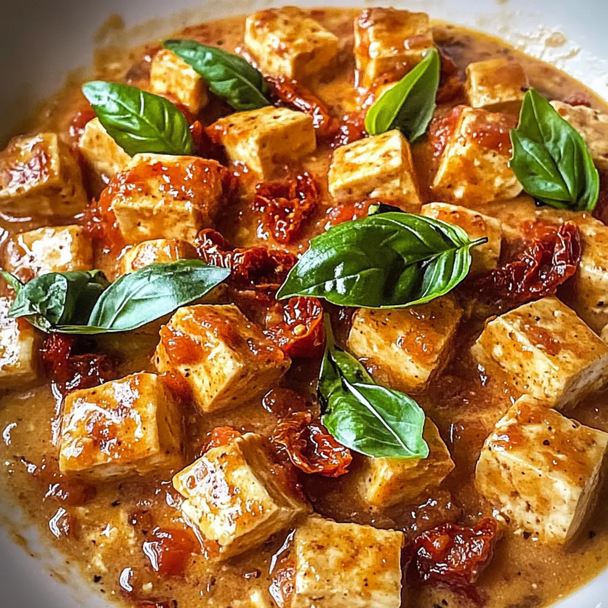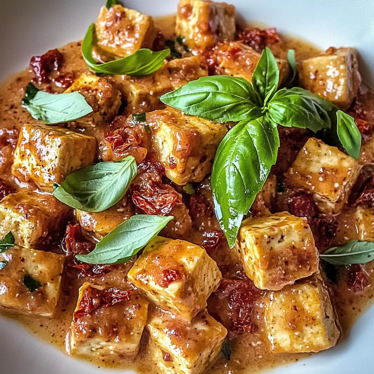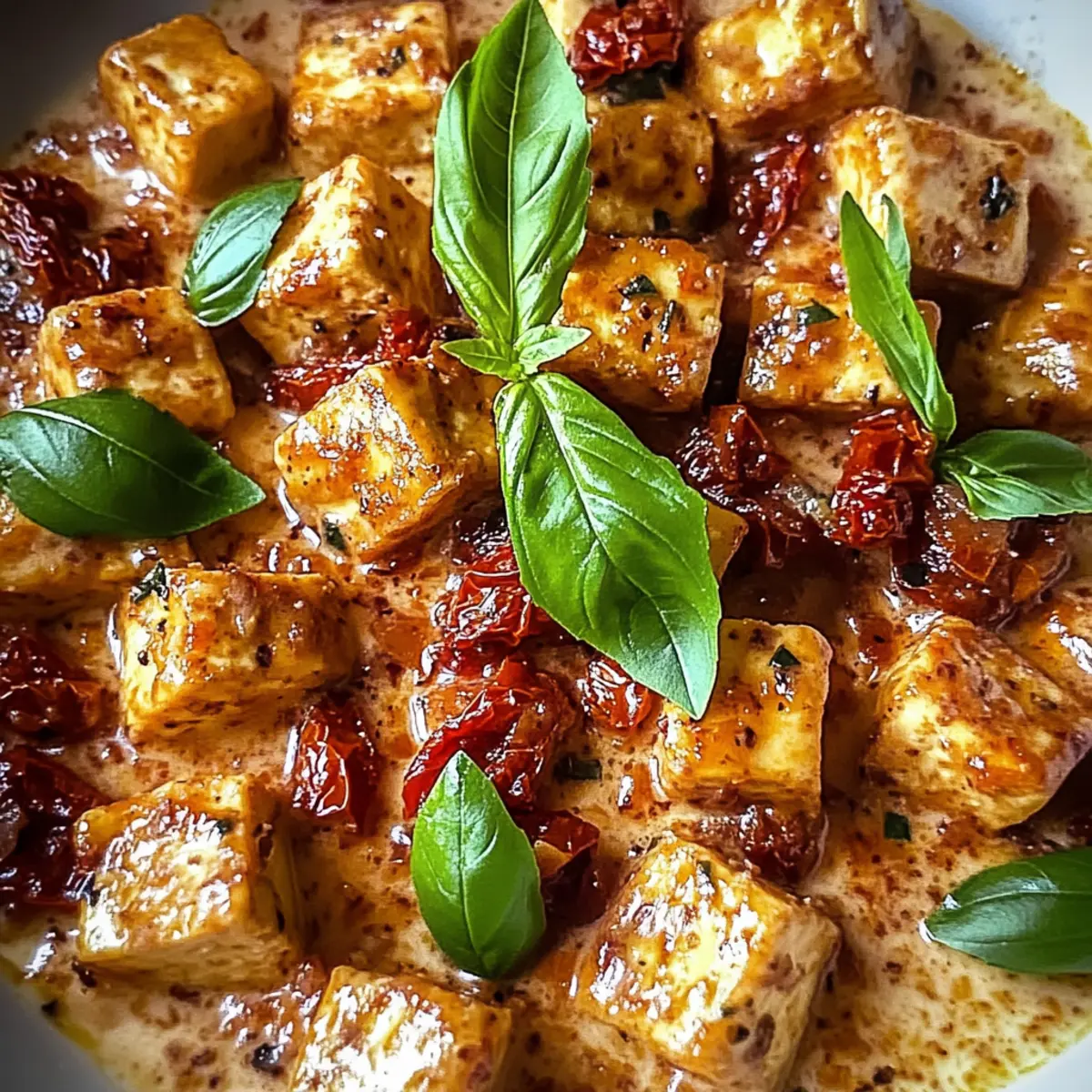 „Wie wäre es mit einem Dinner, das so köstlich ist, dass es Herzen gewinnen kann?“ Diese Frage kam mir in den Sinn, als ich zum ersten Mal den cremigen Heiratsantrag Tofu mit Knoblauch-Tomatensauce zubereitete. Dieses vegetarische Gericht vereint die wunderbaren Aromen von frischem Knoblauch und saftigen Tomaten und bringt uns direkt in das gemütliche Ambiente einer italienischen Trattoria. Die Zubereitung ist so schnell und einfach, dass es sich perfekt für ein leichtes Abendessen nach einem langen Tag eignet. Selbst die wählerischsten Esser werden von der knusprigen Textur des Tofus und der samtigen, cremigen Sauce begeistert sein. Möchtest du erfahren, wie du dieses komfortable Gericht zubereitest, das deinem nächsten Abendessen einen Hauch von Romantik verleiht? Lass uns loslegen! Warum wird dieser Tofu dich begeistern? Einfachheit, die begeistert: Die Zubereitung des cremigen Heiratsantrag Tofus ist ein Kinderspiel – perfekt für Kochanfänger und Profis. Aromatischer Genuss: Die Kombination aus frischem Knoblauch und aromatischen Tomaten schafft eine Geschmacksexplosion, die dich in die italienische Küche entführt. Vielfältige Variationen: Du kannst schnell kreative Abwandlungen ausprobieren, wie das Ersetzen von Tofu durch Kichererbsen oder das Hinzufügen von frischem Gemüse – so bleibt es spannend! Gesund und nahrhaft: Dieses Gericht bietet eine ausgewogene Mischung aus gesunden Fetten und Proteinen und passt wunderbar in eine vegetarische Ernährung. Küchenfreude für die ganze Familie: Selbst die wählerischsten Esser werden sich in den knusprigen Tofu und die cremige Sauce verlieben. Für weitere köstliche Anregungen zu deiner nächsten Mahlzeit, schau dir unser Rezept für vegetarische Zucchininudeln an! Cremiger Heiratsantrag Tofu Zutaten Hinweis: Hier findest du alle Zutaten für das köstliche Rezept für Cremiger Heiratsantrag Tofu mit Knoblauch-Tomatensauce. Für den Tofu Extra-fester Tofu – Der proteinreiche Grundbaustein, der beim Kochen seine Form behält. Substitution: Tempeh für eine nussigere Textur. Wasser – Essenziell zum Einweichen des Tofus, damit er Aromen aufnehmen kann. Keine Substitution; notwendig für das Brinen. Küchen-Salz – Verstärkt den Geschmack während des Brinens. Substitution: Meersalz (kann den Geschmack leicht beeinflussen). Knoblauchzehen – Verleiht Tiefe und Aroma sowohl im Brine als auch in der Sauce. Frischer Knoblauch ist bevorzugt für den besten Geschmack. Getrockneter Oregano – Fügt herzhafte Noten hinzu, die das Gericht aufhellen. Substitution: Italienische Gewürzmischung, falls nicht verfügbar. Zerstoßene rote Pfefferflocken – Sorgt für eine würzige Note, nach Geschmack anpassbar. Maisstärke – Kreiert eine knusprige Beschichtung für den Tofu. Substitution: Pfeilwurzelstärke für glutenfrei. Zwiebelpulver – Trägt zu einem subtilen Geschmack bei. Substitution: Frische Zwiebeln für eine andere Textur. Räucherpaprika – Fügt einen rauchigen Geschmack hinzu. Substitution: Reguliäre Paprika funktioniert ebenfalls. Extra-natives Olivenöl – Wird zum Frittieren verwendet und verleiht Reichhaltigkeit. Substitution: Avocado- oder Pflanzenöl als Alternativen. Ungesalzene Butter – Führt zu einer glatten Cremigkeit der Sauce. Substitution: Pflanzliche Butter für eine laktosefreie Variante. Für die Sauce Tomatenmark – Verleiht der Sauce eine tiefere Geschmacksnote. Substitution: Pürierte frische Tomaten für eine leichtere Option. Schlagsahne – Sorgt für eine luxuriöse Textur. Substitution: Kokoscreme für eine laktosefreie Alternative. In Öl eingelegte getrocknete Tomaten – Verleiht Umami und Textur. Optional frische gewürfelte Tomaten verwenden. Geriebener Parmesan – Ergänzt die Sauce mit einer herzhaften Note. Substitution: Hefeflocken als laktosefreie Alternative. Frische Basilikumblätter – Fügen dem Gericht Frische hinzu. Substitution: Petersilie für eine alternative Kräuternote. Frisch gemahlener schwarzer Pfeffer – Hebt den Gesamtgeschmack hervor. Nach Geschmack anpassen. Mit diesen Zutaten zauberst du im Handumdrehen eine köstliche Variation des Cremigen Heiratsantrag Tofus! Schritt-für-Schritt-Anleitung für Cremiger Heiratsantrag Tofu mit Knoblauch-Tomatensauce Step 1: Tofu einlegen Schneide den extra-festen Tofu in gleichmäßige Würfel und weiche ihn in einer Mischung aus heißem Wasser, zerdrücktem Knoblauch, Küchen-Salz, getrocknetem Oregano und zerstoßenen roten Pfefferflocken für 10 Minuten ein. Dies sorgt dafür, dass der Tofu die Aromen gut absorbiert. Nach dem Einweichen gut abtropfen lassen und mit Küchenpapier trocken tupfen. Step 2: Tofu panieren Vermische in einer Schüssel die Maisstärke, das Zwiebelpulver, die geräucherte Paprika und etwas extra Oregano. Wälze die Tofu-Würfel in dieser Mischung, bis sie gleichmäßig und gründlich bedeckt sind. Diese Beschichtung wird dem cremigen Heiratsantrag Tofu eine köstlich knusprige Textur verleihen. Step 3: Tofu frittieren Erhitze in einer großen Pfanne bei mittlerer bis hoher Temperatur etwas extra-natives Olivenöl. Frittiere die panierten Tofu-Würfel für 5 bis 7 Minuten, bis sie goldbraun und knusprig sind. Achte darauf, sie regelmäßig zu wenden, damit sie gleichmäßig garen. Nach dem Frittieren auf Küchenpapier legen, um überschüssiges Öl abzutropfen. Step 4: Soße zubereiten Nutze dieselbe Pfanne, in der du den Tofu gebraten hast, und lasse etwas ungesalzene Butter bei mittlerer Hitze schmelzen. Füge den fein gehackten Knoblauch hinzu und sautier ihn, bis er aromatisch ist. Danach das Tomatenmark und die Schlagsahne unterrühren und alles für etwa 5 Minuten köcheln lassen, bis die Soße leicht anfängt zu blubbern. Step 5: Zutaten kombinieren Rühre die in Öl eingelegten getrockneten Tomaten in die Soße und lasse alles dann sanft köcheln. Füge die knusprigen Tofu-Würfel hinzu und gently falte sie in die Soße, sodass sie gleichmäßig bedeckt werden. Lass das Ge