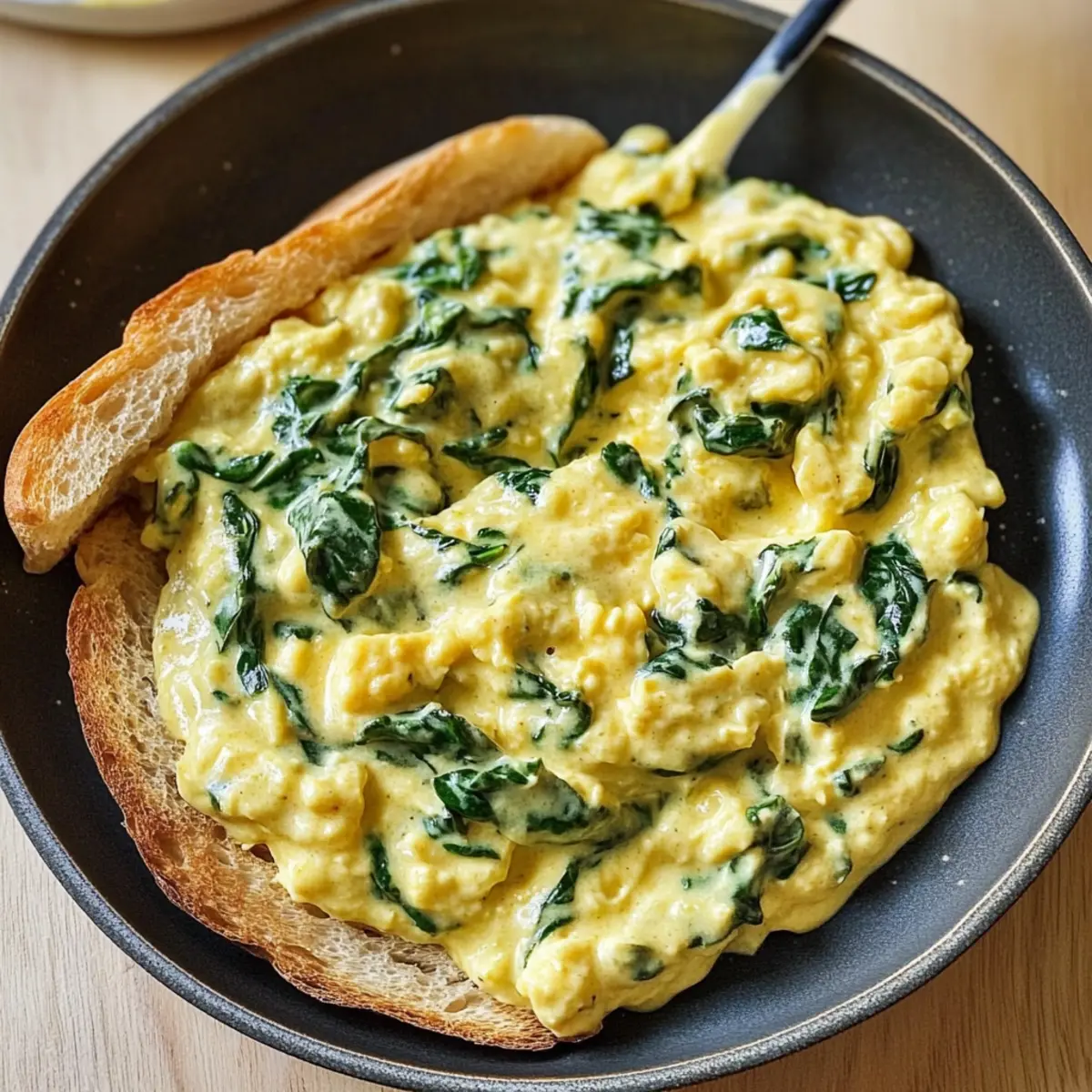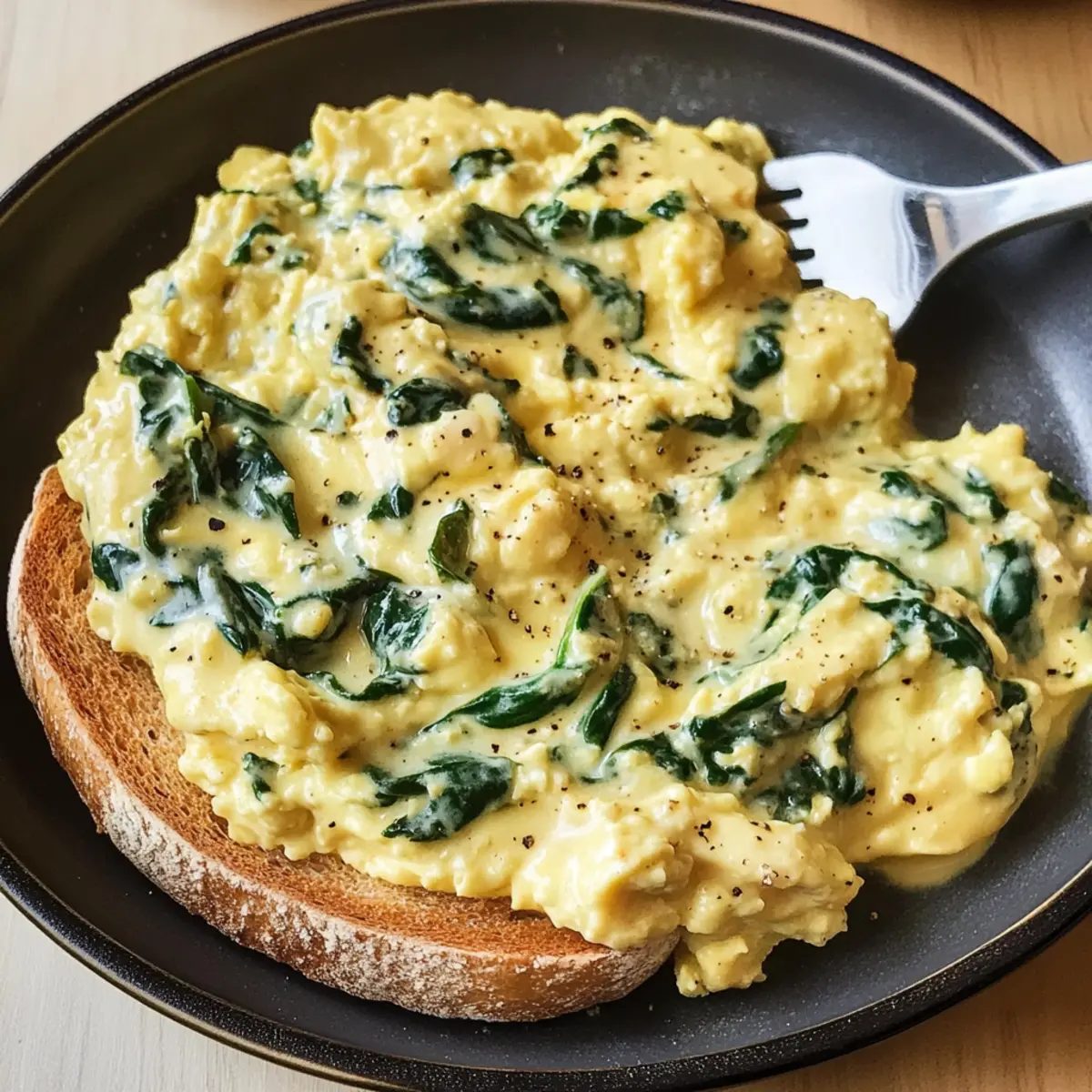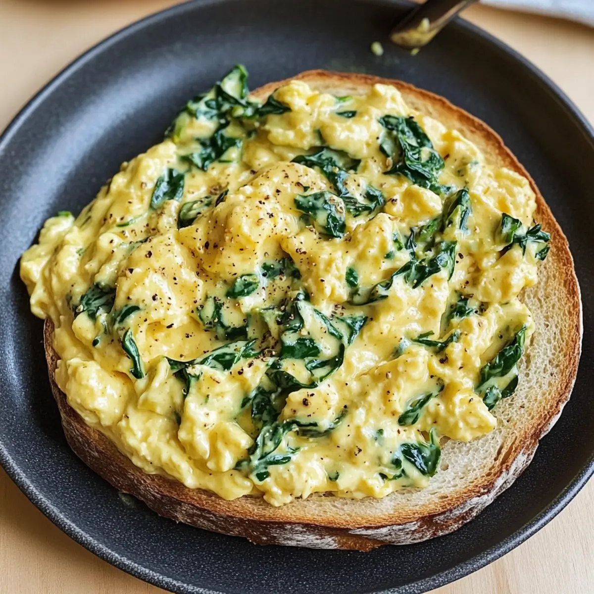 Letztens saß ich entspannt am Küchentisch, als mir der verlockende Duft von geschmortem Knoblauch und frischem Spinat in die Nase stieg. Kaum konnte ich an mich halten – die Idee für cremige Spinat Rühreier war geboren! Diese Kombination aus zarten Eiern und dem luxuriösen Geschmack von saftigem Spinat, angereichert mit Aromen von Schalotten, ist nicht nur ein schnelles Frühstück, sondern auch perfekt für ein schnelles Mittagessen oder ein leichtes Abendessen. In weniger als 30 Minuten zauberst du ein Gericht auf den Tisch, das sowohl herzhaft als auch sättigend ist. Und mal ehrlich, wer könnte einem so geschmackvollen und cremigen Erlebnis widerstehen? Neugierig, wie du dieses köstliche Frühstück selbst zubereiten kannst? Lass uns direkt in das Rezept eintauchen! Warum sind cremige Spinat Rühreier so beliebt? Einfachheit: Die Zubereitung ist kinderleicht und benötigt nur grundlegende Kochkünste. Reiche Aromen: Die Kombination von frischem Spinat, Knoblauch und Schalotten sorgt für einen luxuriösen Geschmack, der deinen Gaumen verwöhnt. Vielseitig: Ob zum Frühstück, Mittagessen oder Abendessen – diese Rühreier passen zu jeder Gelegenheit! Schnell und Sättigend: In weniger als 30 Minuten ist dein Proteinbombe fertig und bereit zum Genießen. Gesund: Mit vielen Vitaminen aus dem Spinat ist dieses Gericht nicht nur lecker, sondern auch nahrhaft. Ein Genuss: Das cremige Erlebnis in Kombination mit knusprigem Toast wird deine Familie begeistern! Probiere auch andere Varianten wie Vegetarische Rühreier mit Feta für einen zusätzlichen Geschmackskick! Zutaten für cremige Spinat Rühreier • Hier sind die wichtigsten Zutaten, um cremige Spinat Rühreier zuzubereiten: Für die Rühreier Schalotte – Sie verleiht eine aromatische Süße und Tiefe; Zwiebel ist ein geeigneter Ersatz. Knoblauch – Intensiviert die herzhaften Noten; frischer Knoblauch ist am besten, aber auch Knoblauchpulver geht schnell. Babyspinat – Bietet frisches Grün und Nährstoffe; kann durch Grünkohl oder Mangold ersetzt werden, wobei sich die Garzeiten ändern können. Große Eier – Die Basis des Rezepts, die Struktur und Protein liefert; bei Bedarf können mittlere Eier verwendet werden. Koscheres Salz – Intensiviert den Geschmack; Meersalz oder Tafelsalz sind ebenfalls verwendbar, jedoch sparsam. Frisch gemahlener schwarzer Pfeffer – Fügt eine subtile Schärfe hinzu; weißer Pfeffer kann milder sein. Ungesalzene Butter – Sorgt für Reichhaltigkeit und verhindert das Ankleben; Olivenöl ist eine Option für eine milchfreie Variante. Schlagsahne – Verleiht den Eiern eine samtige Textur; Halb und Halb kann verwendet werden, macht die Eier aber weniger cremig. Muskatnuss (optional) – Fügt eine warme, tiefgründige Note hinzu; kann weggelassen werden, um den Geschmack zu vereinfachen. Dicke Toastscheiben – Perfekt zum Servieren; Vollkornbrot oder Brioche verleihen zusätzlichen Geschmack. Diese Zutaten machen deine cremigen Spinat Rühreier zu einem luxuriösen Erlebnis, das deine Familie begeistern wird! Schritt-für-Schritt-Anleitung für cremige Spinat Rühreier Schritt 1: Vorbereiten der Zutaten Schäle und hacke die Schalotte und den Knoblauch fein. Wasche den Babyspinat gründlich und hacke ihn grob. Diese Vorbereitungen sollten nicht länger als 5 Minuten dauern, um die Frische der Zutaten zu bewahren. Stelle sicher, dass alles bereit ist, bevor du mit dem Kochen beginnst. Schritt 2: Eier schlagen Schlage in einer mittelgroßen Schüssel die großen Eier zusammen mit Koscherem Salz und frisch gemahlenem schwarzem Pfeffer. Verwende einen Schneebesen, um die Mischung so lange zu schlagen, bis sie leicht schaumig und gut durchmischt ist, was etwa 2 Minuten dauern sollte. Die Eier sind dann bereit zum Kochen. Schritt 3: Butter in der Pfanne erhitzen Erhitze eine große beschichtete Pfanne bei mittlerer Hitze. Füge 1–2 Esslöffel ungesalzene Butter hinzu und warte, bis sie schmilzt und beginnt zu schäumen, was normalerweise etwa 1–2 Minuten dauert. Achte darauf, die Butter nicht zu braun werden zu lassen, da sie andernfalls einen bitteren Geschmack entwickeln kann. Schritt 4: Schalotte und Knoblauch anbraten Gib die gehackten Schalotten und den Knoblauch in die Pfanne. Sauté die Mischung unter gelegentlichem Rühren für etwa 3–5 Minuten, bis die Schalotten glasig und duftend sind. Achte darauf, dass der Knoblauch nicht anbrennt, da er sonst bitter werden kann. Schritt 5: Spinat hinzufügen Füge den grob gehackten Spinat in die Pfanne zu den Schalotten und dem Knoblauch hinzu. Koche alles für etwa 1 Minute weiter, bis der Spinat zusammengefallen und leuchtend grün ist. Rühre gelegentlich um, damit alles gleichmäßig gegart wird. Schritt 6: Eier in die Pfanne gießen Gieße die vorbereitete Eiermischung über das Spinatgemisch in der Pfanne, indem du die Pfanne sanft schwenkst, um den Boden gleichmäßig zu bedecken. Lass die Eier ungestört für 2–3 Minuten bei mittlerer Hitze garen, bis die Ränder fest sind und die Mitte noch leicht wackelt. Schritt 7: Eier sanft rühren Verwende einen Spatel, um die Eier vorsichtig zu falten und von den Rändern zur Mitte zu schieben. Wiederhole diesen Vorgang für etwa 1–2 Minuten, bis die Eier größtenteils gekocht, aber noch leicht feucht sind. Achte darauf, die cremige Textur der Rühreier zu bewahren. Schritt 8: Schlagsahne und Gewürze hinzufügen Gieße die schwere Sahne in die Pfanne und füge nach Belieben weitere Gewürze oder eine Prise Muskatnuss hinzu. Rühre alles sanft ein und lasse die Eier weitere 30 Sekunden garen, bis sie fluffig und cremig sind. Passe den Geschmack nach deinem Wunsch an. Schritt 9: Anrichten und Servieren Verteile die cremigen Spinat Rühreier auf dicke Toastscheiben und serviere sie sofort. Achte darauf, die Eier garniert mit etwas frisch gemahlenem Pfeffer oder einer weiteren Prise Muskatnuss anzurichten. Genieße diese köstliche Mischung aus Gastronomie und Komfort in einem Bisse