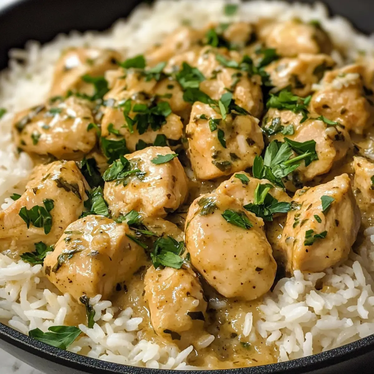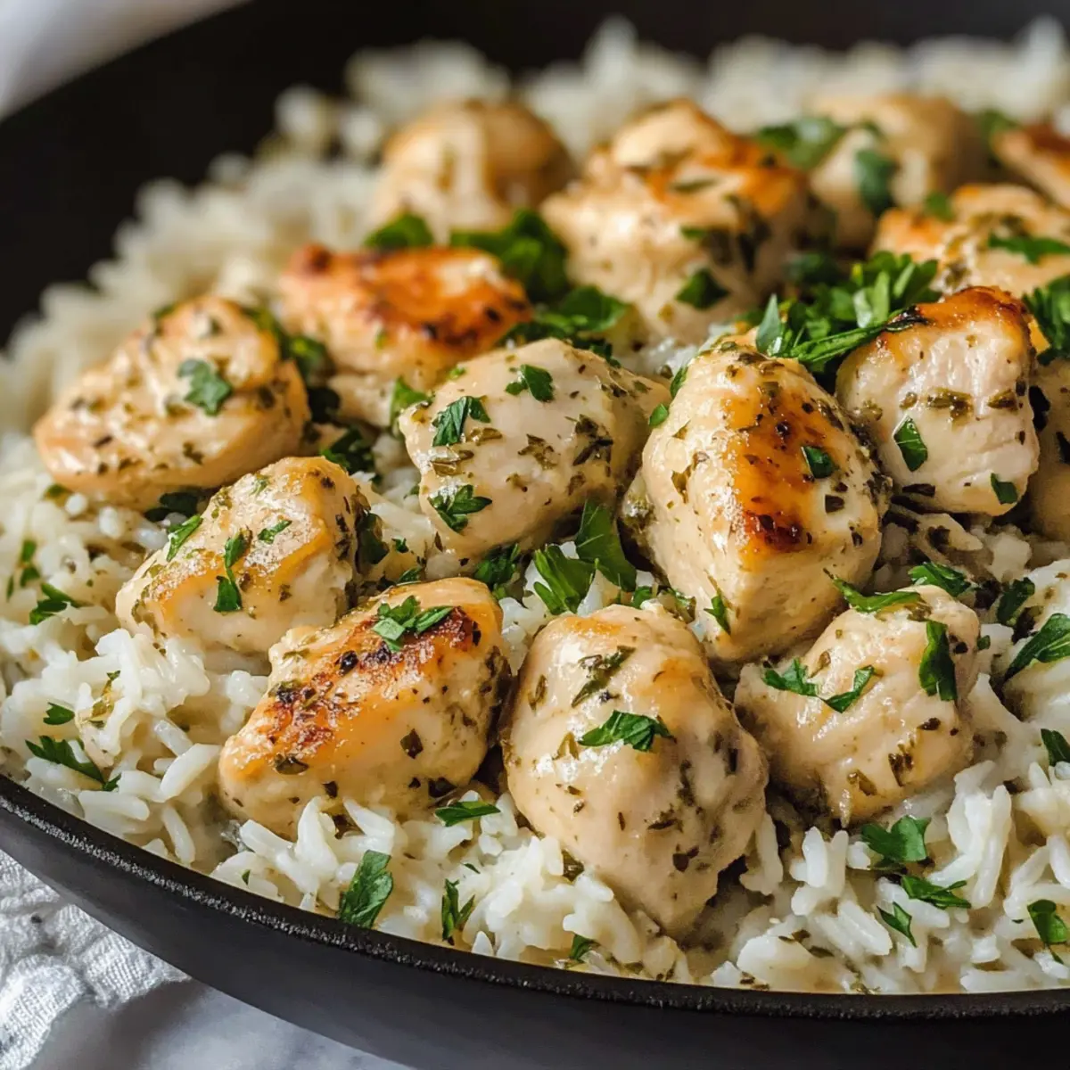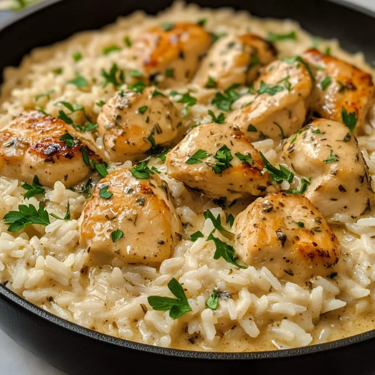 Als die ersten Aromen in meiner Küche aufstiegen, fühlte ich mich wie in einem kleinen italienischen Bistro. Das cremige Kräuterhühnchen & Basmati-Reis ist nicht nur ein Gericht; es ist ein Erlebnis, das die Herzen derjenigen erwärmt, die sich nach herzhaftem Komfortessen sehnen. Diese einfache One-Pan-Mahlzeit vereint zartes Hühnchen in einer reichhaltigen, geschmackvollen Sauce, während der Basmati-Reis all die köstlichen Aromen aufsaugt. Innerhalb einer Stunde zauberst du ein schnelles Abendessen, das selbst an den hektischsten Tagen ein Erfolg ist. Du wirst begeistert sein, wie leicht es ist, deine Familie oder Freunde mit einem Gericht zu verwöhnen, das aussieht und schmeckt, als käme es direkt aus dem Restaurant! Neugierig, wie du dieses Rezept ganz nach deinem Geschmack anpassen kannst? Wie kannst du dieses Rezept anpassen? Vielseitigkeit: Dieses Rezept bietet unendliche Möglichkeiten! Du kannst verschiedene Proteine wie Tofu oder Garnelen wählen, je nach Vorliebe. Schnelligkeit: Mit weniger als einer Stunde Zubereitungszeit ist es ideal für hektische Wochentage. Kreativität: Probiere frische Kräuter oder verschiedene Gemüsesorten wie Spinat oder Paprika zu integrieren, um den Nährwert und die Farben zu erhöhen. Einfachheit: Egal, ob du ein Küchenneuling oder ein erfahrener Koch bist, diese One-Pan-Mahlzeit macht das Kochen zum Kinderspiel. Herzhaft & Komfortabel: Der cremige Geschmack und die herzhaften Aromen entführen dich gleich in die heimische Küche. Mit Tipps zur Aufbewahrung und sogar zur Lagerung für spätere Abendessen kann dieses Rezept dein neuer Lieblingsklassiker werden! Und wenn du wirklich kreativ werden möchtest, entdecke auch unsere dairy-free Versionsoptionen. Cremiges Kräuterhühnchen Zutaten • Für alle Liebhaber von köstlichem, selbstgemachtem Komfortessen! Für das Hühnchen Olivenöl – sorgt für Geschmack und wird zum Anbraten des Hühns verwendet; kann durch neutrales Öl ersetzt werden. Hähnchenbrust oder -schenkel (entbeint und ohne Haut) – die Hauptproteinquelle, die Feuchtigkeit und Herzhaftigkeit bietet; Hähnchenschenkel haben mehr Geschmack. Knoblauchpulver – verstärkt den herzhaften Geschmack; frischer Knoblauch kann für ein intensiveres Aroma verwendet werden. Zwiebelpulver – fügt Tiefe hinzu; kann durch frische gewürfelte Zwiebeln ersetzt werden. Italienische Gewürzmischung – eine Kombination von Kräutern für zusätzlichen Geschmack; frische Kräuter sorgen für einen lebendigeren Duft. Paprika – verleiht eine subtile Rauchnote und Farbe. Salz & schwarzer Pfeffer – unverzichtbare Gewürze; nach Belieben anpassen. Für die Sauce Butter – zum Dünsten der Aromaten; kann durch Margarine ersetzt werden, um die Sauce milchfrei zu gestalten. Frischer Knoblauch (gehackt) – für einen intensiveren Geschmack; verwende ein Stück für jede 1/8 Teelöffel Knoblauchpulver. Zwiebel (fein gewürfelt) – fügt Textur und Süße hinzu; Schalotten sind eine gute Alternative. Schlagsahne – sorgt für die cremige Konsistenz; für eine leichtere Version kann auch halb und halb verwendet werden. Kokosmilch ist eine milchfreie Alternative. Hühnerbrühe – lässt das Reis und das Huhn köcheln und verleiht Geschmack; Knochenbrühe ist eine reichhaltigere Substitute. Getrockneter Thymian, Rosmarin, Oregano – Kräuter für mehr Geschmacksvielfalt; durch frische Kräuter ersetzen (drei Mal so viel verwenden). Parmesankäse (gerieben) – sorgt für Umami und Cremigkeit; Nährhefe kann als milchfreie Variante verwendet werden. Für den Reis Basmati-Reis – die Basis des Gerichts; gewählt aufgrund seiner Fluffigkeit; kann durch Jasmin- oder Langkornreis ersetzt werden. Salz & schwarzer Pfeffer (für den Reis) – grundlegende Würzung für das Kochen des Reises. Für die Garnitur Frische Petersilie (gehackt) – für eine farbenfrohe und frische Garnitur. Zitronenschale (optional) – hebt den Gesamtgeschmack des Gerichts hervor und kann als optionale Garnitur verwendet werden. Mit diesen Zutaten bist du bereit, ein traumhaftes, cremiges Kräuterhühnchen mit Basmati-Reis zu kreieren – ein Gericht, das Comfort Food neu definiert! Schritt-für-Schritt-Anleitung für Cremiges Kräuterhühnchen & Basmati-Reis Schritt 1: Hähnchen würzen und anbraten Würze die Hähnchenbrust oder -schenkel großzügig mit Knoblauchpulver, Zwiebelpulver, italienischer Gewürzmischung, Paprika, Salz und schwarzem Pfeffer. Erhitze in einer großen Pfanne bei mittelhoher Temperatur etwas Olivenöl und brate das Hühnchen 6-7 Minuten pro Seite an, bis es goldbraun und durchgegart ist. Nimm das Hähnchen aus der Pfanne und stelle es zur Seite. Schritt 2: Zwiebeln und Knoblauch anbraten In derselben Pfanne die Butter schmelzen und die fein gewürfelte Zwiebel hinzufügen. Sauté bei mittlerer Hitze für etwa 3-4 Minuten, bis die Zwiebel weich und durchsichtig ist. Füge den gehackten Knoblauch hinzu und koche ihn etwa 1 Minute lang, bis er aromatisch wird. Schritt 3: Reis hinzufügen und Brühe einrühren Gib den abgespülten Basmati-Reis in die Pfanne und rühre ihn etwa 1 Minute lang um, damit er mit den Aromen bedeckt ist. Gieße dann die Hühnerbrühe hinein, würze mit Salz und Pfeffer und vermische alles gut. Lass die Mischung zum Kochen bringen und senke dann die Hitze. Schritt 4: Cremige Sauce herstellen Rühre die Schlagsahne, getrockneten Thymian, Rosmarin und Oregano sowie den geriebenen Parmesan in die Pfanne ein. Lass die Sauce unter gelegentlichem Rühren köcheln, bis der Käse geschmolzen und die Sauce schön cremig ist, etwa 5 Minuten. Schritt 5: Hühnchen zurückgeben und köcheln lassen Lege das angebratene Hähnchen wieder in die Pfanne, decke die Pfanne ab und lasse das Ganze bei niedriger Hitze für 20 Minuten köcheln, bis der Reis gar und die Innentemperatur des Huhns 75°C beträgt. Achte darauf, dass der Reis die Flüssigkeit gut aufnimmt. Schritt 6: Anrichten und garnieren Sobald alles fertig ist, serviere da