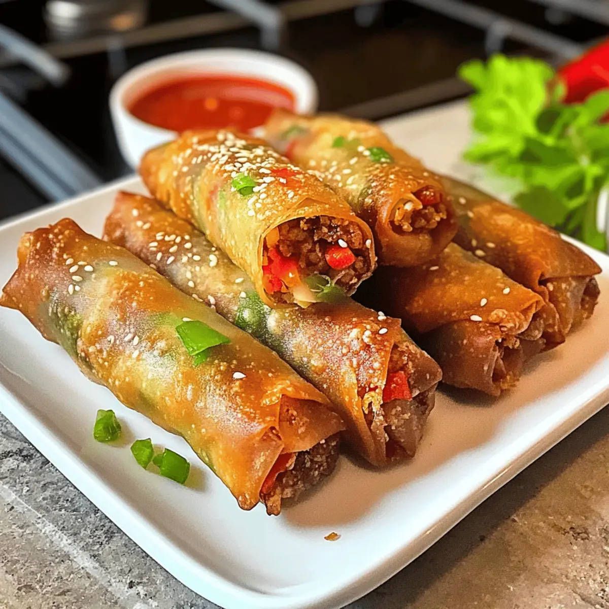 Hast du schon einmal den verlockenden Duft von frisch zubereiteten Frühlingsrollen in der Luft gespürt? Mit diesen Crispy Frühlingsrollen aus dem Airfryer bringst du dieses asiatische Geschmackserlebnis direkt in deine Küche. Sie sind nicht nur in nur 16 Minuten zubereitet, sondern auch herrlich knusprig und enthalten dank der minimalen Ölmenge eine gesunde Komponente. Diese köstlichen Rollen sind ideal für das Familienabendessen oder wenn Gäste zu Besuch sind – und das Beste daran? Du kannst die Füllung ganz nach deinem Geschmack anpassen, sei es mit zartem Hackfleisch oder einer veganen Variante aus Tofu. Bereit, mit mir in die Welt der knusprigen Frühlingsrollen zu tauchen? Warum wirst du diese Frühlingsrollen lieben? Einfachheit: Die Zubereitung ist kinderleicht und erfordert nur wenige Schritte, die auch Neuankömmlinge in der Küche sicher meistern. Vielseitige Füllungen: Ob mit herzhaftem Hackfleisch oder einer köstlichen veganen Variante – du kannst die Füllung ganz nach deinem Geschmack anpassen! Knuspriger Genuss: Im Airfryer gebacken, erhältst du das perfekte knusprige Ergebnis ohne viel Öl – ein gesunder Genuss für die ganze Familie. Schnelligkeit: In nur 16 Minuten sind die Frühlingsrollen fertig, ideal für spontane Essensvorbereitungen oder überraschende Gäste. Crowd-Pleaser: Jeder liebt diese goldbraunen, aromatischen Frühlingsrollen, perfekt als Snack oder Hauptgericht! Probiere sie mit einem frischen Salat oder einer herzhaften Gemüsepanne. Crispy Frühlingsrollen Airfryer Zutaten • Hinweis: Diese Zutatenliste hilft dir, die perfekten Crispy Frühlingsrollen im Airfryer zuzubereiten! Für die Füllung • Reispapierblätter – Sie dienen als perfekte Hülle für deine Füllung; probiere auch andere Wrap-Alternativen aus. • Hackfleisch (Rind, Huhn oder vegan) – Hauptsource für Protein; für eine vegane Option kannst du Tofu verwenden. • Karotten (2 Stück, geraspelt) – Diese bringen Süße und Crunch; ersetze sie bei Bedarf durch Zucchini. • Rote Paprika (1 Stück, in feine Streifen geschnitten) – Fügen Geschmack und Farbe hinzu; auch Pilze sind eine tolle Alternative. • Frühlingszwiebeln (3 Stück, fein gehackt) – Sie bringen Frische in die Füllung; Zwiebeln oder Lauch sind ebenfalls geeignet. • Ei (1 Stück) – Dient als Bindemittel für die Füllung; ein Leinsamen-Ei ist eine tolle veganer Option. • Sojasauce (6 EL) – Für Würze und Geschmack; verwende Tamari für eine glutenfreie Variante. • Sesamöl (1 EL) – Verleiht ein nussiges Aroma; du kannst auch ein anderes Pflanzenöl verwenden. • Fischsauce (1 EL) – Stärkt das Umami; für die vegane Version ganz einfach weglassen. • Gerösteter Sesam (2 TL) – Für den zusätzlichen Crunch; Chiasamen sind eine mögliche Alternative. • Salz & Pfeffer nach Geschmack – Die Basisgewürze für die perfekte Füllung. Schritt-für-Schritt-Anleitung für Crispy Frühlingsrollen Airfryer Step 1: Füllung vorbereiten Erhitze eine Pfanne auf mittlerer Hitze und gib das Hackfleisch hinein. Brate es unter gelegentlichem Rühren an, bis es durchgegart ist, etwa 5–7 Minuten. Lösche das Fleisch dann mit 4 Esslöffeln Sojasauce ab, damit es zusätzliches Aroma erhält. Step 2: Gemüse schneiden Während das Fleisch brät, bereite das Gemüse vor. Schäle die Karotten und raspel sie fein. Schneide die rote Paprika in dünne Streifen und hacke die Frühlingszwiebeln. Stelle sicher, dass alles gleichmäßig geschnitten ist, damit es später gut in die Frühlingsrollen passt. Step 3: Mischen Nimm eine große Schüssel und vermische das angebratene Hackfleisch mit dem geschnittenen Gemüse, dem Ei, der restlichen Sojasauce, der Fischsauce, dem Sesamöl und einer Prise Salz und Pfeffer. Rühre alles gut um, bis die Zutaten gleichmäßig verteilt sind und eine gut kombinierte Füllung entsteht. Step 4: Reispapier vorbereiten Fülle eine flache Schale mit warmem Wasser und tauche ein Reispapierblatt für etwa 10 Sekunden ein, bis es weich und biegsam ist. Achte darauf, dass du das Blatt nicht zu lange einweichst, sonst wird es zu zerbrechlich. Step 5: Füllen Lege das eingeweichte Reispapier auf eine saubere Arbeitsfläche. Platziere 1–2 Esslöffel der Füllung in der Mitte. Klappe die Seiten des Reispapiers ein und rolle es dann von unten auf, um eine feste Rolle zu formen. Wiederhole diesen Schritt, bis die gesamte Füllung aufgebraucht ist. Step 6: Kochen Vorheizen des Airfryers auf 200 °C. Lege die gefüllten Frühlingsrollen in den Korb des Airfryers, dabei darauf achten, dass sie sich nicht berühren. Backe die Rollen für 10–16 Minuten, bis sie goldbraun und knusprig sind. Wende sie nach der Hälfte der Garzeit, um eine gleichmäßige Bräunung zu gewährleisten. Step 7: Servieren Sobald die Crispy Frühlingsrollen aus dem Airfryer kommen, bestreue sie mit geröstetem Sesam und frisch gehackten Frühlingszwiebeln. Serviere sie heiß mit einer leckeren süß-sauren Sauce oder einer Erdnusssauce für den ultimativen Genuss. Crispy Frühlingsrollen Airfryer Variationen Lass deiner Kreativität freien Lauf und passe dieses Rezept nach deinem Geschmack an! Vegane Füllung: Verwende Tofu und eine Vielzahl von buntem Gemüse für eine köstliche vegane Option. Scharf: Füge frische Chilis oder Chilipulver zu deiner Füllung hinzu, um die Frühlingsrollen ordentlich aufzupeppen. Käse-Fans: Gib geriebenen Käse wie Cheddar oder Mozzarella in die Füllung, um für eine schmelzende Überraschung zu sorgen. Der Kombination aus herzhaft und cremig wird niemand widerstehen können! Kräuter-Boost: Verfeinere deine Füllung mit frischen Kräutern wie Koriander oder Basilikum für zusätzlichen Geschmack und Frische. Glutenfrei: Ersetze die Sojasauce durch Tamari, um diese leckeren Rollen glutenfrei zu genießen. Erdnuss-Sauce: Anstelle von süß-saurer Sauce, serviere deine Frühlingsrollen mit einer cremigen Erdnuss-Sauce. Das verleiht dem Gericht einen nussigen Kick. Mehr 