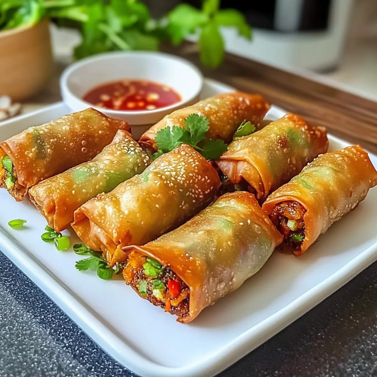 Die knusprigen Geräusche der frisch zubereiteten Frühlingsrollen erinnern mich an lebhafte Märkte, wo köstlicher Duft und fröhliches Treiben zusammenkommen. Mit meinem Rezept für Crispy Frühlingsrollen in der Heißluftfritteuse bringe ich einfaches, schnelles und gesundes Kochen direkt zu dir nach Hause! Diese kleinen Leckerbissen sind in nur 16 Minuten zubereitet und benötigen dabei minimal Öl, was sie besonders familienfreundlich macht. Zudem kannst du die Füllung ganz nach deinem Geschmack variieren – egal, ob mit saftigem Rindfleisch, zartem Huhn oder einer veganen Alternative. Bereite dich darauf vor, neue Ideen für deine nächsten Feierabendgerichte oder Versammlungen zu entdecken! Bist du bereit, diese unwiderstehliche Kombination aus Knusprigkeit und Geschmack auszuprobieren? Warum sind diese Frühlingsrollen so besonders? Knusprig und lecker: Mit dem Einsatz der Heißluftfritteuse erhältst du eine goldbraune, knusprige Textur ohne viel Öl – ein gesunder Genuss! Vielfältige Füllungen: Egal, ob du Hackfleisch, Hühnchen oder eine vegane Variante wählst, diese Frühlingsrollen bieten unendliche Möglichkeiten für jeden Gaumen. Schnell zubereitet: In nur 16 Minuten kannst du diese köstlichen Snacks servieren, ideal für schnelle Abendessen oder spontane Gäste! Familienfreundlich: Kinder lieben sie und Erwachsene auch – eine tolle Möglichkeit, die ganze Familie am Esstisch zusammenzubringen. Vorbereitung leicht gemacht: Du kannst die Rollen im Voraus zubereiten und vor dem Servieren direkt in die Heißluftfritteuse geben. Perfekt, um Stress in der Küche zu vermeiden! Entdecke auch meine Zimt Croissants Airfryer, um dein Rezeptrepertoire zu erweitern! Crispy Frühlingsrollen Heißluftfritteuse Zutaten • Entdecke die perfekten Zutaten für deine knusprigen Frühlingsrollen! Reispapierblätter – Essentieller Wrap für deine Füllung; du kannst auch Reispapier oder Frühlingsrollenteig verwenden. Hackfleisch (Rind, Huhn oder vegan) – Vertragegen deinen Wünschen, zur Bereicherung der Füllung; wähle für eine leichtere Option gemahlenes Huhn oder pflanzliches Protein. Karotten (geraspelt) – Verleiht Süße und Feuchtigkeit; Zucchini oder Paprika können für eine andere Textur eingesetzt werden. Rote Paprika (in feine Streifen geschnitten) – Sorgt für Farbe und etwas Knusprigkeit; wähle auch gelbe oder grüne Paprika als Alternativen. Frühlingszwiebeln (fein gehackt) – Liefert einen milden Zwiebelgeschmack; für eine Variation probiere Frühlingszwiebeln oder Schnittlauch. Ei – Bindet die Füllung zusammen; für eine vegane Variante kann das Ei weggelassen oder durch ein Leinsamen-Ei ersetzt werden. Sojasauce – Verstärkt den Umami-Geschmack; wähle natriumarme Sojasauce für eine gesündere Option. Sesamöl – Fügt ein nussiges Aroma hinzu; ersetze es bei Bedarf durch Raps- oder Olivenöl. Fischsauce – Intensiviert den Geschmack; weglassen für vegetarische/vegane Variationen oder durch Sojasauce ersetzen. Gerösteter Sesam – Für die Garnitur; sorgt für zusätzlichen Geschmack und Textur; kann weggelassen werden, wenn nicht verfügbar. Salz & Pfeffer – Zum Abschmecken nach Belieben. Mit diesen Zutaten bereitest du die köstlichsten Crispy Frühlingsrollen Heißluftfritteuse zu, die du je probiert hast! Step-by-Step Instructions für Crispy Frühlingsrollen Heißluftfritteuse Step 1: Fleisch anbraten In einer Pfanne erhitzt du etwas Öl und brätst das Hackfleisch (Rind oder Huhn) bei mittlerer Hitze an, bis es gut durchgegart und braun ist. Dies dauert etwa 5-7 Minuten. Füge 4 Esslöffel Sojasauce hinzu, um das Fleisch zu deglacieren, und rühre alles gut um. Step 2: Gemüse vorbereiten Während das Fleisch brät, wasche und schäle die Karotten, raspel sie und schneide die rote Paprika in feine Streifen. Hacke ebenfalls die Frühlingszwiebeln. Vermische die vorbereiteten Gemüsesorten in einer Schüssel mit dem angebratenen Fleisch, dem Ei, Soyasauce, Fischsauce, Sesamöl sowie Salz und Pfeffer, bis alles gut vermengt ist. Step 3: Reispapier vorbereiten Fülle eine flache Schüssel mit warmem Wasser und lege ein Reispapierblatt etwa 10 Sekunden lang hinein, bis es weich und biegsam wird. Lege das Blatt anschließend auf eine saubere, flache Oberfläche, bereit zum Füllen. Step 4: Füllen und rollen Nimm 1-2 Esslöffel der vorbereiteten Füllung und platziere sie im unteren Drittel des Reispapierblatts. Klappe die beiden Seiten des Reispapiers ein und rolle es fest auf, wobei du darauf achtest, die Füllung gut zu umschließen. Wiederhole den Vorgang mit dem restlichen Reispapier und der Füllung. Step 5: In der Heißluftfritteuse garen Heize die Heißluftfritteuse auf 200°C vor. Lege die gefüllten Frühlingsrollen in den Korb, wobei du darauf achtest, dass sie sich nicht berühren. Gare die Rollen für 10-16 Minuten, wende sie nach der Hälfte der Zeit, bis sie goldbraun und knusprig sind. Step 6: Servieren Nimm die Crispy Frühlingsrollen aus der Heißluftfritteuse und garniere sie nach Belieben mit geröstetem Sesam und gehackten Frühlingszwiebeln. Serviere die knusprigen Rollen mit einer süß-sauren Sauce oder deiner Lieblings-Dip-Sauce – ideal für einen leckeren Snack oder ein schnelles Abendessen! Crispy Frühlingsrollen Heißluftfritteuse Varianten Lass deiner Kreativität freien Lauf und passe dieses Rezept nach deinem Geschmack an! Die Möglichkeiten zur Individualisierung sind endlos. Vegan: Verwende anstelle von Hackfleisch Tofu oder Seitan für eine herzhaft vegetarische Füllung. Das verleiht den Rollen eine wunderbare Konsistenz. Zusätzliche Gewürze: Experimentiere mit Ingwer oder Chili-Flocken, um eine wohlschmeckende, scharfe Note hinzuzufügen. Perfekt, wenn du es gerne würzig magst! Leichte Füllungen: Probiere eine Kombination aus Quinoa und Gemüse für eine gesündere Variante. Diese Füllung ist nicht nur nährstoffreich, sondern auch köstlich! Frittierte Frühlingsrollen: Für eine klassische Va