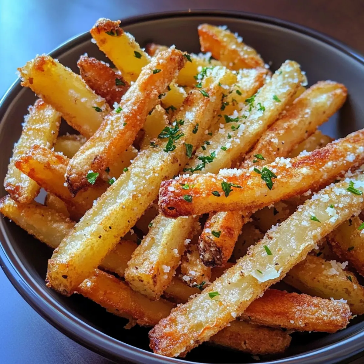 Bewahre die übrig gebliebenen Pommes in einem luftdichten Behälter im Kühlschrank auf. Sie bleiben dort frisch und knusprig für bis zu 3 Tage. Um die beste Textur beim Aufwärmen zu erreichen, empfehle ich, sie im Ofen bei 180 °C für etwa 10–15 Minuten zu erhitzen, anstatt sie in der Mikrowelle aufzuwärmen.