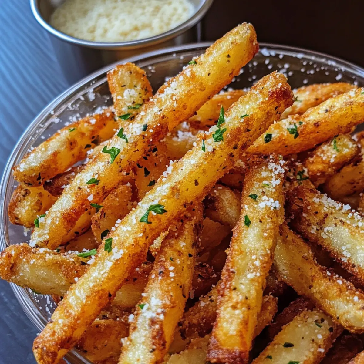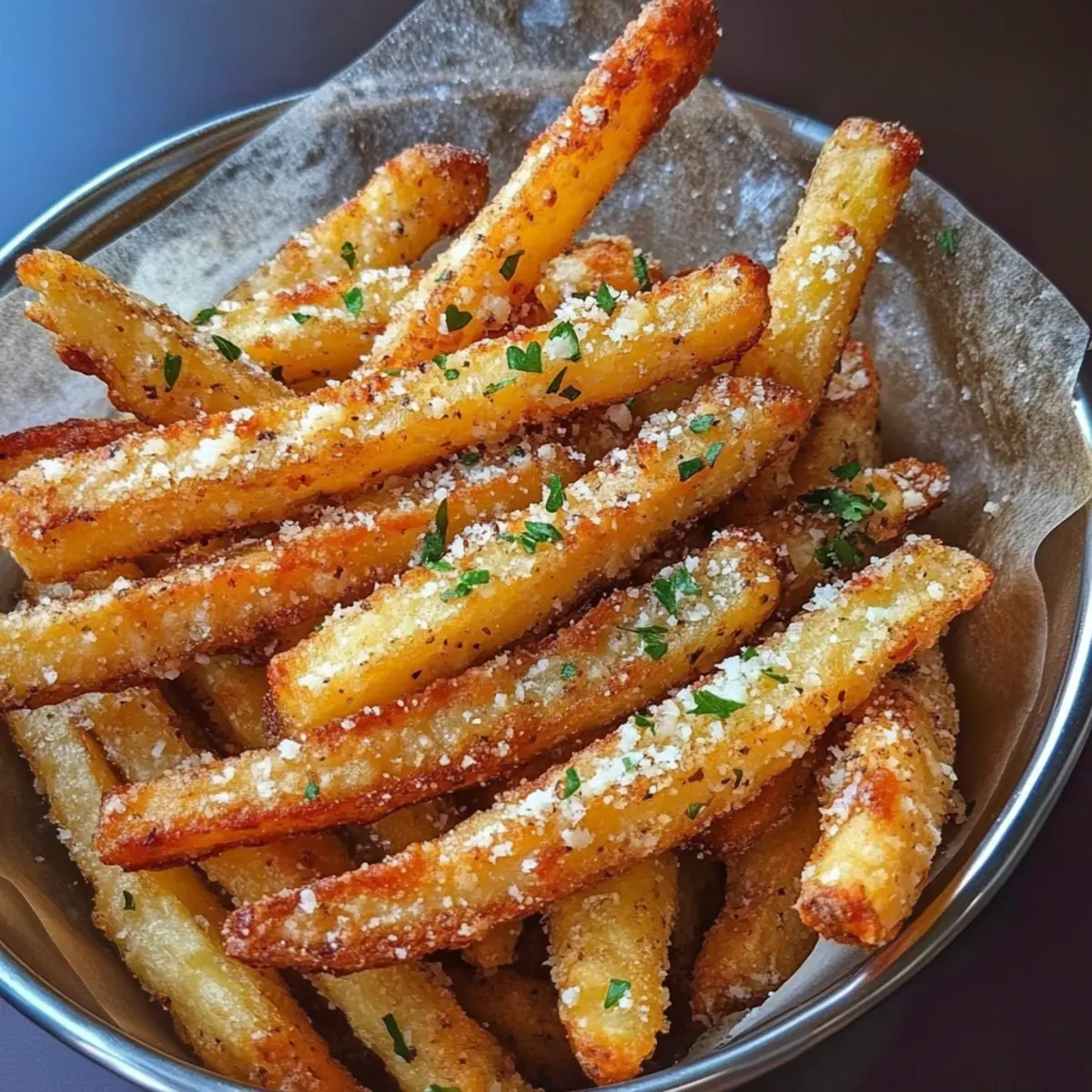 • Käsevielfalt: Probiere statt Parmesan geriebenen Cheddar oder Gouda. Diese Käsesorten verleihen den Pommes eine herzhafte Note, die einfach unwiderstehlich ist.