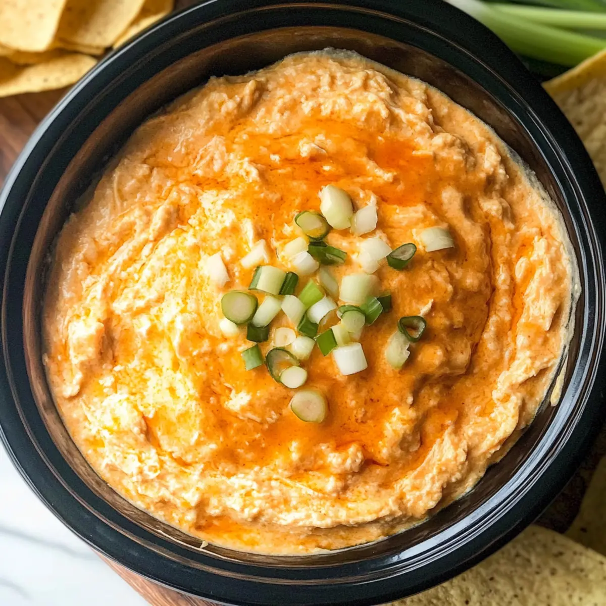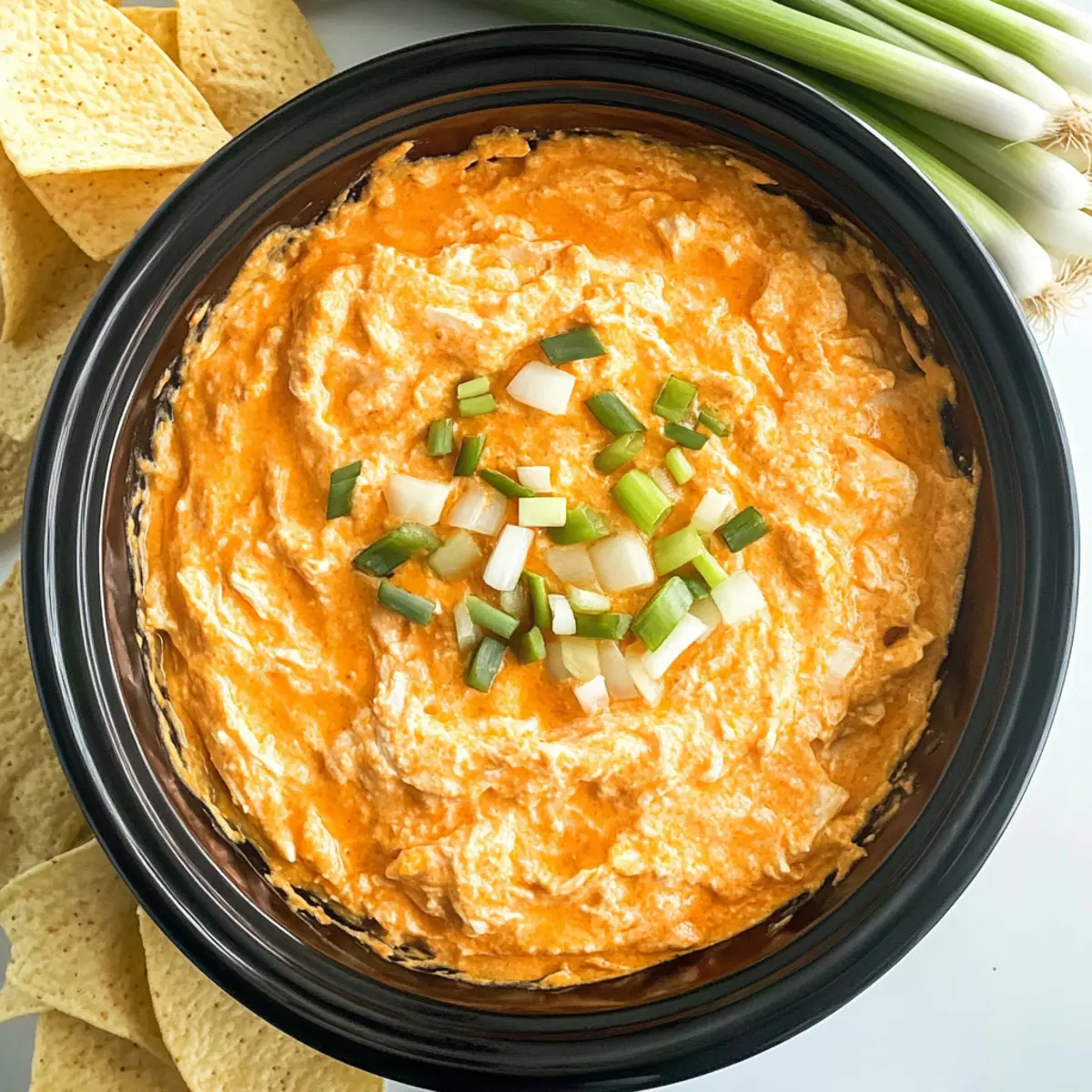 Während ich in der Küche stand und die Aromen des Essens wahrnahm, blitzte mir die Erinnerung an den letzten Spieletag mit Freunden durch den Kopf – das Lachen, die Aufregung und natürlich das unverzichtbare Essen! Diese Erfahrung inspirierte mich, das perfekte Rezept für den Genuss in geselliger Runde zu kreieren: den Crockpot Buffalo Hühnchen Dip. Diese köstliche Mischung aus würziger Buffalo-Note und cremigem Ranch-Dressing macht diesen Dip zu einem absoluten Hit. Er ist nicht nur eine wahre Gaumenfreude, sondern auch kinderleicht zuzubereiten und perfekt für jeden Anlass – sei es ein entspannter Abend zu Hause oder ein feierliches Treffen mit Freunden. Mit cremigem Frischkäse und würzigem Cheddar sorgt der Dip für ein rundum gelungenes Geschmackserlebnis. Neugierig, wie dieses Rezept eure nächste Zusammenkunft zum Schwingen bringt? Warum wird dieser Dip dein Favorit? Köstliche Aromen: Der Crockpot Buffalo Hühnchen Dip kombiniert perfekt würzige Buffalo-Sauce mit mildem Ranch-Dressing – ein wahres Geschmackserlebnis! Einfache Zubereitung: Dank des Crockpots ist die Zubereitung denkbar einfach. Alles reinwerfen, warten und genießen! Geselliges Essen: Ideal für Partys und Spieltage – dieser Dip sorgt immer für gute Laune in der Runde. Vielseitig: Ob mit Chips, Gemüse oder Baguette, du kannst ihn nach Belieben servieren. Käseliebhaber aufgepasst: Die schmelzende Käsekombination aus Frischkäse und Cheddar sorgt für eine cremige Konsistenz, die es schwer macht, nicht nach einem weiteren Löffel zu greifen. Entdecke noch mehr Dips für deine nächste Feiern, wie unseren schnellen Guacamole-Dip! Crockpot Buffalo Hühnchen Dip Zutaten Für den Dip: Zerkleinertes gekochtes Hühnchen – liefert das Hauptprotein und gibt dem Dip eine kräftige Basis; achte darauf, dass das Hühnchen bereits gekocht ist. Frischkäse – sorgt für eine cremige Textur; stelle sicher, dass er vollständig weich ist, um ein gleichmäßiges Mischen zu ermöglichen. Ranch-Dressing – bringt eine kühle, würzige Note ins Spiel; es balanciert die Schärfe der Buffalo-Sauce perfekt aus. Buffalo-Sauce – fügt den charakteristischen, pikanten Kick hinzu; passe die Menge nach deinem bevorzugten Schärfegrad an. Geriebener Cheddar-Käse – sorgt für zusätzlichen Geschmack und wird in zwei Portionen hinzugefügt, um Schichten aus geschmolzenem Käse zu schaffen. Zerbröckelter Blauschimmelkäse (optional) – für alle, die den intensiven Geschmack von Blauschimmelkäse mögen; dient als zusätzliche Garnierung. Geschnittene Frühlingszwiebeln (optional) – bringen Frische und eine milde Zwiebelnote als Garnitur ins Spiel. Dieser Crockpot Buffalo Hühnchen Dip ist die ideale Wahl, um deine nächste Feier zu einem vollen Erfolg zu machen! Schritt-für-Schritt-Anleitung für den Crockpot Buffalo Hühnchen Dip Step 1: Crockpot vorbereiten Spray deinen Crockpot leicht mit einer Antihaft-Sprühfolie ein, um sicherzustellen, dass der Dip nach dem Kochen leicht herausgenommen werden kann. Dies verhindert das Anhaften und erleichtert die Reinigung. Fange dann an, alle Zutaten vorzubereiten, und stelle sicher, dass das gekochte Hühnchen zerkleinert ist, um eine gleichmäßige Verteilung im Dip zu gewährleisten. Step 2: Zutaten kombinieren Gib das zerkleinerte Hühnchen, den weich gekneteten Frischkäse, das Ranch-Dressing, die Buffalo-Sauce und 1,5 Tassen des geriebenen Cheddar-Käses in den Crockpot. Rühre alles sanft mit einem Holzlöffel um, bis eine gleichmäßige, cremige Mischung entsteht. Achte darauf, dass der Frischkäse gut integriert ist, damit der Dip am Ende schön geschmeidig ist. Step 3: Kochen Decke den Crockpot für 2,5 bis 3 Stunden auf niedriger Stufe ab. Während dieser Zeit verschmelzen die Aromen und der Dip erhält seine cremige Konsistenz. Überprüfe gelegentlich, dass nichts am Boden anhaftet, und rühre nach etwa zwei Stunden vorsichtig um, um sicherzustellen, dass die Zutaten gleichmäßig erhitzt werden. Step 4: Käse hinzufügen Nach 2,5 Stunden Kochzeit, wenn der Dip schön blubbert, füge die restlichen geriebenen Cheddar-Käse darüber hinzu. Decke den Crockpot wieder ab und lasse den Käse zusätzlich 30 Minuten schmelzen, bis er goldbraun und blubbernd aussieht. Dies sorgt für eine extra schmelzige Käse-Schicht, die deinen Crockpot Buffalo Hühnchen Dip optimal abrundet. Step 5: Anrichten und Garnieren Nach der Kochzeit kannst du optional mit zerbröckeltem Blauschimmelkäse und geschnittenen Frühlingszwiebeln garnieren, um dem Dip eine frische Note zu verleihen. Serviere den Dip warm mit deinen liebsten Tortilla-Chips oder frischem Gemüse. Genieße den Geschmack und die Geselligkeit, die dein Crockpot Buffalo Hühnchen Dip zu jeder Zusammenkunft bringt! Varianten & Anpassungen für Crockpot Buffalo Hühnchen Dip Kreativität in der Küche ist der Schlüssel zu unvergesslichen Gerichten – lass deine Fantasie spielen und passe den Dip an deine Vorlieben an! Blauschimmelkäse: Ersetze das Ranch-Dressing durch Blauschimmelkäse-Dressing für ein intensiveres Aroma. Diese Anpassung bringt eine köstliche Tiefe in jeden Bissen. Würziger Cheddar: Nutze scharfen Cheddar oder sogar Pepper Jack, um dem Dip eine extra pikante Note zu verleihen. Denk daran, dass mehr Schärfe Freude und Wärme bringt! Gemüsesticks: Tausche Tortilla-Chips gegen knackige Gemüsesticks wie Karotten oder Sellerie. So wird der Dip zu einer gesünderen, schmackhaften Option. Pita-Brot: Serviere den Dip mit warmen Pita-Brotstücken. Dies ist eine großartige Möglichkeit, ein wenig Abwechslung zu bringen und einen herzhaften Genuss zu erzeugen. Erdnussbutter-Buffalo-Dip: Für ein wirklich außergewöhnliches Erlebnis, füge etwas cremige Erdnussbutter hinzu. Dies verleiht deinem Dip eine überraschende, cremige Dimension. Pulled Pork: Probiere, zerkleinertes Pulled Pork anstelle von Hühnchen zu verwenden. Dies wird deinem Dip einen rauchigen, herzhaften Geschmack verleihen. Vegane Va
