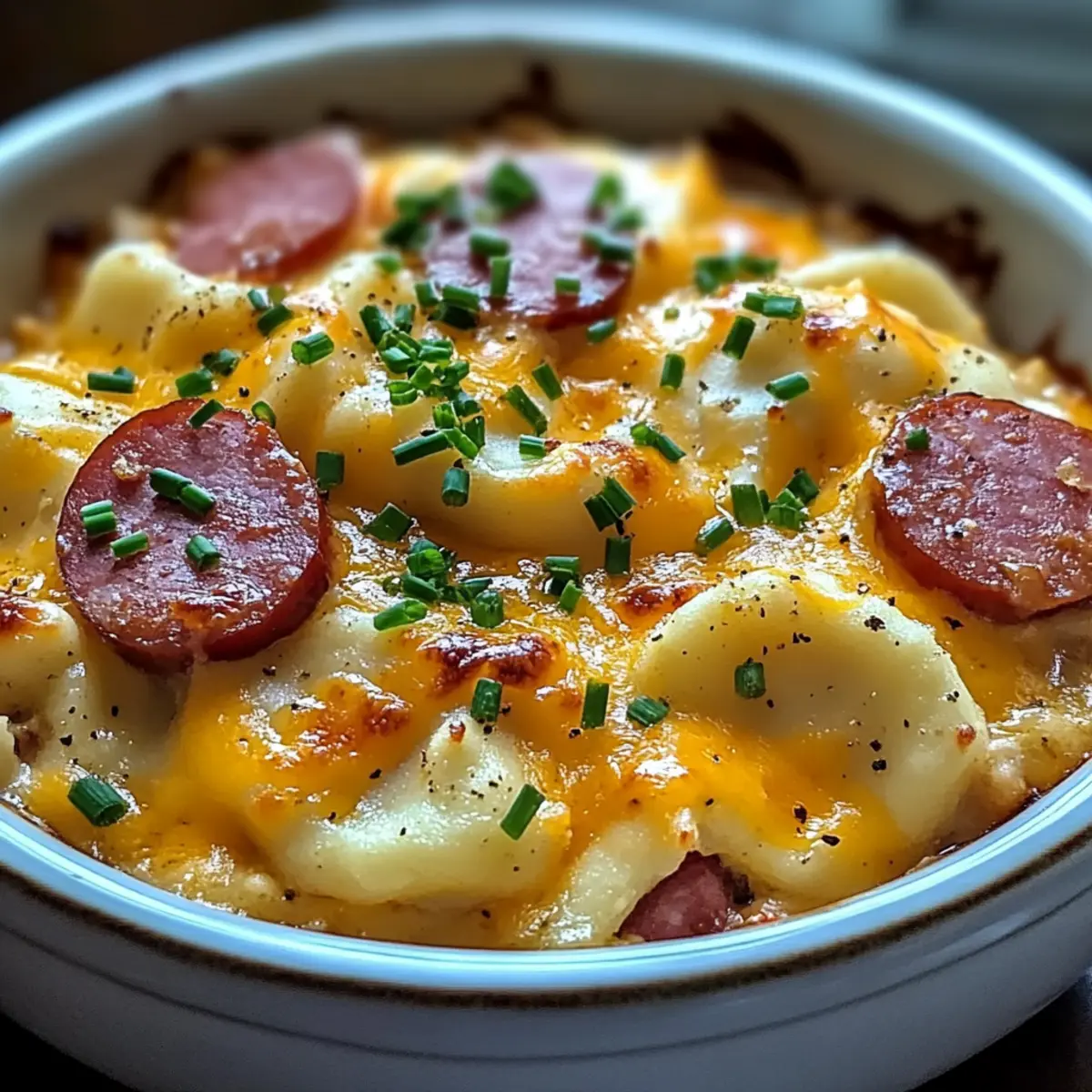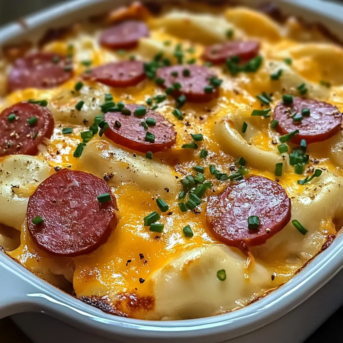 Während ich langsam die Aromen in meiner Küche entfalten lasse, erfüllt ein verlockender Duft den Raum – es ist der perfekte Moment für meine entspannte, aber äußerst geschmackvolle Rezeptwahl: den Crockpot Pierogi Auflauf mit Kielbasa. Diese einfache und dennoch herzliche Speise bringt nicht nur die nostalgischen Geschmäcker der osteuropäischen Küche auf den Tisch, sondern ist auch ein wahrer Genuss für die ganze Familie. Mit minimalem Aufwand sorgt dieses Gericht für maximalen Komfort und eine köstliche Zufriedenheit, die jedem Feinschmecker ein Lächeln ins Gesicht zaubert. Ob für geschäftige Wochentage oder als herzhaftes Wochenendeessen – der Auflauf lässt sich vorab zubereiten und bietet viele Anpassungsmöglichkeiten. Klingt das nicht nach einer perfekten Lösung, um dem schnellen Essen ein Ende zu setzen? Warum werden Sie dieses Rezept lieben? Einfachheit pur: Die Zubereitung ist unkompliziert und erfordert nur minimale Kochkünste, sodass jeder zum Chefkoch in seiner Küche werden kann. Vielseitigkeit: Passen Sie die Zutaten nach Ihrem Geschmack an, sei es durch die Zugabe von Gemüse oder das Experimentieren mit verschiedenen Käsesorten. Reichhaltiger, cremiger Geschmack: Die Kombination aus kielbasawurst und der herzhaften, cremigen Pilzsauce schmeckt einfach himmlisch und ist perfekt für eine gemütliche Familienmahlzeit. Zeitersparnis: Dank des Crockpots können Sie das Gericht einfach vorbereiten und währenddessen andere Dinge erledigen. Perfekt für hektische Wochentage! Familienfreundlich: Dieses Gericht wird sicher jeden am Tisch begeistern und es ist einfacher, als Sie denken – weniger Zeit in der Küche und mehr Zeit für die Familie! Crockpot Pierogi Auflauf Zutaten • Hier sind die Zutaten, die Sie für diesen köstlichen Crockpot Pierogi Auflauf mit Kielbasa benötigen: Für den Auflauf Gefrorene Pierogi – Die Basis des Gerichts; diese fertigen Teigtaschen sparen Zeit und sorgen für eine perfekte Konsistenz. Hinweis: Verwenden Sie frische Pierogi, aber passen Sie die Garzeit an, um ein Übergaren zu vermeiden. Kielbasa – Eine aromatische Wurst, die für einen herzhaften Geschmack sorgt; Sie können auch geräucherte Wurst oder Bratwurst verwenden, um Abwechslung zu schaffen. Sauerrahm – Fügt eine cremige, leicht säuerliche Note hinzu, die die Reichhaltigkeit ausgleicht; griechischer Joghurt ist eine gesündere Alternative. Zwiebel – Bringt süße, aromatische Aromen in das Gericht; Schalotten können für einen milderen Geschmack verwendet werden. Konservierte Champignoncremesuppe – Dient als der cremige Kern des Auflaufs; kann auch durch Hühner- oder Selleriesuppe ersetzt werden, um verschiedene Geschmäcker zu kreieren. Geriebener Cheddar-Käse – Sorgt für eine schmelzende, käsige Schicht; jeder schmelzbare Käse, wie Monterey Jack, eignet sich ebenfalls hervorragend. Butter – Reicht das Gericht an; kann weggelassen oder durch Olivenöl für eine leichtere Variante ersetzt werden. Salz und Pfeffer – Unverzichtbare Gewürze, um die Aromen zu intensivieren. Schnittlauch – Ein frischer Garniervorschlag, der das Gericht aufhellt; Petersilie ist ein guter Ersatz, wenn Schnittlauch nicht verfügbar ist. Schritt-für-Schritt-Anleitung für Crockpot Pierogi Auflauf mit Kielbasa Step 1: Crockpot vorbereiten Spray die Innenseite des Crockpots mit etwas Antihaft-Spray, damit der Auflauf sich später leicht herausnehmen lässt. Stelle sicher, dass der Crockpot sauber ist und bereit zum Befüllen. Dies ist die erste wichtige Schritt, um ein Ankleben der Zutaten zu vermeiden. Step 2: Pierogi schichten Legen Sie die Hälfte der gefrorenen Pierogi gleichmäßig auf den Boden des Crockpots. Achte darauf, dass sie die gesamte Fläche bedecken. Diese Teigtaschen bilden die Grundlage des Crockpot Pierogi Auflaufs mit Kielbasa und sorgen für eine köstliche Textur beim Kochen. Step 3: Kielbasa und Zwiebel hinzufügen Streue die Hälfte der geschnittenen Kielbasa und die gehackte Zwiebel über die erste Schicht der Pierogi. Verteile die Zutaten gleichmäßig, damit jeder Bissen voller Aromen ist. Die Zwiebel wird beim Kochen weich und süßlich, was dem Auflauf zusätzlichen Geschmack verleiht. Step 4: Cremige Sauce zubereiten In einer Schüssel kombinierst du die Konservierte Champignoncremesuppe, den Sauerrahm und die geschmolzene Butter. Rühre alles gut um, bis die Mischung gleichmäßig und cremig ist. Diese Sauce wird das Herzstück des Rezeptes sein und sorgt für eine herrlich reichhaltige Textur im Crockpot Pierogi Auflauf. Step 5: Erste Sauce-Schicht auftragen Verteile die Hälfte der cremigen Mischung gleichmäßig über die Schichten von Pierogi, Kielbasa und Zwiebeln. Achte darauf, dass alles gut bedeckt ist. Dies sorgt dafür, dass die Aromen beim Garen gut durch die Zutaten ziehen können und jeder Bissen lecker wird. Step 6: Schichten wiederholen Füge die verbleibenden Pierogi, Kielbasa und Zwiebeln in der gleichen Weise hinzu, gefolgt von der restlichen cremigen Sauce. Diese zweite Schicht sorgt dafür, dass die verschiedenen Komponenten gut miteinander kombiniert werden und der Auflauf gleichmäßig durchzieht. Step 7: Garen einstellen Decke den Crockpot mit dem Deckel ab und stelle ihn auf die niedrigste Stufe. Lass den Auflauf für 4 bis 5 Stunden kochen, bis die Pierogi zart und die Aromen gut vermischt sind. Halte um die 4-Stunden-Marke einen Blick darauf, um sicherzustellen, dass nichts überkocht. Step 8: Cheddar hinzufügen Ungefähr 30 Minuten vor dem Servieren, streue den geriebenen Cheddar-Käse gleichmäßig auf die Oberseite des Auflaufs. Dies wird eine goldene, geschmolzene Käsekruste kreieren und eine weitere köstliche Textur zum Gericht hinzufügen. Step 9: Servieren und garnieren Sobald der Käse blubbernd und goldbraun ist, nehme den Crockpot vom Herd. Serviere den Auflauf warm und garniere ihn nach Belieben mit frischem Schnittlauch, um einen frischen Farbtupfer hinzuzufügen. Lass dir diese köstl