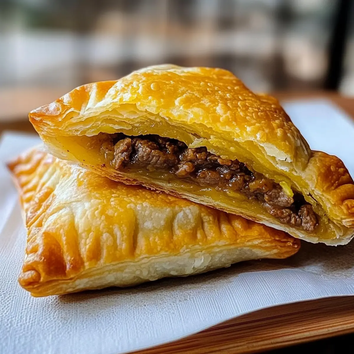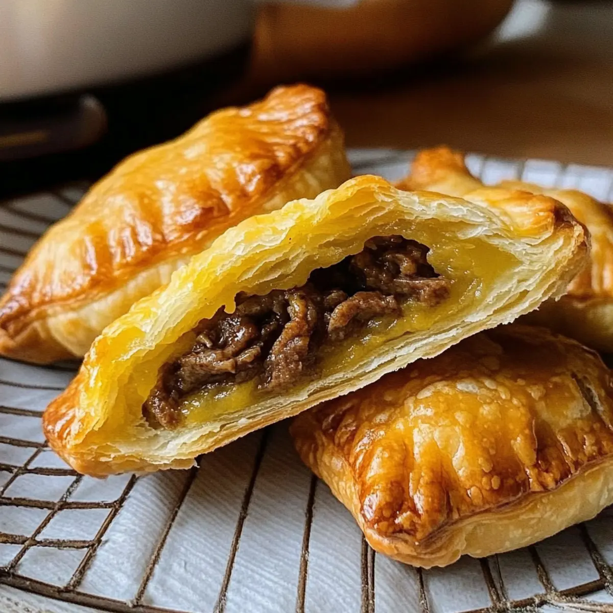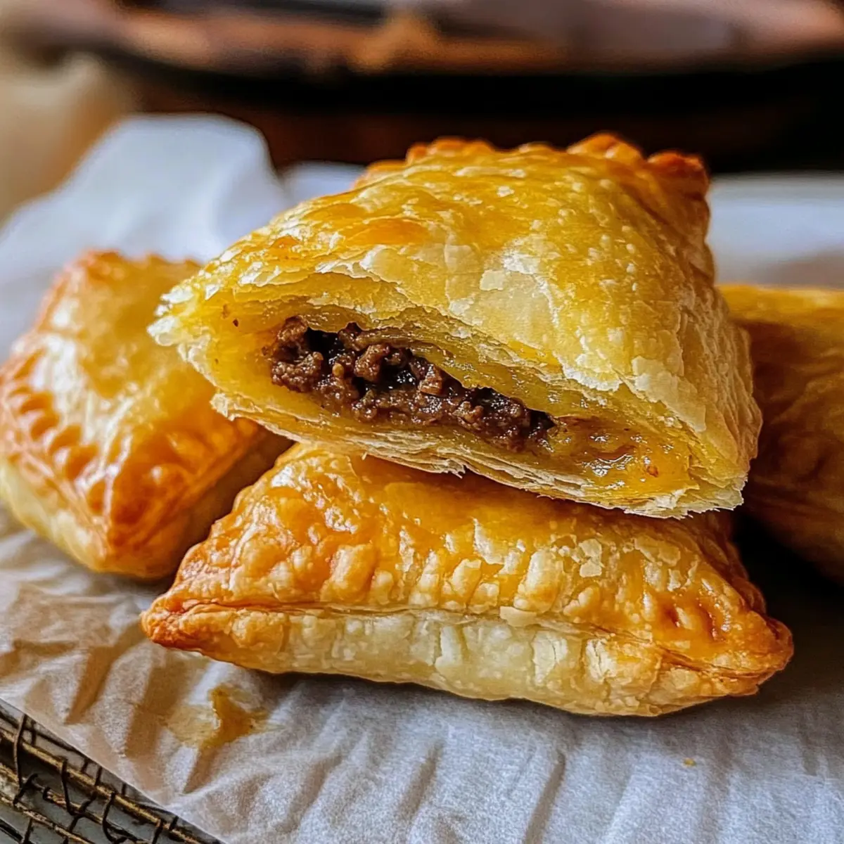 Eine kleine Küchendramatik entfaltet sich, wenn ich den Duft von frisch gebackenem Teig und aromatischem Curry rieche. Diese Flaky Chinese Curry Puffs mit Rindfleisch sind nicht nur ein Genuss, sondern auch die perfekte Verbindung von Geschmack und Textur, die einfach jeden begeistert. Mit ihrer knusprigen Hülle und der würzigen, herzhaften Füllung eignen sie sich hervorragend als dim sum Leckerbissen oder als köstlicher Snack für gesellige Abende. Die Zubereitung ist schnell und unkompliziert, sodass du die Puffs bereits im Voraus zubereiten und sie dann frisch im Ofen backen kannst, wenn sich Gäste ankündigen. Wer könnte da widerstehen? Neugierig, wie du sie ganz einfach selbst herstellen kannst? Warum sind Curry Puffs so beliebt? Vielfältiger Geschmack: Diese Curry Puffs mit Rindfleisch vereinen zahlreiche Aromen, die auf der Zunge zergehen und einen echten Genuss bieten. Einfach zuzubereiten: Mit nur wenigen Schritten kannst du eine köstliche Füllung zaubern, die sogar von Kochanfängern gemeistert werden kann. Ideales Fingerfood: Ob für Partys oder entspanntes Snacken zuhause, diese Puffs sind der Hit und bringen jeden zusammen. Vielseitig: Du kannst die Füllung ganz nach deinem Geschmack gestalten, beispielsweise mit Gemüse oder einer anderen Proteinquelle, wie in unserem Rezept für Klebrige Rindfleisch Nudeln! Vorbereitung leicht gemacht: Bereite sie im Voraus vor und backe sie frisch, wenn der Hunger kommt. Geselliges Essen: Sie bringen die perfekte Mischung aus Knusprigkeit und Füllung, perfekt zum Teilen und Genießen. Curry Puff Zutaten Für die Füllung • Gemüseöl – Zum Anbraten der Füllung, kann auch durch Raps- oder Erdnussöl ersetzt werden. • Zwiebel (1 große, fein gewürfelt) – Sorgt für Süße und Tiefe in der Füllung. • Knoblauch (2 Zehen, gehackt) – Verstärkt den Geschmack und das Aroma. • Rinderhackfleisch (450 g) – Die Hauptproteinquelle, die eine herzhafte Füllung bietet; kann durch Puten- oder Hühnerhack ersetzt werden. • Currypulver (2 Esslöffel) – Fügt der Füllung einen charakteristischen, aromatischen Geschmack hinzu. • Kurkuma-Pulver (1½ Teelöffel) – Bringt Farbe und einen erdigen Geschmack. • Kreuzkümmelpulver (½ Teelöffel) – Fügt Tiefe und Wärme hinzu. • Zucker (¼ Teelöffel) – Balanciert die Gewürze mit einem Hauch Süße. • Schwarzer Pfeffer (¼ Teelöffel) – Sorgt für eine milde Schärfe. • Salz (1 Teelöffel) – Verstärkt den Gesamteindruck der Füllung. • Rinderbrühe (160 ml) – Gewährleistet die Feuchtigkeit der Füllung. • Maisstärke (1 Esslöffel) – Verdickt die Füllung für eine perfekte Konsistenz. Für den Teig • Blätterteig (2 Blätter, ca. 480 g) – Die äußere Schicht sorgt für Knusprigkeit; kann auch im Supermarkt gekauft werden, um Zeit zu sparen, oder selbst gemacht für einen reichhaltigeren Geschmack. • Ei (1, mit 1 Esslöffel Wasser verrührt für die Eierwäsche) – Gibt der Kruste einen schönen Glanz. Diese Zutaten sind die Grundlage für deine unwiderstehlichen Curry Puffs mit Rindfleisch. Lass deiner Kreativität freien Lauf und genieße das Kochen! Step-by-Step Instructions für Curry Puff mit Rindfleisch Step 1: Füllung zubereiten Erhitze in einer großen Pfanne oder einem Wok bei mittelhoher Hitze etwas Gemüseöl. Brate die fein gewürfelte Zwiebel und den gehackten Knoblauch für etwa 3-4 Minuten an, bis sie glasig sind. Achte darauf, dass der Knoblauch nicht verbrennt, da er sonst bitter werden kann. Step 2: Rinderhack anbraten Füge das Rinderhackfleisch hinzu und brate es an, bis es gleichmäßig gebräunt ist, etwa 5-7 Minuten. Zerbrich das Fleisch mit einem Löffel, um eine gleichmäßige Textur zu erreichen. Sobald das Fleisch gut angebraten ist, rührst du die Gewürze wie Currypulver, Kurkuma, Kreuzkümmel, Zucker, schwarzen Pfeffer und Salz ein und lässt alles für weitere 2 Minuten gut durchziehen. Step 3: Füllung eindicken Mische in einer kleinen Schüssel die Rinderbrühe mit der Maisstärke zu einer glatten Paste. Gieße diese Mischung in die Pfanne mit dem gebratenen Fleisch und lasse alles bei niedriger Hitze köcheln, bis die Füllung eindickt, etwa 3-5 Minuten. Rühre die Füllung regelmäßig um, damit nichts anbrennt. Step 4: Füllung abkühlen lassen Überführe die fertige Füllung in eine Schüssel und lasse sie vollständig abkühlen. Dies ist wichtig, damit die Blätterteig-Puffs nicht durchweichen. Während die Füllung abkühlt, kannst du den Blätterteig vorbereiten. Step 5: Blätterteig vorbereiten Lass die Blätterteigplatten für 35-40 Minuten bei Raumtemperatur auftauen. Wenn der Teig weich ist, schneide jede Platte in 9 gleich große Quadrate. Achte darauf, den Teig nicht zu stark zu bearbeiten, damit er schön blättrig bleibt. Step 6: Puffs formen Platziere etwa 3 Esslöffel der abgekühlten Füllung in der Mitte jedes Teigquadrats. Klappe die Quadrate diagonal zusammen, sodass Dreiecke entstehen, und drücke die Ränder mit den Fingern fest zusammen. Nutze eine Gabel, um die Ränder zu crimpfen, damit die Füllung nicht entwichen kann. Step 7: Puffs kalt stellen Lege die geformten Puffs auf ein Backblech und stelle sie für 15-20 Minuten in den Kühlschrank. Dies hilft, die Form beim Backen zu behalten. Währenddessen kannst du den Ofen auf 200°C vorheizen. Step 8: Backen Nehme die Puffs aus dem Kühlschrank und bestreiche sie vorsichtig mit der Eierwäsche aus dem verquirlten Ei und Wasser. Backe die Puffs im vorgeheizten Ofen für 15-18 Minuten, bis sie goldbraun und knusprig sind. Lass sie nach dem Backen 10-15 Minuten abkühlen, bevor du sie servierst. Was passt zu Curry Puff mit Rindfleisch? Diese herzhaften Puffs sind nicht nur ein köstlicher Snack, sondern lassen sich auch ideal mit verschiedenen Beilagen kombinieren. Süße Chili-Sauce: Ein sanfter Dip, der die Würze der Puffs wunderbar ergänzt und für einen aufregenden Geschmackskontrast sorgt. Frischer Gurkensalat: Dieser leichte