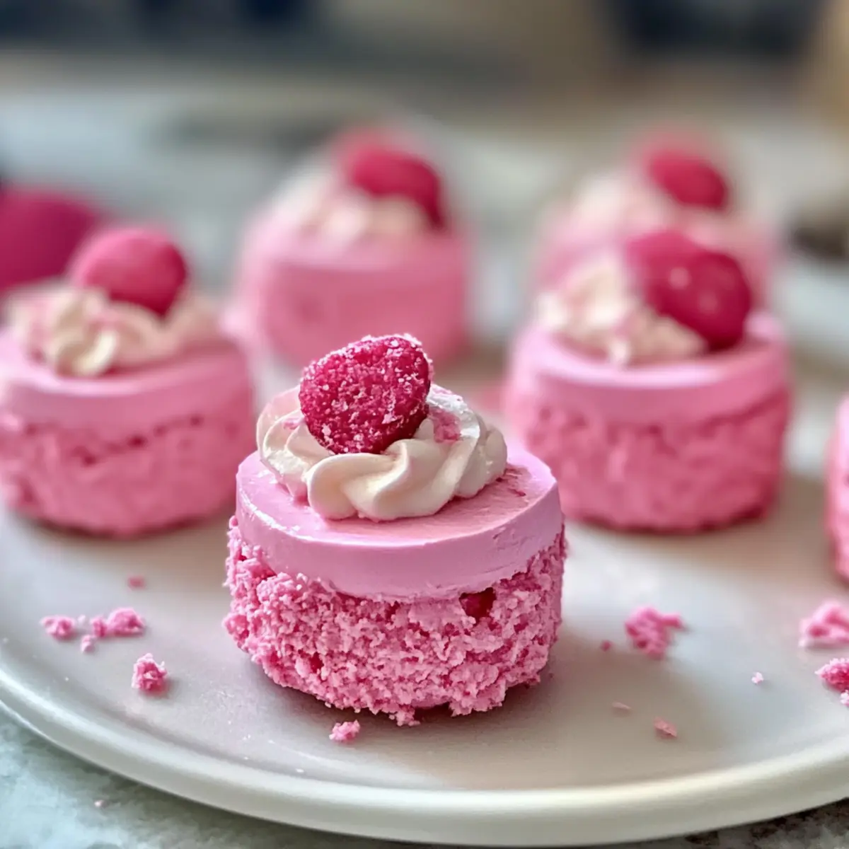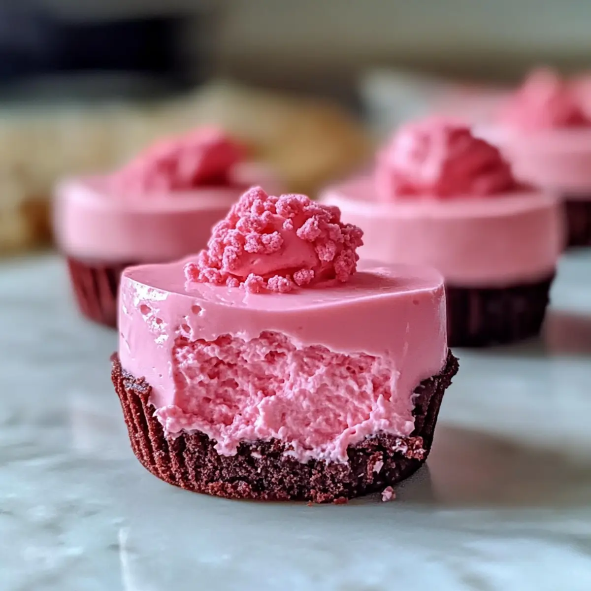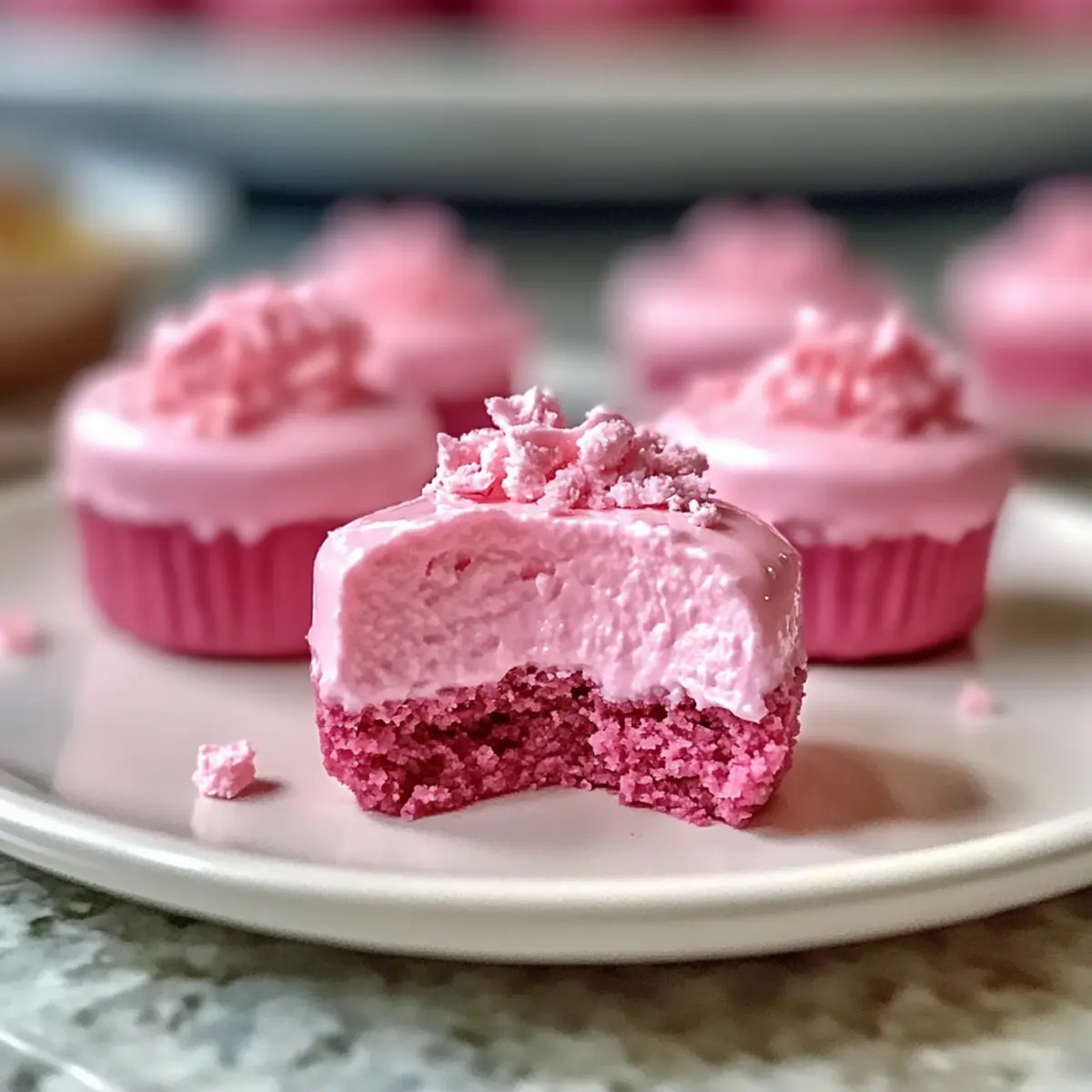 Als ich letztens mit Freunden zusammenkam, war das Dessert-Thema schnell geklärt: Es mussten die Delikaten No-Bake Pink Velvet Käsekuchenbissen her! Diese kleinen Wunder sind nicht nur ein echter Hingucker mit ihrer lebhaften, rosa Farbe, sie sind auch super einfach zuzubereiten. Perfekt für jede Gelegenheit – sei es eine Feier oder einfach nur ein gemütlicher Abend zu Hause – begeistern sie garantiert jeden. Und das Beste? Du kannst sie im Voraus zubereiten und dir so mehr Zeit für die schönen Momente mit deinen Lieben nehmen. Neugierig, wie du diese himmlischen Bissen selbst zaubern kannst? Lass uns gemeinsam abtauchen in die süße Welt des No-Bake-Vergnügens! Warum solltest du dieses Rezept ausprobieren? Einfachheit, diese No-Bake Pink Velvet Käsekuchenbissen sind im Handumdrehen zubereitet, ohne Backstress! Creme und Genuss, die perfekte Kombination aus cremiger Füllung und krossem Boden wird dich begeistern. Ein Blickfang, die leuchtend pinke Farbe macht jedes Dessert-Tableau lebendig und einladend. Vielfältige Anpassungen, spiele mit verschiedenen Geschmacksrichtungen oder Toppings, um deine persönliche Note hinzuzufügen. Perfekt für Anlässe, egal ob Partys oder gemütliche Abende – diese Häppchen werden dein Highlight! Du kannst sogar mit Rezepten wie Erdbeer Cheesecake Ohne oder Erdnussbutter Joghurt Bites kombinieren, um ein unwiderstehliches Dessertbuffet zu kreieren. Zutaten für Delikate No-Bake Pink Velvet Käsekuchenbissen Für dein neues Lieblings-Dessert sind hier alle notwendigen Zutaten auf einen Blick: Für den Boden Graham Cracker Krümel – Hauptbestandteil des Bodens; für eine glutenfreie Version kannst du glutenfreie Graham Cracker verwenden. Zucker – Fügt dem Boden Süße hinzu; brauner Zucker kann für einen anderen Geschmack verwendet werden. Ungesalzene Butter (geschmolzen) – Bindet die Zutaten des Bodens zusammen; Kokosöl ist eine gute milchfreie Alternative. Für die Füllung Frischkäse (weich) – Hauptzutat der Füllung, die einen reichhaltigen, cremigen Geschmack gibt; Neufchâtel-Käse kann als leichtere Option verwendet werden. Puderzucker – Süßt die Käsekuchenfüllung; weniger verwenden oder durch einen Zuckerersatz ersetzen, um diätetischen Bedürfnissen gerecht zu werden. Vanilleextrakt – Verleiht der Füllung zusätzlichen Geschmack; Mandelextrakt kann einen interessanten Twist geben. Schlagsahne – Wird aufgeschlagen, um eine luftige Textur in der Füllung zu erzeugen; als milchfreie Option kann Kokoscreme verwendet werden. Milch – Sorgt für eine glatte Konsistenz der Füllung; Mandelmilch oder Hafermilch sind geeignete Alternativen. Rosa Lebensmittelfarbe – Für den ästhetischen Reiz in der Füllung; du kannst jede Lebensmittelfarbe deiner Wahl verwenden. Für die Garnitur Schlagsahne – Optional als Garnierung, fügt eine leichte Schicht oben hinzu; kann durch eine milchfreie Schlagsahne ersetzt werden. Streuseln – Optional für zusätzliche Freude und Farbe bei der Dekoration. Schritt-für-Schritt-Anleitung für Delikate No-Bake Pink Velvet Käsekuchenbissen Schritt 1: Boden vorbereiten In einer mittelgroßen Schüssel die Graham Cracker Krümel, den Zucker und die geschmolzene Butter gründlich vermengen, bis die Mischung an nassem Sand erinnert. Die Mischung gleichmäßig in Mini-Muffin-Formen oder Silikonformen drücken und für mindestens 15 Minuten in den Kühlschrank stellen, damit der Boden fest wird. Schritt 2: Käsekuchenfüllung zubereiten In einer großen Schüssel den weichen Frischkäse mit einem Handmixer cremig schlagen, bis keine Klumpen mehr zu sehen sind. Langsam den Puderzucker und den Vanilleextrakt hinzugeben und alles gut vermengen. Anschließend die Schlagsahne und die Milch dazugeben und alles kräftig schlagen, bis die Masse luftig und fluffig ist. Füge dann die rosa Lebensmittelfarbe hinzu, bis der gewünschte Farbton erreicht ist. Schritt 3: Bissen zusammenstellen Die gekühlten Böden aus dem Kühlschrank holen und mit der vorbereiteten Käsekuchenfüllung gleichmäßig füllen. Mit einem Spatel die Oberflächen glatt streichen und darauf achten, dass die Füllung bis zum Rand reicht, um jeden Bissen zu einem delikaten Genuss zu machen. Schritt 4: Kühlen zum Festigen Die Formen mit Frischhaltefolie abdecken und die Käsekuchenbissen für mindestens 2 Stunden in den Kühlschrank stellen. Diese Zeit ist wichtig, damit die Füllung vollständig fest wird und die Bissen beim Servieren in Form bleiben. Schritt 5: Servieren und Garnieren Die fertigen Käsekuchenbissen vorsichtig aus den Formen lösen und auf einem Servierteller anrichten. Nach Belieben mit Schlagsahne und bunten Streuseln garnieren, um für zusätzliche Freude und eine festliche Note zu sorgen. Die Bissen sollten kühl serviert werden, um den besten Geschmack zu erzielen. Expert Tips für Delikate No-Bake Pink Velvet Käsekuchenbissen Frischkäse vorbereiten: Stelle sicher, dass der Frischkäse Zimmertemperatur hat, um Klumpen zu vermeiden; kalter Frischkäse erschwert das Mischen. Kühlzeit einhalten: Beschleunige den Kühlprozess nicht; mindestens 2 Stunden sind erforderlich, damit die Füllung die perfekte Textur erreicht. Zucker langsam hinzufügen: Füge den Puderzucker schrittweise hinzu, um einen Zuckerschock und ungleichmäßige Süße zu verhindern, was besonders für die No-Bake Pink Velvet Käsekuchenbissen wichtig ist. Lebensmittelfarbe vorsichtig dosieren: Beginne mit wenigen Tropfen und passe die Farbe allmählich an, um den gewünschten Farbton zu erreichen, ohne das Geschmacksprofil zu beeinträchtigen. Garnier zur letzten Minute: Für die beste Präsentation füge die Garnierungen erst kurz vor dem Servieren hinzu, damit alles frisch aussieht und schmeckt. Was passt zu Delikaten No-Bake Pink Velvet Käsekuchenbissen? Diese köstlichen Häppchen setzen den perfekten Akzent auf deinem Desserttisch und eröffnen gleichzeitig viele köstliche Pairing-Möglichkeiten. Frische Beeren: Eine Auswahl 