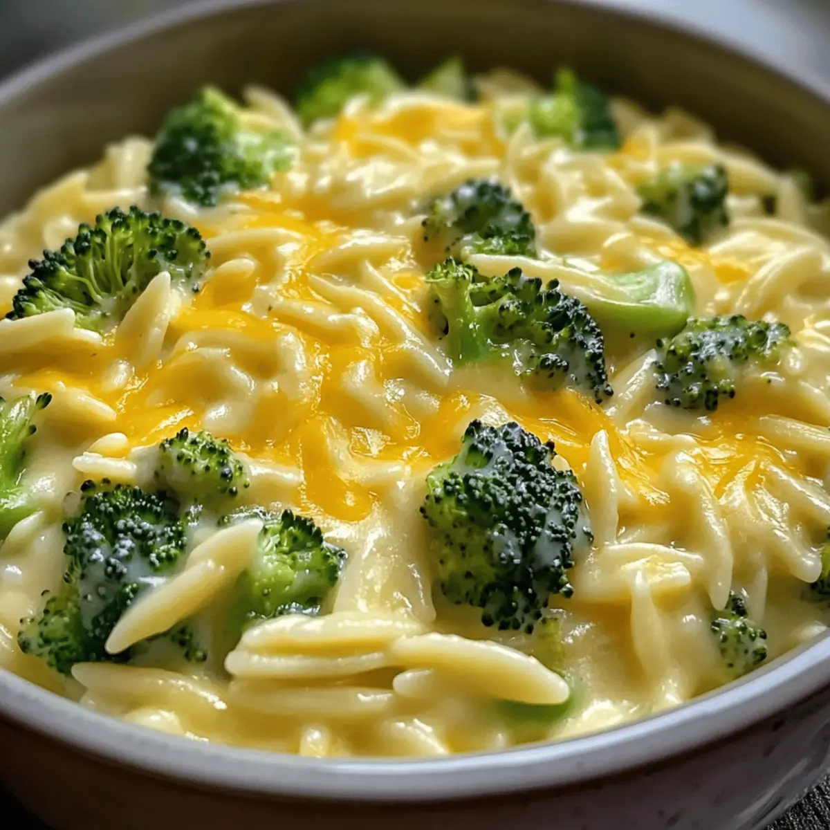 Ein-Topf Brokkoli Käse Orzo ist eine cremige, käselastige Delikatesse mit scharfen Cheddar, frischem Brokkoli und zarten Orzo-Nudeln, ideal für hektische Tage.