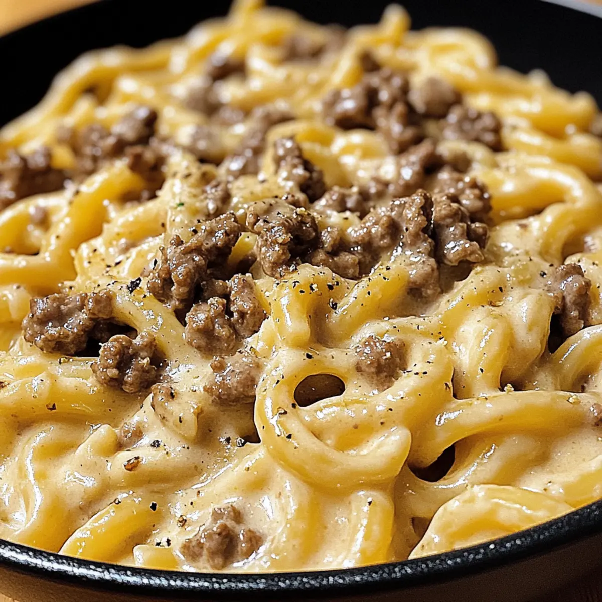 Als ich letzte Woche im Supermarkt stand, füllte der verlockende Duft von Knoblauchbutter die Luft und ließ mein Herz schneller schlagen. So entstand die Idee zu meiner Ein-Topf Cremige Rindfleisch und Knoblauchbutter Pasta – einem Rezept, das nicht nur den Gaumen, sondern auch die Seele erwärmt. In nur einem Topf zauberst du ein schnelles und einfaches Komfortessen, das ganze Familie zusammenbringt. Die Kombination aus zartem Rindfleisch und der sahnig-knoblauchigen Soße macht jeden Bissen zu einem Genuss, und das Beste daran: Die Reinigung ist ein Kinderspiel! Egal, ob du nach einer leckeren Abendessenlösung für hektische Wochentage suchst oder deine Liebsten mit etwas Besonderem verwöhnen möchtest – dieses Rezept wird dein neuer Favorit werden. Bist du bereit, dein nächstes Küchenabenteuer zu starten und deinen Geschmackssinn zu verwöhnen? Warum wirst du dieses Rezept lieben? Einfachheit: Die Zubereitung dieser Ein-Topf Cremigen Rindfleisch und Knoblauchbutter Pasta ist kinderleicht – alles kommt in einen Topf! Aromatische Aromen: Die Kombination aus zartem Rindfleisch und einer cremigen Knoblauchsoße sorgt für einen himmlischen Geschmack, der jeden begeistert. Vielfältige Variationen: Egal, ob du Gemüse, alternative Proteine oder scharfe Noten hinzufügen möchtest – dieses Rezept lässt sich ganz nach deinem Geschmack anpassen. Zeitersparnis: Mit nur 30 Minuten Zubereitungszeit ist dies das perfekte Gericht für hektische Wochentage. Perfekt für die ganze Familie: Gehe mit einer Portion Eintopf über den Tellerrand hinaus – es wird sicher ein Hit bei allen! Gemütliche Atmosphäre: Nichts bringt mehr Freude und Geborgenheit als ein herzhaftes, selbstgekochtes Essen, das alle zusammenbringt. Ein-Topf Cremige Rindfleisch und Knoblauchbutter Pasta Zutaten • Diese Zutaten sind der Schlüssel zu deinem neuen Lieblingsgericht! Für die Sauce Rinderhackfleisch – Die Hauptproteinquelle, die Geschmack und Textur liefert; eine gesunde Alternative ist gemahlenes Hähnchen. Butter – Verleiht Reichhaltigkeit und verstärkt den Knoblauchgeschmack; für eine leichtere Variante kannst du Olivenöl verwenden. Knoblauch – Sorgt für aromatische Tiefe; frischer Knoblauch ist für den besten Geschmack unerlässlich. Zwiebel – Fügt Süße und Umami hinzu; gelbe oder weiße Zwiebeln sind perfekt, alternativ kannst du Schalotten verwenden. Italienische Gewürzmischung – Verbessert die Geschmackstiefe; frische Kräuter wie Basilikum oder Oregano sind tolle Alternativen. Rote Pfefferflocken – Für die nötige Schärfe; passe die Menge an deinen gewünschten Schärfegrad an. Rinderbrühe – Stellt die Flüssigkeit zur Verfügung und verbessert den Rindfleischgeschmack; Hühnerbrühe kann auch für einen leichteren Geschmack verwendet werden. Milch – Sorgt für eine cremige Textur; Mandel- oder Hafermilch sind tolle Optionen für eine milchfreie Variante. Für die Pasta Pasta (Penne, Rigatoni oder Rotini) – Die Hauptkohlenhydratquelle, die die Soße gut hält; wähle glutenfreie Pasta für eine glutenfreie Version. Parmesankäse – Verleiht Cremigkeit und geschmackliche Tiefe; nutze Nährhefe als vegane Option. Salz & Pfeffer – Grundgewürze, die nach Geschmack angepasst werden können. Mit dieser Ein-Topf Cremige Rindfleisch und Knoblauchbutter Pasta bist du auf dem besten Weg, ein köstliches und sättigendes Gericht zuzubereiten, das alle lieb gewinnen werden! Schritt-für-Schritt-Anleitung für Ein-Topf Cremige Rindfleisch und Knoblauchbutter Pasta Step 1: Rindfleisch anbraten Erhitze eine große, tiefe Pfanne bei mittelhoher Temperatur. Gib das Rinderhackfleisch hinein und brate es unter gelegentlichem Rühren, bis es vollständig braun ist und keine rosa Stellen mehr sichtbar sind, etwa 5-7 Minuten. Bei Bedarf das überschüssige Fett abgießen, um das Gericht leichter zu machen. Step 2: Knoblauch und Zwiebel anbraten Schiebe das Rindfleisch zur Seite der Pfanne und füge die Butter hinzu. In der heißen Pfanne den gehackten Knoblauch und die Zwiebel hinzufügen und etwa 2 Minuten anbraten, bis sie duften und die Zwiebel glasig ist. Rühre dann die italienische Gewürzmischung und die roten Pfefferflocken ein, um den Geschmack zu intensivieren. Step 3: Flüssigkeit und Pasta hinzufügen Gieße die Rinderbrühe und die Milch in die Pfanne und bringe die Mischung zum sanften Kochen. Füge die ungekochte Pasta hinzu, sodass sie gut in der Brühe liegt. Decke die Pfanne ab und lasse alles 12-15 Minuten köcheln, dabei gelegentlich umrühren, bis die Pasta weich und al dente ist. Step 4: Käse und Gewürze unterrühren Teste die Pasta auf die gewünschte Bissfestigkeit; sollte sie zart sein, reduziere die Hitze auf niedrig. Rühre den geriebenen Parmesan, Salz und Pfeffer in die Pasta ein, bis die Soße cremig wird und gut an der Pasta haftet. Die Ein-Topf Cremige Rindfleisch und Knoblauchbutter Pasta ist nun fast fertig! Step 5: Servieren und genießen Garniere die fertige Pasta mit frischer Petersilie und zusätzlichem Parmesan, falls gewünscht. Serviere die Ein-Topf Cremige Rindfleisch und Knoblauchbutter Pasta heiß, idealerweise mit knusprigem Knoblauchbrot oder einem frischen Salat als Beilage. Was passt zur Ein-Topf Cremigen Rindfleisch und Knoblauchbutter Pasta? Lass uns eine perfekte Begleitung finden, die dein Geschmackserlebnis noch mehr steigert. Knuspriges Knoblauchbrot: Der warme, buttrige Geschmack von frischem Knoblauchbrot ergänzt die cremige Pasta wunderbar. Jeder Bissen wird filmisch und macht das Essen zu einem unvergesslichen Erlebnis. Frischer grüner Salat: Ein leichtes, knackiges Salatbett bringt eine frische Note und balanciert die herzhafte Pasta. Erfrischende Zutaten wie Gurken und Kirschtomaten sind eine himmlische Ergänzung. Gedünstetes Gemüse: Gemischtes gedünstetes Gemüse, wie Brokkoli oder Zucchini, fügt nicht nur Farbe hinzu, sondern auch gesunde Nährstoffe. Es setzt einen schönen Kontrast zur cremigen Textur der Past