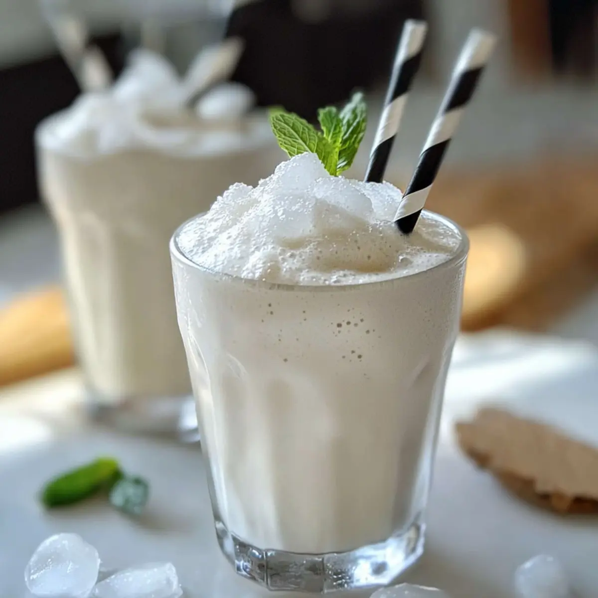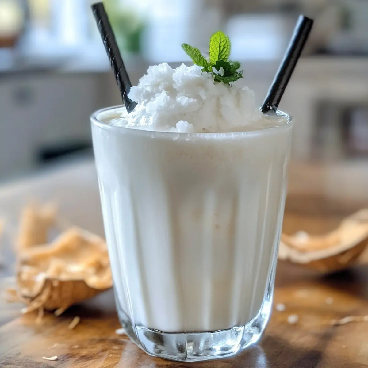 Stell dir vor, du sitzt an einem sonnigen Nachmittag auf der Terrasse und genießt ein kühles, cremiges Getränk, das deinen Gaumen mit jedem Schluck in tropische Gefilde entführt. Das Einfachheit der Zubereitung unseres Rezeptes für den Einfache Kokosmilchshake wird dich begeistern! Mit nur drei Zutaten – Kokosmilch, Eis und gesüßter Kondensmilch – zauberst du im Handumdrehen eine leckere Erfrischung, die perfekt für die ganze Familie ist. Egal, ob du sie nach einem langen Tag als schnellen Snack genießt oder zur nächsten Sommerfeier servierst, dieser Kokosmilchshake überzeugt mit seiner cremigen Konsistenz und dem süßen Geschmack. Bist du bereit, dein eigenes Stück Urlaub zu kreieren? Lass uns loslegen! Warum wirst du dieses Rezept lieben? Einfachheit in besten Formen: Die Zubereitung ist kinderleicht und erfordert nur grundlegende Kochkenntnisse, sodass du schnell schlemmen kannst. Cremiger Genuss: Die Kombination aus Kokosmilch und gesüßter Kondensmilch sorgt für ein unwiderstehliches, reichhaltiges Geschmackserlebnis. Vielfältige Variationen: Ob als proteinreicher Shake oder mit einem Schuss Rum für die Erwachsenen, dieses Rezept lässt sich kinderleicht anpassen. Schnelle Erfrischung: Perfekt für heiße Sommertage ist dieser Milchshake blitzschnell zubereitet und sorgt für Freude bei Freunden und Familie. Tropisches Flair: Jeder Schluck versetzt dich an einen sonnigen Strand, ideal für ein wenig Urlaubsstimmung zu Hause. Gesunde Zutaten: Mit Kokosmilch und Eis bietet dieser Shake eine großartige Möglichkeit, sich eine süße Belohnung zu gönnen, ohne dass du auf Geschmack verzichten musst. Bereit, diese Geschmacksexplosion auszuprobieren? Wenn du noch mehr Erfrischungen für die Sommertage suchst, schau dir auch unser Rezept für fruchtige Smoothies an! Einfache Kokosmilchshake Zutaten Für den Milchshake • Kokosmilch – sorgt für die cremige Konsistenz und den charakteristischen Kokosgeschmack; verwende die Vollfettvariante für optimalen Genuss, oder wechsle zu einer leichten Variante für weniger Kalorien. • Eis – garantiert die erfrischende Kälte, die man für einen perfekten Milchshake braucht; standard Eiswürfel sind ideal, achte darauf, sie gut zu mixen für eine homogene Textur. • Gesüßte Kondensmilch – süßt den Shake und trägt zu seiner Dicke bei; für eine vegane Alternative, kann sie durch normalen Zucker nach Geschmack ersetzt werden. Optional für Variationen • Rum – fügt eine erwachsene Note hinzu; perfekt für eine entspannende Sommerparty. • Protein-Pulver – macht diesen Milchshake zu einem energiereichen Snack; wähle Vanille- oder Schokoladengeschmack für zusätzlichen Genuss. • Früchte – zum Beispiel Mango, Banane oder Erdbeeren; verwandle deinen Milchshake in eine fruchtige Variante, die für zusätzliche Frische sorgt. Mit diesem einfachen Kokosmilchshake Rezept bist du bereit, deinen Tag mit einer köstlichen Erfrischung zu bereichern! Step-by-Step Instructions für Einfache Kokosmilchshake Rezept Step 1: Kokosmilch vorbereiten Schüttele die Dose mit Kokosmilch gut, um die Inhaltsstoffe zu vermischen. Gieße die Kokosmilch anschließend in einen Hochgeschwindigkeitsmixer. Achte darauf, dass du hochwertige, vollfettige Kokosmilch verwendest, um eine cremige Konsistenz für deinen Einfache Kokosmilchshake zu erzielen. Step 2: Zutaten vermengen Füge nun die gesüßte Kondensmilch zur Kokosmilch im Mixer hinzu. Schalte den Mixer auf mittlere Geschwindigkeit und lasse die Mischung für etwa 30 Sekunden laufen, bis die beiden Zutaten gut miteinander verbunden sind. Dies schafft eine süße Basis, die dem Milchshake seine herrliche Dicke verleiht. Step 3: Eis hinzufügen Lege eine großzügige Menge Eiswürfel über die Flüssigkeit im Mixer. Verwende etwa 2 Tassen Eiswürfel, um die perfekte Eisgekühltheit zu erreichen. Schalte den Mixer auf hohe Geschwindigkeit und zerstücke das Eis, bis die Mischung vollständig cremig und geschmeidig ist; das sollte etwa 1–2 Minuten dauern. Step 4: Konsistenz einstellen Nach dem Mixen überprüfe die Konsistenz deines Kokosmilchshakes. Wenn du eine dickere Textur bevorzugst, füge noch ein paar Eiswürfel hinzu und püriere erneut für weitere 30 Sekunden, bis alles gut vermischt ist. Dies sorgt dafür, dass dein Shake schön kalt und erfrischend bleibt. Step 5: Optional verfeinern Für eine erwachsene Variante kannst du jetzt einen Schuss Rum hinzufügen und den Mixer kurz laufen lassen, um ihn gut zu vermischen. Wenn du eine proteinreiche Option möchtest, mische während dieses Schrittes einen Scoop Proteinpulver deiner Wahl unter. Step 6: Servieren Gieße den fertigen Einfache Kokosmilchshake in große Gläser und dekoriere sie nach Wunsch mit einem Minzblatt oder einer Kokosscheibe. Dies verleiht dem Getränk nicht nur einen schönen Anblick, sondern sorgt auch für eine festliche Note, ideal für deine Sommerpartys oder entspannte Nachmittage. Meal Prep für deinen Einfache Kokosmilchshake Die Zubereitung des einfachen Kokosmilchshake Rezept ist ideal für gestresste Alltagshelden! Du kannst die Kokosmilch und die gesüßte Kondensmilch bis zu 24 Stunden im Voraus mischen und in einem luftdichten Behälter im Kühlschrank aufbewahren. So sparst du wertvolle Zeit am Tag deiner Feier oder nach einem langen Arbeitstag. Die Eiswürfel solltest du erst kurz vor dem Servieren hinzufügen, da sie die beste Konsistenz ergeben. Wenn du deinen Shake in der nächsten Zeit genießen möchtest, stelle sicher, dass du ihn vor dem Servieren erneut gründlich mixst, um die cremige Textur zu bewahren, denn er bleibt dennoch genauso lecker! Expert Tips für Einfache Kokosmilchshake Blendleistung überprüfen: Achte darauf, dass dein Mixer leistungsstark genug ist, um Eis zu zerkleinern. Eine längere Mixzeit kann helfen, eine samtige Konsistenz zu erzielen. Süße anpassen: Du kannst die Menge der gesüßten Kondensmilch je nach persönlichem Geschmack variieren. Beginne mit 