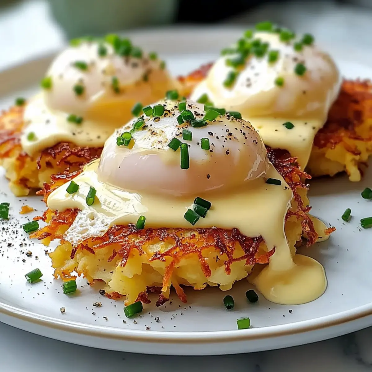 Diese Kombination aus knusprigen Latkes, pochierten Eiern und reichhaltiger Hollandaise eignet sich perfekt für ein rundum gelungenes Brunch-Erlebnis.
