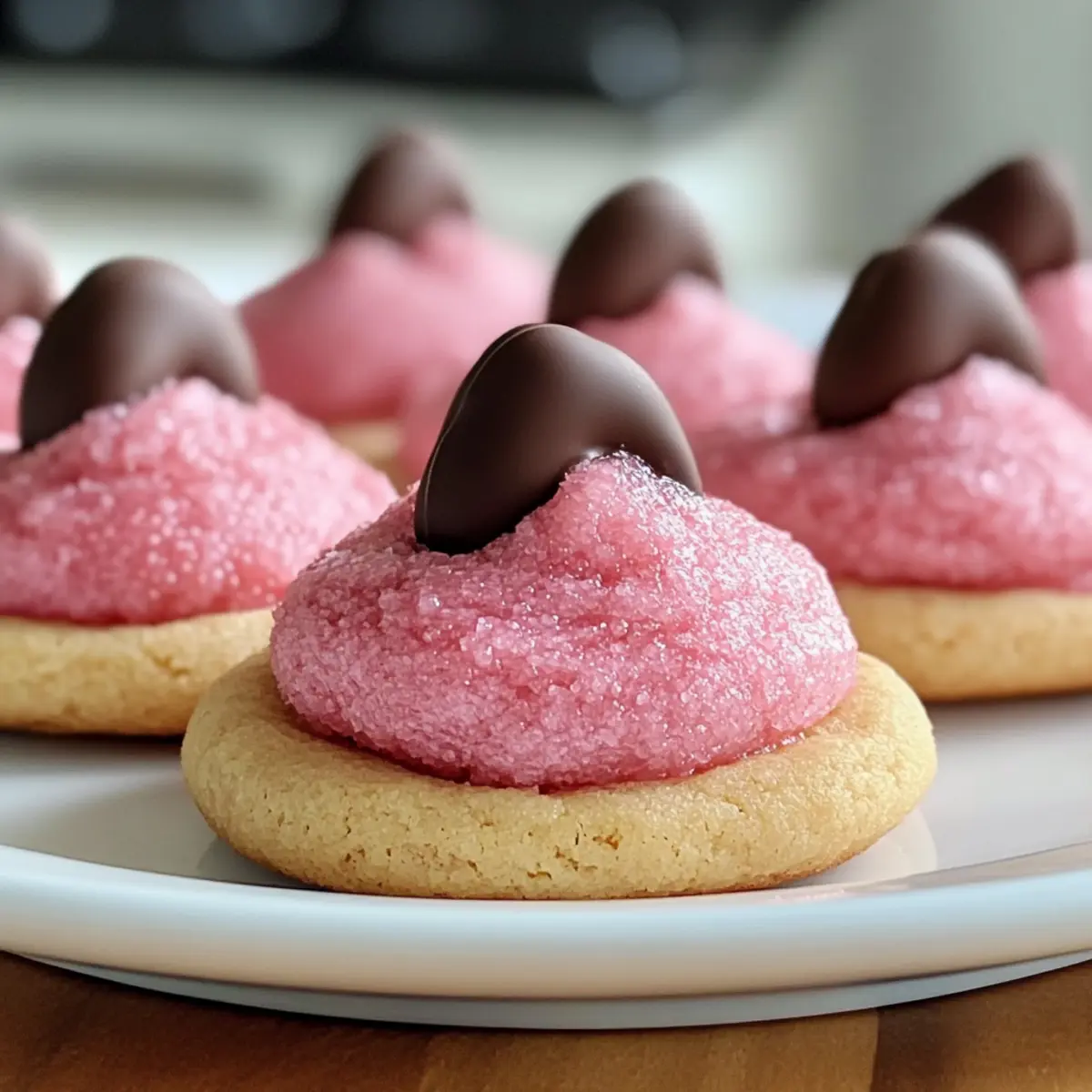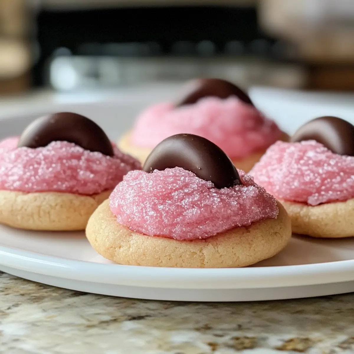 Wenn ich an die schönsten Backmomente denke, kommt mir immer ein ganz besonderer Duft in den Sinn – der von frisch gebackenen Erdbeer-Kuss-Plätzchen! Diese kleinen Wunder verbinden die zarte Süße von Erdbeeren mit einer unwiderstehlichen Überraschung aus schmelzendem Schokolade. Das Beste daran? Sie sind so einfach zuzubereiten, dass auch Anfänger in der Küche sie mit Bravour meistern können. Perfekt für Feiern, als Geschenk oder einfach zum Genießen bei einer Tasse Tee – diese Plätzchen sind der ideale Begleiter für jede Gelegenheit. Lass uns gemeinsam in die süße Welt dieser köstlichen Erdbeer-Kuss-Plätzchen eintauchen und entdecken, wie viel Freude das Backen bringen kann! Bist du bereit, deinen nächsten Keks-Hit zu kreieren? Warum wirst du diese Plätzchen lieben? Einfachheit: Die Zubereitung der Erdbeer-Kuss-Plätzchen ist kinderleicht und erfordert keine besonderen Fähigkeiten – perfekt für jeden Hobbybäcker! Fruchtige Süße: Mit der Kombination aus Erdbeeren und schmelzender Schokolade wird jeder Bissen zu einem Geschmackserlebnis, das deine Geschmacksknospen verzaubert. Vielfalt: Du kannst das Rezept je nach Saison oder Vorliebe ganz einfach anpassen. Probiere verschiedene Kuchenmischungen oder füge Nüsse hinzu! Gemütliche Snacks: Diese Plätzchen sind ideal für eine süße Auszeit bei einer Tasse Tee oder als köstliches Mitbringsel für Partys. Zeitersparnis: In weniger als 30 Minuten zubereitet, sind sie der perfekte schnelle Genuss für unerwartete Gäste. Jede Runde dieser Plätzchen wird deine Gäste begeistern und dazu führen, dass du sie immer wieder backen möchtest! Entdecke auch unsere Tipps für andere köstliche Desserts und genieße die Freude am Backen! Erdbeer-Kuss-Plätzchen Zutaten • Entdecke die köstliche Kombination! Für den Teig Erdbeer-Kuchenmischung – sorgt für den Hauptgeschmack und die attraktive Farbe; eine andere Kuchenmischung kann für Abwechslung verwendet werden. Butter (8 Esslöffel / 1/2 Tasse) – verleiht den Plätzchen Reichhaltigkeit und sorgt für eine weiche Textur; ungesalzene Butter ist ideal für besseren Salzkontrolle. Ei (1 großes) – bindet den Teig; frische Eier bringen die besten Ergebnisse. Frischkäse (4 Unzen, weich) – hält die Plätzchen weich und fügt eine leichte Säure hinzu; kann durch Mascarpone ersetzt werden für einen anderen Geschmackscharakter. Puderzucker (optional) – sorgt für eine süße, dekorative Note; pinker Kristallzucker kann visuell ansprechend sein. Für die Füllung Schokoladen-Hershey’s Küsse (30, ungelöst) – bieten eine reichhaltige, schmelzende Überraschung im Inneren; ähnliche Schokoladenbonbons können als Alternative verwendet werden. Mit diesen Zutaten zauberst du im Nu köstliche Erdbeer-Kuss-Plätzchen, die jeden begeistern! Schritt-für-Schritt-Anleitung für Erdbeer-Kuss-Plätzchen Step 1: Teig vorbereiten In einer großen Schüssel vermischst du die Erdbeer-Kuchenmischung mit der geschmolzenen Butter und dem Ei, bis eine glatte Masse entsteht. Achte darauf, dass alle Zutaten gut kombiniert sind und keine Klumpen mehr vorhanden sind. Dieser Schritt sollte etwa 2–3 Minuten dauern, bevor du mit dem nächsten Schritt fortfährst. Step 2: Frischkäse einarbeiten Füge den weichen Frischkäse zur Teigmischung hinzu und rühre weiter, bis die Mischung dick und vollständig eingearbeitet ist. Du kannst einen Handmixer oder eine Gabel verwenden, um sicherzustellen, dass der Frischkäse gleichmäßig verteilt ist. Dieser Schritt dauert ebenfalls 2–3 Minuten und sorgt dafür, dass deine Erdbeer-Kuss-Plätzchen schön cremig werden. Step 3: Teig kühlen Decke die Schüssel mit Frischhaltefolie ab und stelle den Teig für mindestens 1 Stunde in den Kühlschrank. Dies ist entscheidend, um zu verhindern, dass die Plätzchen beim Backen auseinanderlaufen. Während der Teig kühlt, kannst du die Zeit nutzen, um dein Backblech mit Backpapier auszulegen. Step 4: Ofen vorheizen Heize deinen Ofen auf 175°C vor und bereite zwei Backbleche vor, indem du sie mit Backpapier auslegst. Ein gut vorgeheizter Ofen sorgt dafür, dass deine Erdbeer-Kuss-Plätzchen gleichmäßig gebacken werden und eine perfekte Textur erhalten. So kannst du sicherstellen, dass sie außen fest, aber innen weich bleiben. Step 5: Plätzchen formen Nehme den gekühlten Teig aus dem Kühlschrank und forme mit einem Esslöffel gleichmäßige Portionen, etwa in der Größe eines Tischtennisballs. Platziere die Teigkugeln mit mindestens 5 cm Abstand auf dem Backblech. Dies gibt den Plätzchen genügend Raum zum Ausbreiten während des Backens. Step 6: Plätzchen backen Backe die Erdbeer-Kuss-Plätzchen im vorgeheizten Ofen für 8–10 Minuten. Achte darauf, dass die Ränder fest sind, während die Mitte noch etwas weich aussieht. Dies sorgt dafür, dass die Plätzchen beim Abkühlen die perfekte Konsistenz haben und ihre köstliche Form behalten. Step 7: Schokoladenfüllung hinzufügen Nehme die Plätzchen nach dem Backen aus dem Ofen und lasse sie 1–2 Minuten ruhen. Drücke dann vorsichtig einen Schokoladenkuss in die Mitte jedes noch warmen Plätzchens. Die Wärme des Plätzchens lässt die Schokolade schmelzen und schafft eine köstliche, schokoladige Überraschung in der Mitte jedes Erdbeer-Kuss-Plätzchens. Step 8: Auskühlen lassen Übertrage die Plätzchen auf ein Kuchengitter, damit sie vollständig auskühlen können. Dies ist wichtig, damit die Schokolade nicht fest wird, bevor die Plätzchen abgekühlt sind. Lass dir Zeit, während du das Aroma und die Farben deiner frisch gebackenen Erdbeer-Kuss-Plätzchen genießt! Aufbewahrungstipps für Erdbeer-Kuss-Plätzchen Zimmertemperatur: Bewahre die Erdbeer-Kuss-Plätzchen in einem luftdichten Behälter bei Raumtemperatur auf, um ihre Frische bis zu 4 Tage zu gewährleisten. Kühlschrank: Wenn du die Plätzchen länger aufbewahren möchtest, ist es ratsam, sie im Kühlschrank aufzubewahren. Dort halten sie sich bis zu 7 Tage in einem g