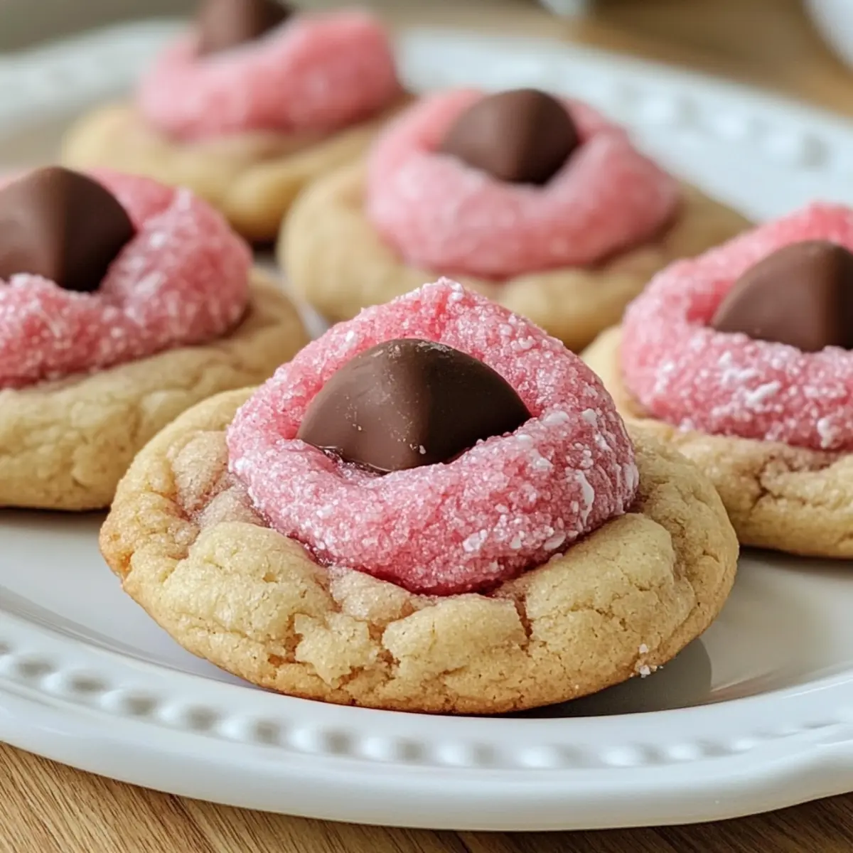 „Könntest du dir einen besseren Snack vorstellen als ein liebevoll gebackenes Kekschen, das sowohl süß als auch schokoladig ist?“ Diese Frage huschte mir durch den Kopf, als ich die himmlischen Erdbeer-Kuss-Kekse kreierte. Sie sind nicht nur einfach zuzubereiten, sondern bringen auch fruchtigen Spaß auf jeden Tisch – perfekt für ein gemütliches Wochenende oder wenn im Handumdrehen Nascherei gefragt ist. Die Kombination aus dem buttrigen Erdbeergeschmack und der zartschmelzenden Schokoladenmitte macht jeden Bissen zu einem kleinen Fest. Warum sich mit Fast Food zufrieden geben, wenn man seine Liebsten mit solch verführerischen Leckereien überraschen kann? Lass uns gemeinsam herausfinden, wie diese unwiderstehlichen Kekse entstehen! Warum sind Erdbeer-Kuss-Kekse so besonders? Einfachheit: Diese Erdbeer-Kuss-Kekse sind kinderleicht zuzubereiten und benötigen nur wenige Zutaten, die jeder in der Küche hat. Fruchtiger Genuss: Die Verwendung von Erdbeerkuchenmischung sorgt für einen intensiven Erdbeergeschmack, der jeden Keks zu einem Erlebnis macht. Schokoladige Überraschung: Der zartschmelzende Schokoladenkuss in der Mitte verleiht den Keksen einen köstlichen, überraschenden Twist. Vielfältige Variationen: Egal ob mit Vanille oder Schokolade – experimentiere mit verschiedenen Geschmäckern und entdecke deinen Favoriten! Perfekte Anlässe: Ideal für Feiertage, Backverkäufe oder einfach als süße Belohnung nach einem langen Tag. Schau dir auch unsere leckeren Serviervorschläge an! Erdbeer-Kuss-Kekse Zutaten Für den Teig: Erdbeerkuchenmischung – sorgt für intensiven Erdbeergeschmack und die Struktur der Kekse. Vermeide frische Erdbeeren, da sie den Teig zu flüssig machen. Butter (8 Esslöffel, geschmolzen und leicht abgekühlt) – fügt eine herrliche Reichhaltigkeit und Feuchtigkeit hinzu. Lass sie etwas abkühlen, um das Ei nicht zu garen. Großes Ei (1) – bindet die Zutaten zusammen. Frische Eier sind für das beste Ergebnis empfehlenswert. Frischkäse (4 Unzen, weich) – sorgt für eine weiche Textur und reiche Aromen. Kann durch Mascarpone ersetzt werden, um einen besonderen Geschmack zu erhalten. Für die Füllung: Schokoladige Hershey’s Küsse (30, ungevintage) – sind die ikonische Überraschung in der Mitte. Probiere verschiedene Schokoladenvarianten für einen besonderen Twist. Für die Deko: Puderzucker (optional für das Bestäuben) – verleiht eine dekorative Note und zusätzliche Süße. Kann durch pinken, granulierteren Zucker für einen einzigartigen Look ersetzt werden. Mit diesen köstlichen Zutaten entsteht ein Snack, der deine Freunde und Familie begeistern wird. Die Erdbeer-Kuss-Kekse sind nicht nur einfach zuzubereiten, sondern bieten auch einen unwiderstehlichen, fruchtigen Genuss, den man einfach lieben muss! Schritt-für-Schritt-Anleitung für Erdbeer-Kuss-Kekse Step 1: Teig vorbereiten In einer großen Schüssel die Erdbeerkuchenmischung, die geschmolzene Butter und das Ei gründlich verrühren, bis eine glatte Masse entsteht. Achte darauf, dass die Mischung keine Klümpchen aufweist, und verwende einen Handmixer für eine schnellere Zubereitung. Dies dauert etwa 2-3 Minuten, um sicherzustellen, dass alles gut vermischt ist. Step 2: Frischkäse einarbeiten Füge den weichen Frischkäse hinzu und rühre weiter, bis der Teig dick und gut vermischt ist. Diese Mischung wird dem Keks eine wunderbare Textur geben. Es sollte eine homogene Masse entstehen, die leicht klebrig ist. Dies dauert weitere 2-3 Minuten, um sicherzustellen, dass der Frischkäse vollständig eingearbeitet ist. Step 3: Teig kühlen Decke den Teig ab und stelle ihn für mindestens 1 Stunde in den Kühlschrank. Das Kühlen ist entscheidend, damit die Kekse beim Backen nicht auseinanderlaufen. Der Teig sollte fest und leicht formbar sein, wenn du ihn nach der Kühlzeit herausnimmst. Step 4: Ofen vorheizen Heize den Ofen auf 175 °C (350 °F) vor und lege ein Backblech mit Backpapier aus. Die richtige Temperatur ist wichtig für das optimale Backergebnis. Wenn dein Ofen vorgeheizt ist, kannst du mit dem Formen der Kekse beginnen. Step 5: Kekse formen Nimm jeweils einen Esslöffel des gekühlten Teigs und forme ihn zu einer Kugel. Optional kannst du die Kugeln in Puderzucker oder gefärbtem Zucker wälzen, um eine süße Note hinzuzufügen. Platziere die Teigkugeln auf dem Backblech, wobei du mindestens 5 cm Abstand zwischen ihnen lässt. Step 6: Kekse backen Backe die Kekse für 8-10 Minuten, bis die Ränder fest sind, während die Mitte noch weich bleibt. Achte darauf, dass die Kekse nicht zu dunkel werden, da sie sonst trocken werden können. Die Oberseite wird leicht rissig und goldbraun. Step 7: Schokoladenküsse hinzufügen Lasse die Kekse nach dem Backen 1-2 Minuten auf dem Blech ruhen. Drücke dann vorsichtig einen Schokoladenkuss in die Mitte jedes Kekses. Dies sorgt für die typische Überraschung und einen köstlichen Schokoladengeschmack. Step 8: Abkühlen lassen Übertrage die Kekse vorsichtig auf ein Kuchengitter und lasse sie vollständig abkühlen. Dadurch können die Kekse ihre perfekte Konsistenz erreichen, und die Schokolade kann leicht fest werden. Bewahre die leckeren Erdbeer-Kuss-Kekse in einem luftdichten Behälter auf, um ihre Frische zu bewahren. Lagerungstipps für Erdbeer-Kuss-Kekse Raumtemperatur: Bewahre die Kekse in einem luftdichten Behälter auf, wo sie bis zu 4 Tage frisch bleiben. Dies sorgt dafür, dass sie weich und schmackhaft bleiben. Kühlschrank: Wenn du die Kekse im Kühlschrank aufbewahrst, verlängert sich ihre Haltbarkeit auf etwa 1 Woche. Achte darauf, sie in einem luftdichten Behälter zu lagern, um Trockenheit zu vermeiden. Gefrierfach: Die Erdbeer-Kuss-Kekse können bis zu 3 Monate im Gefrierfach aufbewahrt werden. Platziere sie in einem gefriergeeigneten Behälter oder einem Ziploc-Beutel und trenne die Schichten mit Backpapier. Auftauen: Um die Kekse aufzutauen, lasse sie einfach bei Raumtemperatur stehen, bis sie wieder