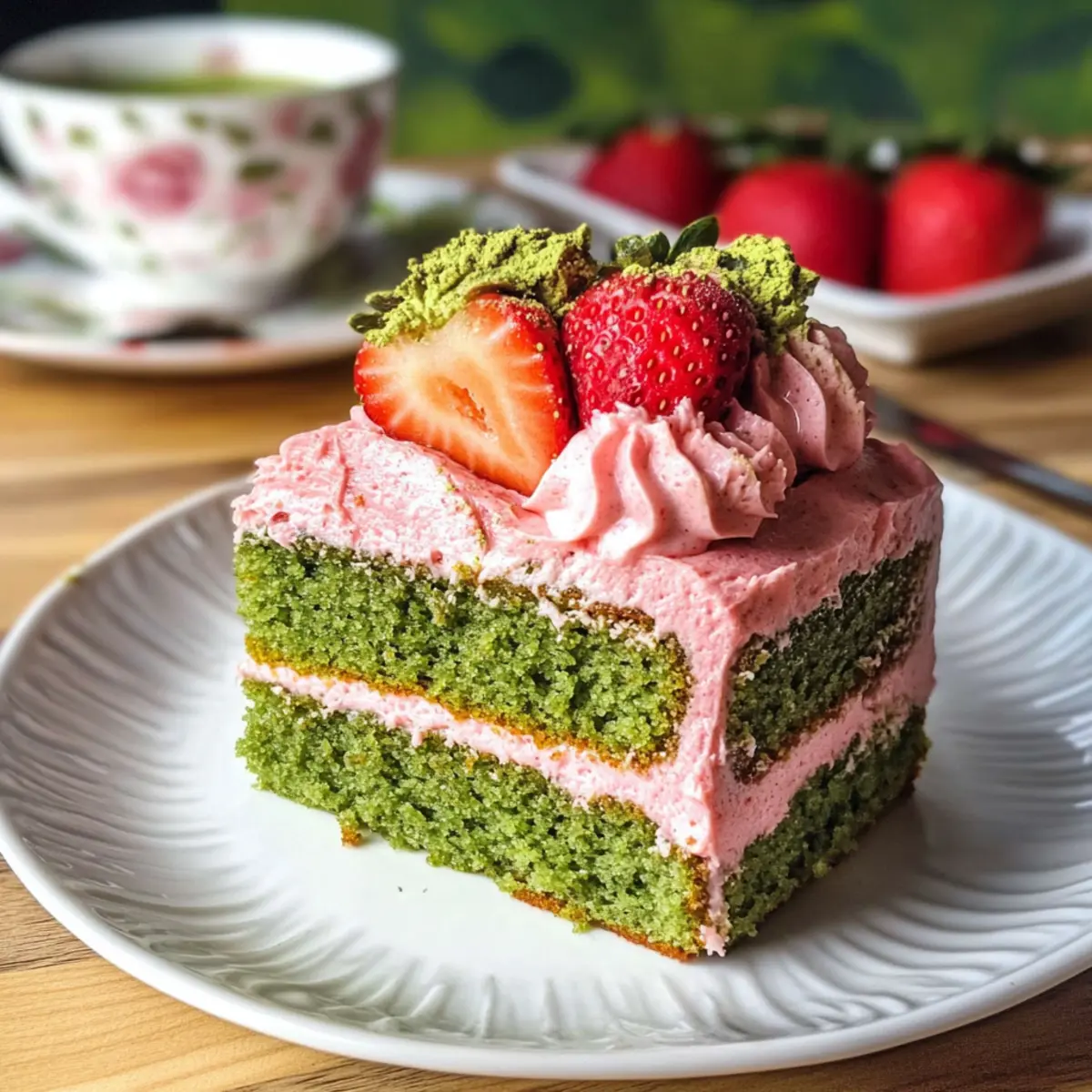 Beim ersten Biss in meinen Erdbeer-Matcha-Latte-Kuchen ist es, als würde ich in einen sonnigen Tag eintauchen – der zarte Geschmack von frischen Erdbeeren und der erdige, beruhigende Hauch von Matcha vereinen sich zu einem wahren Fest für die Sinne. Diese köstliche Kombination macht den Kuchen nicht nur zu einem Blickfang, sondern verspricht auch ein feucht, zartes Erlebnis, das jedes Dessertliebhaberherz höher schlagen lässt. Mit der Möglichkeit, ihn glutenfrei zuzubereiten, ist dieser Kuchen nicht nur perfekt für besondere Anlässe, sondern auch eine himmlische Alternative zu schnellem Essen. Möchtest du erfahren, wie du diesen Genuss selbst kreieren kannst? Lass uns gemeinsam die Zubereitung entdecken! Warum wirst du diesen Kuchen lieben? Einzigartige Kombination: Die meisterhafte Verbindung von erdbeeriger Süße und reichen Matcha-Aromen macht diesen Kuchen zu einem unvergesslichen Geschmackserlebnis. Ultimative Feuchtigkeit: Der Kuchen ist dank des Matcha-Latte-Überzugs unglaublich feucht und zart, perfekt für jeden Anlass und jedes Dessertliebhaberherz. Einfach zuzubereiten: Mit klaren Anweisungen kannst du den Erdbeer-Matcha-Latte-Kuchen ganz einfach selbst kreieren, ideal für Anfänger oder geübte Köche. Glutenfreie Option: Du kannst einfach auf ein glutenfreies Mehl umsteigen, ohne auf den vollen Geschmack zu verzichten, was diesen Kuchen für jeden zugänglich macht. Anziehende Präsentation: Seine visuelle Anziehungskraft macht ihn zum perfekten Buffet-Highlight – jeder wird überrascht sein, wie köstlich er aussieht und schmeckt! Wenn du noch mehr Inspiration brauchst, schau dir auch unser Rezept für Feta Cranberry Vinaigrette an oder entdecke die Möglichkeiten mit den Mandelplaetzchen Rezept Das. Erdbeer-Matcha-Zutaten • Für den perfekten Kuchen, entfalte die aromatischen und feuchtigkeitsspendenden Eigenschaften der Erdbeer-Matcha-Latte-Kuchen-Zutaten! Für den Teig Weizenmehl: – Sorgt für die Struktur des Kuchens; benutze eine digitale Waage für genaue Mengen. Zeremonial-Matcha-Pulver: – Verleiht Geschmack und Farbe; achte auf hochwertige Qualität für das beste Ergebnis. Backpulver: – Hilft dem Kuchen beim Aufgehen; wichtig für die Luftigkeit. Backsoda: – Unterstützt das Backpulver und sorgt für zusätzliche Lockerheit. Salz: – Betont die Süße; eine Prise reicht aus, um das Aroma zu balancieren. Ungesalzene Butter: – Sorgt für Feuchtigkeit und Reichhaltigkeit; sollte weich sein, um besser crembar zu sein. Zucker: – Gibt die notwendige Süße; die Kombination mit Butter verbessert die Textur. Eier: – Binden die Zutaten miteinander; sollten Zimmertemperatur haben für eine bessere Konsistenz. Vanilleextrakt: – Verstärkt den Geschmack; wähle reines Vanilleextrakt für das beste Aroma. Buttermilch: – Sorgt für zusätzliche Feuchtigkeit; kann durch Milch und Essig oder Zitronensaft ersetzt werden. Für die Soße Vollmilch: – Gibt Cremigkeit in der Matcha-Latte-Soße; ein wesentlicher Bestandteil für den feuchten Genuss. Zuckerhaltige Kondensmilch: – Sorgt für Süße und Feuchtigkeit; passe die Menge nach deinem Geschmack an. Für das Frosting Frischkäse: – Die Basis für das Frosting; kalt verwenden, um ein einfaches Mischen mit Butter zu gewährleisten. Puderzucker: – Gibt die notwendige Süße und Struktur für das Frosting; gut vermischen bis es fluffig ist. Gefriergetrocknete Erdbeeren: – Verleiht frostinger Farbe und Geschmack; fein mahlen für die beste Textur. Schritt-für-Schritt-Anleitung für den Erdbeer-Matcha-Latte-Kuchen Step 1: Ofen vorheizen und Backform vorbereiten Heize deinen Ofen auf 175 °C vor und bereite eine 9×9 Zoll große Backform vor. Fette die Form gründlich ein und lege den Boden mit Backpapier aus, um ein Ankleben zu vermeiden. Dadurch wird dein Erdbeer-Matcha-Latte-Kuchen nach dem Backen leicht herausnehmbar und behält seine Form. Step 2: Trockene Zutaten vermischen In einer großen Schüssel vermengst du das Weizenmehl, das Matcha-Pulver, das Backpulver, das Backsoda und das Salz miteinander. Verwende einen Schneebesen, um alle Zutaten gut zu vermischen, bis sie gleichmäßig verteilt sind. Diese Mischung sorgt dafür, dass dein Kuchen in der Höhe aufgeht und die Geschmäcker harmonisch verbunden werden. Step 3: Butter und Zucker cremig schlagen In einer separaten Schüssel die weiche, ungesalzene Butter mit dem Zucker schaumig schlagen, bis die Mischung hell und fluffig ist. Dies dauert etwa 3-5 Minuten und ist entscheidend für die Textur des Erdbeer-Matcha-Latte-Kuchens. Füge die Eier nacheinander hinzu und vermische alles gründlich, gefolgt vom Vanilleextrakt. Step 4: Trockene Zutaten und Buttermilch einarbeiten Gib nun die trockenen Zutaten abwechselnd mit der Buttermilch in die Butter-Zucker-Mischung. Beginne und ende mit den trockenen Zutaten. Mische alles, bis gerade so eine homogene Masse entsteht, um einen luftigen und feuchten Kuchen zu gewährleisten. Achte darauf, nicht zu lange zu rühren, um die Textur nicht zu beeinträchtigen. Step 5: Teig in die Backform füllen und backen Gieße den fertigen Teig in die vorbereitete Backform und streiche ihn glatt. Schiebe die Form in den vorgeheizten Ofen und backe den Kuchen 38-42 Minuten lang. Um sicherzustellen, dass der Kuchen gar ist, mache eine Holzstäbchenprobe – wenn es sauber herauskommt, ist der Kuchen perfekt gebacken. Step 6: Matcha-Latte-Soße vorbereiten Während der Kuchen abkühlt, bereite die Matcha-Latte-Soße vor. Dazu vermengst du das gesiebte Matcha-Pulver mit heißem Wasser, Vollmilch und der zuckerhaltigen Kondensmilch sowie etwas Vanille. Rühre alles gut um, bis sich das Matcha-Pulver vollständig aufgelöst hat und die Soße glatt ist – sie sorgt für zusätzlichen Geschmack und Feuchtigkeit. Step 7: Kuchen anpassen und Soße hinzufügen Sobald der Kuchen abgekühlt ist, schneide mit einem Messer eine dünne Schicht von der Oberseite ab, um eine gerade Fläche zu erhalten. Verwende einen Z