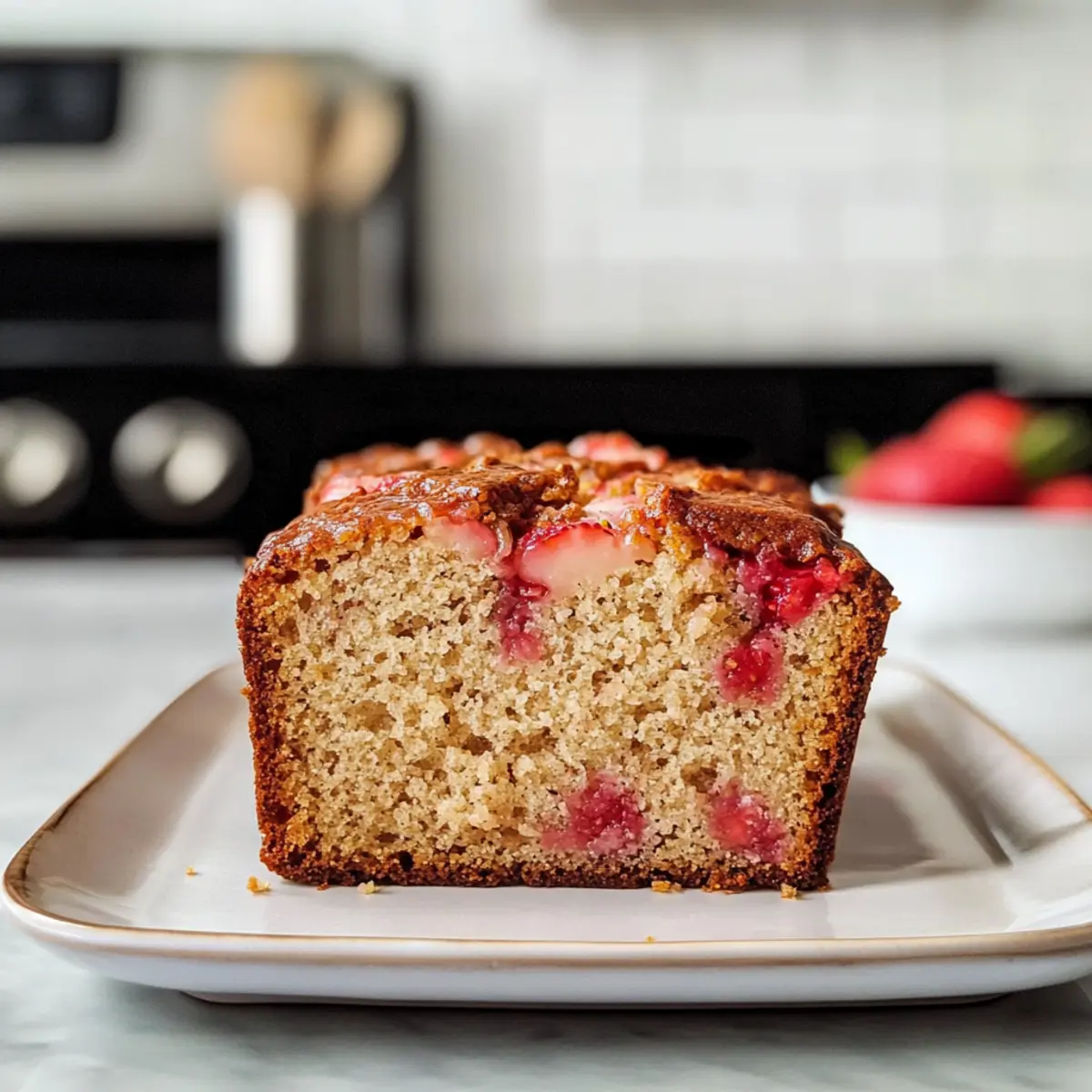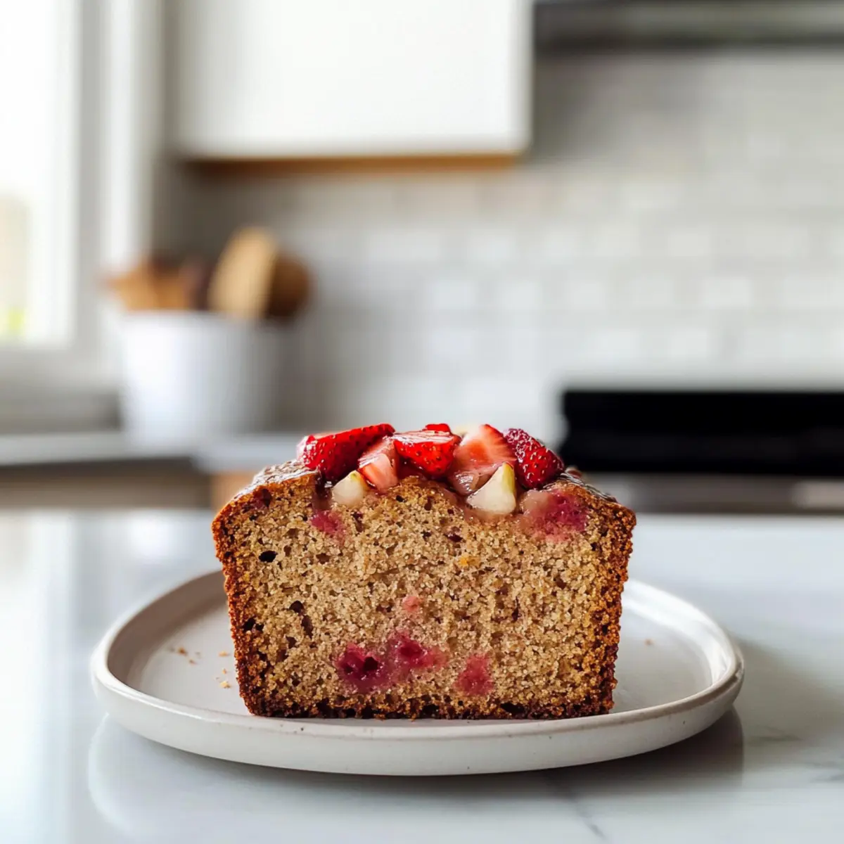 Der süße Duft von frisch gebackenem Brot durchströmt meine Küche, und ich kann es kaum erwarten, dieses wunderbare Erdbeer-Rhabarber-Brot mit dir zu teilen! Diese Rezept kombiniert die saftige Süße der Erdbeeren mit der erfrischenden Säure des Rhabarbers und ergibt einen köstlichen, feuchten und fluffigen Laib, der perfekt für den Sommer ist. Und das Beste daran? Es ist nicht nur lecker, sondern auch gesund, denn es wird mit Vollkornmehl gebacken und bietet sogar vegane Variationen! Ob zum Frühstück oder als Snack – dieses Brot wird garantiert ein Hit bei deiner Familie und Freunden. Hast du schon einmal daran gedacht, wie einfach es sein kann, frisch und nährstoffreich zu backen? Lass uns gemeinsam in die Welt der Backkunst eintauchen! Warum ist dieses Erdbeer-Rhabarber-Brot einzigartig? Einfachheit: Die Zubereitung dieses Brotes ist unkompliziert und erfordert nur grundlegende Backfähigkeiten, perfekt für jeden Heimkoch. Saisonale Aromen: Mit saftigen Erdbeeren und spritzigem Rhabarber vereint es die besten Geschmäcker des Sommers. Vielseitig: Du kannst die Früchte nach deinem Geschmack variieren, z.B. mit Himbeeren oder Blaubeeren, um neue Geschmacksrichtungen auszuprobieren! Nährstoffreich: Das Rezept verwendet Vollkornmehl, was es zu einer gesünderen Alternative macht und gleichzeitig voller Ballaststoffe ist. Crowd-Pleaser: Dieses Brot wird sowohl bei Familienfeiern als auch bei Brunches für seine köstliche Kombination aus süß und sauer geliebt! Es ist eine wunderbare Ergänzung zu deinem Frühstück oder als Snack. Um noch mehr Ideen zur Verwendung dieses Brotes zu erhalten, schau dir auch unsere Serviervorschläge an! Erdbeer-Rhabarber-Brot Zutaten Für den Teig • Vollkornmehl – sorgt für Struktur und fügt Nährstoffe hinzu. • Zucker – süßt das Brot. Substitution: Du kannst Kokoszucker oder Honig für einen niedrigeren glykämischen Index verwenden. • Backsoda – wirkt als Treibmittel für die Fluffigkeit. • Backpulver – unterstützt das Aufgehen und sorgt für eine lockere Textur. • Zimt – ergänzt mit Wärme und Geschmacksvielfalt. Substitution: Muskatnuss kann für ein anderes Geschmacksprofil verwendet werden. • Gemahlener Ingwer – bringt eine Prise Würze und ergänzt den Rhabarber. • Würfelig geschnittene Erdbeeren – sorgt für Süße und Feuchtigkeit. Hinweis: Frische oder leicht überreife Erdbeeren bieten den besten Geschmack. • Würfelig geschnittener Rhabarber – fügt Säure hinzu, die die Süße ausgleicht. • Reife Bananen – fungieren als natürlicher Süßstoff und Feuchtigkeitsspender. Substitution: Ungezuckertes Apfelmus kann verwendet werden. • Avocadoöl – sorgt für gesunde Fette und Feuchtigkeit. Substitution: Raffiniertes Kokos- oder Rapsöl eignet sich ebenfalls. • Milch nach Wahl – befeuchtet den Teig. Substitution: Pflanzliche Milch funktioniert gut für eine vegane Variante. • Großes Ei – bindet die Zutaten zusammen. Substitution: Ein Leinsamen-Ei (1 Esslöffel gemahlener Leinsamen + 3 Esslöffel Wasser, quellen lassen) für die vegane Option. • Vanilleextrakt – verstärkt den Gesamteindruck des Geschmacks. Für den Belag (optional) • Frische Beeren – verwende eine Mischung aus Erdbeeren und Rhabarber für eine schöne Garnitur. • Puderzucker – streue etwas darüber für eine süße Deko. • Joghurt oder pflanzlicher Joghurt – serviere es als erfrischenden Dip dazu. Dieses Erdbeer-Rhabarber-Brot ist eine wunderbare Möglichkeit, die Aromen des Sommers festzuhalten! Step-by-Step Instructions für das Erdbeer-Rhabarber-Brot Step 1: Ofen vorheizen Heize deinen Ofen auf 175°C (350°F) vor und lege eine Kastenform mit Backpapier aus. Dadurch bleibt das Erdbeer-Rhabarber-Brot nach dem Backen nicht kleben und lässt sich leicht herausnehmen. Achte darauf, dass die Form gut vorbereitet ist, damit das Brot gleichmäßig aufgeht und eine schöne Kruste erhält. Step 2: Trockene Zutaten vermischen In einer großen Schüssel vermischst du das Vollkornmehl, den Zucker, das Backsoda, das Backpulver, den Zimt und den gemahlenen Ingwer. Rühre alles gut um, bis die trockenen Zutaten gleichmäßig verteilt sind. Achte darauf, dass es keine Klumpen gibt, damit das Erdbeer-Rhabarber-Brot luftig und fluffig wird. Step 3: Feuchte Zutaten vorbereiten In einer separaten Schüssel verrührst du die zerdrückten Bananen, das Avocadoöl, die Milch, das Ei (oder das Leinsamen-Ei für die vegane Variante) und den Vanilleextrakt. Schlage die Mischung mit einem Schneebesen, bis sie gut vermischt und cremig ist. Diese feuchten Zutaten sorgen für die perfekte Konsistenz des Teigs und bringen den süßen Geschmack in dein Erdbeer-Rhabarber-Brot. Step 4: Teig mischen Gieße die feuchten Zutaten in die Schüssel mit den trockenen Zutaten und rühre vorsichtig um, bis alles gerade so vermischt ist. Achte darauf, nicht zu übermixen, da das Brot sonst zäh wird. Eine kurze, sanfte Mischung sorgt für eine lockere und saftige Textur deines Erdbeer-Rhabarber-Brots. Step 5: Früchte hinzufügen Füge nun vorsichtig die gewürfelten Erdbeeren und den Rhabarber zum Teig hinzu. Verwende einen Spatel, um die Früchte gleichmäßig im Teig zu verteilen. Dadurch erhält dein Brot nicht nur einen fantastischen Geschmack, sondern auch eine hübsche Optik mit bunten Fruchtstücken. Step 6: Backen Verteile den Teig gleichmäßig in die vorbereitete Kastenform und glätte die Oberseite. Backe das Erdbeer-Rhabarber-Brot für etwa 50 Minuten, bis ein Zahnstocher, der in die Mitte gesteckt wird, sauber herauskommt. Die Oberseite sollte goldbraun sein und das Brot während des Backens einen köstlichen Duft verbreiten. Step 7: Abkühlen lassen Lass das Brot nach dem Backen für 20 Minuten in der Form abkühlen. Danach nimm es vorsichtig aus der Form und lege es auf ein Kuchengitter, damit es vollständig abkühlen kann. Dies hilft, die Feuchtigkeit im Brot zu bewahren und ermöglicht dir, es später in schöne Scheibe