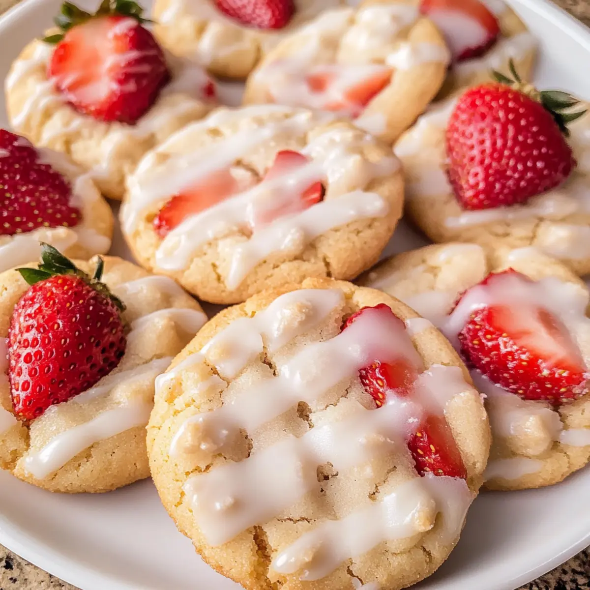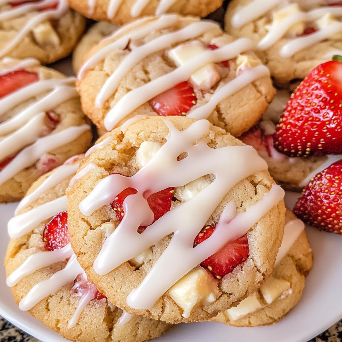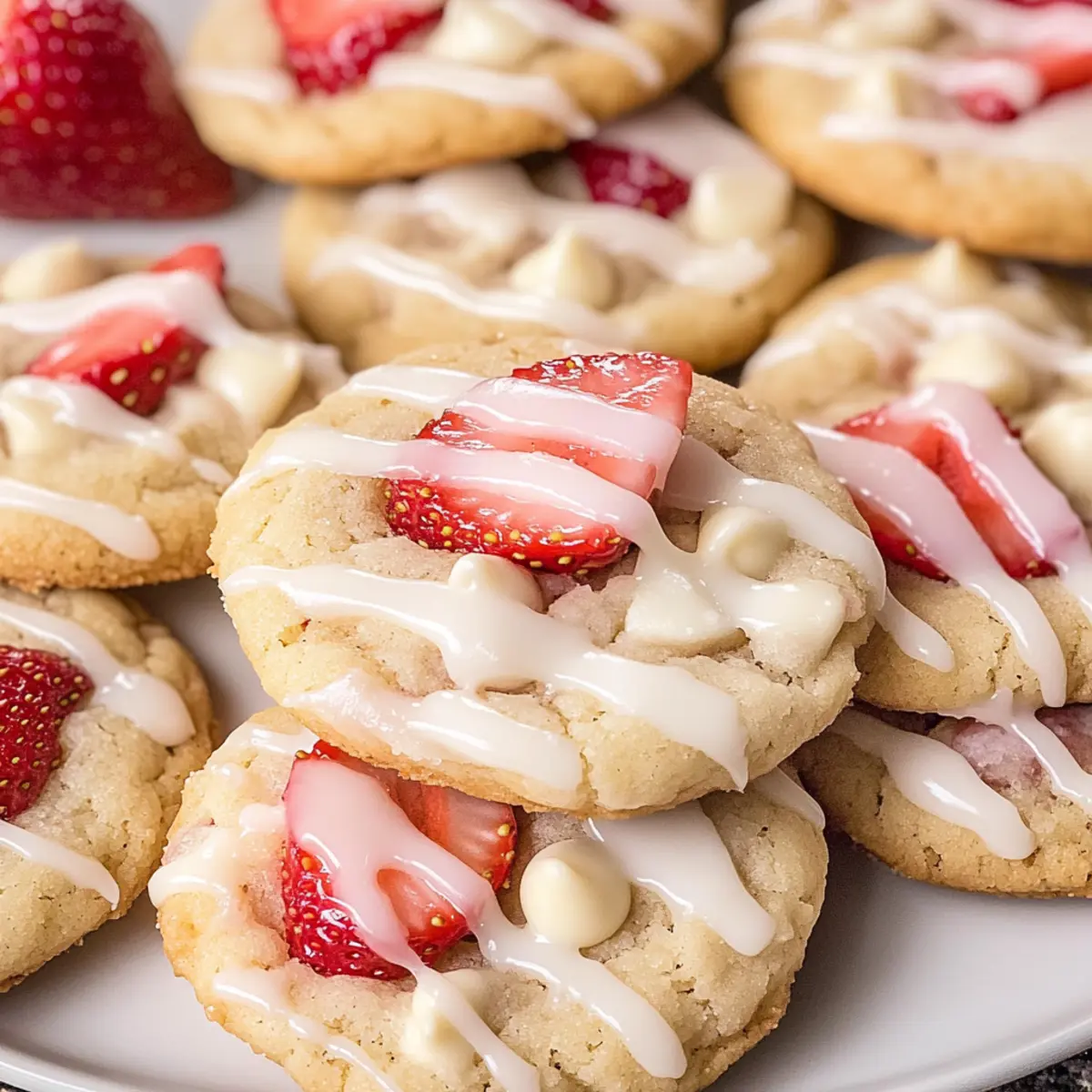 Während ich an meinem Küchentisch sitze, wird die Vorfreude immer größer, denn gleich zaubere ich eine ganz besondere Leckerei: die Erdbeer-Shortcake-Kekse. Diese kleinen Köstlichkeiten vereinen den klassischen Geschmack von traditionellem Erdbeer-Shortcake mit der praktischen Form eines Cookies. Die Zubereitung ist nicht nur schnell und einfach, sondern sie sorgen auch immer für Begeisterung bei Familie und Freunden. Mit frischen Erdbeerstücken und einem süßen Zuckerguss versehen, sind sie der ideale Snack für jede Gelegenheit. Wer könnte da widerstehen? Habt ihr euch schon mal gewünscht, den Genuss von frischen Erdbeeren in einem zarten Keks zu erleben? Lasst uns gemeinsam in die Welt dieser unwiderstehlichen Kekse eintauchen! Warum werden Sie diese Kekse lieben? Einfachheit: Die Zubereitung unserer Erdbeer-Shortcake-Kekse ist unkompliziert und erfordert nur grundlegende Backfähigkeiten. Fruchtiger Genuss: Die Kombination aus frischen Erdbeeren und süßem Zuckerguss sorgt für einen fruchtigen Geschmack, der sofort begeistert. Vielseitigkeit: Diese Kekse können leicht mit anderen Beeren oder Aromen, wie Limettenschale, angepasst werden – perfekt für kreative Bäcker. Perfekte Textur: Die Kekse bieten eine harmonische Mischung aus weichem Inneren und leicht knuspriger Oberfläche, die jeden Biss zum Genuss macht. Schnell & Einfach: In nur 30 Minuten sind diese Leckereien gebacken und bereit, Ihre Gäste zu verzaubern. Ideal für spontane Backabende oder das nächste Familientreffen! Gönnen Sie sich unbedingt auch einen Blick auf unsere Tipps für die Lagerung der Kekse, um ihre Frische so lange wie möglich zu bewahren! Erdbeer-Shortcake-Kekse Zutaten Für den Teig Allzweck-Backmix – Bietet die Basis für eine biscuit-ähnliche Textur; kann durch glutenfreien Backmix ersetzt werden. Zucker – Fügt die notwendige Süße hinzu; kann durch braunen Zucker für einen reichhaltigeren Geschmack ersetzt werden. Halbe und Halbe – Sorgt für Feuchtigkeit und Reichhaltigkeit; kann durch vollfette Milch oder Sahne ersetzt werden. Gesalzene Butter – Kreiert einen reichhaltigen Buttergeschmack; nutzen Sie ungesalzene Butter und fügen Sie eine Prise Salz hinzu, wenn gewünscht. Gehackte Erdbeeren – Liefert frischen Obstgeschmack; gefrorene Erdbeeren können verwendet werden, müssen aber gut aufgetaut und abgetropft sein. Weiße Schokoladenstückchen – Fügt eine cremige Süße hinzu; können durch dunkle oder Vollmilchschokoladenstückchen ersetzt werden. Grober Rohrzucker (optional) – Sorgt für eine knusprige Oberseite; brauner Zucker kann als Ersatz verwendet werden. Für den Zuckerguss Puderzucker – Grundbestandteil für den Zuckerguss, sorgt für die süße Glasur. Halbe und Halbe – Wird hinzugefügt, um die gewünschte Konsistenz des Zuckergusses zu erreichen; kann durch Milch ersetzt werden. Diese Erdbeer-Shortcake-Kekse werden Ihre Geschmacksknospen verzaubern! Schritt-für-Schritt-Anleitung für Erdbeer-Shortcake-Kekse Step 1: Ofen vorheizen und Backbleche vorbereiten Heizen Sie Ihren Ofen auf 220°C vor und legen Sie zwei Backbleche mit Backpapier aus. Dies sorgt dafür, dass Ihre Erdbeer-Shortcake-Kekse gleichmäßig backen und nicht am Blech kleben bleiben. Ein gut vorbereiteter Arbeitsplatz macht den Backprozess einfacher und angenehmer. Step 2: Trockenmischung zubereiten In einer großen Schüssel das Allzweck-Backmix zusammen mit dem Zucker gut vermengen. Verwenden Sie einen Schneebesen, um Klumpen zu vermeiden und eine gleichmäßige Mischung zu erzielen. Dies ist die Grundlage für die Textur der Kekse, die sie schön buttrig und zart machen. Step 3: Feuchtigkeit hinzufügen Fügen Sie nun die halbe und halbe sowie die geschmolzene Butter zur Mischung hinzu. Rühren Sie kräftig, bis ein weicher Teig entsteht. Der Teig sollte etwas klebrig, aber gut zusammenhaltend sein. Achten Sie darauf, nicht zu lange zu mischen, um die Struktur der Kekse zu bewahren. Step 4: Erdbeeren und Schokolade unterheben Gently fold in the chopped strawberries and the white chocolate chips until evenly distributed. Be careful not to over-mix, as this can cause the strawberries to bleed into the dough. This step is crucial for capturing the fresh strawberry flavor that defines your Erdbeer-Shortcake-Kekse. Step 5: Kekse portionieren Verwenden Sie einen mittleren Keksportionierer, um den Teig gleichmäßig auf die vorbereiteten Backbleche zu verteilen. Platzieren Sie etwa 12 Portionen pro Blech, sodass genügend Platz zwischen den Keksen bleibt, um beim Backen aufzugehen. Optional können Sie die Kekse mit grobem Rohrzucker bestreuen für eine knusprige Kruste. Step 6: Kekse backen Backen Sie die Kekse im vorgeheizten Ofen für 8 bis 10 Minuten. Achten Sie darauf, dass die Ränder fest sind und die Oberseite leicht goldbraun wird. Ein leichter, goldener Farbton zeigt an, dass die Kekse perfekt gebacken sind, während das Innere weich bleibt. Step 7: Abkühlen lassen Lassen Sie die Kekse nach dem Backen 5 Minuten auf dem Backblech abkühlen. Diese Zeit ermöglicht es den Erdbeer-Shortcake-Keksen, sich etwas zu setzen, bevor Sie sie auf ein Kuchengitter transferieren, um vollständig abzukühlen. So behalten sie ihre Form und werden nicht matschig. Step 8: Glasur zubereiten Während die Kekse abkühlen, bereiten Sie die Glasur vor, indem Sie den Puderzucker mit der halben und halben mischen, bis die gewünschte Konsistenz erreicht ist. Diese süße Glasur wird gleichmäßig über die abgekühlten Keksoberflächen geträufelt, um einen schönen Abschluss zu bieten und den Keksen einen zusätzlichen Geschmackskick zu verleihen. Erdbeer-Shortcake-Kekse Variationen Gestalten Sie Ihre Erdbeer-Shortcake-Kekse ganz nach Ihrem Geschmack! Lassen Sie sich von diesen kreativen Ideen inspirieren. Bärchen-Twist: Tauschen Sie die Erdbeeren gegen Himbeeren aus für einen fruchtigen, leicht säuerlichen Genuss. Ideal für fruchtige Abwechslung! Zitronenfrische: Fügen Sie einen Teelöffel