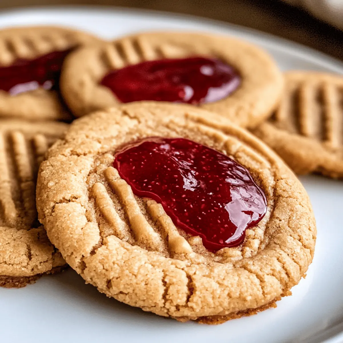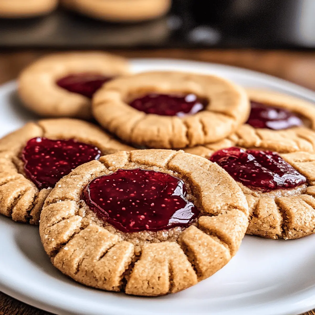 Eines Nachmittags, während ich meine alten Kochbücher durchblätterte, stieß ich auf ein Rezept, das mich sofort in meine Kindheit zurückversetzte: Erdnussbutter und Gelee Kekse. Diese genussvollen Kekse verbinden die beliebten Aromen von cremiger Erdnussbutter mit einer fruchtigen Erdbeermarmelade und tauchen sie in eine neue, bezaubernde Form. Die Zubereitung könnte nicht einfacher sein, und mit ihrer herrlich weichen Textur sind sie ein wahrer Publikumsliebling – perfekt für jedes Kinder- und Erwachsenenherz. Und das Beste? Sie sind auch in wenigen Schritten zu zaubern! Wer könnte da widerstehen? Bereit, das nostalgische Gefühl eines klassischen Erdnussbutter-Sandwichs in jedem Bissen zu erleben? Warum sind diese Kekse so beliebt? Nostalgie: Diese Erdnussbutter und Gelee Kekse erinnern an die Kindheit und bringen sofortige Freude. Einfachheit: Mit wenigen Zutaten und klaren Schritten ist das Ergebnis ein Kinderspiel. Vielseitigkeit: Experimentieren Sie mit verschiedenen Marmeladen oder Nussbuttersorten, um Ihre eigenen Kreationen zu schaffen! Perfekte Konsistenz: Die Kombination aus weicher Textur und dem süßen, fruchtigen Kern sorgt für ein Geschmackserlebnis. Schnell zubereitet: Ideal für spontane Gelüste oder um Gäste bei einer Tee- oder Kaffeerunde zu beeindrucken. Probieren Sie auch andere Variationen wie Kaffeekekse Mit Schokoladenstueckchen für noch mehr Inspiration! Erdnussbutter und Gelee Kekse Zutaten Für die Marmelade Erdbeeren (450 g) – Perfekt für hausgemachte Marmelade, verwenden Sie frische oder gefrorene Erdbeeren für besten Geschmack. Zucker (150 g) – Fügt der Marmelade die notwendige Süße hinzu, Honig kann für eine natürliche Alternative verwendet werden. Vanille (1 1/2 TL) – Verstärkt die Aromen in der Marmelade und den Keksen. Für den Keks-Teig Weizenmehl (120 g) – Gibt den Keksen die nötige Struktur, nutzen Sie glutenfreies Mehl für eine glutenfreie Variante. Backpulver (1/2 TL) – Lässt die Kekse schön aufgehen; kann bei Bedarf durch Natron ersetzt werden. Natron (1/2 TL) – Unterstützt das Aufgehen der Kekse; kann entfallen, wenn nur Backpulver verwendet wird. Salz (1/2 TL) – Balanciert die Süße aus; optional, aber empfohlen für den besten Geschmack. Ungesalzene Butter (115 g) – Sorgt für Feuchtigkeit und Reichtum im Teig, auch Margarine oder vegane Butter sind möglich. Zucker (150 g) – Für die Süße; ersetzen Sie durch Kokoszucker für eine gesündere Variante. Brauner Zucker (150 g) – Führt zu mehr Feuchtigkeit und einem tiefen Aroma; kann durch dunklen braunen Zucker für einen intensiveren Geschmack ersetzt werden. Eigelb (2) – Sorgt für Reichtum und hilft bei der Texturenbildung; ersetzen Sie durch einen Leinsamen-Ei für vegane Optionen. Cremige Erdnussbutter (125 g) – Der Hauptbestandteil für den Erdnussgeschmack; verwenden Sie cremige Erdnussbutter für das beste Ergebnis. Erdnussbutter-Stücke (85 g) – Fügt zusätzlichen nussigen Geschmack hinzu; vegane Schokoladenstückchen können hier ebenfalls verwendet werden. Schlagsahne (75 ml) – Sorgt für die Cremigkeit in der Ganache, kann durch Kokoscreme für eine nicht-milchhaltige Option ersetzt werden. Diese Erdnussbutter und Gelee Kekse sind eine wunderbare Leckerei, die Sie lieben werden! Schritt-für-Schritt-Anleitung für Erdnussbutter und Gelee Kekse Schritt 1: Erdbeermarmelade herstellen Pürieren Sie 450 g Erdbeeren in einem Mixer, bis sie eine glatte Konsistenz erreicht haben. Kombinieren Sie das Erdbeerpüree mit 150 g Zucker und 1 1/2 TL Vanille in einem mittelgroßen Topf. Kochen Sie die Mischung bei mittlerer bis niedriger Hitze für 20-25 Minuten, bis sie eindickt und glänzend aussieht. Lassen Sie die Marmelade vollständig abkühlen. Schritt 2: Trockene Zutaten vorbereiten In einer großen Rührschüssel vermengen Sie 120 g Weizenmehl, 1/2 TL Backpulver, 1/2 TL Natron und 1/2 TL Salz. Mischen Sie die trockenen Zutaten gut miteinander, sodass sich die Backtriebmittel gleichmäßig verteilen. Stellen Sie die Schüssel zur Seite, während Sie die feuchten Zutaten vorbereiten. Schritt 3: Butter und Zucker cremig schlagen In einer separaten Schüssel 115 g weiche, ungesalzene Butter, 150 g braunen Zucker und 150 g weißen Zucker mit einem Handmixer etwa 3-5 Minuten lang schlagen, bis die Mischung leicht und luftig aussieht. Dies sorgt für die nötige Feuchtigkeit und Struktur in den Erdnussbutter und Gelee Keksen, also nehmen Sie sich Zeit für diesen Schritt. Schritt 4: Nasse Zutaten hinzufügen Fügen Sie 2 Eigelbe und 1 1/2 TL Vanilleextrakt zur Zucker-Butter-Mischung hinzu und rühren Sie gut um, bis alles vermischt ist. Geben Sie dann 125 g cremige Erdnussbutter dazu und mischen Sie, bis eine homogene Masse entsteht. Achten Sie darauf, dass keine Klumpen zurückbleiben, damit die Köstlichkeit gleichmäßig verteilt ist. Schritt 5: Zutaten kombinieren Gießen Sie die trockenen Zutaten langsam in die feuchte Mischung. Rühren Sie vorsichtig mit einem Teigschaber oder einem Löffel, bis alles gerade so kombiniert ist. Vermeiden Sie es, zu lange zu rühren, da sonst die Erdnussbutter und Gelee Kekse zäh werden könnten. Schritt 6: Teig formen und kühlen Setzen Sie die Teigmischung auf eine saubere Fläche oder in eine Schüssel. Verwenden Sie einen Esslöffel, um 16 gleich große Portionen abzuteilen, und rollen Sie diese zu kleinen Bällen. Drücken Sie in die Mitte jeder Kugel mit Ihrem Finger eine kleine Mulde und legen Sie die Bälle auf ein mit Backpapier ausgelegtes Blech. Kühlen Sie die Kekse für etwa 1 Stunde im Kühlschrank. Schritt 7: Kekse backen Heizen Sie den Ofen auf 175 °C vor. Backen Sie die Kekse für 10-11 Minuten im vorgeheizten Ofen, bis sie leicht goldbraun sind. Nach dem Backen können Sie die Mulden mit einer Messbecher-Unterseite leicht vertiefen, während die Kekse noch warm sind, um mehr Platz für die Füllung zu schaffen. Schritt 8: Ganache zubereiten Schmelzen Sie 85 g Erdnussbutter-Stücke 