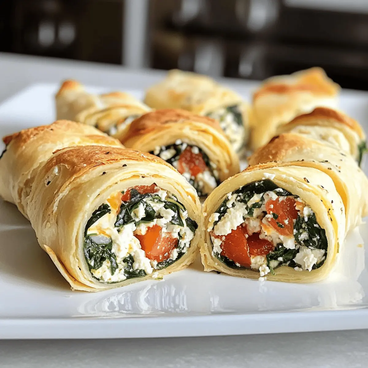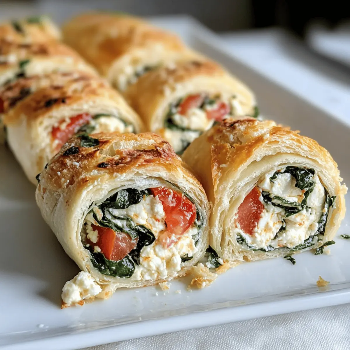 Hast du schon einmal von den köstlichen Feta-Röllchen mit Tomaten und Spinat gehört? Diese kleinen Geschmacksexplosionen sind nicht nur ein wahrer Augenschmaus, sondern auch der perfekte Fingerfood für jede Gelegenheit. Mit ihrem cremigen Feta und den frischen, knackigen Gemüsesorten bringen sie Farbe und Leben auf den Tisch. Die Zubereitung ist ein Kinderspiel und in kürzester Zeit kannst du diese leckeren Snacks zaubern, die sowohl bei Partys als auch beim gemeinsamen Mittagessen für große Begeisterung sorgen. Lass dich von der Kombination aus aromatischem Knoblauch, süßen Tomaten und nährstoffreichem Spinat verzaubern. Hast du schon eine Idee, wie du deine Feta-Röllchen personalisieren möchtest? Warum sind Feta-Röllchen so beliebt? Einfachheit: Diese Feta-Röllchen sind im Handumdrehen zubereitet und benötigen nur grundlegende Küchenkenntnisse. Vielseitigkeit: Du kannst sie ganz nach deinem Geschmack anpassen, sei es mit verschiedenen Kräutern oder Gemüsesorten. Herzhafter Genuss: Die Kombination aus cremigem Feta, frischen Tomaten und Spinat sorgt für einen burst an Aromen, der jeden begeistert. Perfektes Fingerfood: Ideal für Partys, Buffets oder einfach nur als Snack für zwischendurch. Gesund & Nahrhaft: Mit frischen Zutaten bieten sie eine gesunde Alternative zu herkömmlichem Fast Food. Probiere sie mit einem erfrischenden Dip, um die Geschmackspalette zu erweitern – du wirst begeistert sein! Feta-Röllchen mit Tomaten und Spinat Zutaten Für die Füllung Feta Käse (200 g) – sorgt für eine cremige Textur und einen herrlich würzigen Geschmack; kann durch veganen Feta ersetzt werden. Frischkäse (200 g) – verbindet die Füllung und bietet zusätzliche Cremigkeit; eine vegane Alternative ist ebenfalls möglich. Bunte Tomaten (200 g) – bringen Süße und Frische in die Röllchen; wähle reife, saftige Exemplare für das beste Aroma. Blattspinat (40 g) – verleiht Farbe und Nährstoffe; auch Rucola kann für eine pfeffrige Note verwendet werden. Knoblauchzehen (2 Stück) – fügt einen aromatischen Kick hinzu; kann nach Belieben reduziert oder weggelassen werden. Italienische Kräuter (1 TL) – steigern die Geschmacksfülle mit einer Mischung aus Oregano und Basilikum. Thymian (2 Prisen) – bringt eine erdige Note; kann durch getrockneten Basilikum ersetzt oder weggelassen werden. Für die Wraps Tortilla Wraps (4 Stück) – die perfekte Basis für die Röllchen; sie geben Struktur und halten die Füllung zusammen. Diese Feta-Röllchen mit Tomaten und Spinat sind eine wahre Genussreise, die mühelos zubereitet werden können! Viel Spaß beim Ausprobieren! Schritt-für-Schritt-Anleitung für Feta-Röllchen mit Tomaten und Spinat Step 1: Vorbereitungen treffen Zuerst die Knoblauchzehen schälen und fein hacken. Dann den Feta und den Frischkäse in eine Rührschüssel geben und mit dem gehackten Knoblauch sowie den italienischen Kräutern mischen. Mit einem Handmixer vermengen, bis die Mischung cremig und gut kombiniert ist, etwa 2-3 Minuten bei mittlerer Geschwindigkeit. Step 2: Füllung kombinieren Anschließend die bunten, gewürfelten Tomaten und den frischen Spinat zur Käsemischung hinzufügen. Vorsichtig mit einem Löffel unterheben, sodass die Füllung gleichmäßig verteilt wird. Mit Salz und Pfeffer abschmecken. Diese Kombination macht die Feta-Röllchen mit Tomaten und Spinat besonders aromatisch und frisch. Step 3: Rollen formen Nun die Tortilla-Wraps auf eine saubere Arbeitsfläche auslegen. Die vorbereitete Füllung gleichmäßig auf jeden Wrap streichen, dabei einen Rand von etwa 2 cm lassen. Jeder Wrap sollte mit der Füllung bedeckt sein, bevor er vorsichtig, aber fest aufgerollt wird, sodass nichts herausfällt. Step 4: Ruhen lassen Nach dem Rollen die Feta-Röllchen in Frischhaltefolie wickeln oder in einem luftdichten Behälter aufbewahren. Mindestens 1 Stunde im Kühlschrank ruhen lassen. Dadurch verbinden sich die Aromen optimal und die Röllchen lassen sich leichter schneiden. Step 5: Servieren Nach der Kühlzeit die Feta-Röllchen aus dem Kühlschrank nehmen und in gleich große Stücke schneiden – ideal sind etwa 8 Stück pro Wrap. Auf einer schönen Servierplatte anrichten und nach Belieben mit einem frischen Dip oder einem leichten Dressing servieren, um das Geschmackserlebnis abzurunden. Was passt zu Feta-Röllchen mit Tomaten und Spinat? Diese köstlichen Röllchen sind nicht nur ein Genuss für die Sinne, sondern eröffnen auch viele Möglichkeiten für ein rundum gelungenes Essen. Erfrischender Joghurt-Dip: Ein cremiger Dip aus griechischem Joghurt, Knoblauch und frischen Kräutern ergänzt die Röllchen perfekt und sorgt für einen kühlen, erfrischenden Kontrast. Gemischter Salat: Ein bunter Salat mit knackigem Gemüse und einem leichten Dressing bietet eine frische Note. Der Salat bringt zusätzlich Textur und Farben auf den Tisch. Crostini mit Tomaten: Röstbrot mit frischen Tomatenscheiben und Basilikum passt hervorragend zu den Röllchen und verstärkt den mediterranen Flair des Gerichts. Probier auch verschiedene Beläge für einen abwechslungsreichen Genuss! Weißwein: Ein spritziger Weißwein, wie Sauvignon Blanc oder ein leichter Rosé, rundet das Geschmackserlebnis ab. Der fruchtige Geschmack des Weins harmoniert wunderbar mit der Füllung der Röllchen. Gegrilltes Gemüse: Gegrillte Zucchini, Paprika und Auberginen bringen zusätzliche Röstaromen und eine herzliche Note hinzu. Diese Kombination sorgt für ein herzhaftes und sättigendes Abendessen. Obstkörbchen: Frische Früchte wie Melone oder Pfirsich bringen eine süße und saftige Komponente ins Spiel. Diese Elemente schaffen einen harmonischen Ausgleich zur Würze der Feta-Röllchen mit Tomaten und Spinat. Feta-Röllchen mit Tomaten und Spinat: Vorbereitungen für die perfekte Planung Die Feta-Röllchen mit Tomaten und Spinat sind eine ideale Wahl für alle, die Zeit sparen möchten! Du kannst die Füllung ganz einfach bis zu 24 Stunden im Voraus vorb