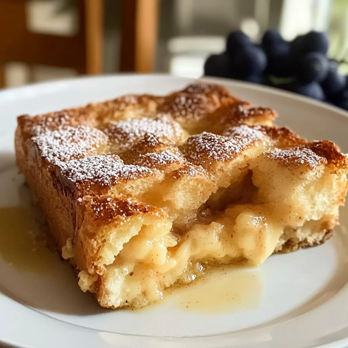 Welchen brühmten Klassiker könnte man aufpeppen, um der Familie ein herzliches Frühstück zu servieren? Der Französischer Toast Auflauf ist die Antwort! Diese köstliche Mischung aus fluffigem Brot, einer verführerischen Eimischung und einer knusprigen Kruste macht ihn zum perfekten Gericht für ein entspanntes Brunch oder festliche Zusammenkünfte. Mit seiner praktischen Zubereitung am Vorabend spart man wertvolle Zeit in der Küche, während man trotzdem alle mit einem echten Genuss verwöhnt. Und das Beste? Du kannst die Brotsorten und Toppings nach Lust und Laune variieren, sodass jeder Bissen einzigartig wird. Bist du bereit für ein Geschmackserlebnis, das dein Frühstück nachhaltig verändern könnte? Warum wirst du dieses Rezept lieben? Einfachheit: Die Zubereitung ist unkompliziert und erfordert nur grundlegende Kochkünste. Vielseitigkeit: Du kannst verschiedene Brotsorten verwenden, wie Brioche oder Sauerteig, und die Toppings ganz nach deinem Geschmack anpassen. Zeitersparnis: Die Übernacht-Version ermöglicht dir, am Morgen nur noch zu backen. Unwiderstehlicher Geschmack: Fluffige Textur und eine süße, cremige Füllung machen jeden Biss zu einem Erlebnis. Perfekt für Gruppen: Dieser Auflauf ist ein echter Crowd-Pleaser und ideal für Brunch-Partys oder Familienfeiern. Damit servierst du jedem ein Stück Glück! Französischer Toast Auflauf Zutaten Für den Auflauf Französisches Brot – 1 Laib (16 Unzen), in 1-Zoll-Würfel geschnitten; es liefert die Struktur und die Basis des Auflaufs. Du kannst auch Brioche, Challah oder Sauerteig verwenden für Abwechslung. Große Eier – 9; sie wirken als Bindemittel für die Eimischung. Keine direkten Ersatzmöglichkeiten empfohlen, aber ein Ei-Ersatz kann für eine vegane Variante genutzt werden. Milch – 2 Tassen; fügt Cremigkeit zur Eimischung hinzu. Kann durch Mandel- oder Hafermilch für eine laktosefreie Version ersetzt werden. Schlagsahne – ½ Tasse; verstärkt den Reichtum und den Geschmack. Halbfettmilch oder Kokosmilch können als Alternativen verwendet werden. Brauner Zucker – ½ Tasse; verleiht Süße und Tiefe. Kann durch Kokoszucker für eine weniger raffinierte Option ersetzt werden. Zucker – ¼ Tasse; sorgt für zusätzliche Süße. Optional nach Vorliebe anpassen. Vanilleextrakt – 1 ½ Teelöffel; bringt ein aromatisches Aroma. Kein Ersatz; Essenz kann den Geschmack verstärken, wenn nötig. Für das Topping Mehl – ½ Tasse; sorgt für Textur und Knusprigkeit beim Backen. Verwende glutenfreies Mehl für eine glutenfreie Version. Brauner Zucker (für das Topping) – ½ Tasse; sorgt für zusätzliche Süße und Karamellisierung. Zimt – 1 Teelöffel; verleiht Wärme und Gewürz. Muskatnuss kann für eine weitere Geschmacksdimension hinzugefügt werden, je nach Allergien. Salz – eine Prise; verstärkt alle anderen Aromen. Ungesalzene Butter – ½ Tasse, in kleine Würfel geschnitten; sorgt für Reichtum und ein krümeliges Topping. Vegane Butter kann als Ersatz verwendet werden. Schritt-für-Schritt-Anleitung für den Französischen Toast Auflauf Step 1: Brot vorbereiten Verteile die gewürfelten Brotwürfel gleichmäßig in einer gefetteten 9×13-Zoll-Baker-Form. Achte darauf, dass die Würfel gleichmäßig verteilt sind, um eine gleichmäßige Durchdringung der Eimischung zu gewährleisten. Dies wird die Grundlage für deinen köstlichen Französischen Toast Auflauf bilden. Step 2: Eimischung zubereiten Schlage in einer großen Schüssel die Eier, Milch, Sahne, braunen Zucker, weißen Zucker und Vanilleextrakt gut zusammen. Verwende einen Schneebesen, um sicherzustellen, dass die Mischung schön cremig ist. Gieße diese Mischung gleichmäßig über die Brotwürfel und benutze einen Spatel, um sicherzustellen, dass das Brot gut durchtränkt wird. Step 3: Über Nacht ruhen lassen Decke die Backform mit Frischhaltefolie ab und stelle sie über Nacht in den Kühlschrank. Dadurch kann das Brot die Eimischung aufnehmen und die Aromen miteinander verschmelzen. Dies ist ein wichtiger Schritt für die perfekte Konsistenz deines Französischen Toast Auflaufs. Step 4: Topping vorbereiten Um das Topping zuzubereiten, vermenge in einer mittelgroßen Schüssel das Mehl, den braunen Zucker, den Zimt und das Salz. Schneide dann die kalte Butter in kleine Stücke und füge sie zur Mischung hinzu. Verwende einen Teigmischer oder deine Finger, um die Zutaten zu einer krümeligen Textur zu verbinden; das wird einen knusprigen Belag ergeben. Step 5: Auflauf vorbereiten Nimm die Backform 40 Minuten vor dem Backen aus dem Kühlschrank, damit der Auflauf Zimmertemperatur erreichen kann. Dies sorgt dafür, dass der Auflauf gleichmäßig und perfekt aufgeht, während er in den Ofen kommt. Heize den Ofen gleichzeitig auf 175 °C vor. Step 6: Backen Streue das vorbereitete Topping großzügig über den Auflauf und backe alles unbedeckt für 50-60 Minuten im vorgeheizten Ofen. Die Oberfläche sollte goldbraun und leicht knusprig sein, während die innere Textur weich und custard-artig bleibt. Überprüfe gerne nach 50 Minuten die Konsistenz, um die perfekte Garzeit zu finden. Der perfekte Mahlzeitenvorbereitung für deinen Französischen Toast Auflauf Die Zubereitung dieses Französischen Toast Auflaufs ist ein wahrer Zeitressourcensparer für vielbeschäftigte Köche! Du kannst das Brot bis zu 24 Stunden im Voraus vorbereiten, indem du die gewürfelten Brote in die Backform legst. Die Eimischung sollte ebenfalls schon am Abend zuvor zubereitet und über das Brot gegossen werden, bevor du es abdeckst und im Kühlschrank ruhen lässt. Um die Qualität zu bewahren, achte darauf, den Auflauf vor dem Backen 40 Minuten auf Zimmertemperatur kommen zu lassen. Nach dem Backen kannst du Reste bis zu 3 Tage in einem luftdichten Behälter aufbewahren, sodass du auch nach dem Brunch noch genießen kannst! Expertentipps für den Französischen Toast Auflauf Brotwahl beachten: Verwende frisches, etwas älteres Brot für beste Ergebnis