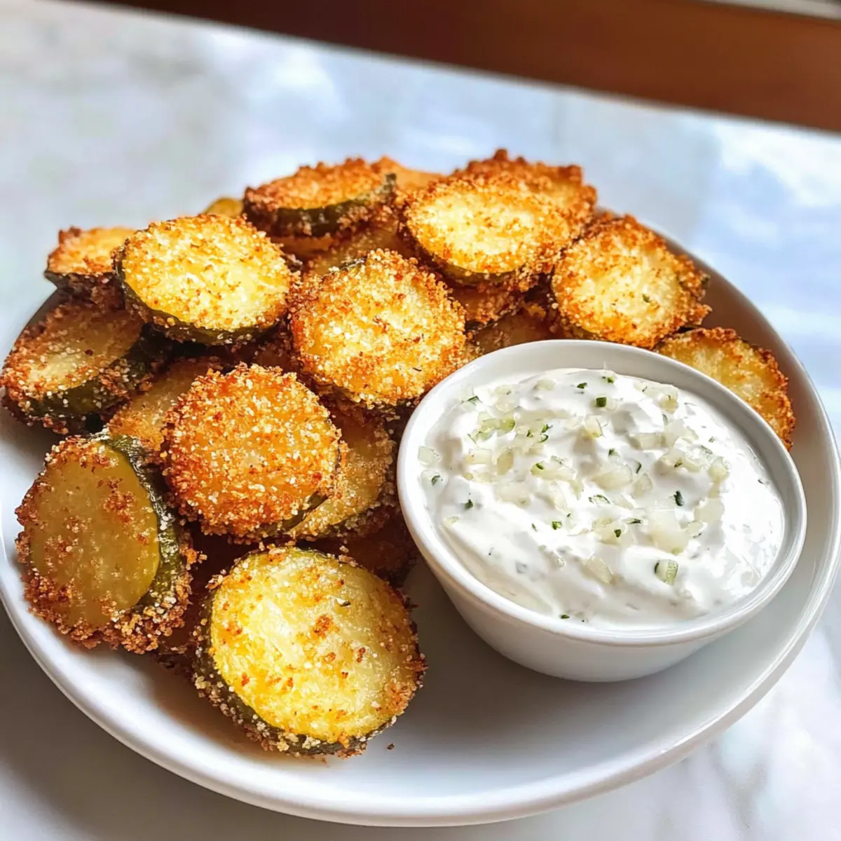 Eines der besten Dinge an der Küche ist die Freude am Ausprobieren – besonders wenn es um Snacks geht! Als ich das erste Mal von frittierte Gurken hörte, war ich skeptisch. Doch mit einem Air Fryer lassen sich diese knusprigen Köstlichkeiten ganz einfach zubereiten, ohne das Gefühl von schwerem Fett im Magen. Diese gesunden Air Fryer Frittierte Gurken sind nicht nur ein Genuss, sondern auch perfekt für ein schnelles Appetithäppchen oder als gesunder Snack für den Fernsehabend. In weniger als 30 Minuten kannst du sie in deiner Küche zaubern – sie sind kalorienarm und versprechen trotzdem diesen herrlich knusprigen Biss, den wir alle lieben. Bist du bereit, dich in diese leckeren Gurken zu verlieben? Warum sind diese Frittierte Gurken ein Hit? Knusprig und lecker: Diese Air Fryer Frittierte Gurken bieten die perfekte Kombination aus einem herzhaften, knusprigen Biss und einem saftigen, würzigen Inneren. Einfache Zubereitung: Mit nur wenigen Zutaten und einfachen Schritten bist du in weniger als 30 Minuten bereit zur Verkostung. Gesunde Snack-Option: Genieß ohne Reue, da diese Gurken eine leichte und kalorienarme Alternative zu herkömmlich frittierten Snacks sind. Vielseitig einsetzbar: Serviere sie mit einer Vielzahl von Dips, wie zum Beispiel einer scharfen Sauce oder einer cremigen Joghurt-Variante. Diese Gurken sind ideal für jede Gelegenheit – ob beim Spielabend oder als raffinierte Vorspeise bei einer Feier. Beeindrucke deine Gäste: Mit diesem köstlichen Rezept zauberst du nicht nur ein lächelndes Gesicht, sondern auch viele Komplimente! Frittierte Gurken Zutaten Für die Gurken • Geschnittene Gurken – Diese sind die Grundlage der Frittierte Gurken und sorgen für den unverwechselbaren Geschmack; Du kannst jede Art von Gurken verwenden, je nach Vorliebe. • Große Eier – Sie wirken als Bindemittel für die Panade; für eine vegane Variante kannst du auch einen Eiersatz verwenden. • Mehl – Hilft dabei, eine gleichmäßige Beschichtung auf den Gurken zu erzeugen; glutenfreies Mehl ist ein guter Ersatz. • Scharfe Sauce – Bringt einen würzigen Kick; passe die Menge an, um deine gewünschte Schärfe zu erreichen. • Salz und schwarzer Pfeffer – Verbessern den Gesamtschmack; würze nach Geschmack. • Panko-Brösel – Entscheidend für eine knusprige äußere Schicht; normale Semmelbrösel können verwendet werden, aber Panko sorgt für besseren Crunch. Für den Dip • Sauerrahm – Dient als Basis für den cremigen Dip und bringt eine angenehme Säure mit; griechischer Joghurt kann für eine leichtere Version verwendet werden. • Mayonnaise – Fügt Cremigkeit zum Dip hinzu; kann auch durch Avocado oder zusätzlich Sauerrahm ersetzt werden. • Fein gehackte Zwiebeln und Knoblauch – Tragen zur Geschmacksfülle des Dips bei; reduziere die Menge für einen milderen Geschmack. • Getrockneter Dill – Gibt eine herzhafte Note; optional, aber sehr empfehlenswert für den Geschmack. Diese Anleitung für frittierte Gurken aus der Heißluftfritteuse wird dir helfen, ein schnelles und geschmackvolles Gericht zuzubereiten, das deine Gäste begeistern wird! Schritt-für-Schritt-Anleitung für Frittierte Gurken Step 1: Gurken trocken tupfen Trockne die geschnittenen Gurken gründlich mit Küchenpapier, um überschüssige Feuchtigkeit zu entfernen. Dies ist wichtig, da trockene Gurken besser mit dem Ei gewaschen werden. Lege die Gurken auf ein Küchenpapier und drücke leicht, bis sie schön trocken sind. Step 2: Ei-Mischung vorbereiten In einer flachen Schüssel die großen Eier, das Mehl, die scharfe Sauce, Salz und schwarzen Pfeffer gut verquirlen. Diese Mischung wird zum Binden der Panade benötigt. Achte darauf, dass die Mischung gleichmäßig und klumpenfrei ist, bevor du mit dem nächsten Schritt fortfährst. Step 3: Panko vorbereiten Gib die Panko-Brösel in eine zweite flache Schüssel. Diese Brösel sind entscheidend, um die Frittierte Gurken knusprig zu machen. Stelle sicher, dass du genügend Panko hast, um alle Gurken gleichmäßig zu panieren. Step 4: Gurken panieren Tauche jede Gurkenscheibe zuerst in die Ei-Mischung, um sie zu beschichten, und wälze sie dann in den Panko-Bröseln. Achte darauf, dass die Brösel gleichmäßig auf allen Seiten haften. Lege die panierte Gurken auf ein Backblech und wiederhole den Vorgang, bis alle Gurken bereit sind. Step 5: Heißluftfritteuse vorheizen Heize die Heißluftfritteuse auf 200 °C (400 °F) vor. Dies ist wichtig, um eine gleichmäßige Garung und perfekte Knusprigkeit zu gewährleisten, wenn du die Frittierte Gurken in den Korb legst. Step 6: Frittierte Gurken garen Lege die vorbereiteten Gurken in einer einzigen Schicht in den Korb der Heißluftfritteuse. Besprühe sie leicht mit Öl, um die Knusprigkeit zu erhöhen. Frittiere die Gurken für 5–7 Minuten, bis sie goldbraun sind. Drehe sie um, besprühe sie erneut mit Öl und frittiere sie weitere 5-7 Minuten. Step 7: Dip zubereiten Während die Frittierte Gurken garten, mische in einer Schüssel den Sauerrahm, die Mayonnaise, die fein gehackten Zwiebeln, den Knoblauch und den getrockneten Dill, bis alles gut vermengt ist. Dieser cremige Dip ergänzt die knusprigen Gurken hervorragend und sorgt für ein Geschmackserlebnis. Step 8: Servieren Sobald die Frittierte Gurken goldbraun und knusprig sind, nimm sie aus der Heißluftfritteuse und serviere sie sofort mit dem vorbereiteten Dip. Genieße diesen gesunden Snack als Appetizer oder während des Fernsehens in Gesellschaft! Tipps für die besten Frittierte Gurken Gurken gut trocknen: Achte darauf, dass die Gurken vor dem Panieren vollständig trocken sind; Feuchtigkeit verhindert das Haften der Panade. In Portionen frittieren: Überlade den Korb der Heißluftfritteuse nicht, um ein gleichmäßiges Garen und eine perfekte Knusprigkeit zu gewährleisten. Würze anpassen: Experimentiere mit der Menge an scharfer Sauce in der Ei-Mischung, um die gewünschte Schärfe für deine frittierte Gurken zu e