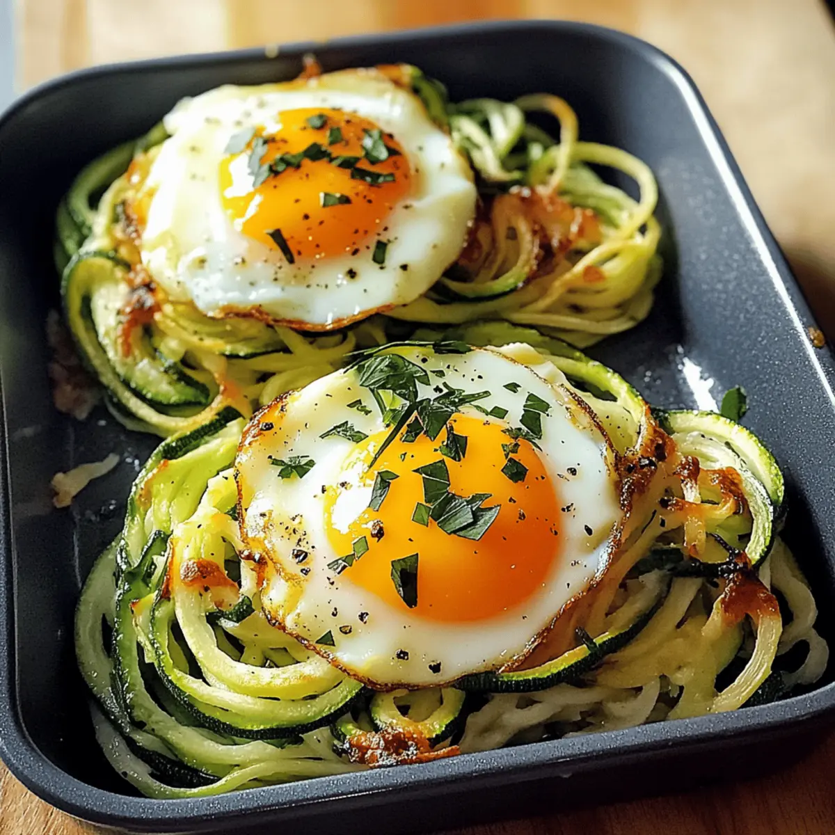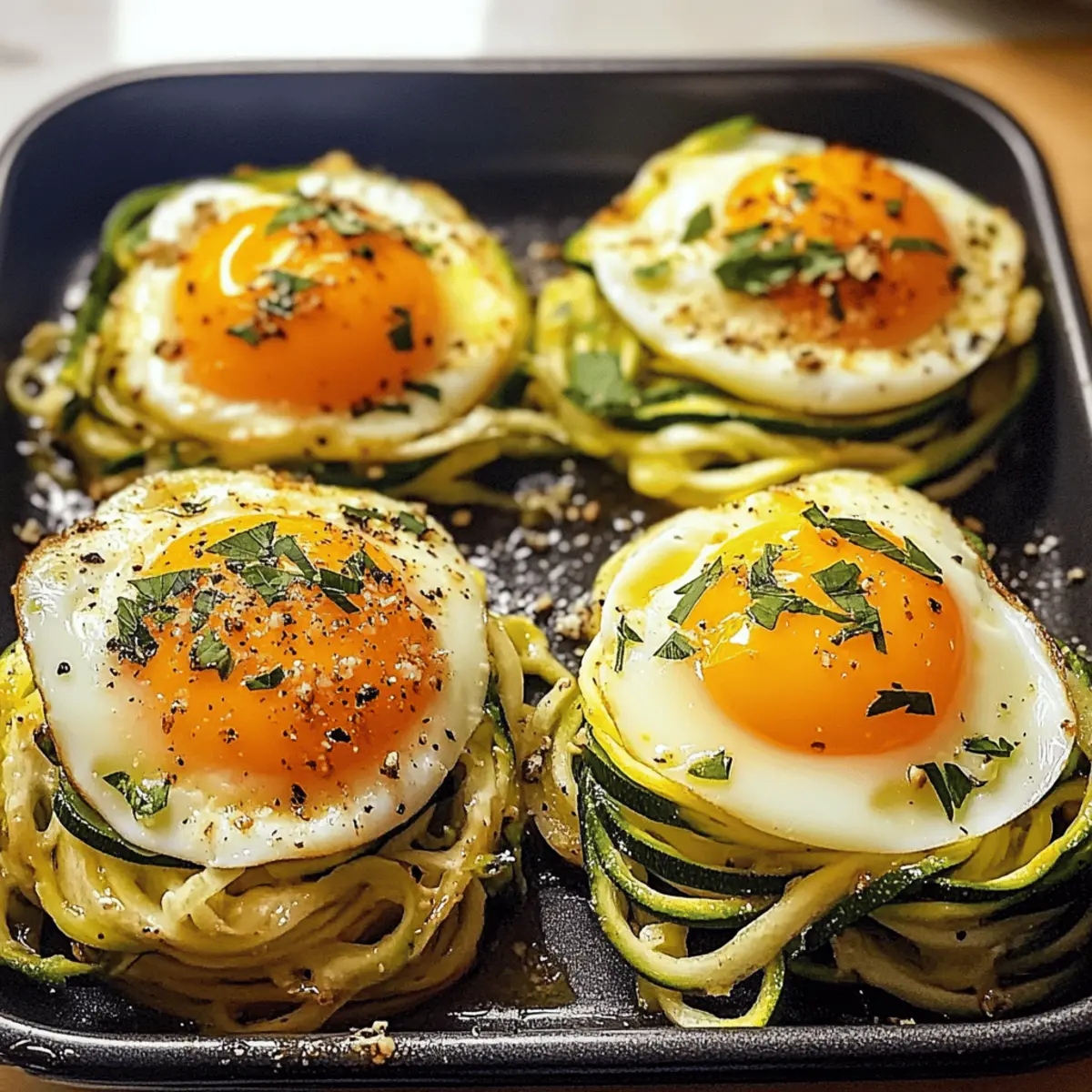Die warmen, knusprigen Aromen der gebackenen Eier-Zoodle-Bündel haben mich sofort verzaubert. Jedes Mal, wenn ich in eine dieser kleinen Köstlichkeiten beiße, entdecke ich die harmonische Kombination aus fluffigen Eiern und zarten Zucchini-Nudeln, die ein leichtes, aber dennoch sättigendes Frühstück ergeben. Diese gebackenen Eier-Zoodle-Bündel sind nicht nur unglaublich lecker, sondern auch perfekt für alle, die auf ihre Ernährung achten: Sie sind glutenfrei und passen perfekt in einen Low-Carb-Lebensstil. In weniger als 40 Minuten zubereitet, sind sie die ideale Lösung für hektische Morgen, wenn man nicht auf ein geschmackvolles Frühstück verzichten möchte. Neugierig, wie einfach es sein kann, diese gesunde Köstlichkeit selbst zu zaubern? Warum gebackene Eier-Zoodle-Bündel lieben? Leichtigkeit: Die Zubereitung dieser leckeren Bündel ist kinderleicht und benötigt nur grundlegende Kochkenntnisse. Wunderbarer Geschmack: Die Kombination aus Eiern, Zucchini und frischen Kräutern sorgt für ein Geschmacksfeuerwerk in jedem Bissen. Vielseitigkeit: Fügen Sie nach Belieben Zutaten wie Schinken oder verschiedene Gemüsesorten hinzu, um Ihre ganz persönliche Note zu kreieren. Gesund und nahrhaft: Diese gebackenen Eier-Zoodle-Bündel sind nicht nur glutenfrei, sondern passen auch perfekt in Ihren Low-Carb-Lebensstil. Zeitersparnis: Mit weniger als 40 Minuten in der Küche sind sie ideal für die hektischen Morgenstunden. Heißer Favorit: Ob für das Frühstück oder als Snack – sie erfüllen immer den Wunsch nach etwas Gesundem und Leckerem. Zutaten für Gebackene Eier-Zoodle-Bündel Entdecken Sie die essenziellen Zutaten, um diese köstlichen, gesunden Bundles zuzubereiten! Für die Zucchini-Nudeln • Zucchini – Basiszutat, die Textur und Feuchtigkeit hinzufügt; Alternativ können Sie auch gelbe Kürbisse verwenden. Für die Eiermasse • Eier – Hauptquelle für Protein, die die Mischung zusammenhält; Verwenden Sie große Eier für die richtige Konsistenz. • Gerieben Käse (z.B. Cheddar oder Mozzarella) – Sorgt für Cremigkeit und Geschmack; veganen Käse als Ersatz verwenden. • Frühlingszwiebeln – Für Frische und einen milden Zwiebelgeschmack; können durch Schalotten oder normale Zwiebeln ersetzt werden. • Paprikapulver – Fügt einen Hauch von Rauchigkeit hinzu; verwenden Sie geräuchertes Paprikapulver für einen intensiveren Geschmack. • Salz und Pfeffer – Grundgewürze zur Geschmacksverbesserung; nach persönlichem Geschmack anpassen. Für die Zubereitung • Olivenöl – Zum Einfetten und für zusätzlichen Geschmack; verwenden Sie Avocadoöl für einen höheren Rauchpunkt. • Frische Kräuter (z.B. Petersilie oder Basilikum) – Zum Garnieren; sie bringen Farbe und Frische ohne zusätzliche Kalorien; nutzen Sie Ihre Lieblingskräuter. Schritt-für-Schritt-Anleitung für Gebackene Eier-Zoodle-Bündel Step 1: Zucchini in Nudeln schneiden Beginnen Sie damit, die Zucchini mit einem Spiralschneider in feine Zoodles zu schneiden. Legen Sie die Zoodles in eine große Schüssel und lassen Sie sie kurz ruhen, damit die Feuchtigkeit reduziert wird. Dies verhindert, dass die gebackenen Eier-Zoodle-Bündel zu wässrig werden. Step 2: Zoodles würzen Fügen Sie 1 Esslöffel Olivenöl, Salz, Pfeffer und Paprikapulver zu den Zoodles in der Schüssel hinzu. Mischen Sie alles gut, sodass die Zoodles gleichmäßig mit den Gewürzen bedeckt sind. Dieser Schritt sorgt für einen intensiven Geschmack in den gebackenen Eier-Zoodle-Bündeln und dauert nur wenige Minuten. Step 3: Ofen vorheizen Heizen Sie Ihren Ofen auf 180°C (350°F) vor. Während der Ofen aufheizt, haben Sie genug Zeit, um die Eiermasse vorzubereiten und die Muffinform bereit zu machen. Eine gleichmäßige Temperatur ist entscheidend für das gleichmäßige Backen der Bündel. Step 4: Eiermasse zubereiten In einer separaten Schüssel die Eier gründlich aufschlagen. Fügen Sie den geriebenen Käse und die fein gehackten Frühlingszwiebeln hinzu und rühren Sie alles zusammen, bis die Mischung gut kombiniert ist. Diese Eiermasse ist das Herzstück der gebackenen Eier-Zoodle-Bündel und sollte luftig und gleichmäßig sein. Step 5: Bündel formen Fetten Sie ein Muffinblech leicht mit Olivenöl ein. Verteilen Sie die gewürzten Zoodles gleichmäßig in den Mulden, um schalenartige Nester zu formen. Achten Sie darauf, die Zoodles gut zu verdichten, denn so erhalten die gebackenen Eier-Zoodle-Bündel ihre Form und Struktur. Step 6: Eiermasse hinzufügen Gießen Sie die vorbereitete Eiermasse vorsichtig über die Zoodle-Nester, sodass jede Mulde fast bis zum Rand gefüllt wird. Seien Sie leicht, um ein Überlaufen zu vermeiden. Die Kombination von Eiern und Zoodles wird in den gebackenen Eier-Zoodle-Bündeln eine köstliche Schichtung schaffen. Step 7: Backen Begeben Sie sich mit dem Muffinblech in den vorgeheizten Ofen und backen Sie die Bündel für 15-18 Minuten. Die Eier sollten fest und leicht goldbraun an den Rändern sein. Ein leichtes Wackeln der Mitte ist in Ordnung, da sie beim Abkühlen fester werden. Step 8: Abkühlen lassen Nehmen Sie das Muffinblech nach der Backzeit vorsichtig aus dem Ofen und lassen Sie die gebackenen Eier-Zoodle-Bündel für einige Minuten abkühlen. Dies ist wichtig, um sicherzustellen, dass die Bündel beim Herausnehmen nicht zerbrechen. Step 9: Garnieren und servieren Bestreuen Sie die gebackenen Eier-Zoodle-Bündel nach Belieben mit frischen Kräutern wie Petersilie oder Basilikum. Servieren Sie sie warm und genießen Sie die harmonischen Aromen und die optimale Textur dieser köstlichen Frühstücksoption. Variationen & Substitutionen für Gebackene Eier-Zoodle-Bündel Entdecken Sie die vielen Facetten dieses Rezepts und verleihen Sie ihm Ihre persönliche Note! Proteinreich: Fügen Sie gewürfeltes, gekochtes Hähnchen oder Speck hinzu, um die Bündel noch sättigender zu machen. So wird jede Portion zu einem herzhaften Leckerbissen. Käse-Alternative: Ersetzen 