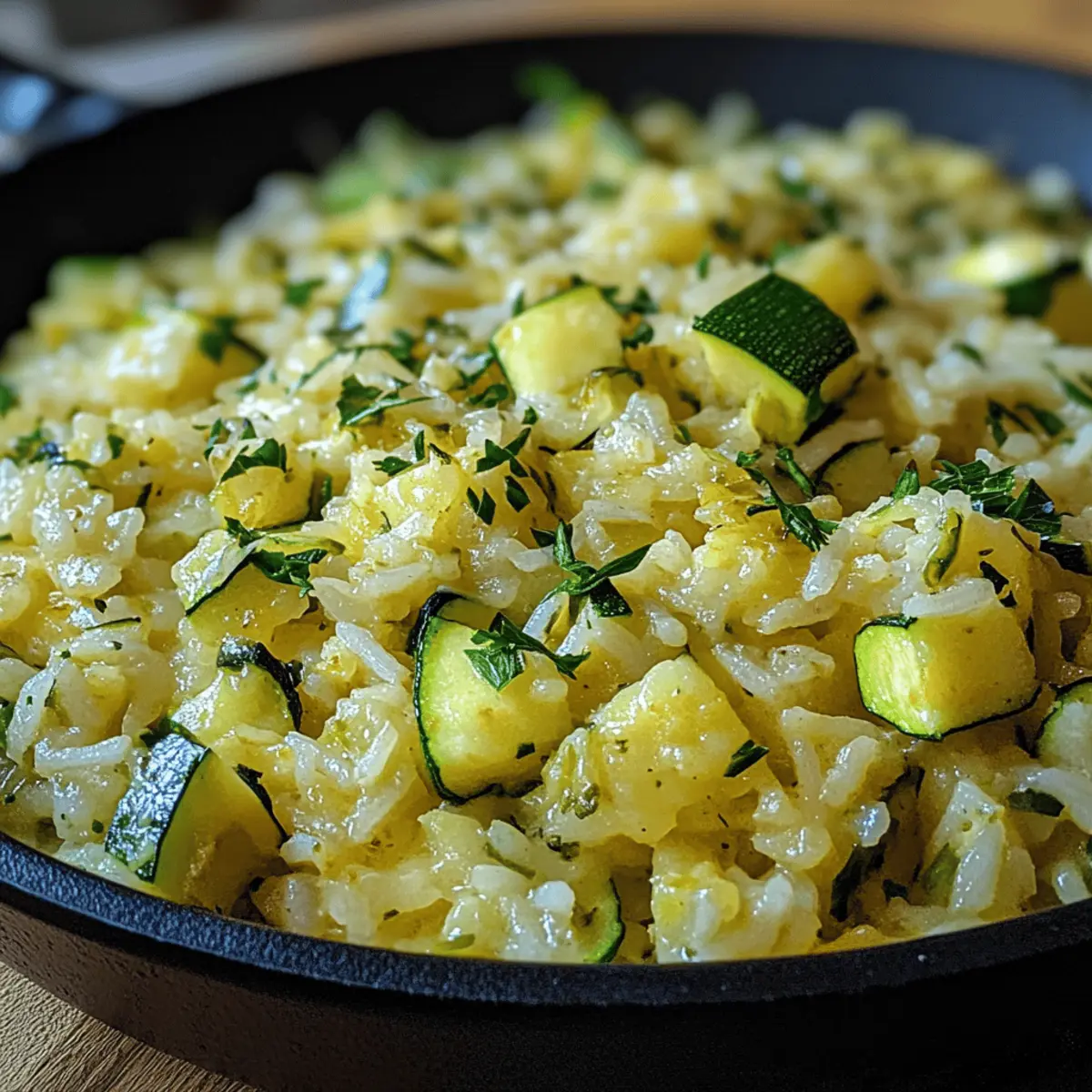 Welche Köstlichkeit kann einen nach einem langen Tag besser trösten als eine warme, cremige Pfanne voll mit Gemüse? Der Gedanke an mein neuestes Rezept, die cremige Zucchini-Reispfanne, bringt mir ein Lächeln ins Gesicht. Dieses Gericht ist nicht nur blitzschnell zubereitet, sondern auch perfekt für die Meal Prep geeignet – ideal für alle, die gesunde, hausgemachte Mahlzeiten schätzen und sich von schnellem Essen verabschieden möchten. Frische Zucchini und aromatische Gewürze verschmelzen hier zu einem unvergesslichen Geschmackserlebnis, das sowohl sättigend als auch leicht ist. Und das Beste daran? Es ist ein wahres soul food, das dich und deine Lieben glücklich macht. Neugierig, wie du mit wenigen Zutaten ein solches Gericht zaubern kannst? Lass uns gleich loslegen! Warum wirst du dieses Rezept lieben? Einfachheit in ihrer besten Form: Die Zubereitung ist kinderleicht und benötigt nur grundlegende Kochfähigkeiten. Vielseitige Optionen: Du kannst Zutaten nach Lust und Laune variieren, sei es mit mehr Gemüse wie Paprika oder einer veganen Käsealternative. Schnelles Abendessen: Ideal für stressige Tage, dauert die Zubereitung nur etwa 30 Minuten. Harmonische Geschmackskombination: Die Mischung aus Zucchini, Gewürzen und cremigem Käse sorgt für einen vollmundigen Genuss. Perfekt für Meal Prep: Eine großartige Möglichkeit, gesunde Reste zu haben, die frisch bleiben, selbst wenn sie nach dem Wochenende aufgewärmt werden. Entdecke auch unsere Blumenkohl Gebratener Reis, wenn du auf der Suche nach einer weiteren schnellen und nahrhaften Option bist! Zucchini-Reispfannen Zutaten • Eine köstliche Grundlage für dein schnelles Abendessen! Für die Basis Reis – 250 g; als Grundlage sorgt er für die nötigen Kohlenhydrate. Du kannst Basmat, Jasmin oder braunen Reis verwenden, um unterschiedliche Texturen zu erzielen. Zucchini – 2 mittelgroße; diese Gemüse verleihen dem Gericht Geschmack, Nährstoffe und Feuchtigkeit. Optional kannst du auch Paprika oder Sommergemüse verwenden. Für die Aromatisierung Zwiebel – 1 mittelgroße; trägt Süße und Tiefe zum Geschmack bei. Möchtest du es milder? Dann verwende Schalotten! Knoblauch – 2 Zehen; er verstärkt den Geschmack und sorgt für ein tolles Aroma. Bei Bedarf kannst du auch Knoblauchpulver verwenden. Olivenöl – 3 EL; ideal zum Anbraten der Gemüse und verleiht dem Gericht eine reichhaltige Note. Jeder andere Kochöl funktioniert, aber Olivenöl bringt zusätzlichen Geschmack. Gemüsebrühe – 500 ml; sorgt für Feuchtigkeit und intensiviert den Geschmack. Für nicht-vegetarische Optionen kannst du Hühnerbrühe verwenden. Für die Cremigkeit Käse – 100 g (z.B. Gouda oder Parmesan); er fügt Cremigkeit und Reichhaltigkeit hinzu. Möchtest du es vegan machen? Nutze Pflanzeneisen oder Hefeflocken! Gewürze – 1 TL Paprika, ½ TL getrockneter Oregano; diese steigern den Geschmack und die Würze. Italienische Kräuter können die Oregano ersetzen. Für den Feinschliff Salz und Pfeffer – nach Geschmack; sie sind essentiell, um die Aromen auszubalancieren. Frische Kräuter (Petersilie oder Basilikum) – zum Garnieren; sie liefern eine frische Note und verschönern die Präsentation. Lass dich von dieser Zucchini-Reispfanne inspirieren und genieße ein schnelles Abendessen, das gesund und voller Geschmack ist! Schritt-für-Schritt-Anleitung für die cremige Zucchini-Reispfanne Step 1: Reis vorbereiten Koche den Reis gemäß den Anweisungen auf der Verpackung in einem Topf mit Wasser. Verwende dabei mittlere Hitze und koche den Reis, bis er weich ist, was in der Regel etwa 15-20 Minuten dauert. Sobald er fertig ist, lasse den Reis abtropfen und stelle ihn beiseite, um später in die cremige Zucchini-Reispfanne integriert zu werden. Step 2: Gemüse anbraten Erhitze in einer großen Pfanne 3 Esslöffel Olivenöl bei mittlerer Hitze. Gib die gewürfelte Zwiebel hinzu und brate sie an, bis sie glasig ist, was etwa 3-4 Minuten dauert. Füge dann den gehackten Knoblauch hinzu und koche ihn für etwa 1 Minute, bis er aromatisch ist, aber nicht verbrannt. Step 3: Zucchini sautieren Gib die gewürfelten Zucchini in die Pfanne und brate sie 5-7 Minuten lang an, bis sie zart, aber noch knackig sind. Rühre regelmäßig um, um ein gleichmäßiges Garen zu gewährleisten. Diese Zubereitung wird der cremigen Zucchini-Reispfanne eine frische Konsistenz und viel Geschmack verleihen. Step 4: Würzen Streue 1 Teelöffel Paprika und ½ Teelöffel getrockneten Oregano über das Gemüse und würze mit Salz und Pfeffer nach Geschmack. Mische alles gründlich, sodass die Würze gleichmäßig verteilt ist. Die Aromen werden nun die gesamte cremige Zucchini-Reispfanne durchdringen und ihr das gewisse Etwas verleihen. Step 5: Reis und Brühe kombinieren Füge den abgetropften Reis sowie 500 ml Gemüsebrühe in die Pfanne hinzu. Rühre alles gut durch und lasse die Mischung bei mittlerer Hitze 5 Minuten köcheln, bis die Brühe größtenteils aufgenommen ist. Achte darauf, regelmäßig umzurühren, um ein Anbrennen zu vermeiden. Step 6: Käse einrühren Streue 100 g geriebenen Käse (z.B. Gouda oder Parmesan) über die Mischung und rühre kräftig um, bis er schmilzt und eine cremige Konsistenz erreicht. Diese letzte Zutat sorgt dafür, dass die cremige Zucchini-Reispfanne eine wunderbar reichhaltige Textur erhält. Step 7: Servieren Für die finale Präsentation platziere die cremige Zucchini-Reispfanne auf Tellern und garniere sie mit frischen Kräutern wie Petersilie oder Basilikum. Dieser Schritt gibt dem Gericht eine frische Note und macht es optisch ansprechend. Jetzt ist es bereit, serviert zu werden! Variationen von Gebackene Feta-Eier Experimentiere mit verschiedenen Zutaten und verbessere so dein Geschmackserlebnis! Dairy-Free: Tausche den Feta gegen eine pflanzliche Käsealternative aus, um ein veganes Gericht zu kreieren. Es bleibt cremig und köstlich! Extra Gemüse: Füge Zucchini, Pilze oder sogar Artischocken hinzu fü